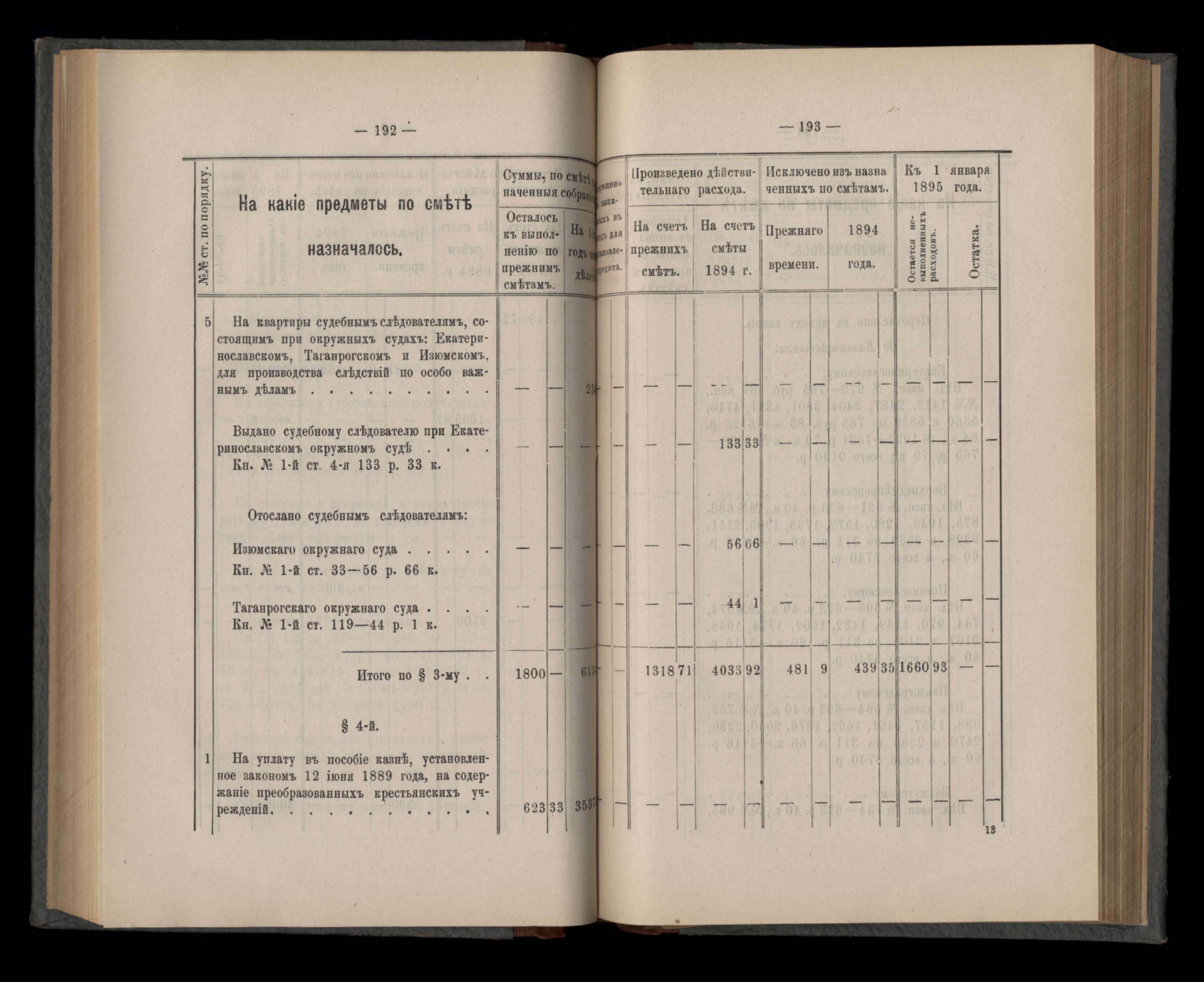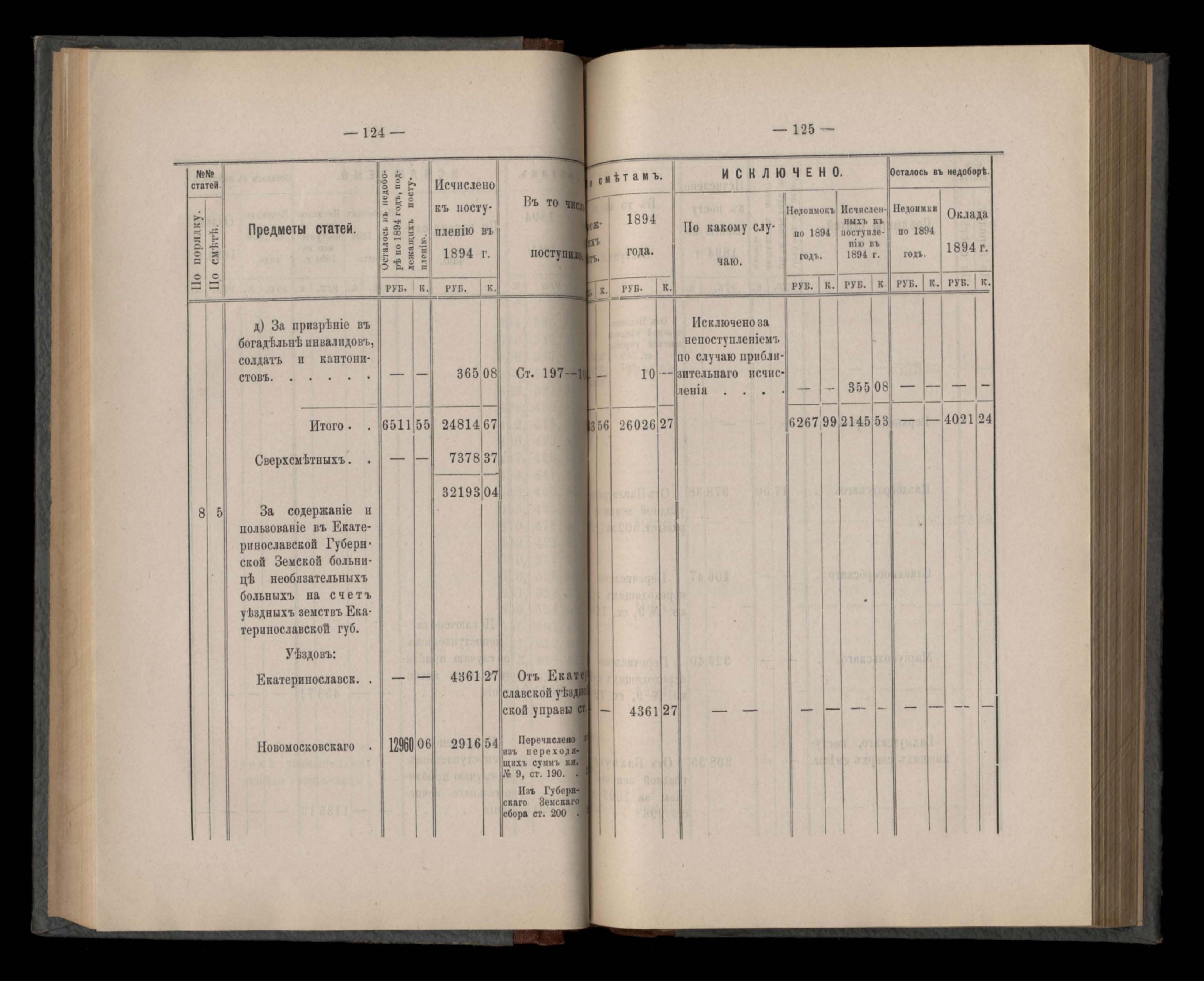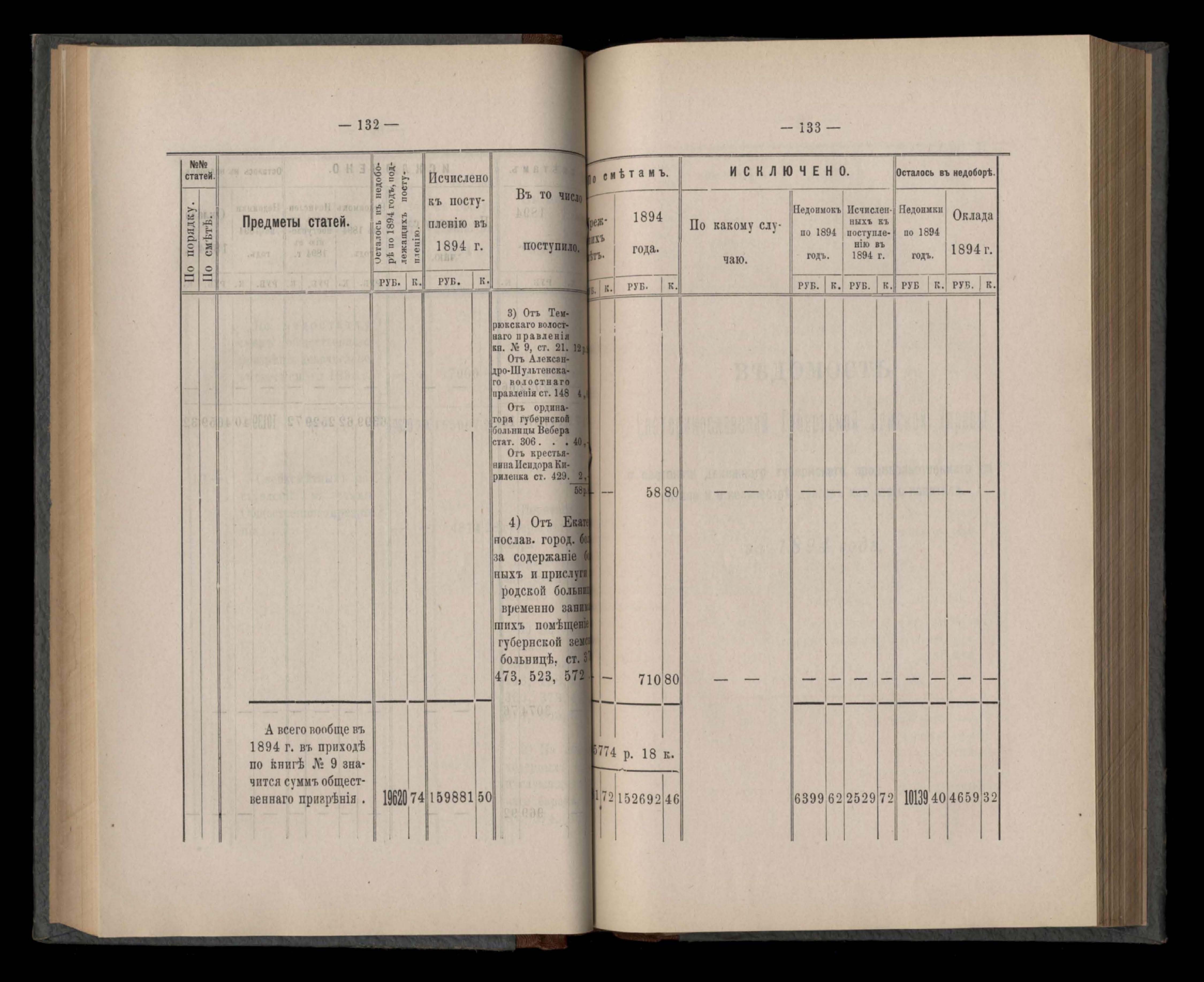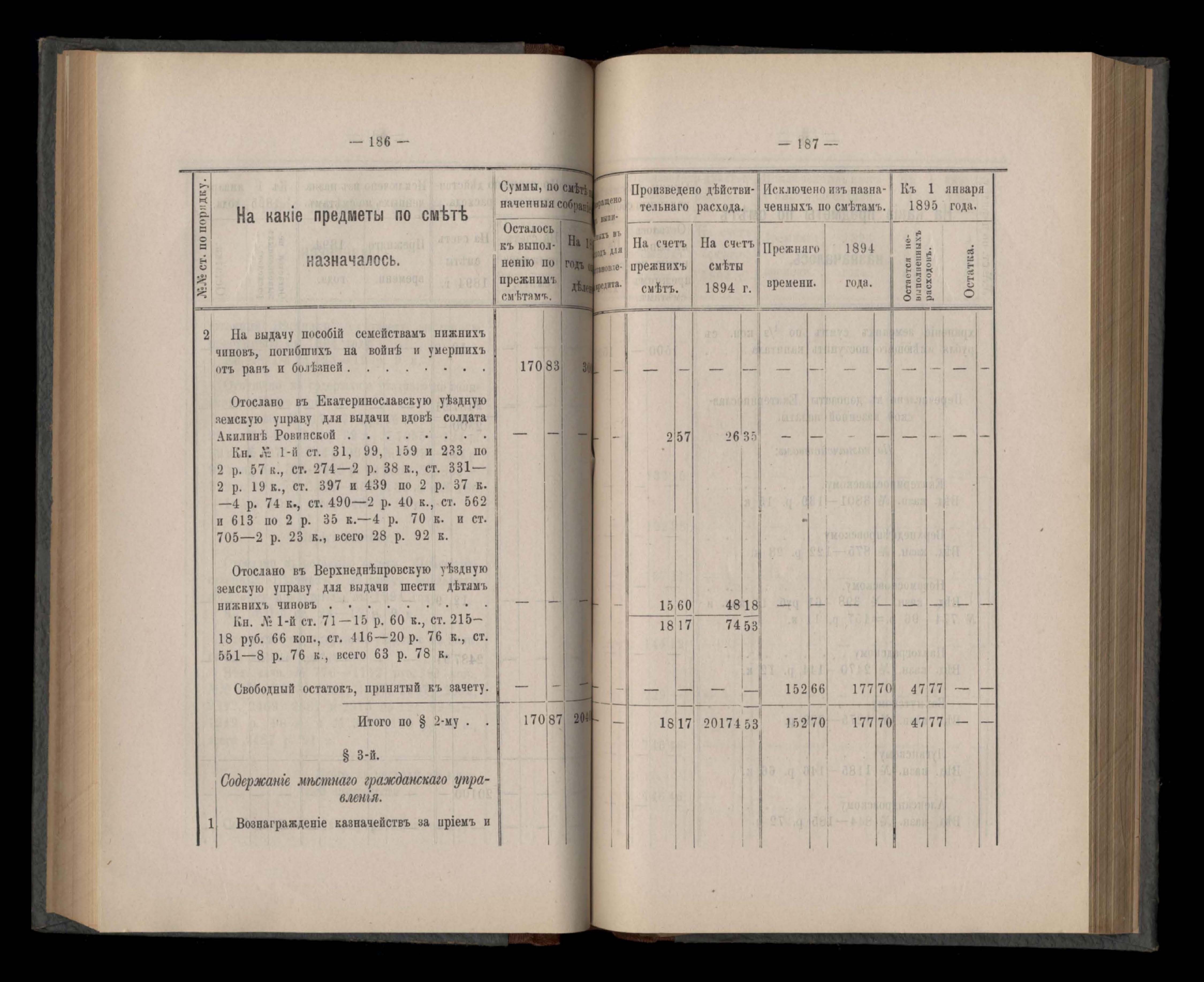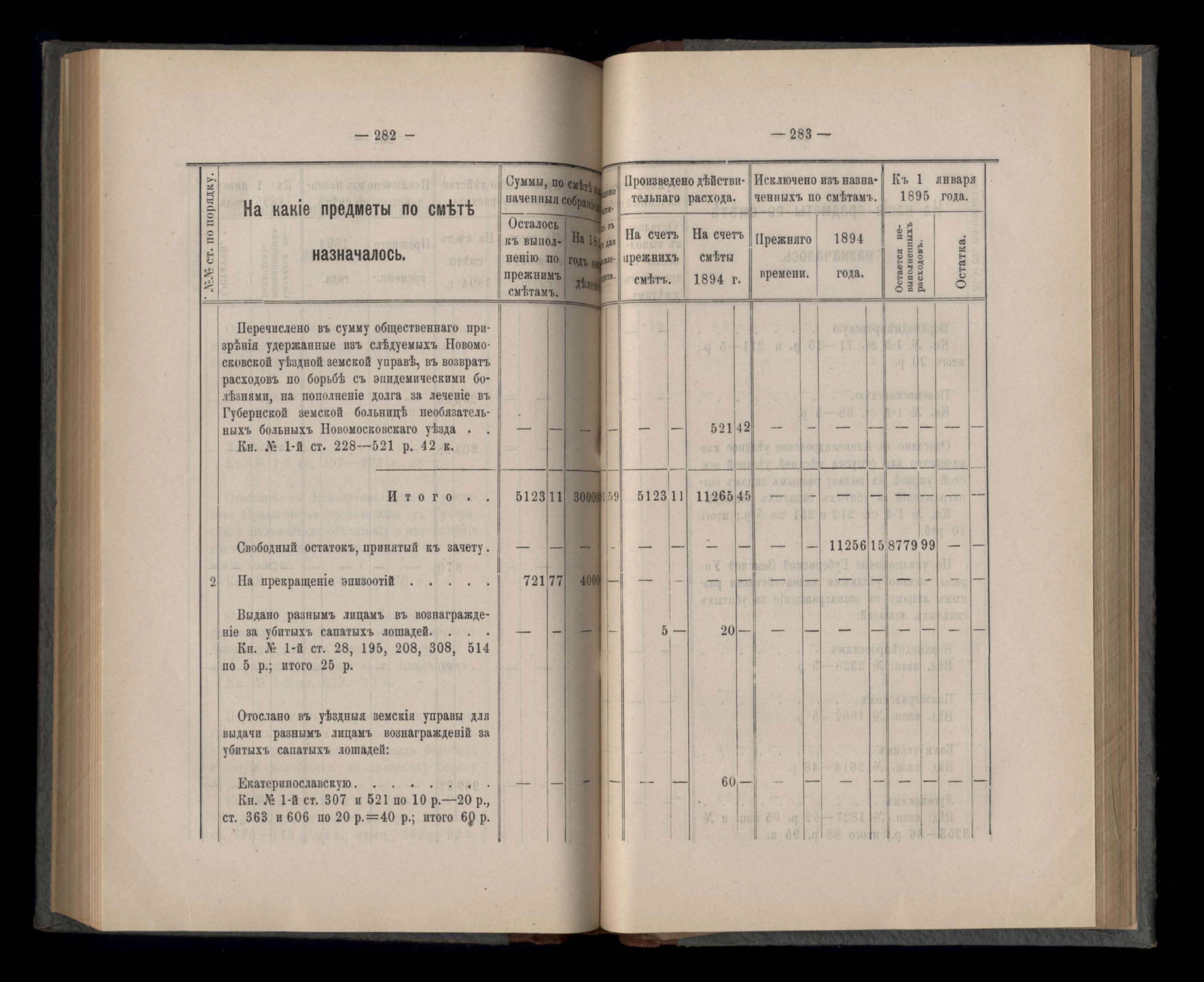 Въдомостъ Екатеринославской губернской земской управы о приходъ и расходъ суммъ имперскаго продовольственнаго капитала, отпущеннаго Правительствомъ для выдачи въ ссуду сельскимъ обществамъ на продовольствіе 1894 годъ