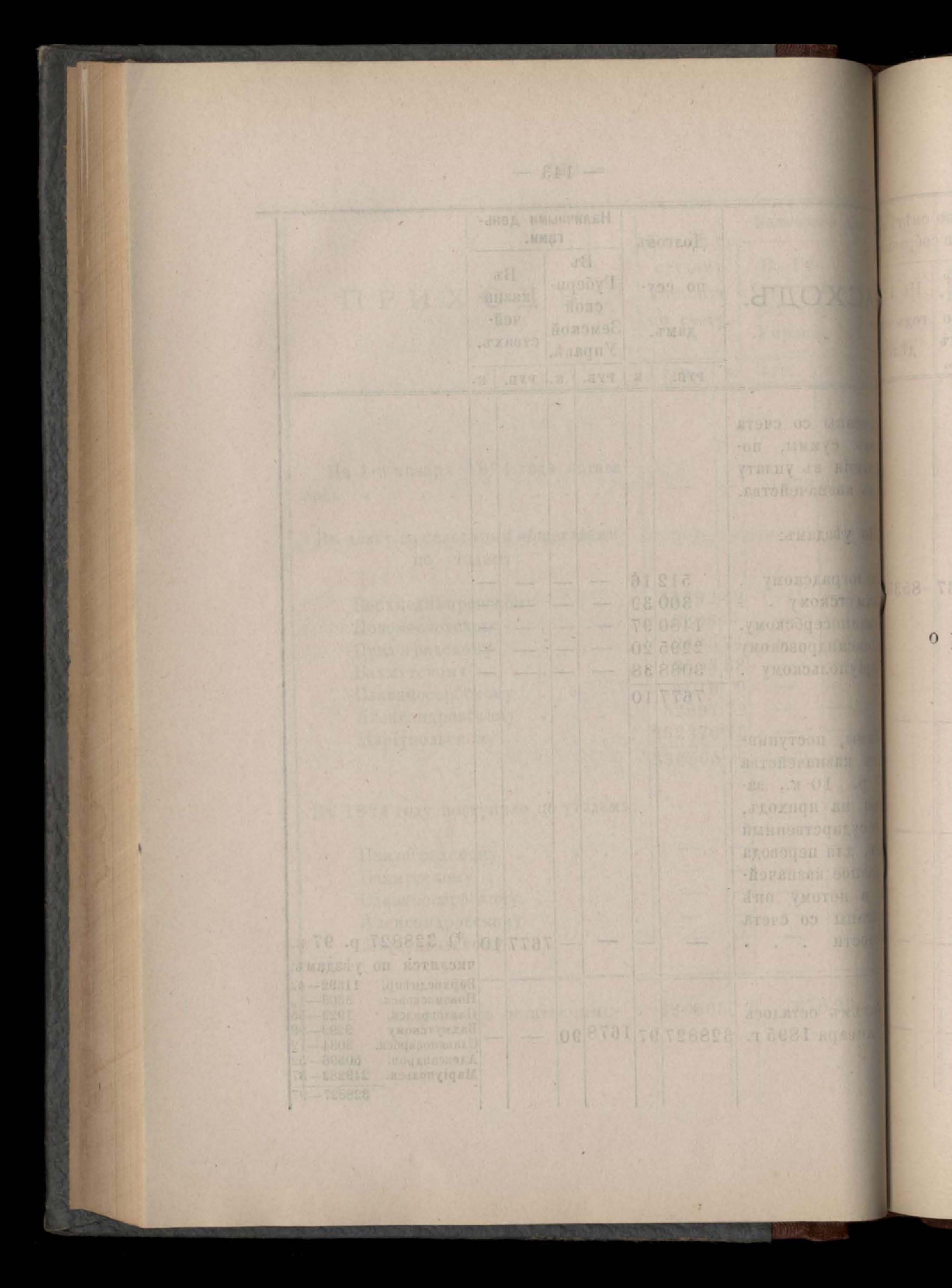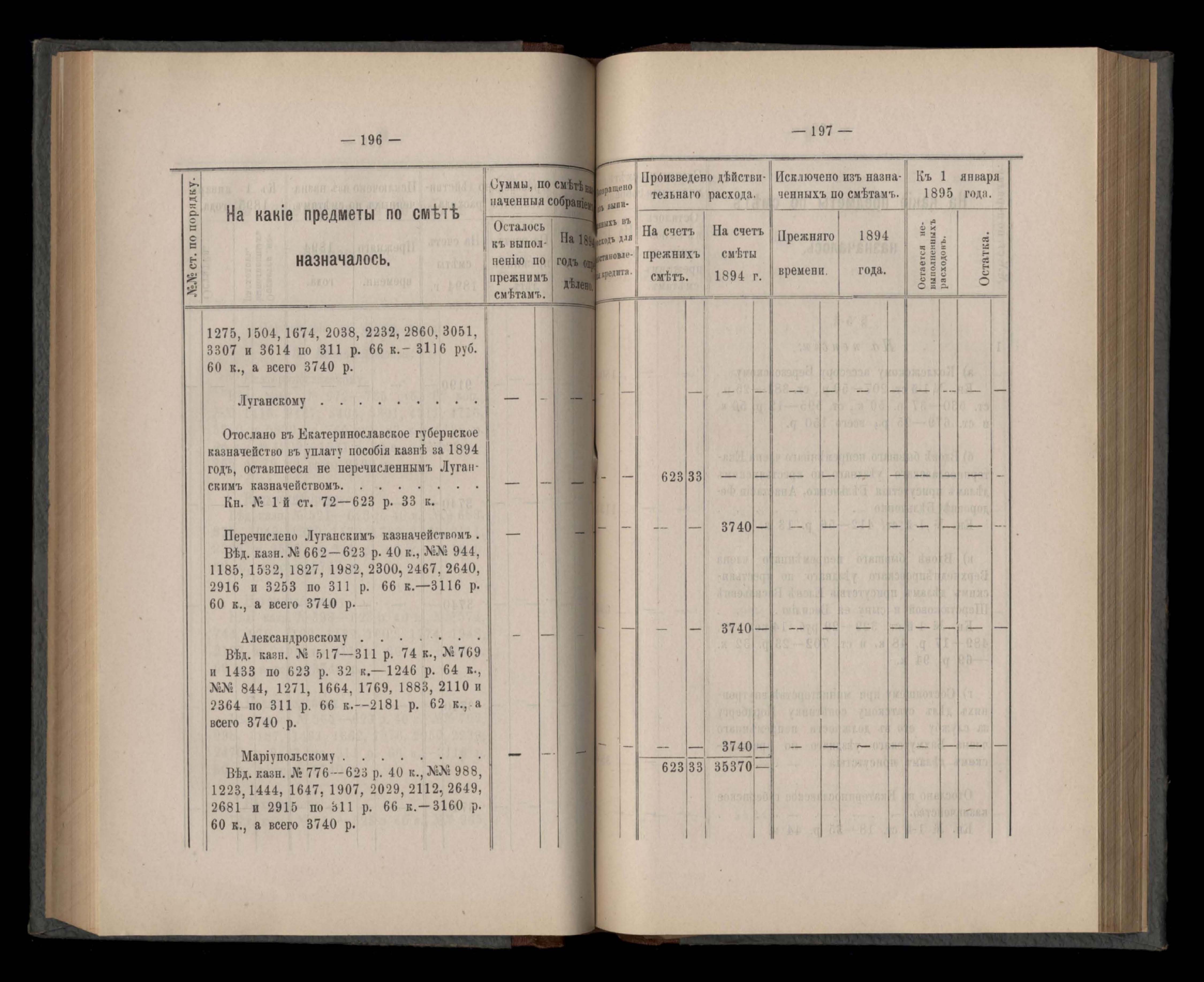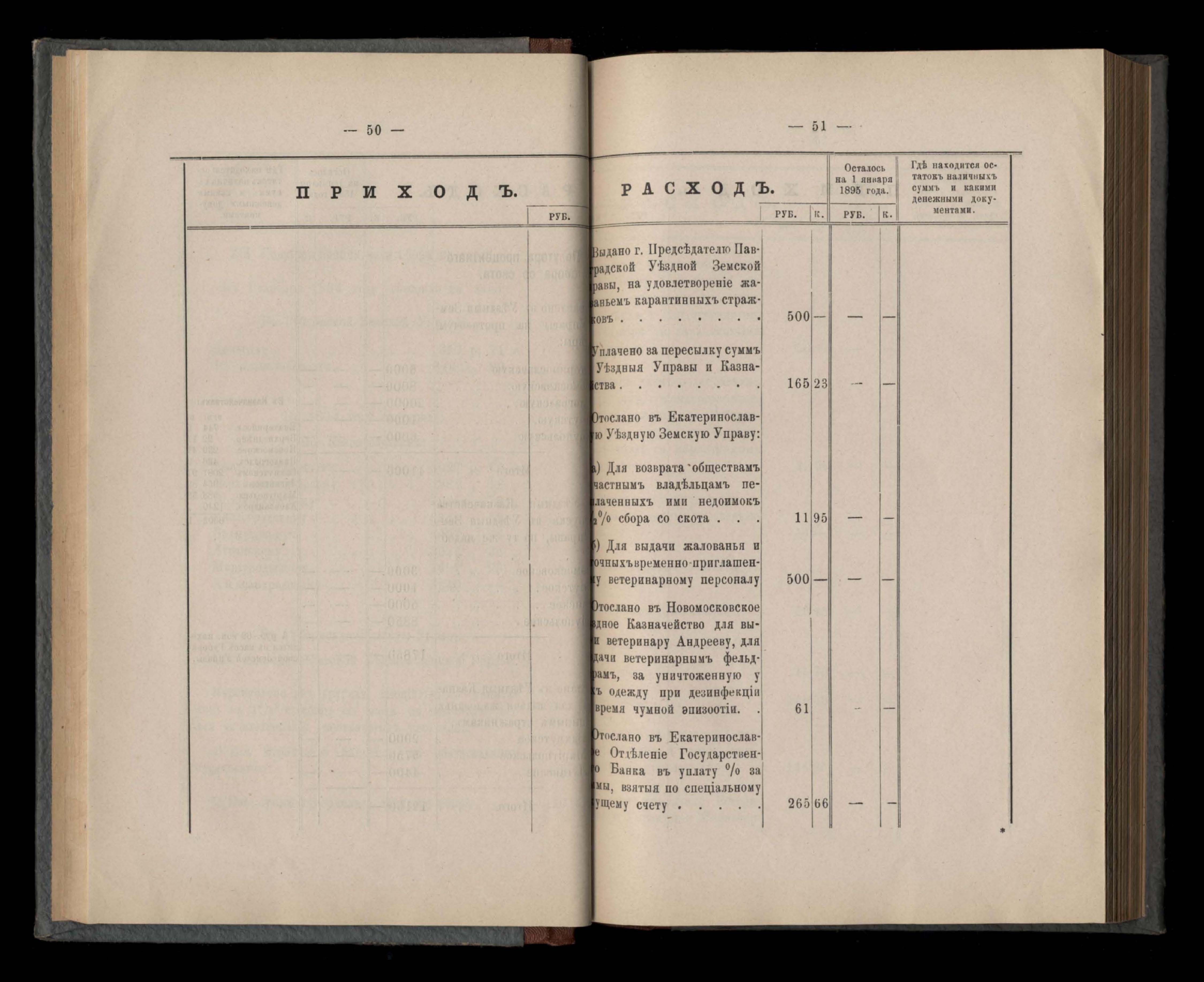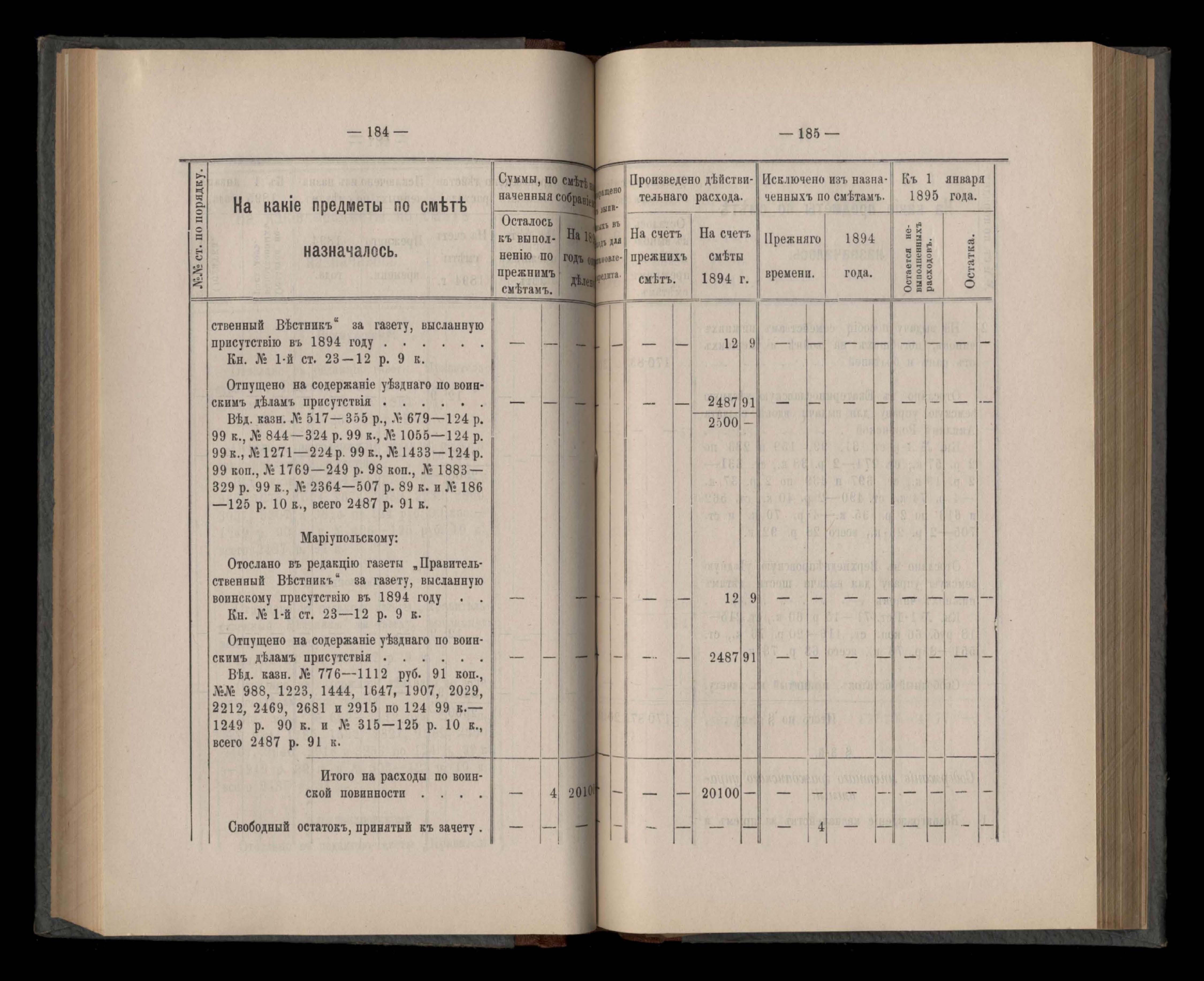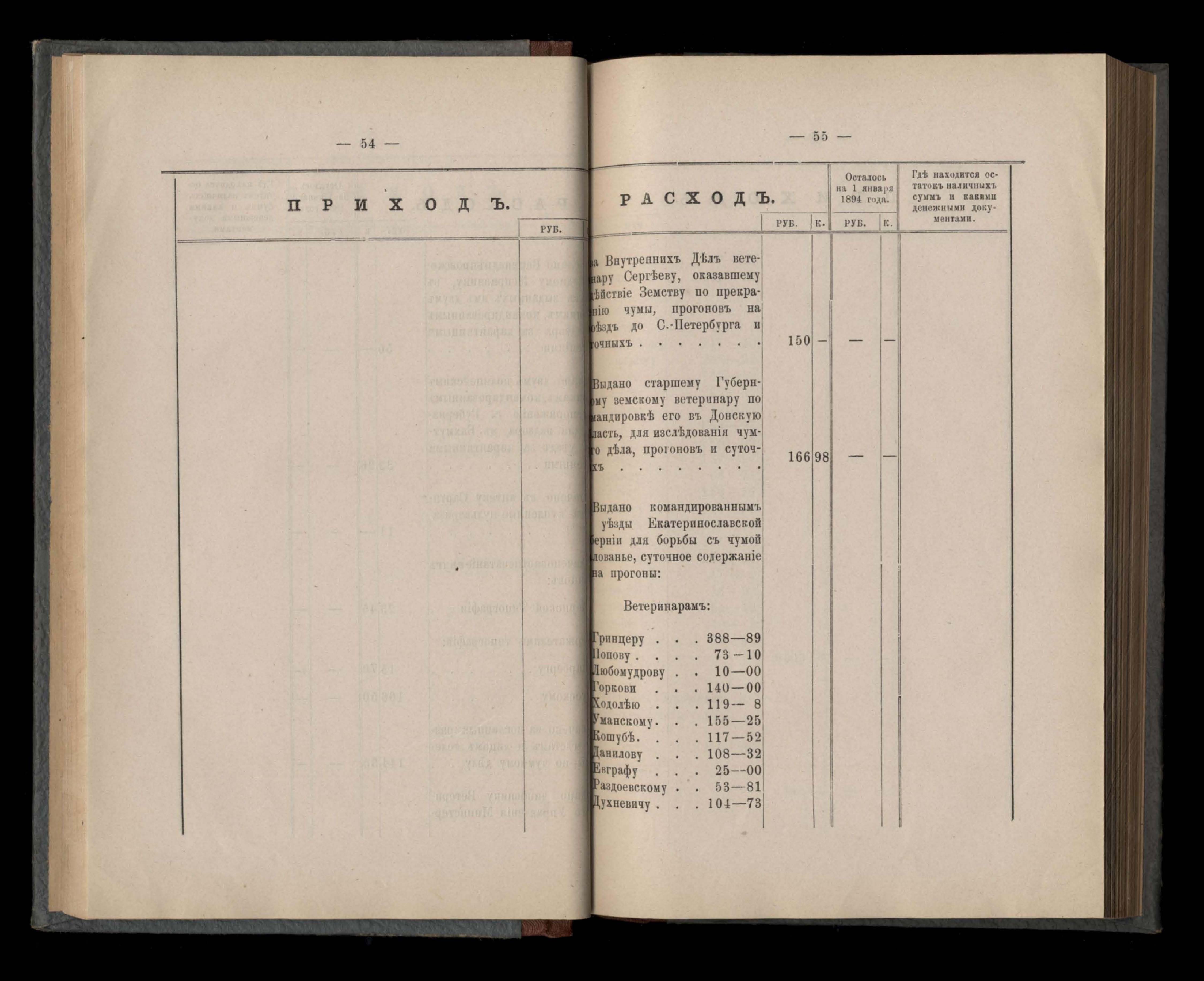 Въдомостъ Екатеринославской губернской земской управы о приходъ и расходъ суммъ имперскаго продовольственнаго капитала, отпущеннаго Правительствомъ для выдачи въ ссуду сельскимъ обществамъ на продовольствіе 1894 годъ