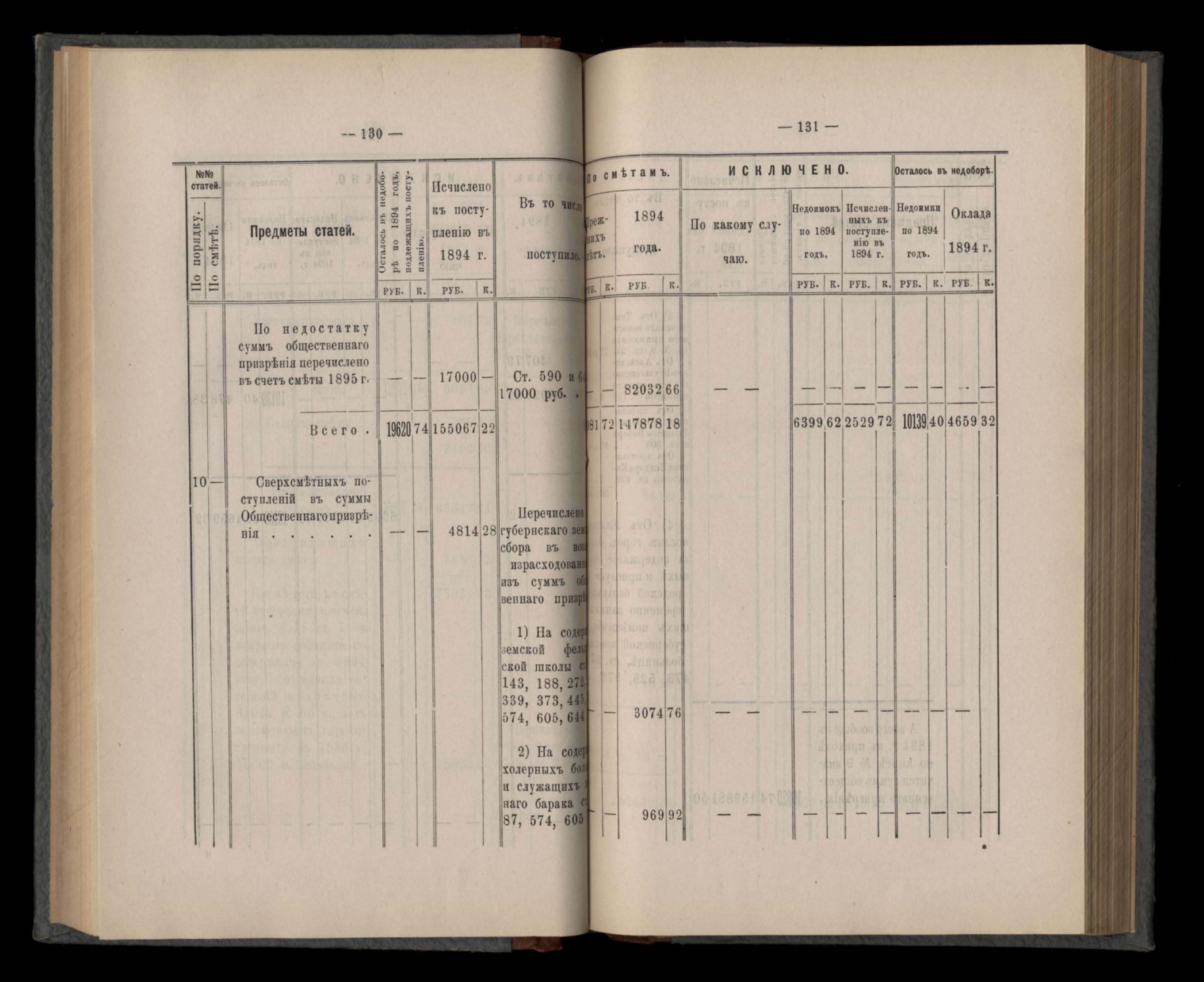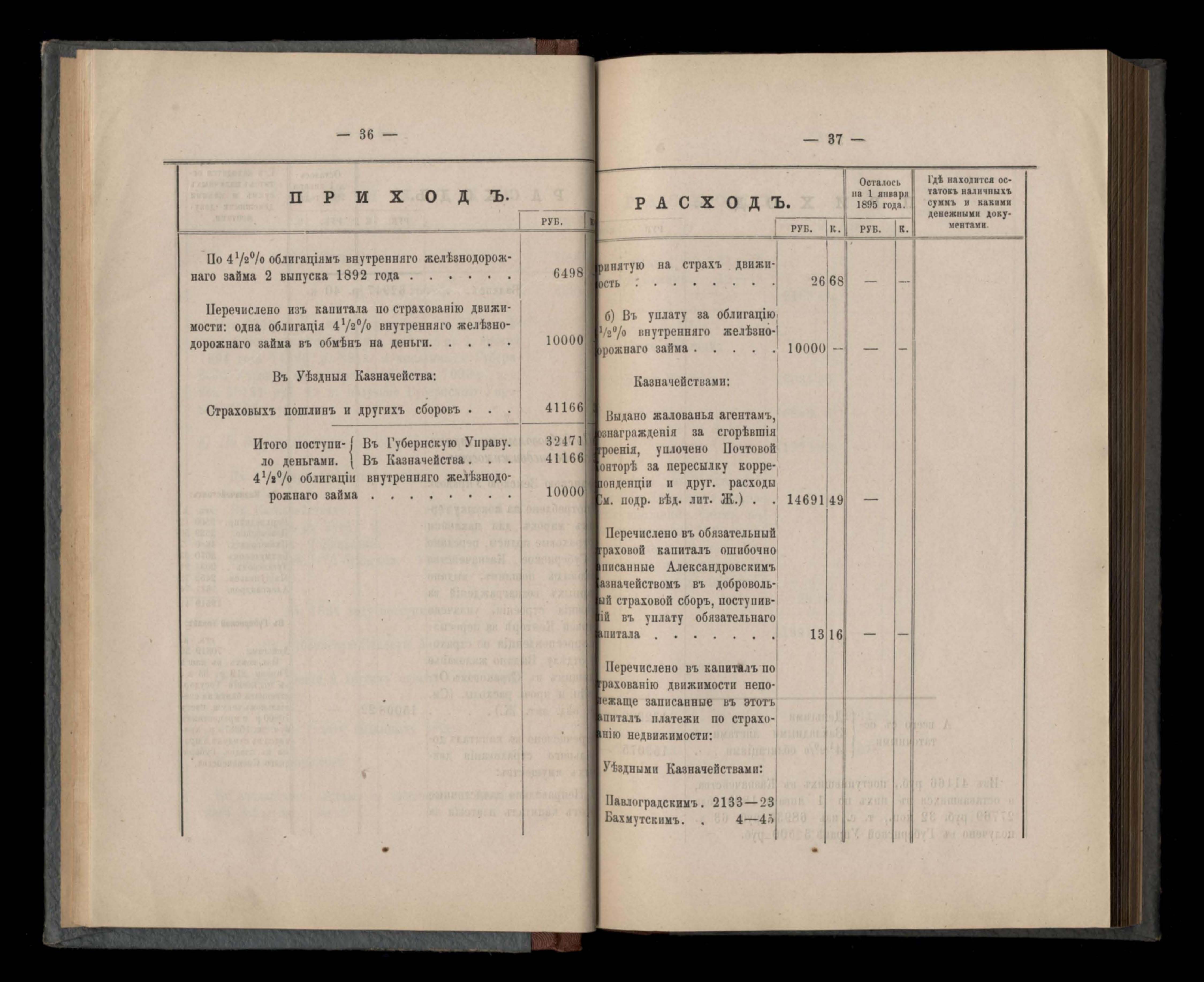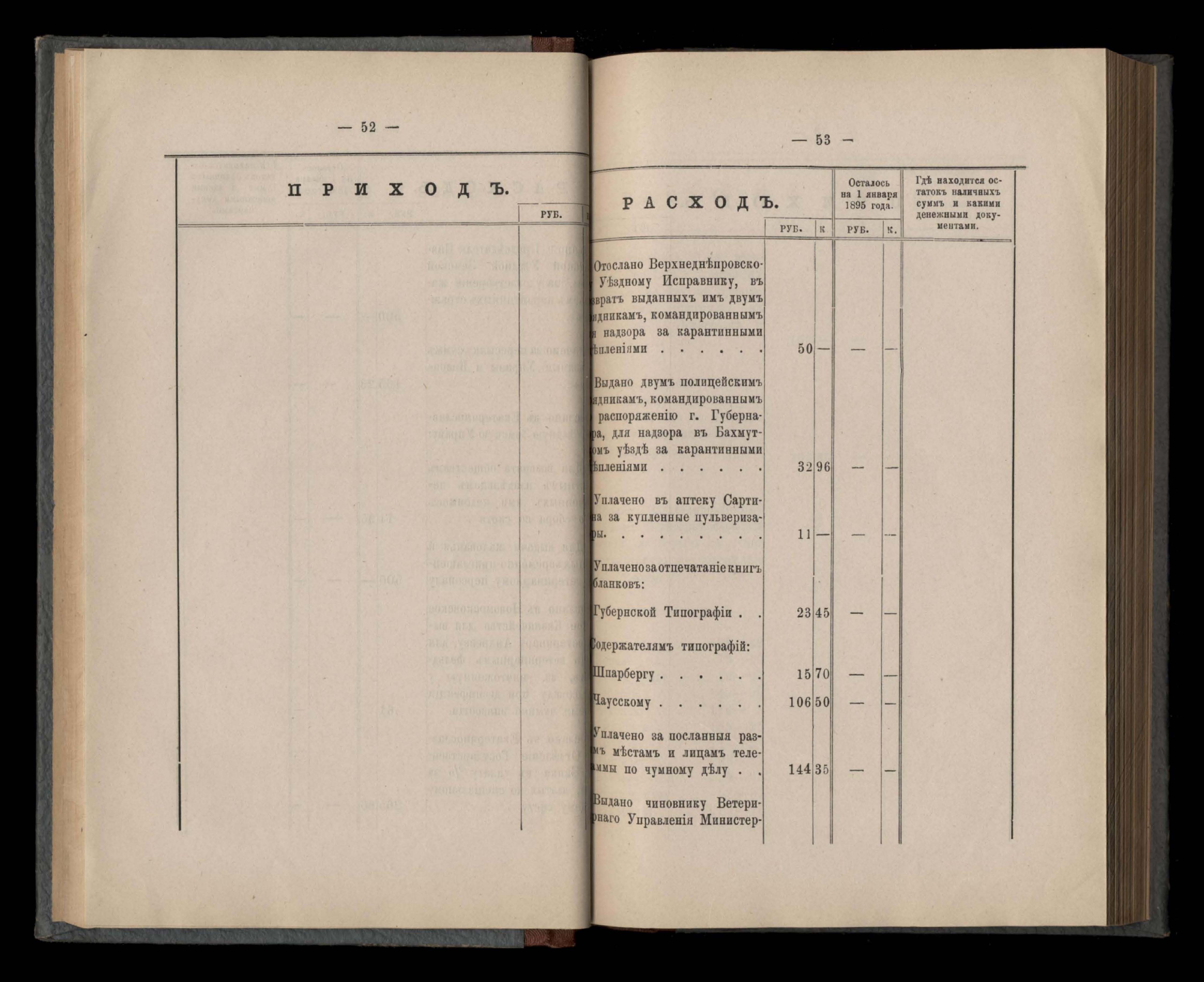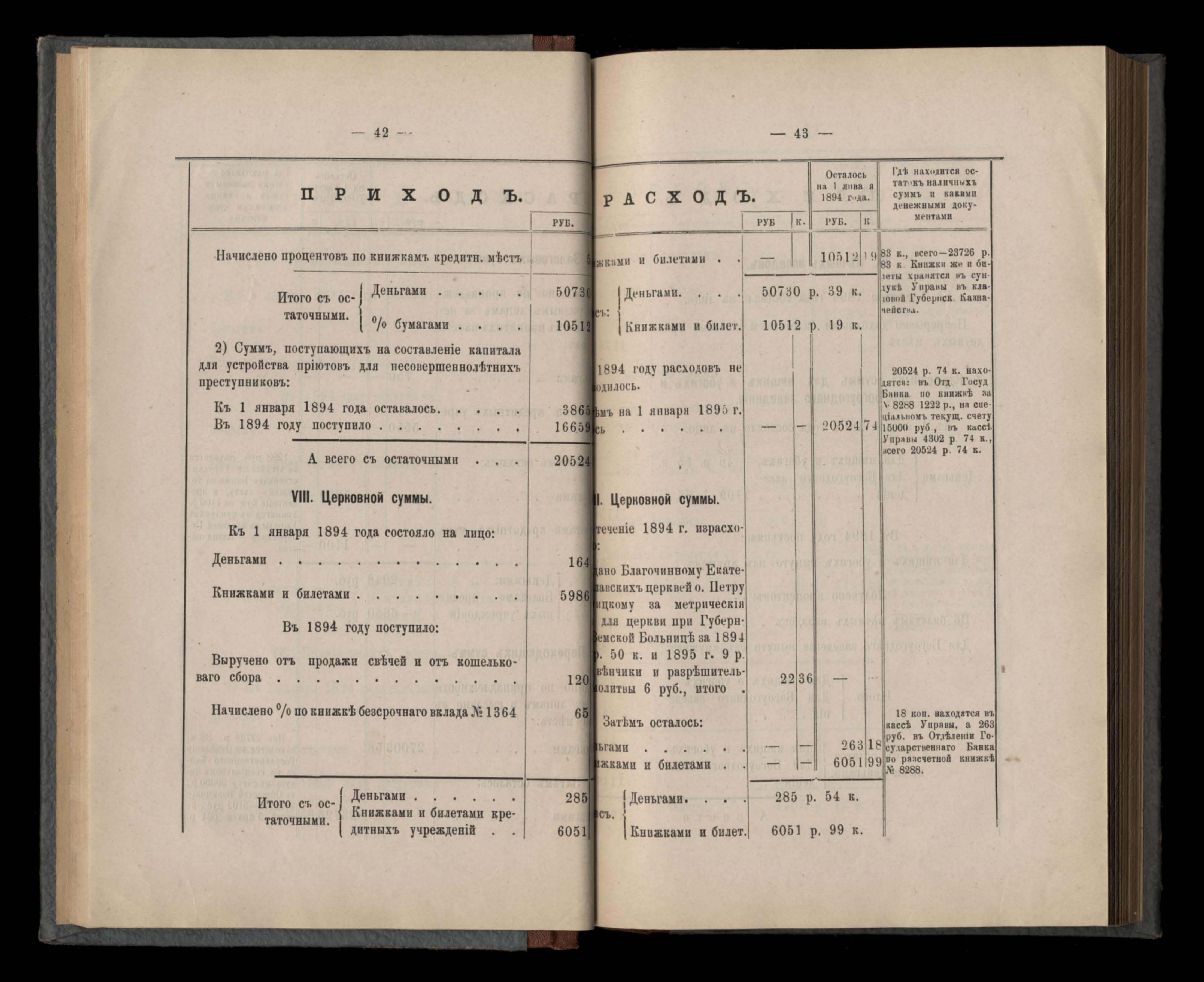 Въдомостъ Екатеринославской губернской земской управы о приходъ и расходъ суммъ имперскаго продовольственнаго капитала, отпущеннаго Правительствомъ для выдачи въ ссуду сельскимъ обществамъ на продовольствіе 1894 годъ