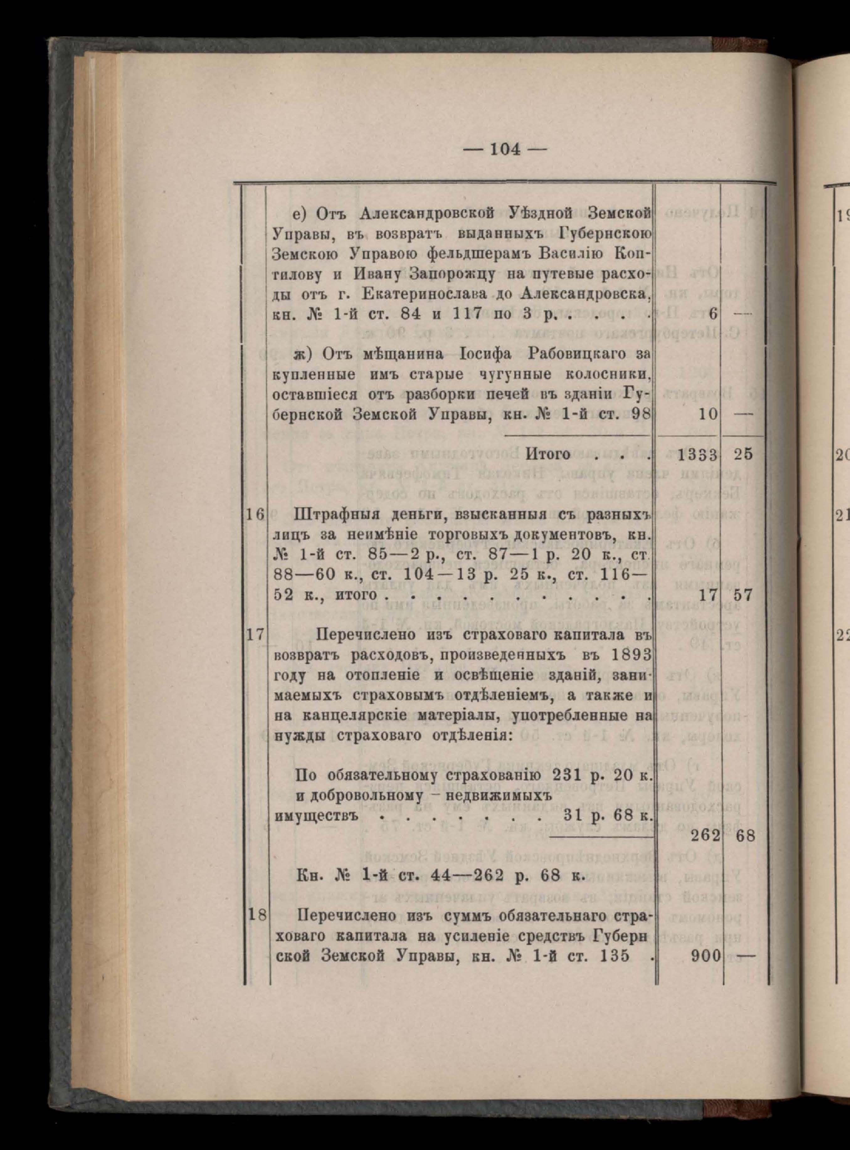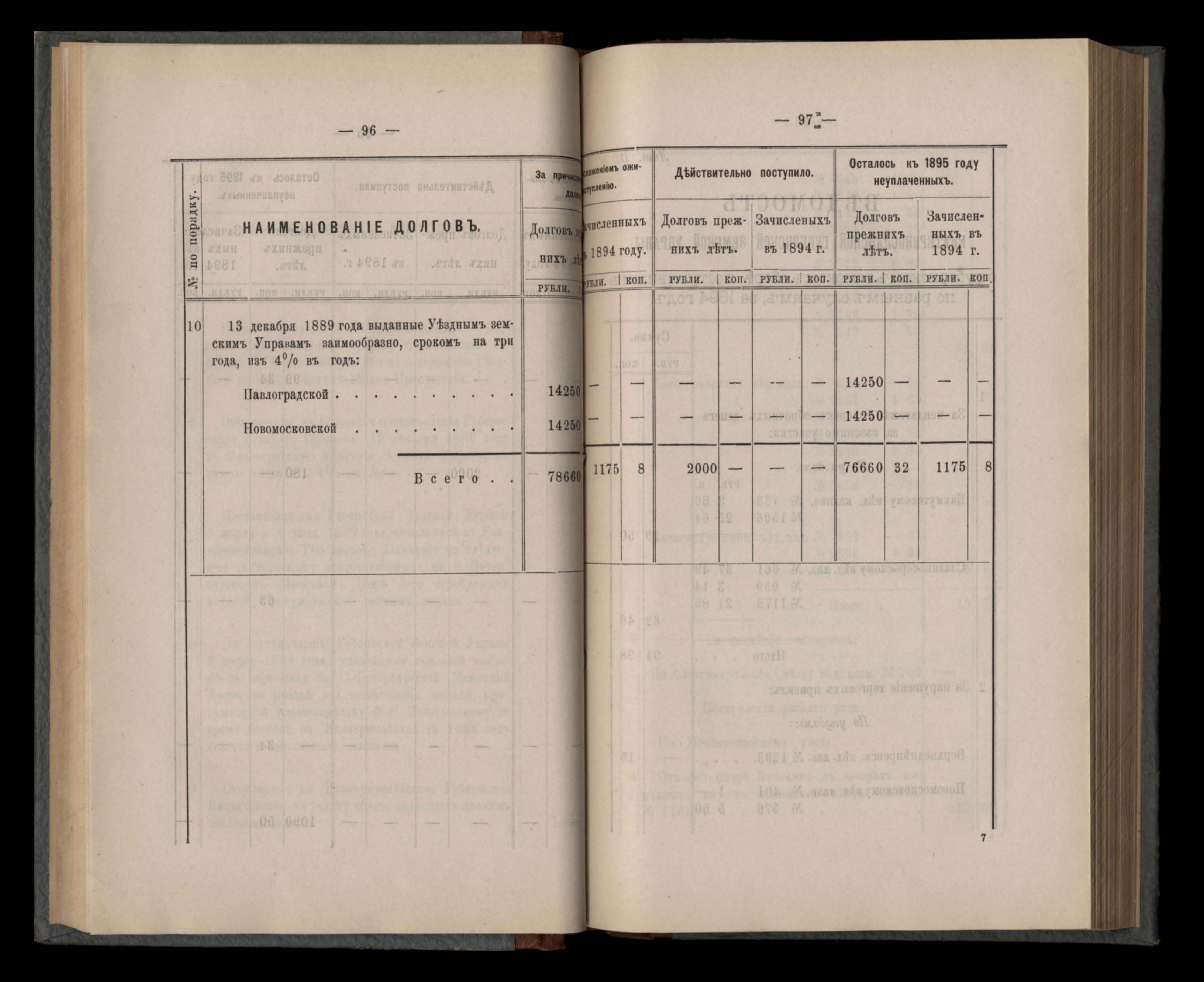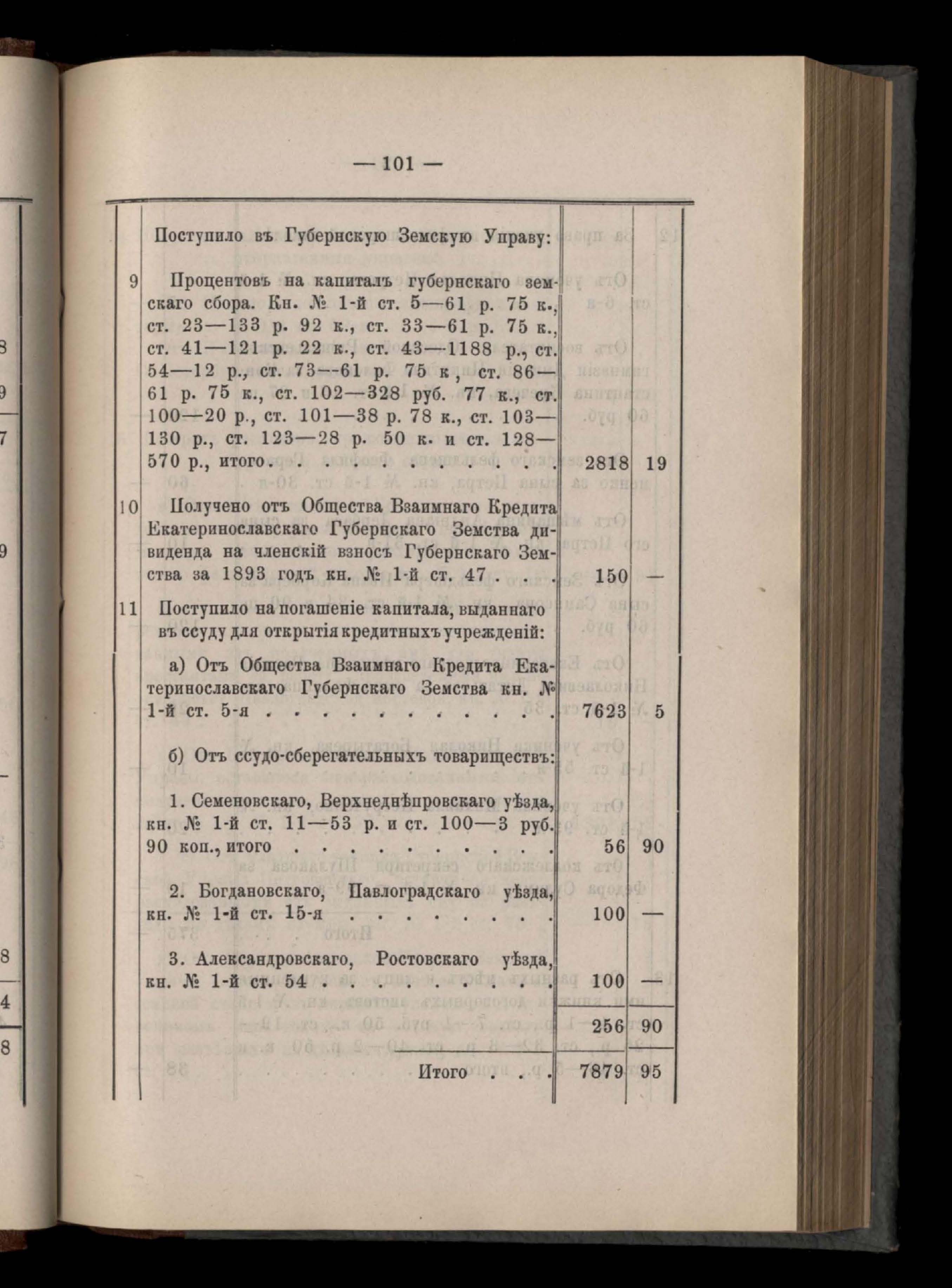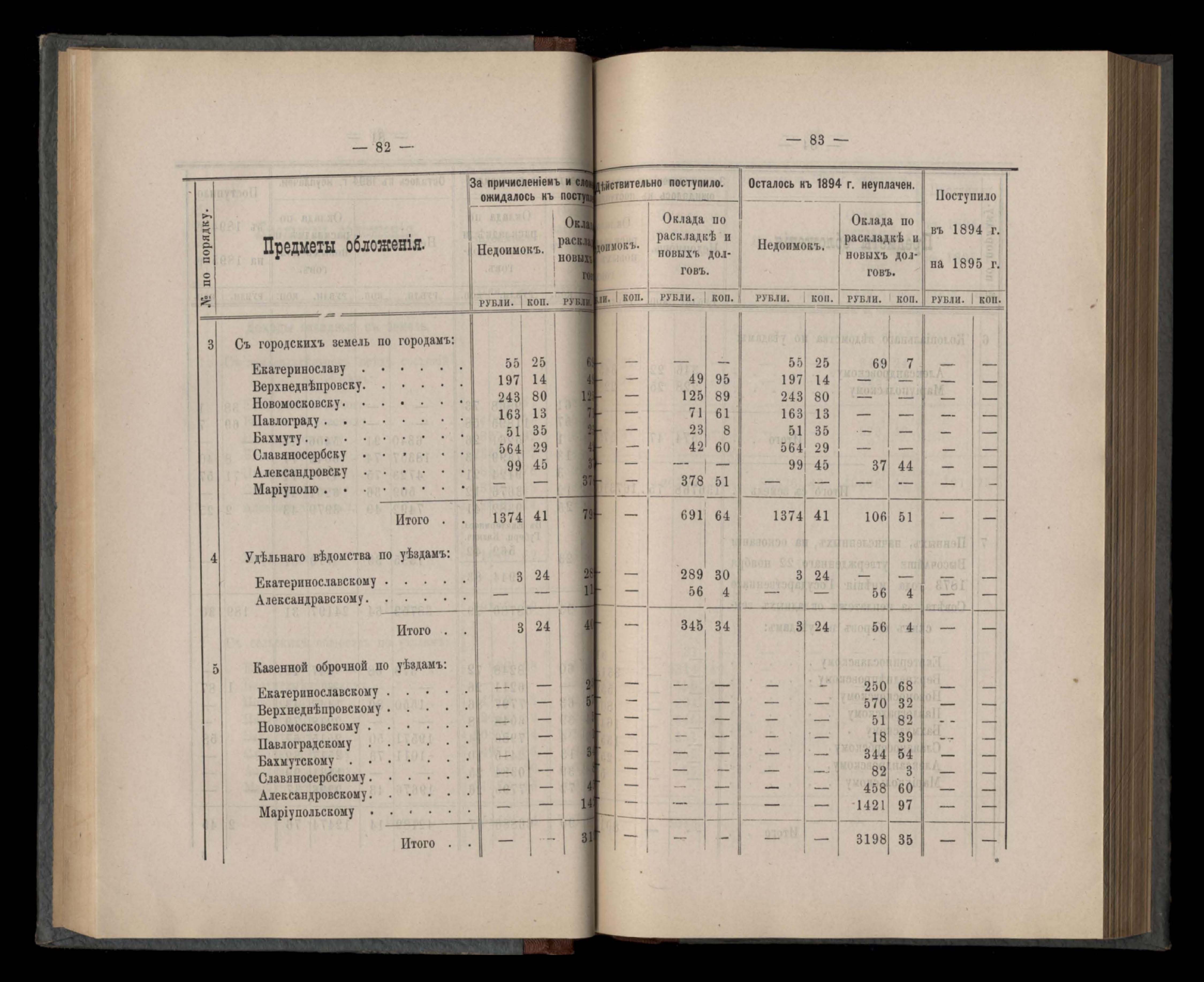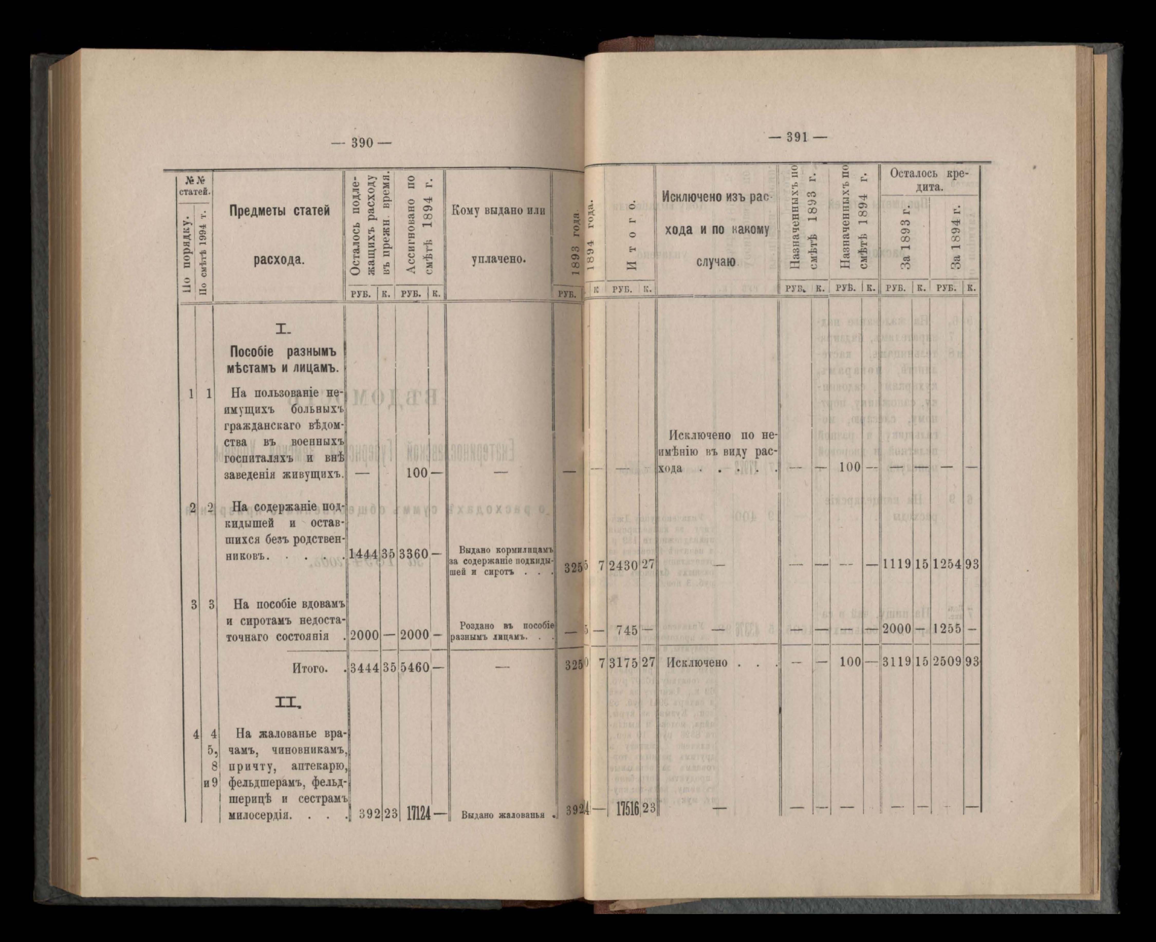 Въдомостъ Екатеринославской губернской земской управы о приходъ и расходъ суммъ имперскаго продовольственнаго капитала, отпущеннаго Правительствомъ для выдачи въ ссуду сельскимъ обществамъ на продовольствіе 1894 годъ
