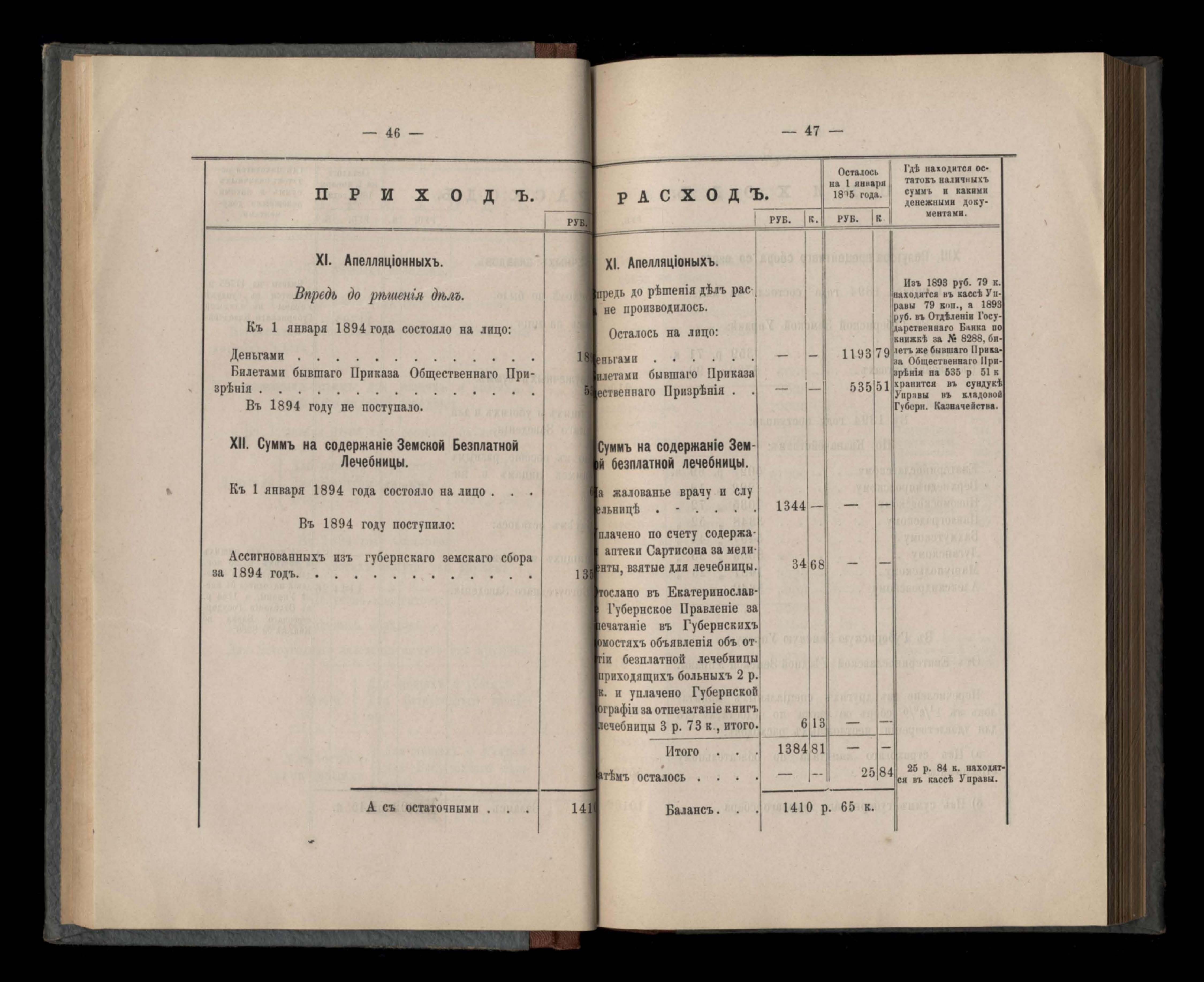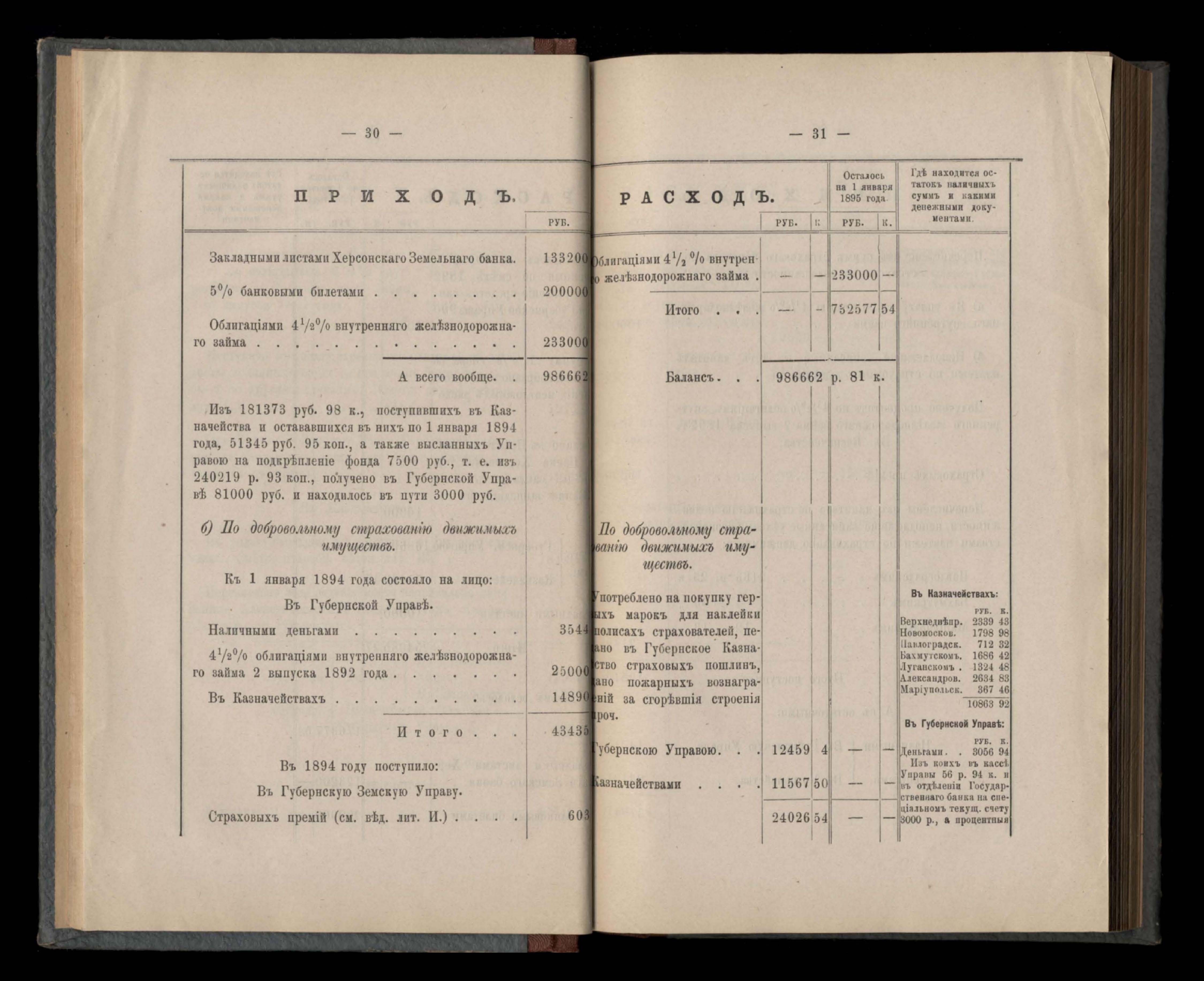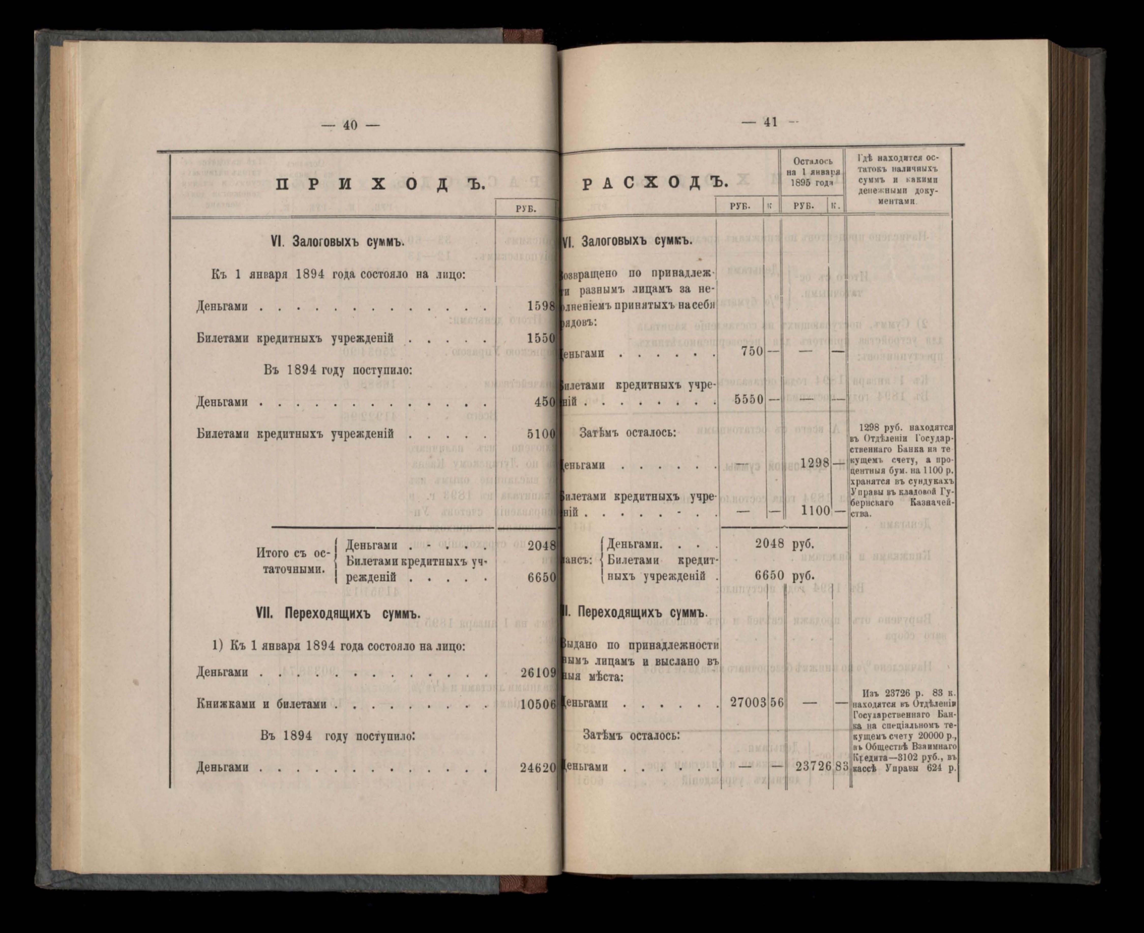 Приложеніе къ кассовому отчету за 1894 годъ