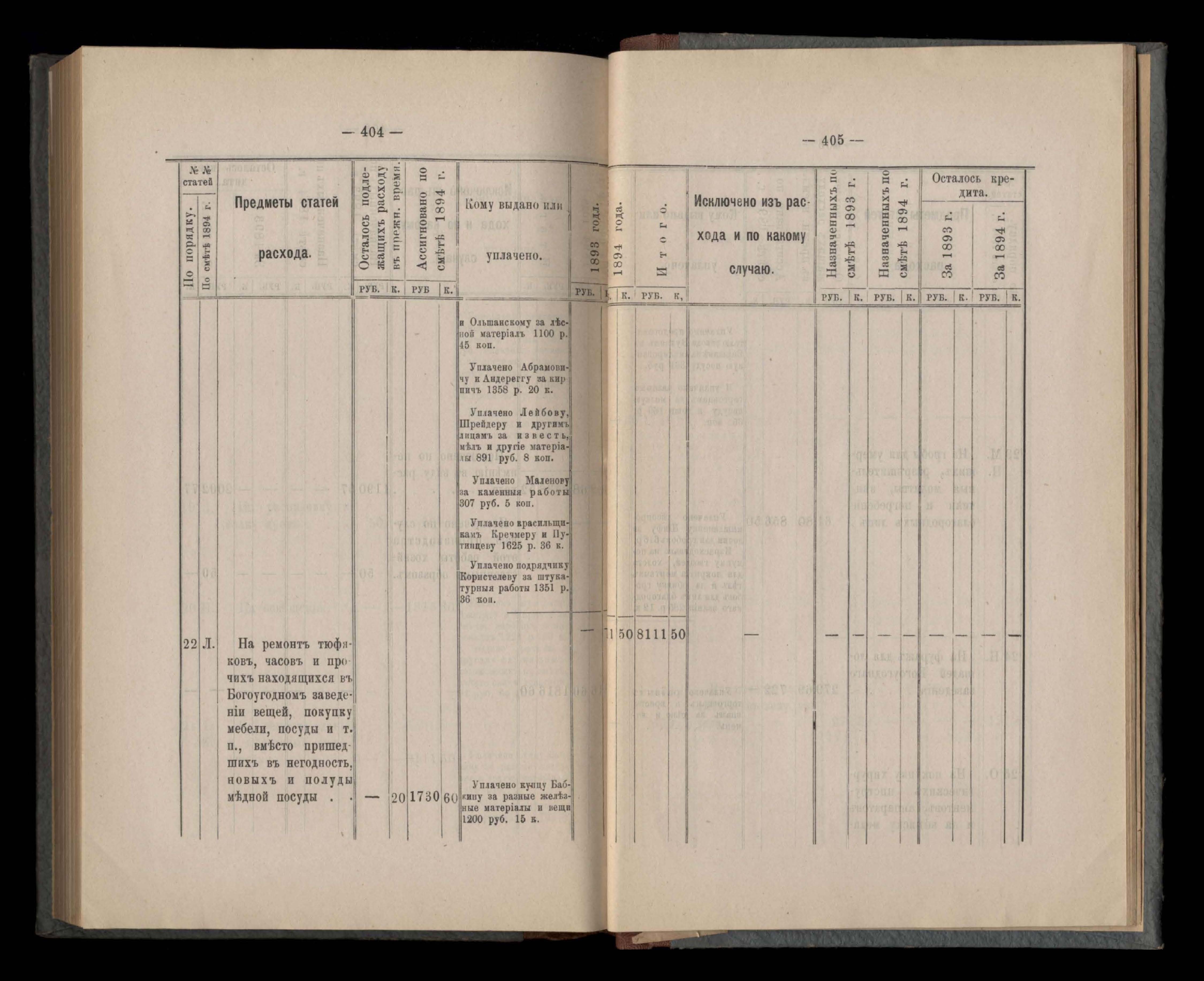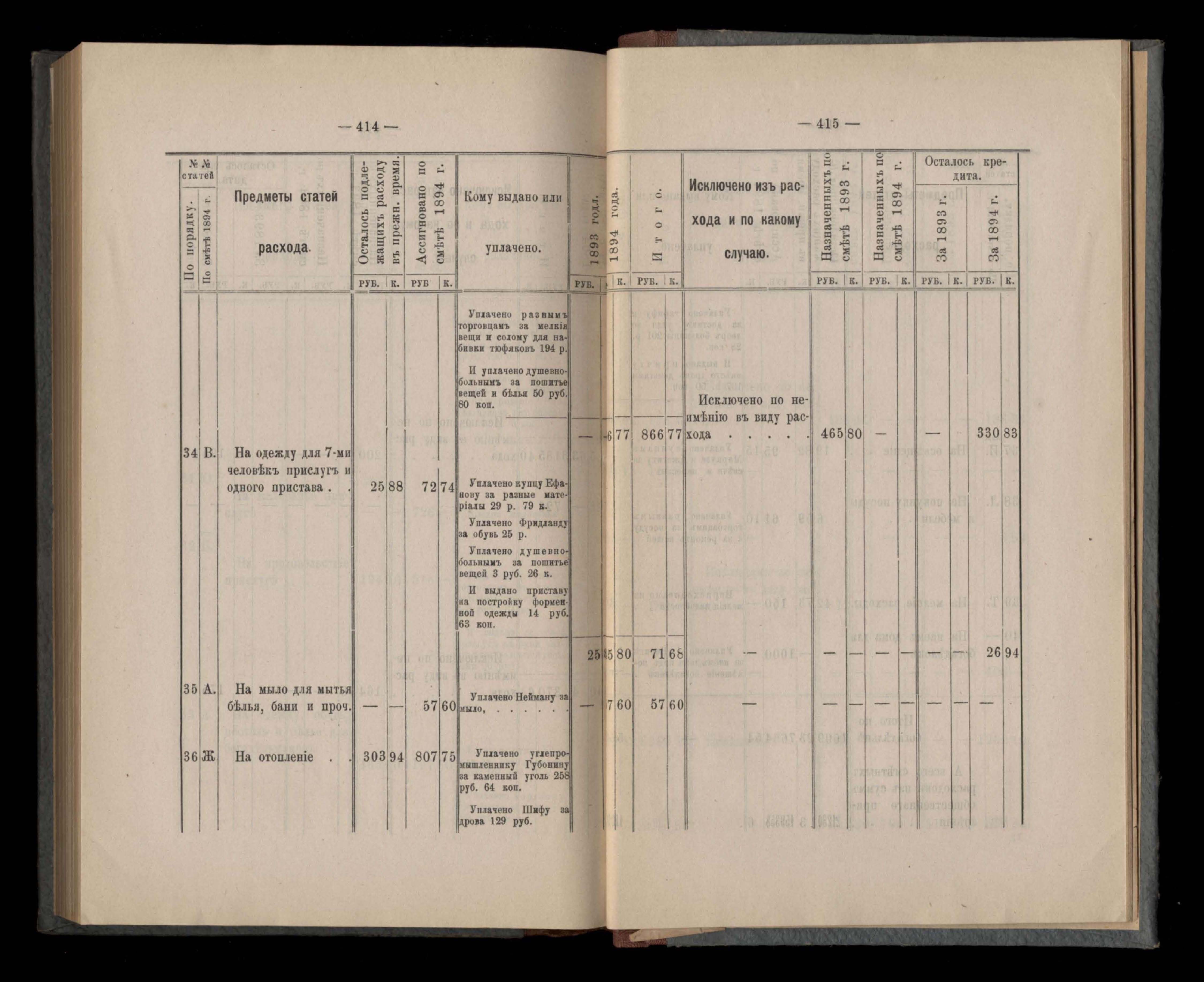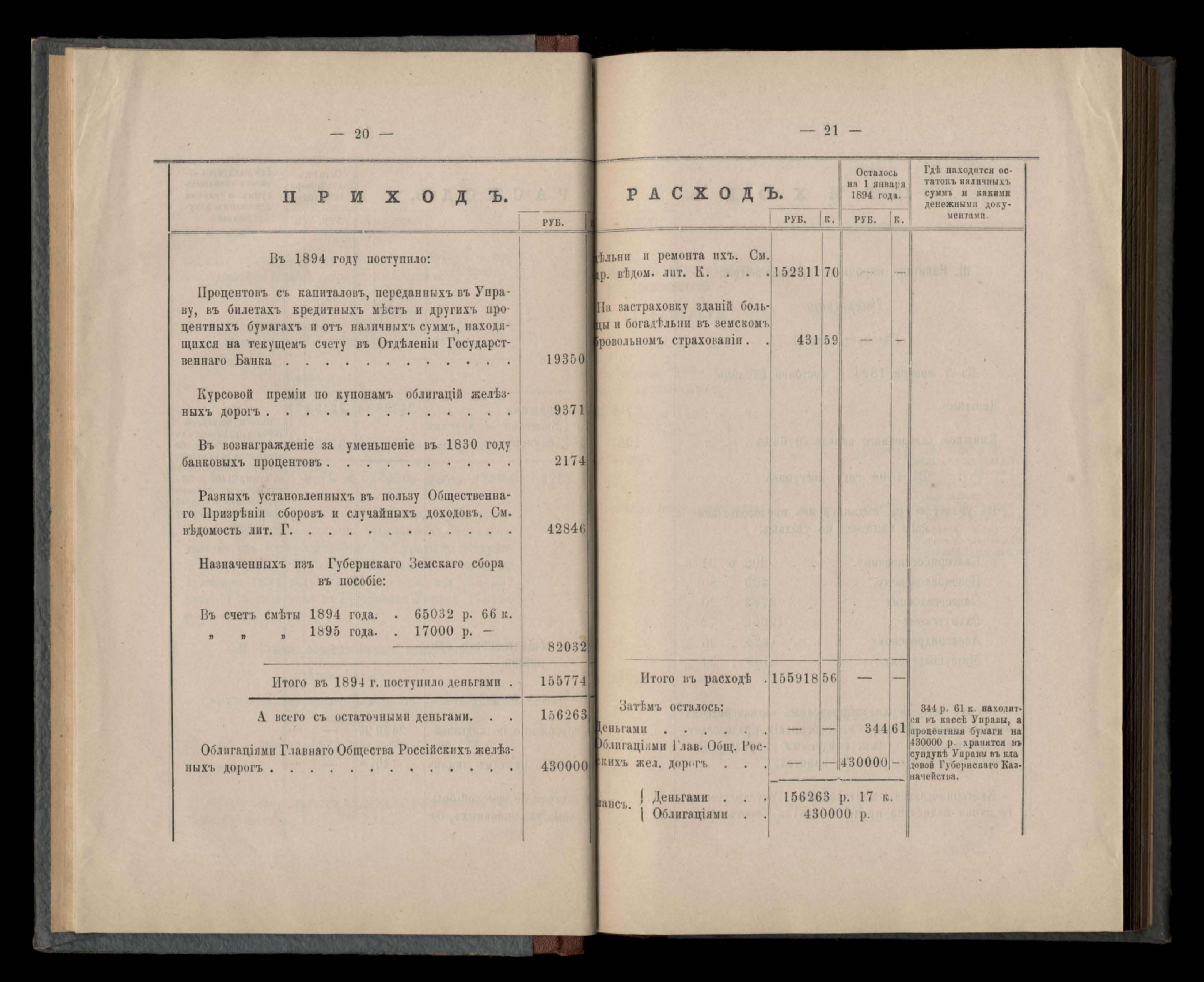 Приложеніе къ кассовому отчету за 1894 годъ
