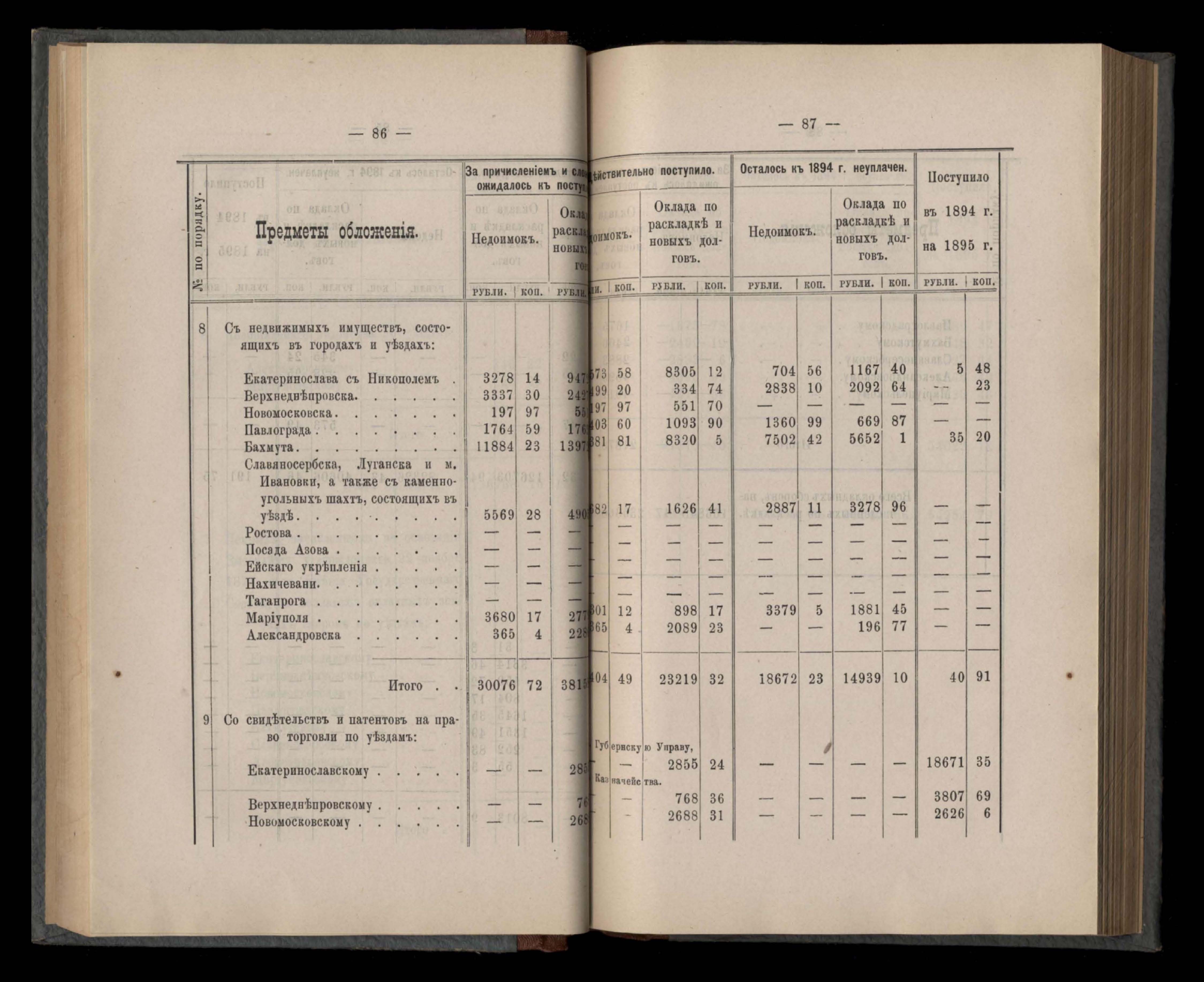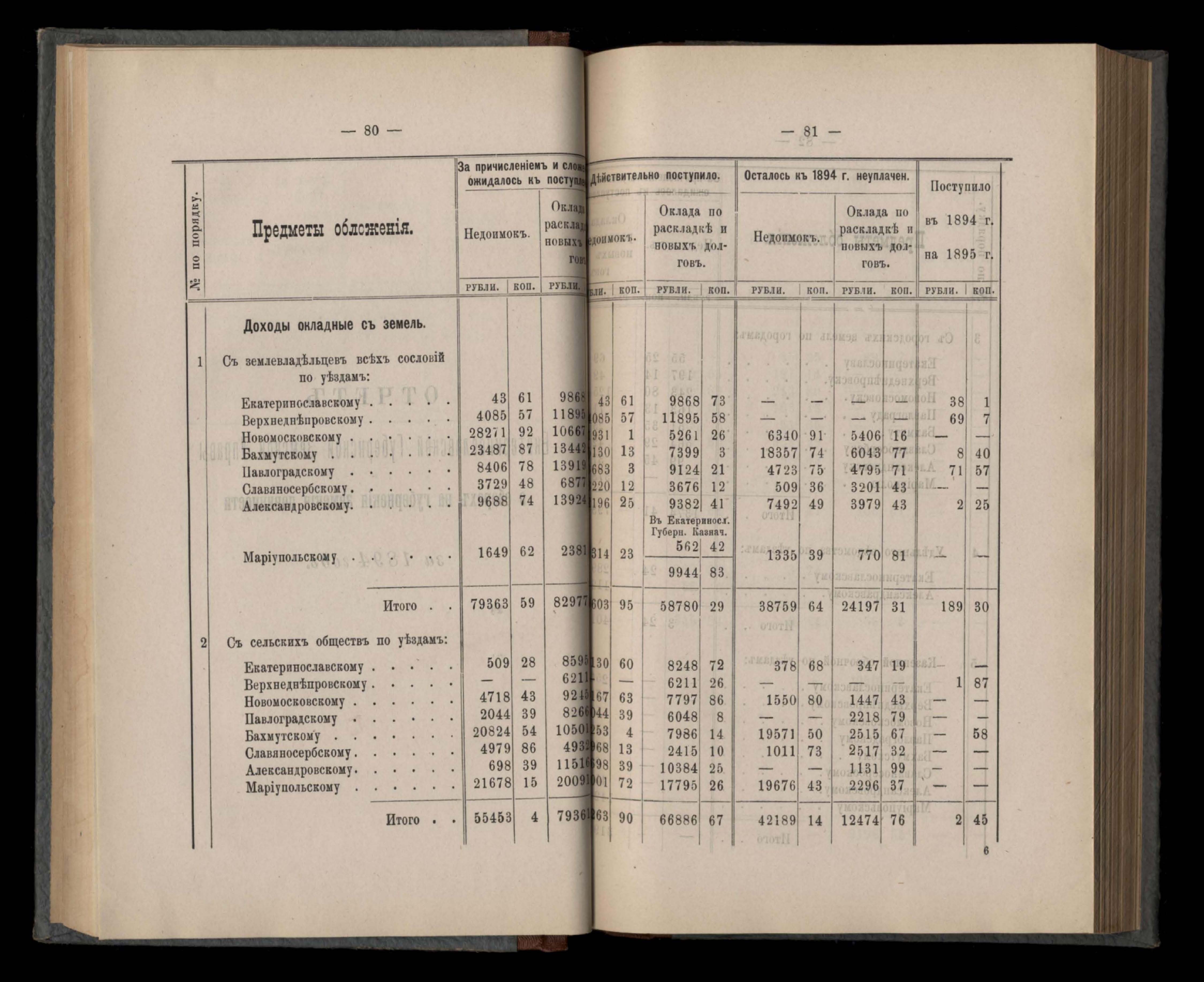 Отчетъ Екатеринославской Губернской Земской Управы о сборахъ на губернскія земскія повинности за 1894 годъ