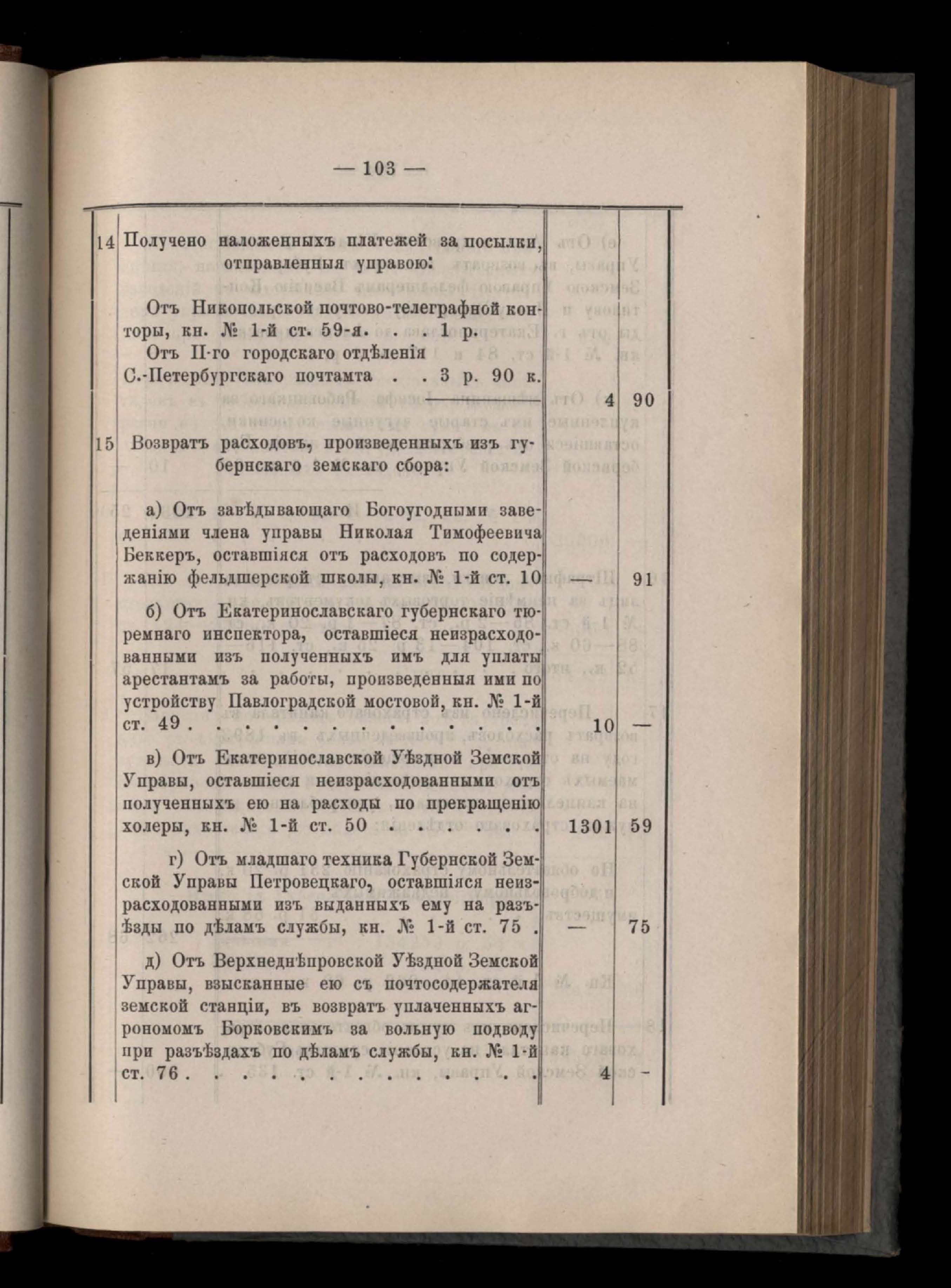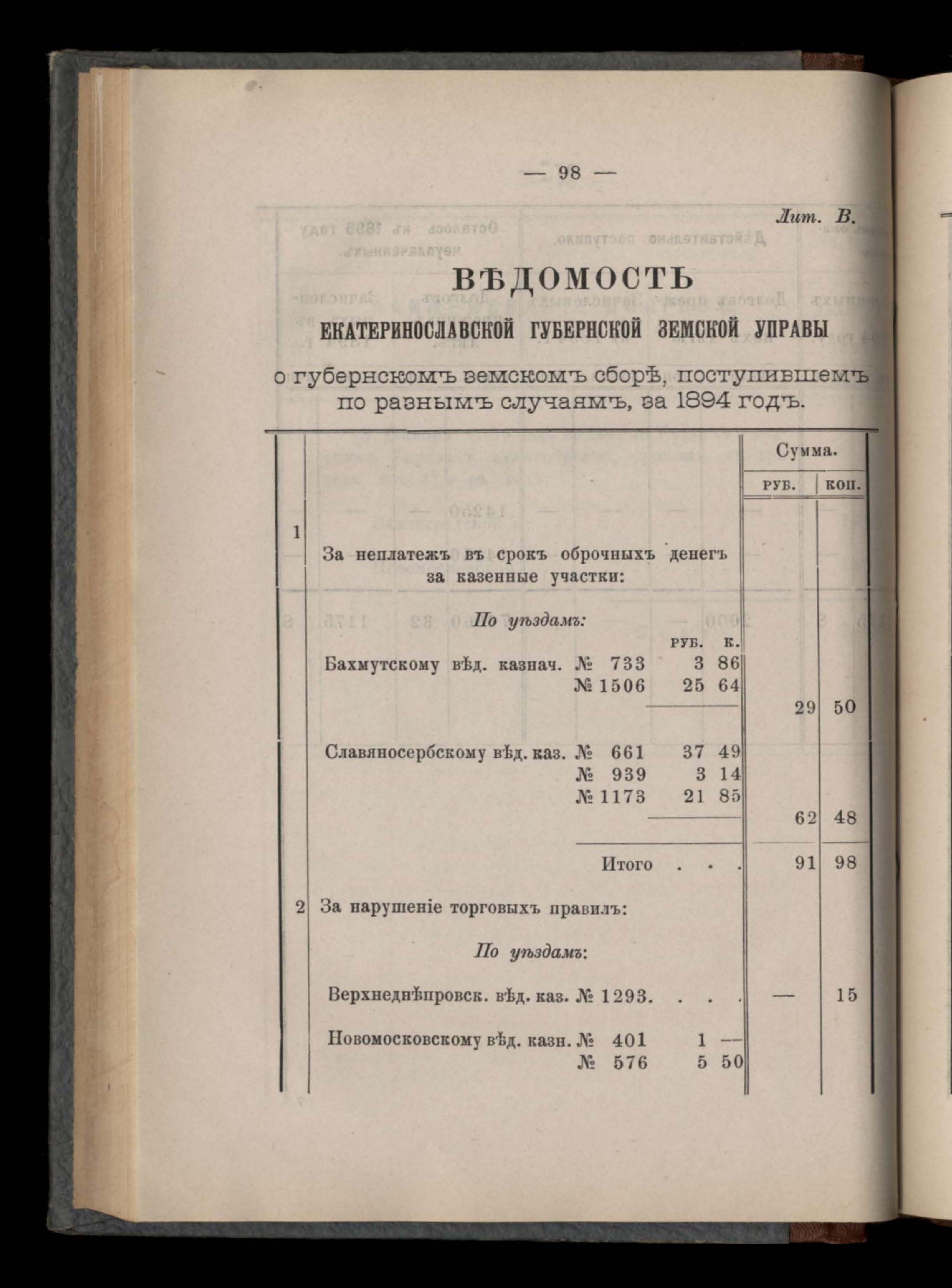 Въдомостъ Екатеринославской губернской земской управы о губернскомъ земскомъ сборъ, поступившемъ по разнымъ случаямъ за 1894 годъ