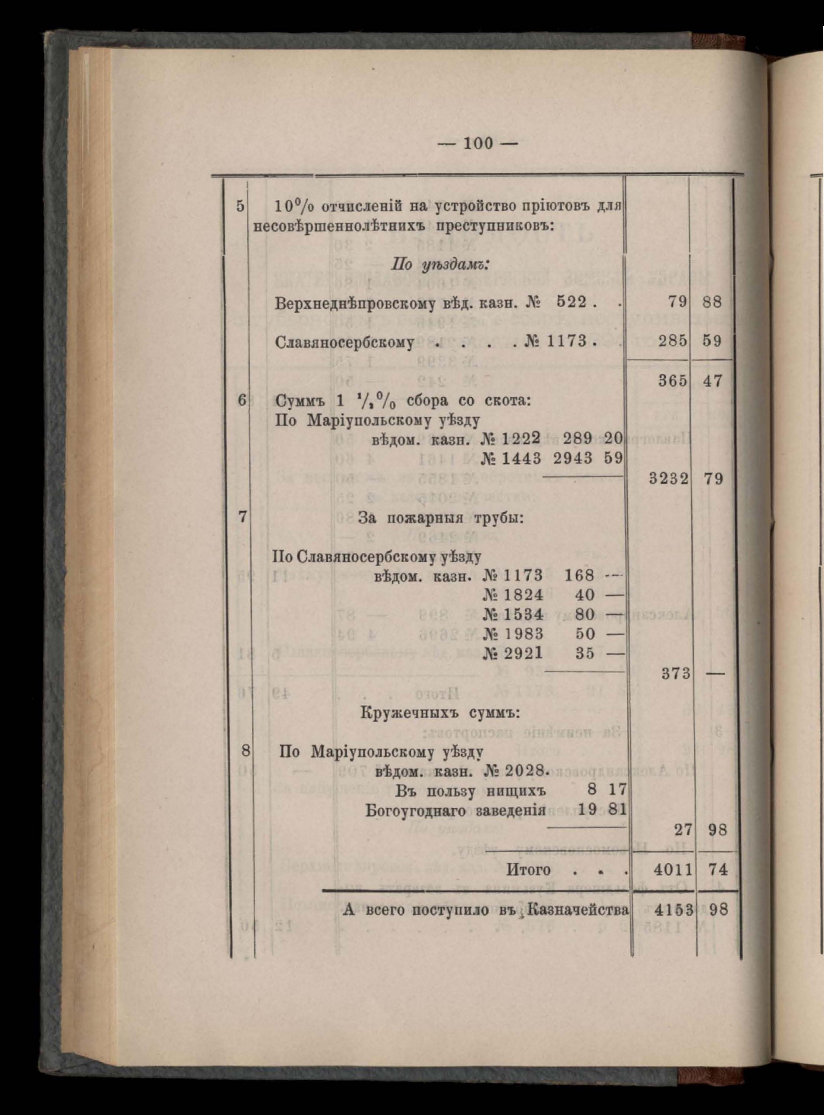 Въдомостъ Екатеринославской губернской земской управы о доходахъ суммъ общественнаго призрънія за 1894 годъ