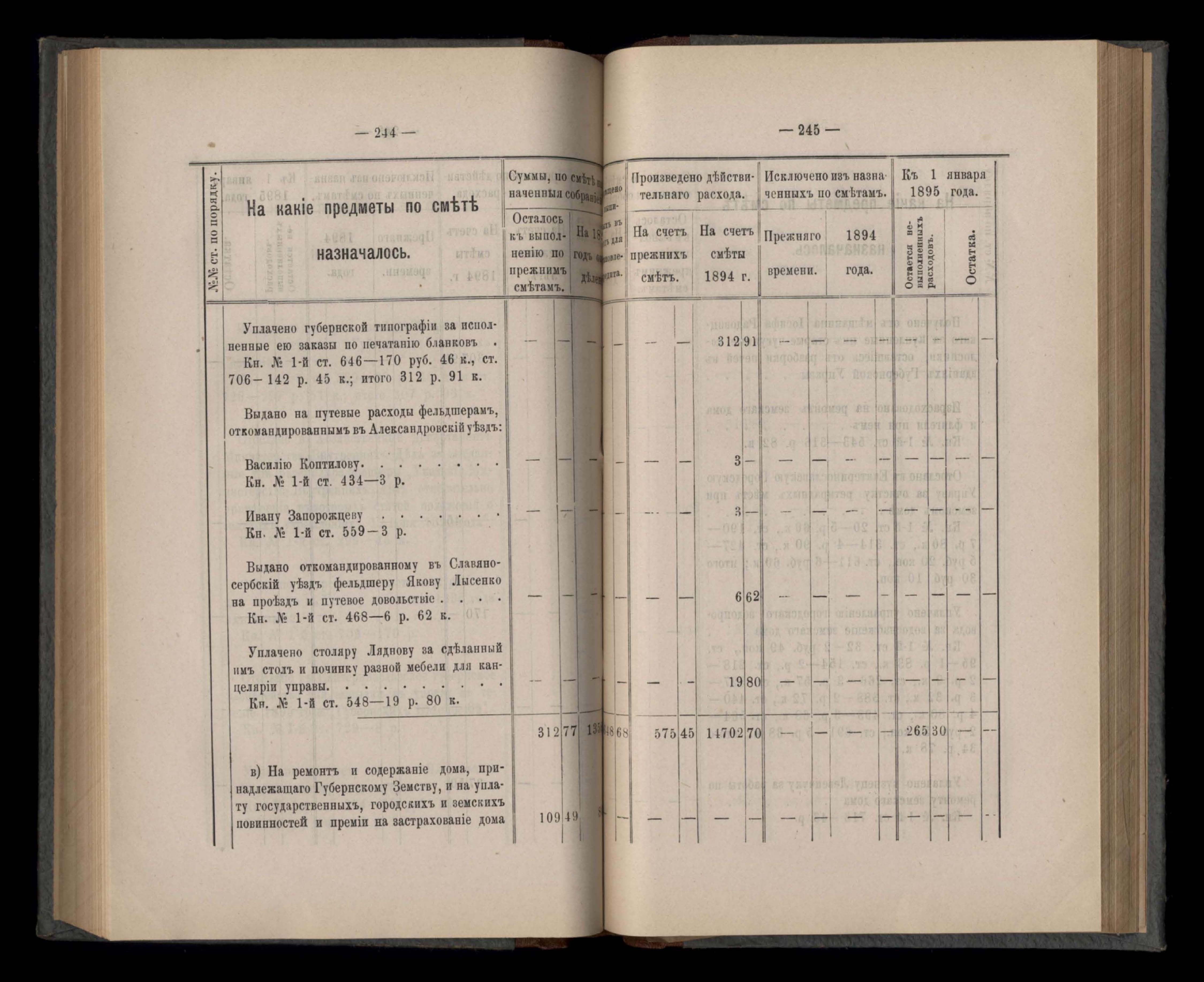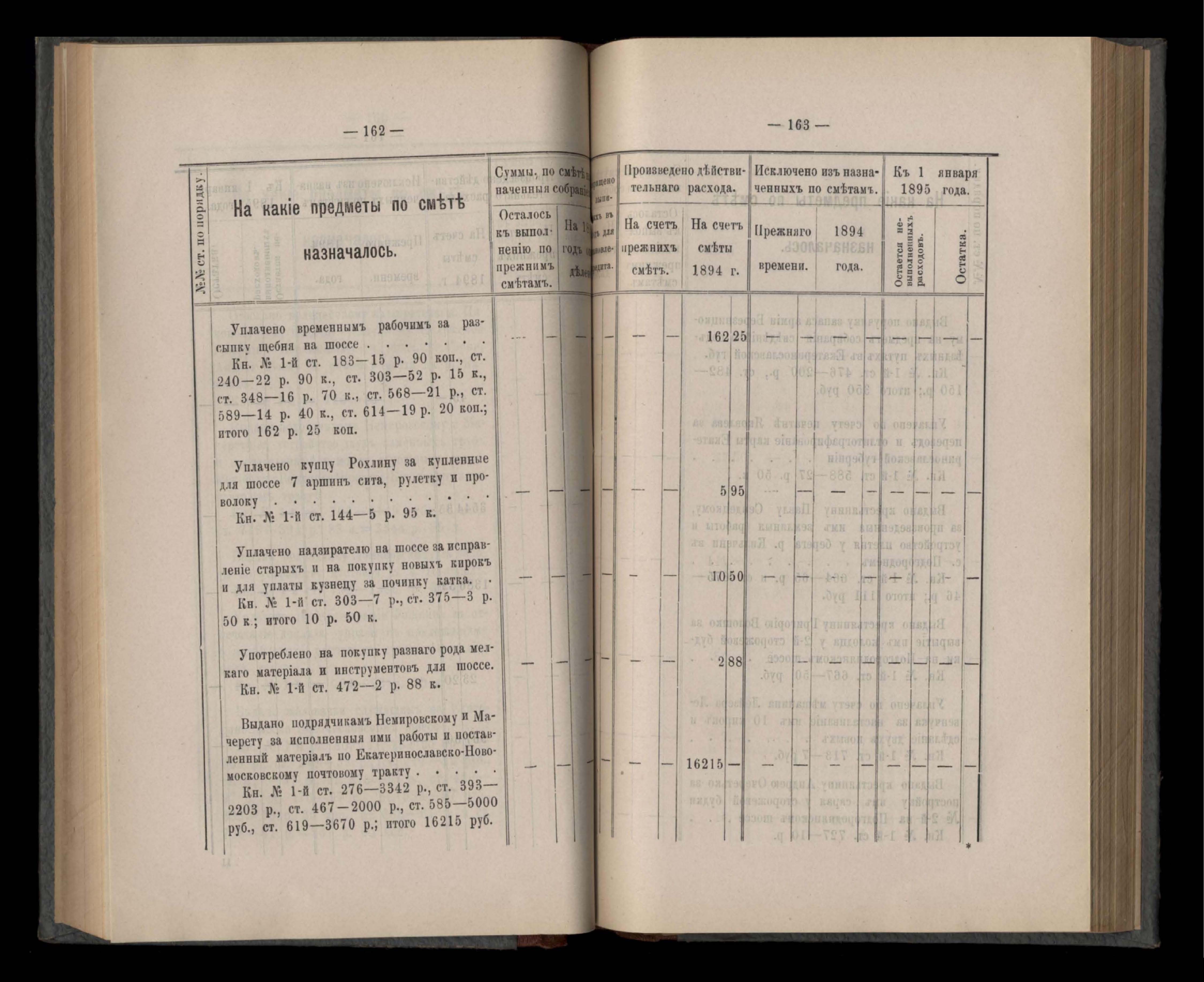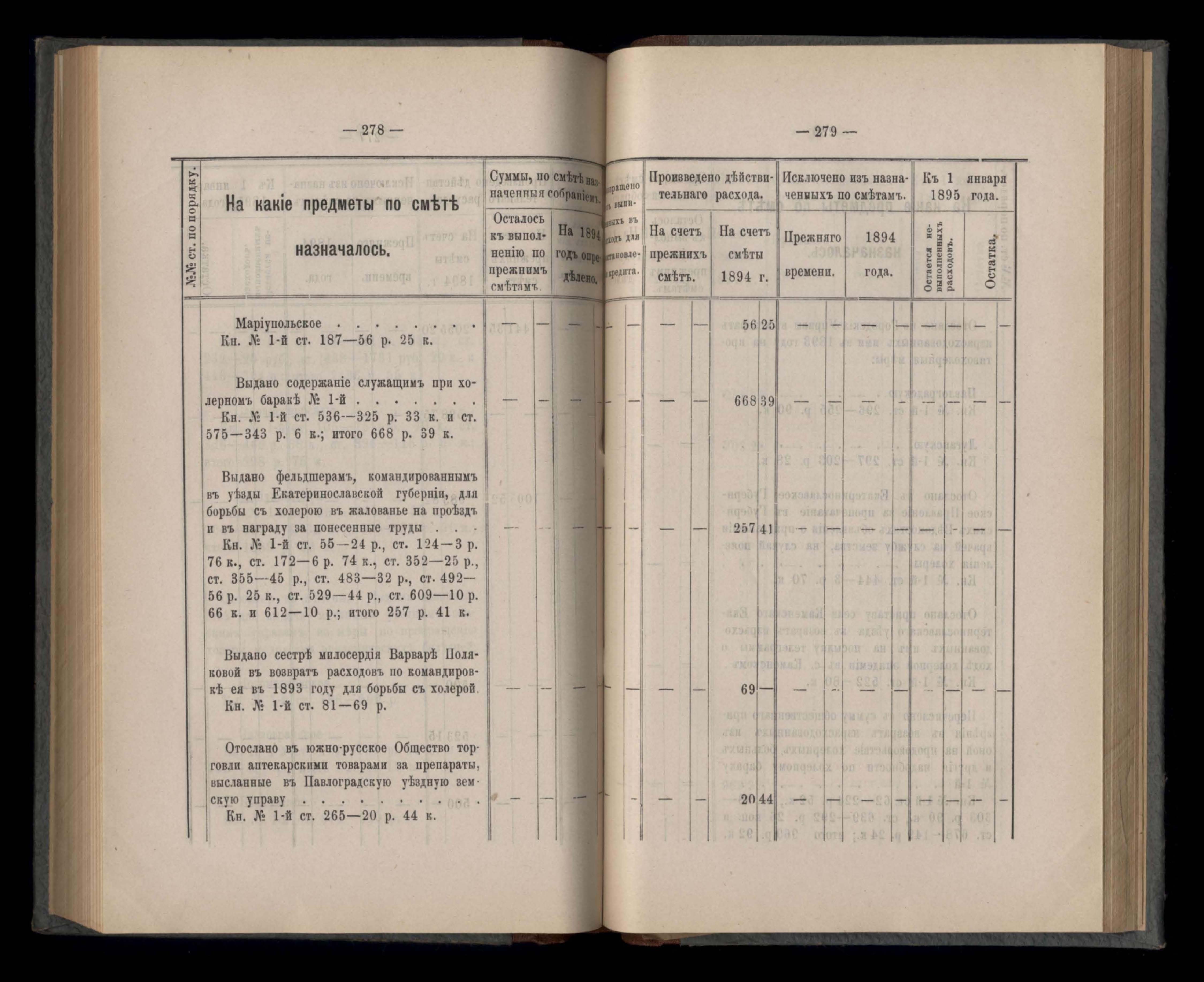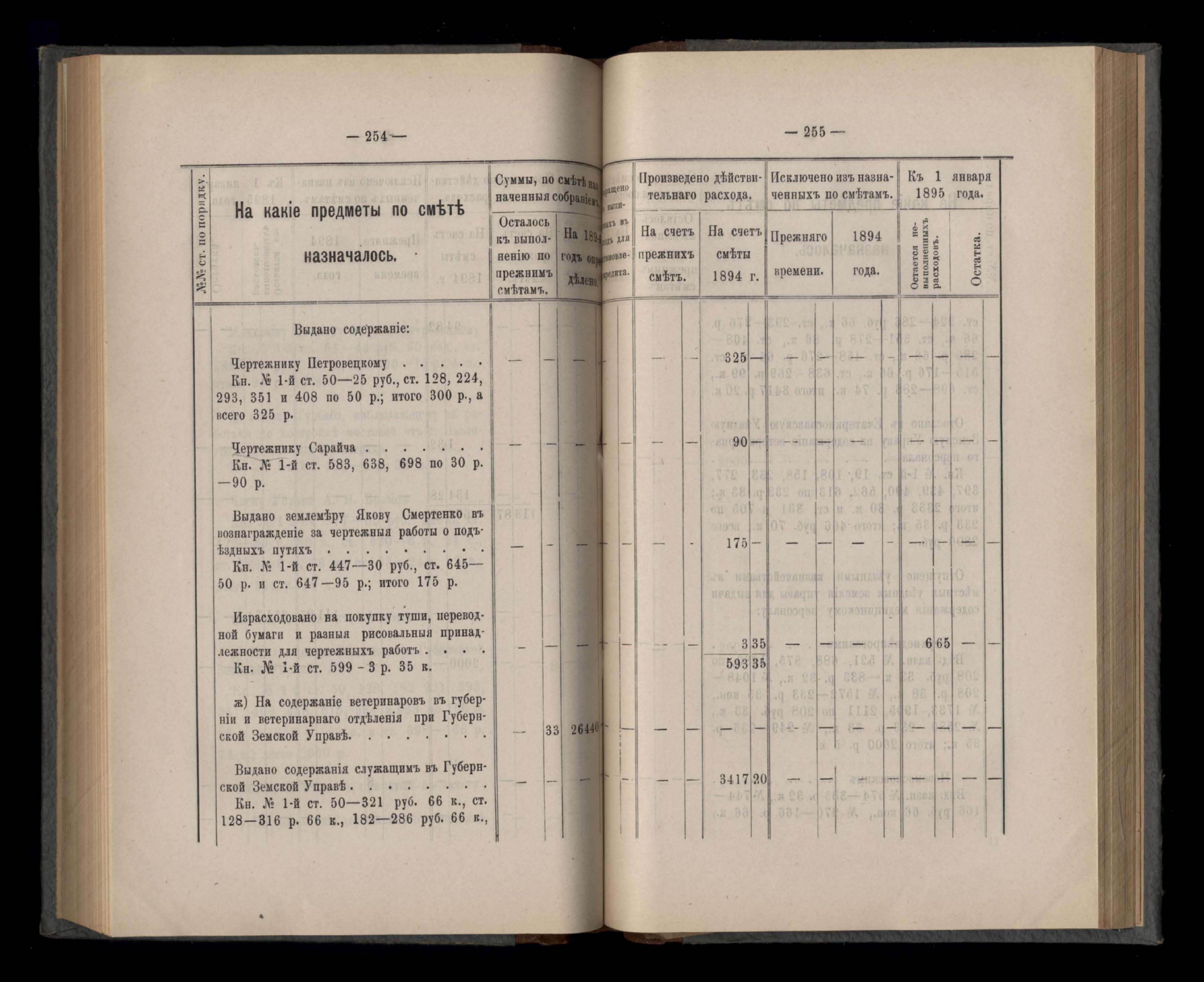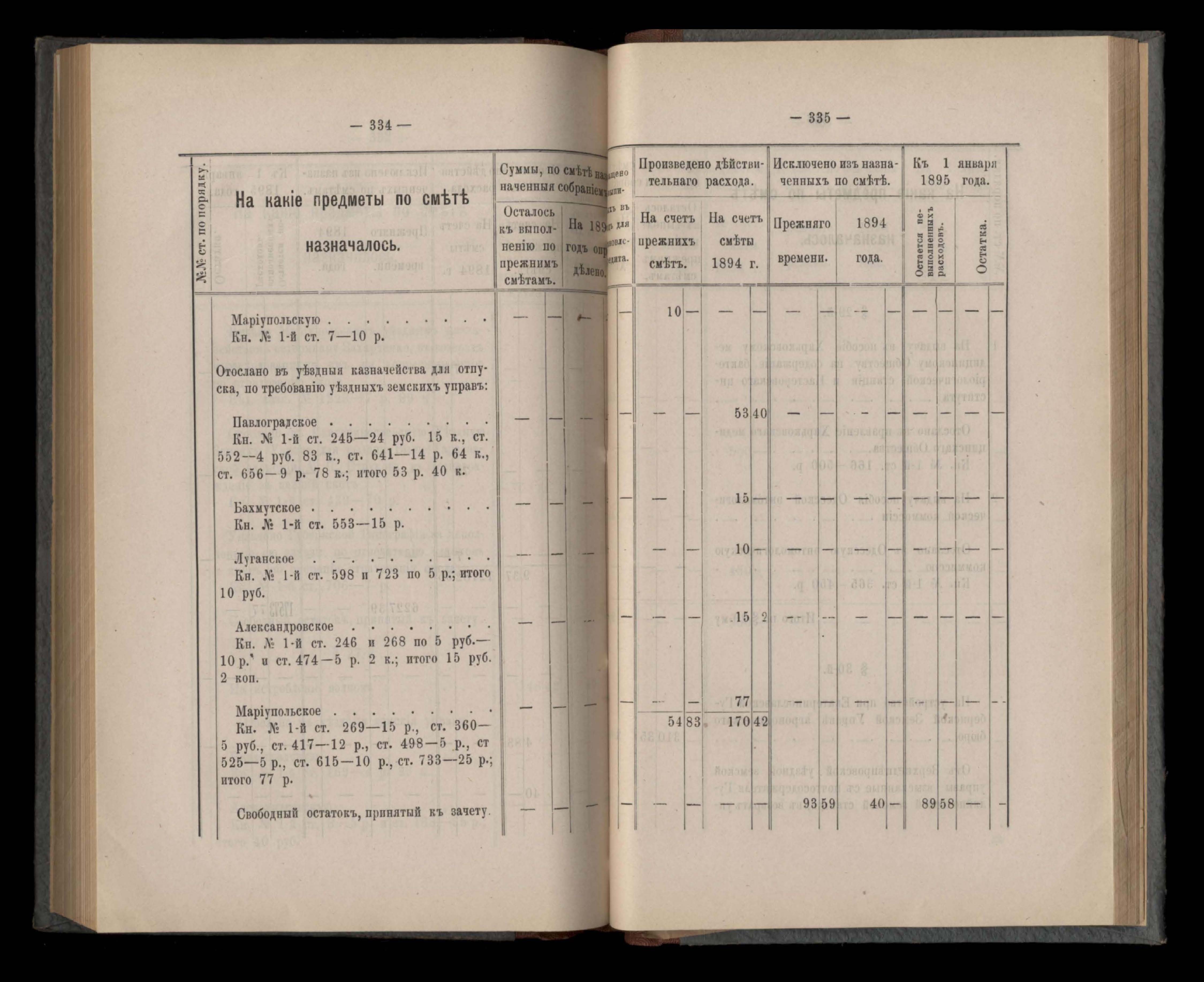Въдомостъ Екатеринославской губернской земской управы о расходъ суммъ губернскаго земскаго сбора, ассигнованныхъ по смътъ за 1894 годъ