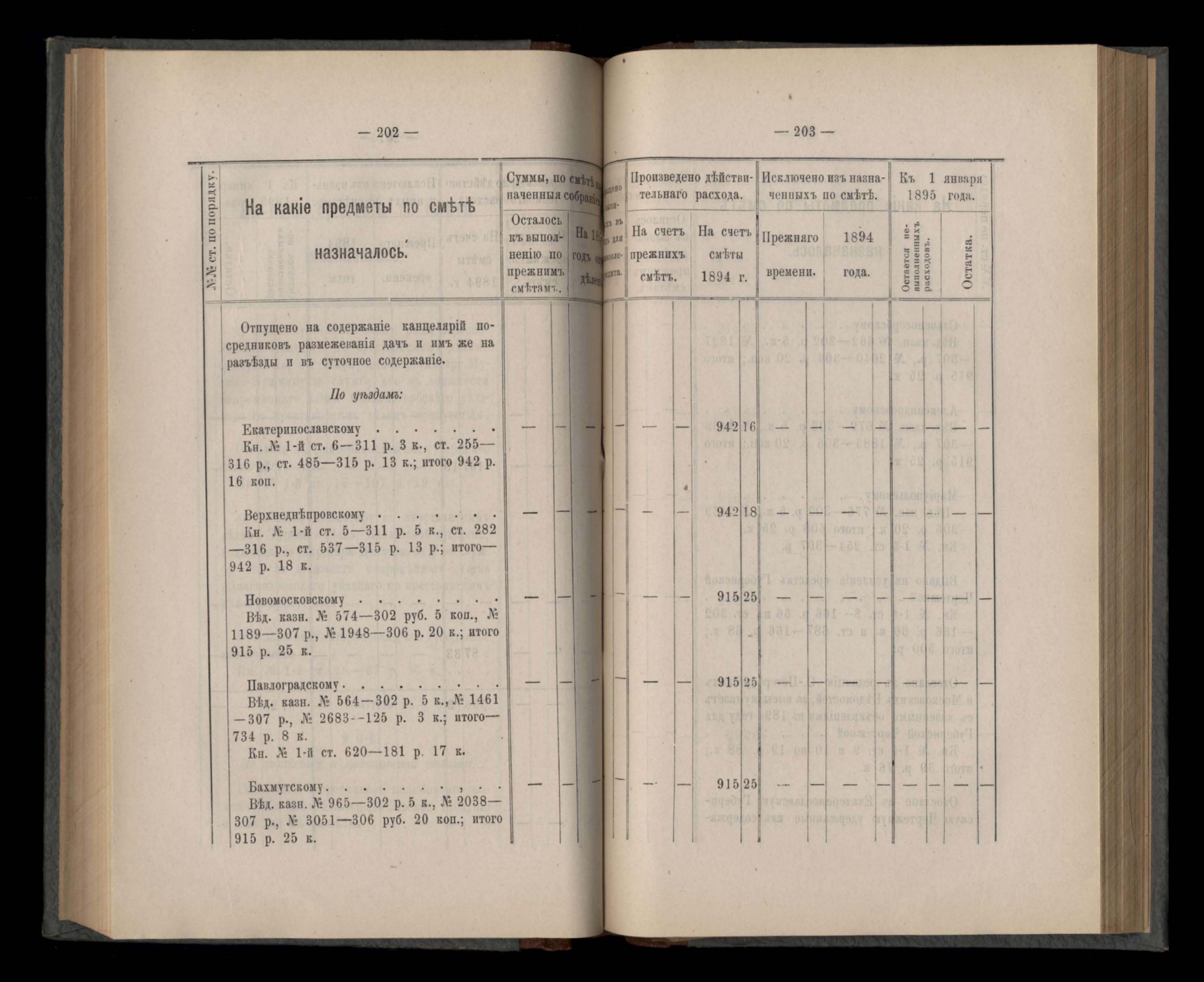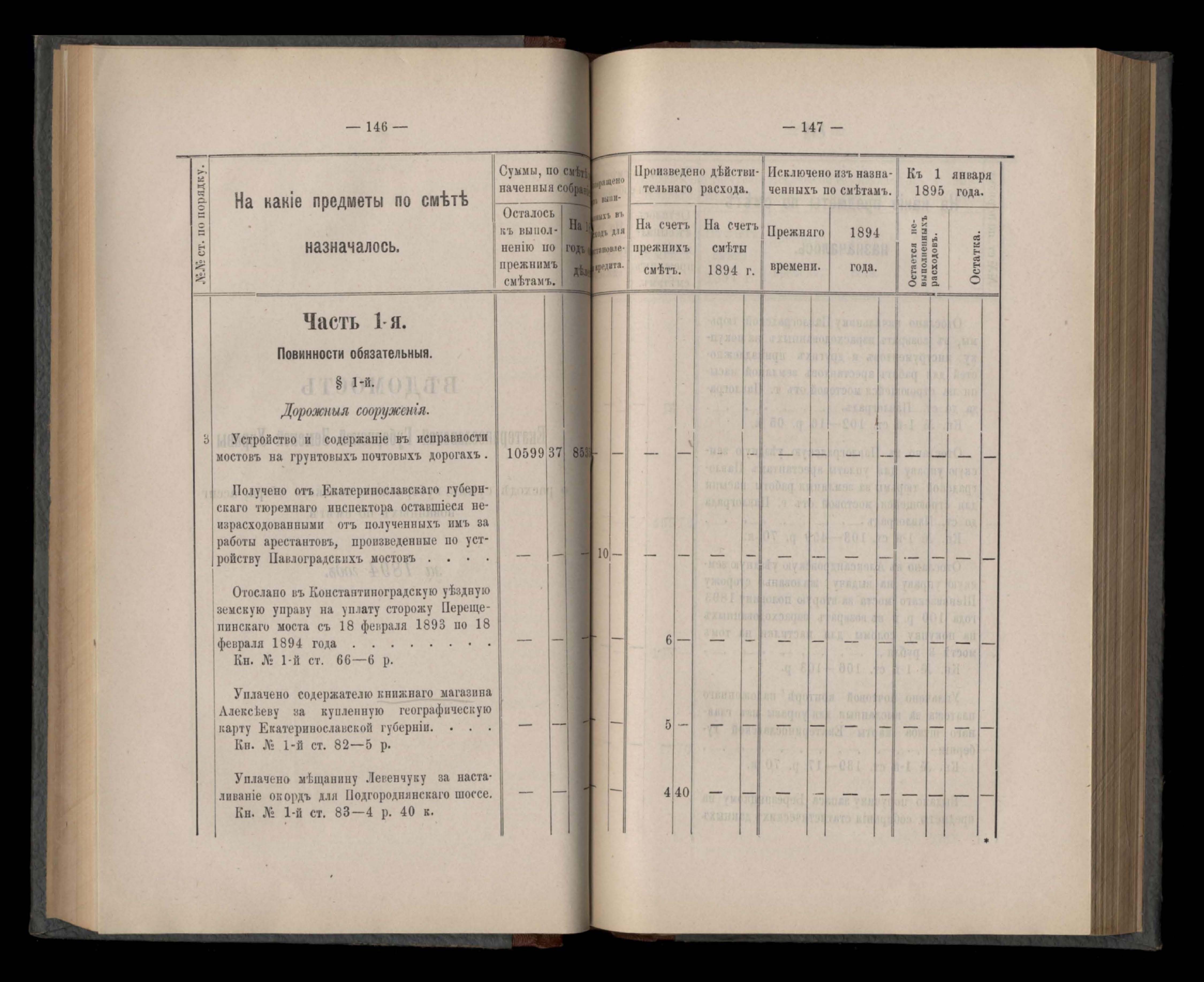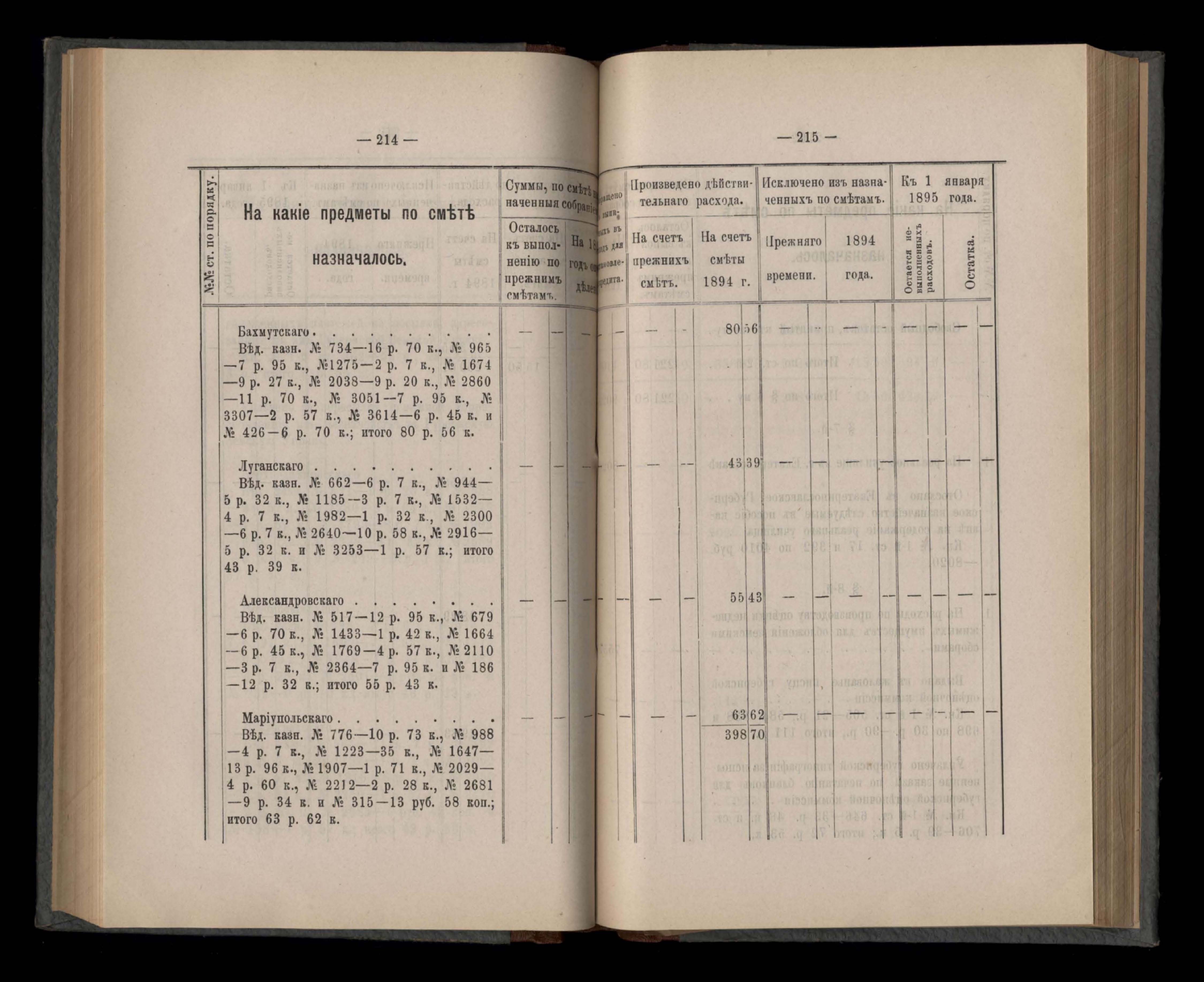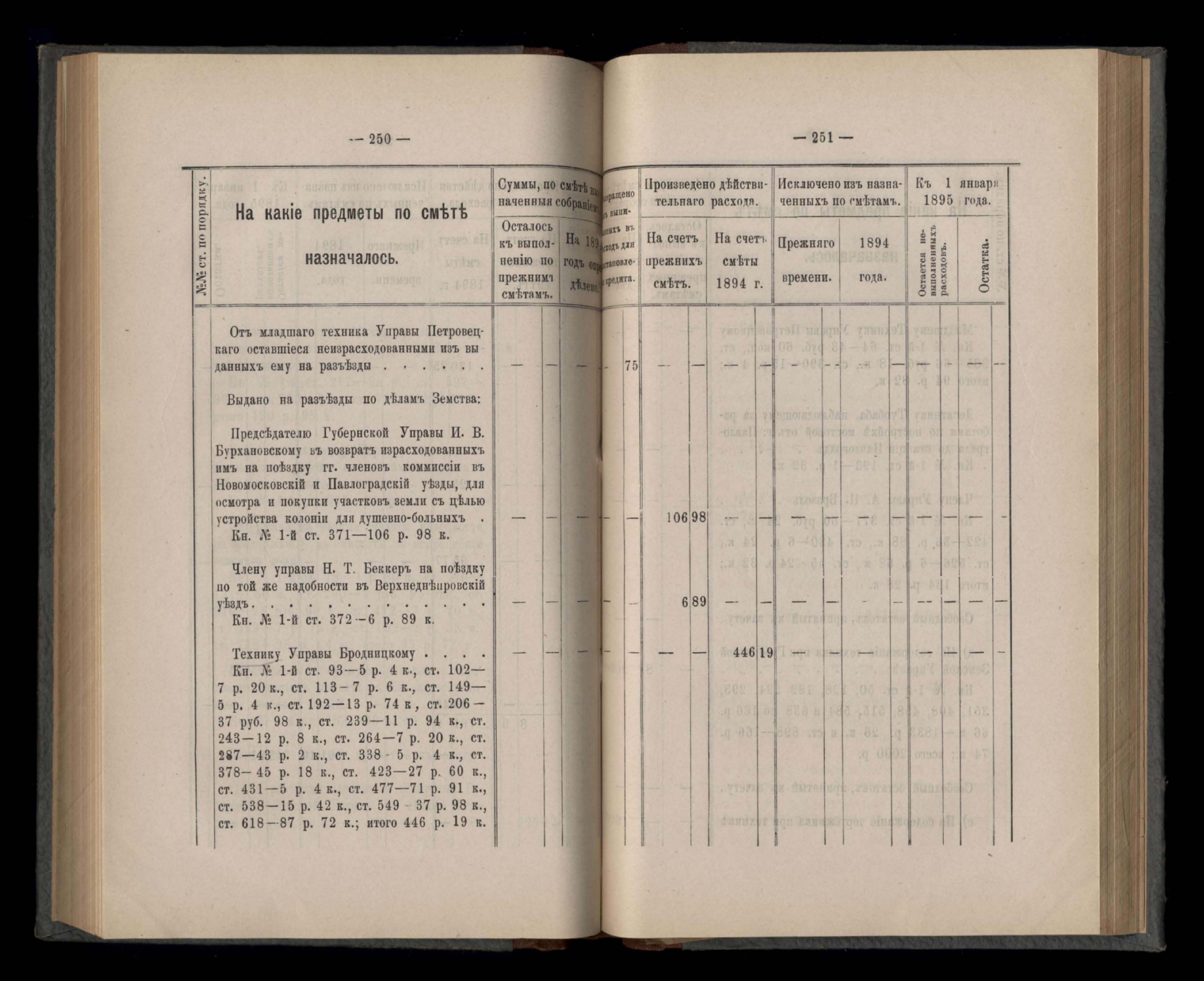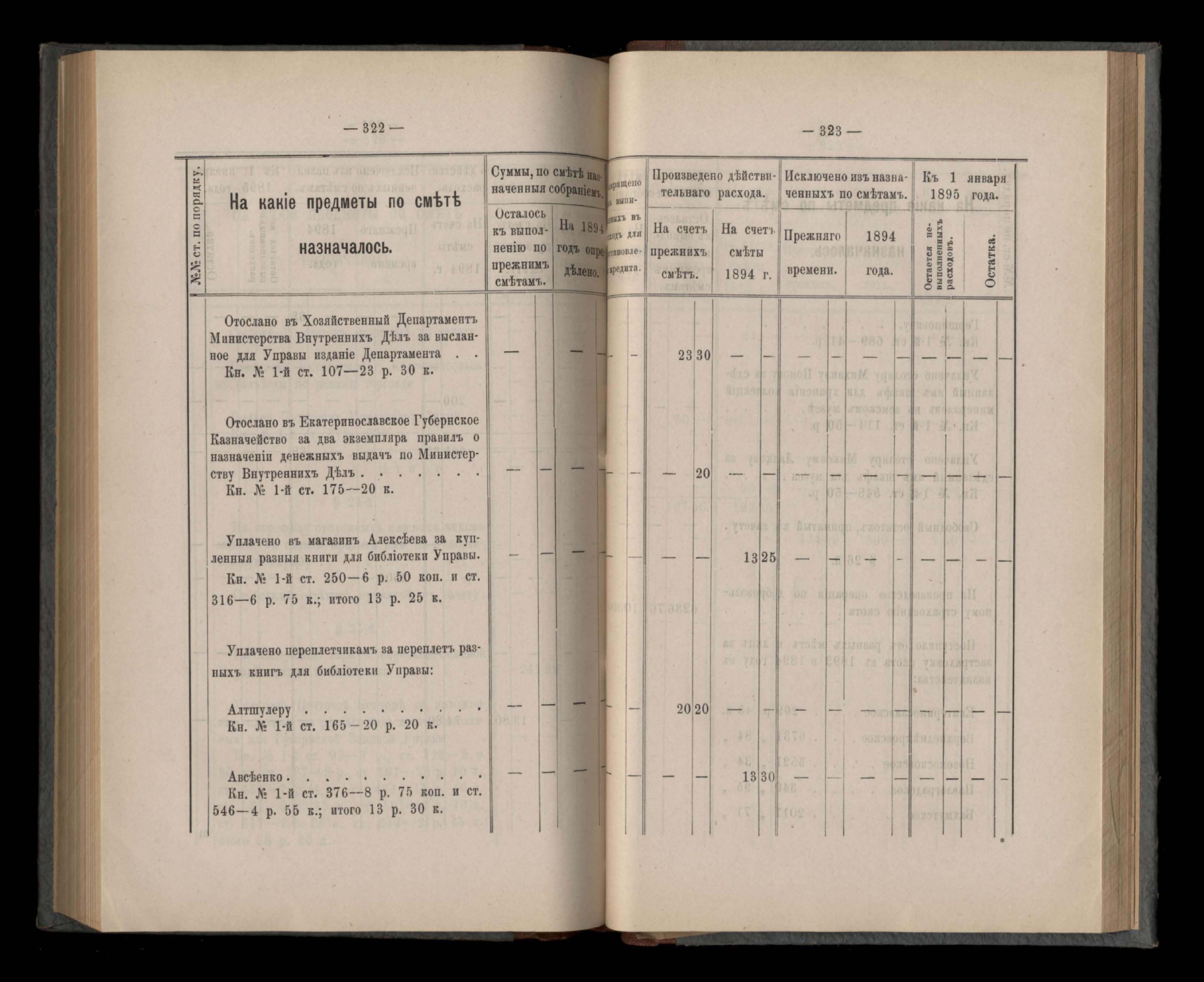 Въдомостъ Екатеринославской губернской земской управы о расходъ суммъ губернскаго земскаго сбора, ассигнованныхъ по смътъ за 1894 годъ