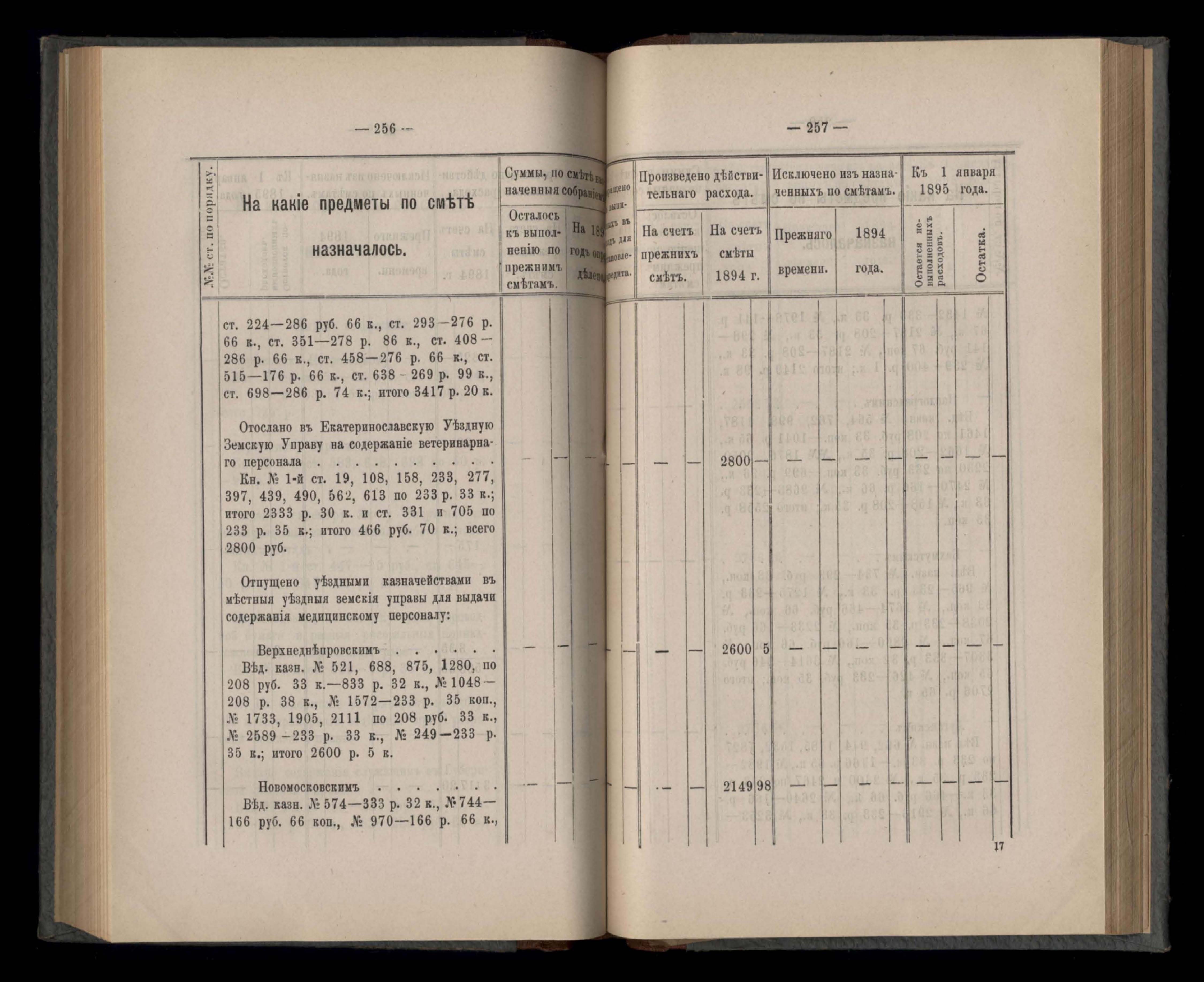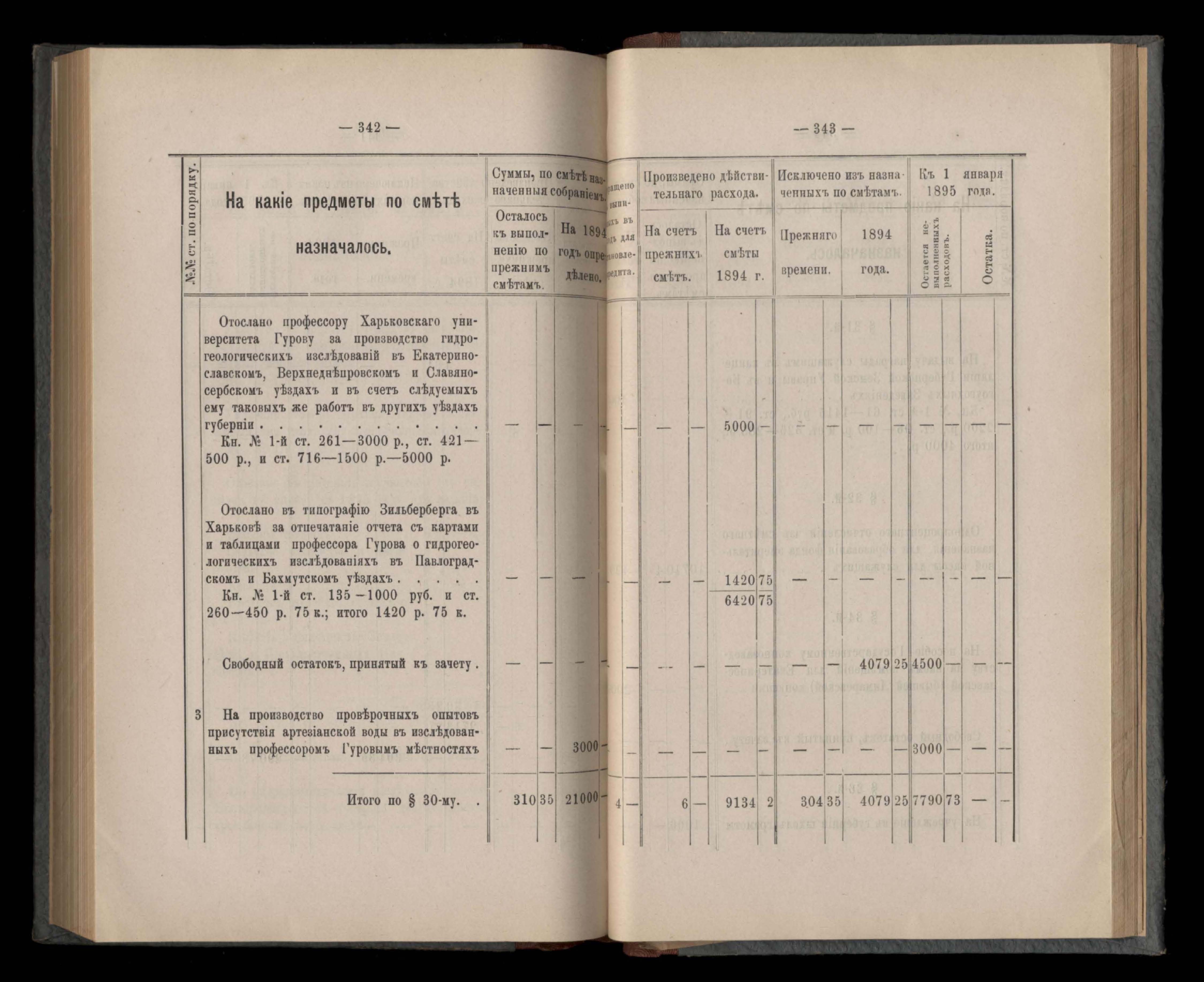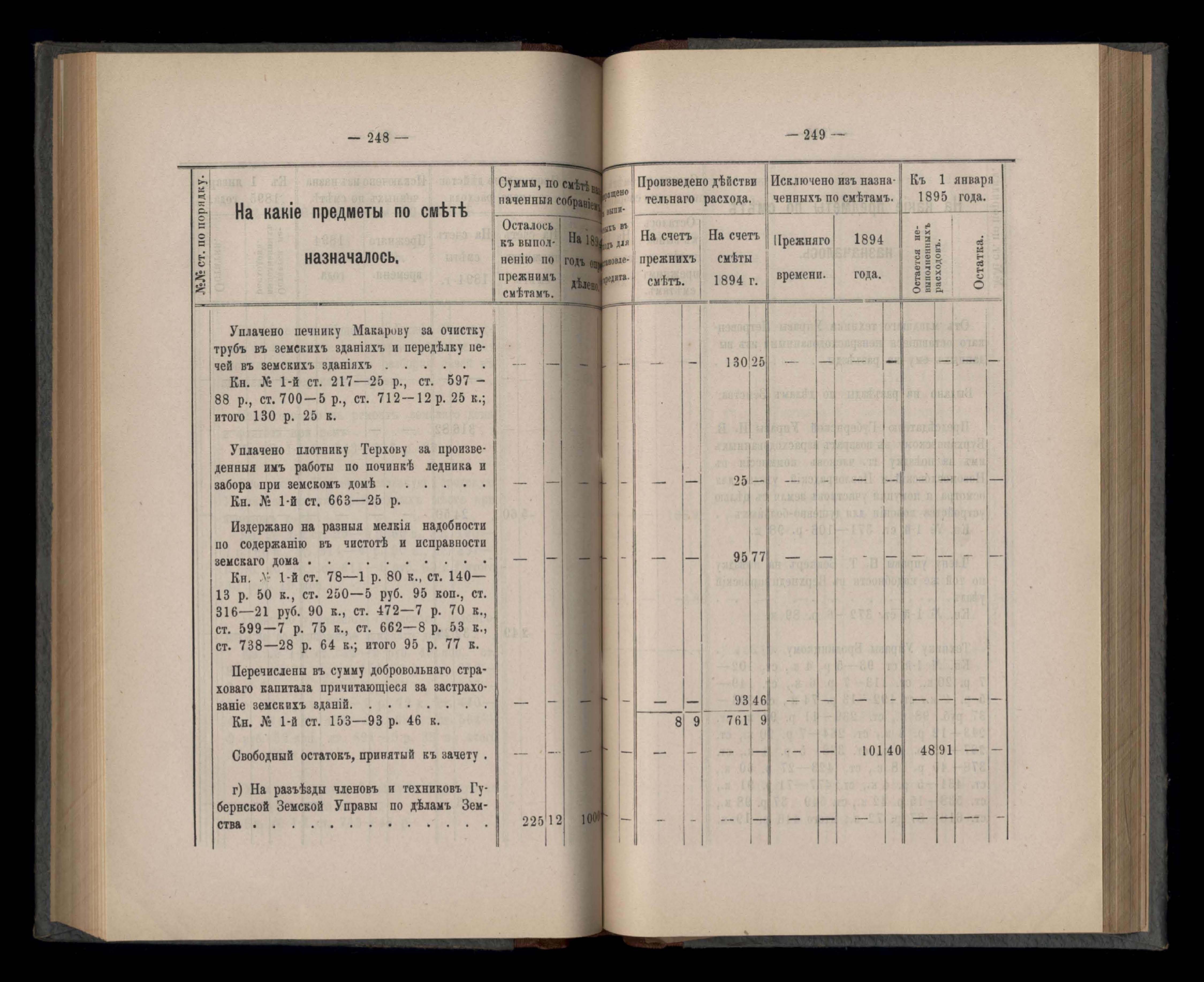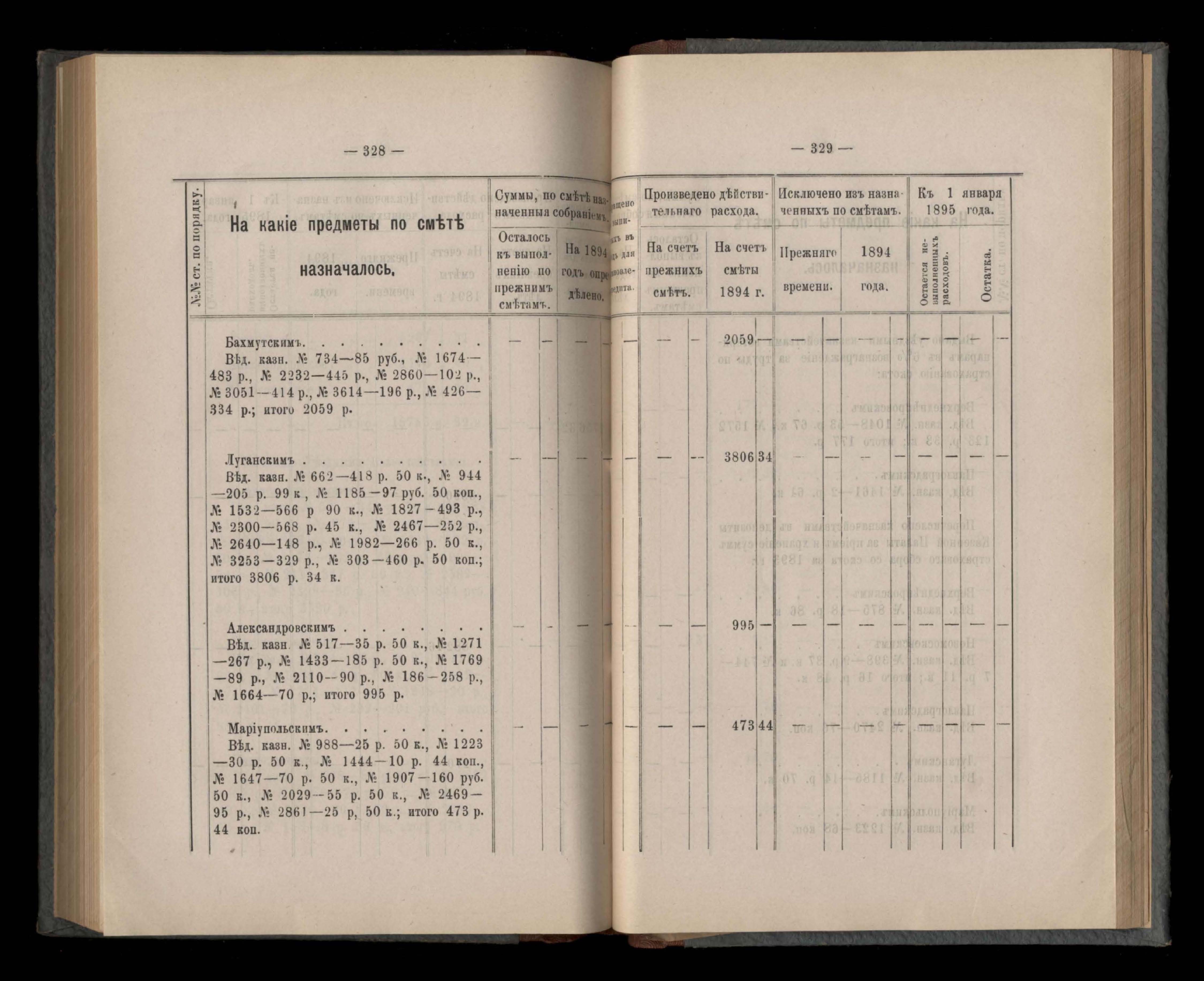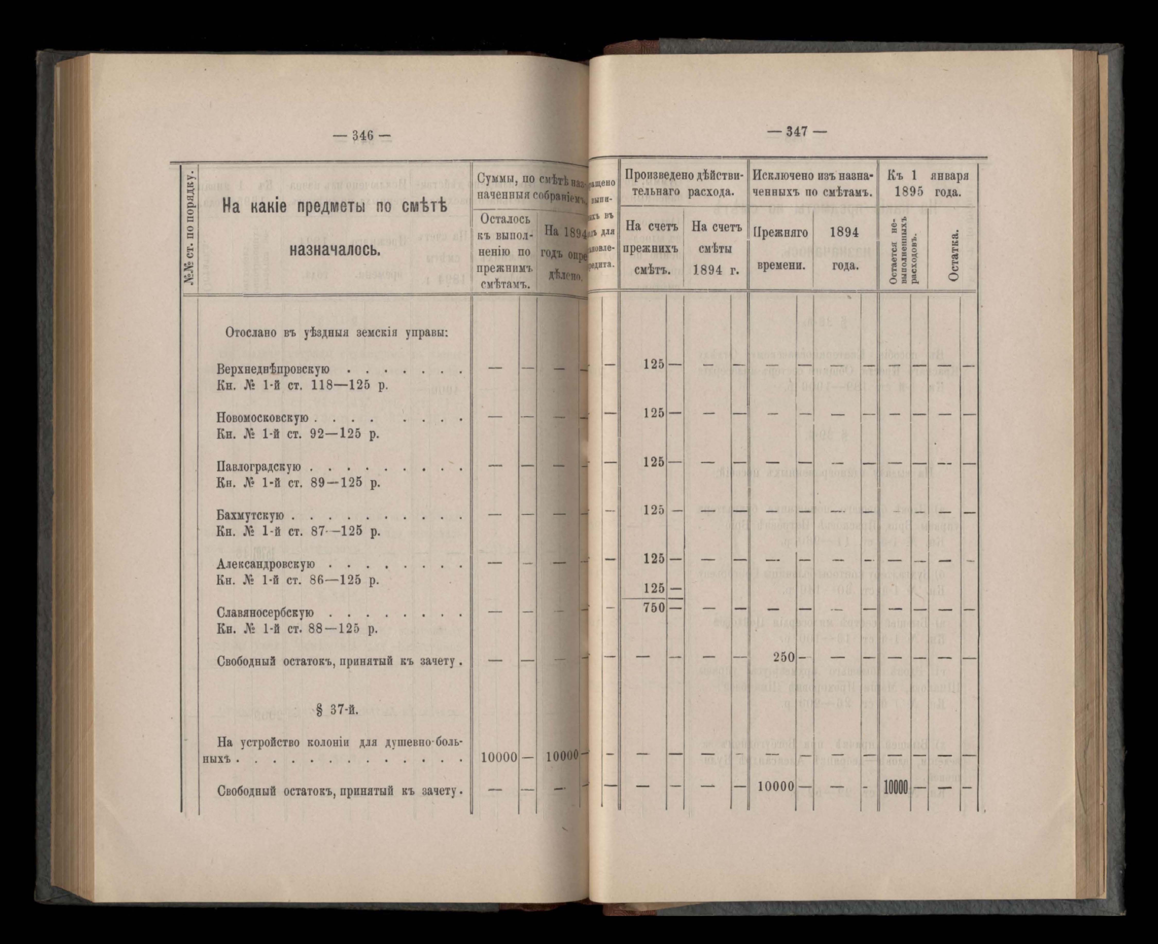 Въдомостъ Екатеринославской губернской земской управы о расходъ суммъ губернскаго земскаго сбора, ассигнованныхъ по смътъ за 1894 годъ