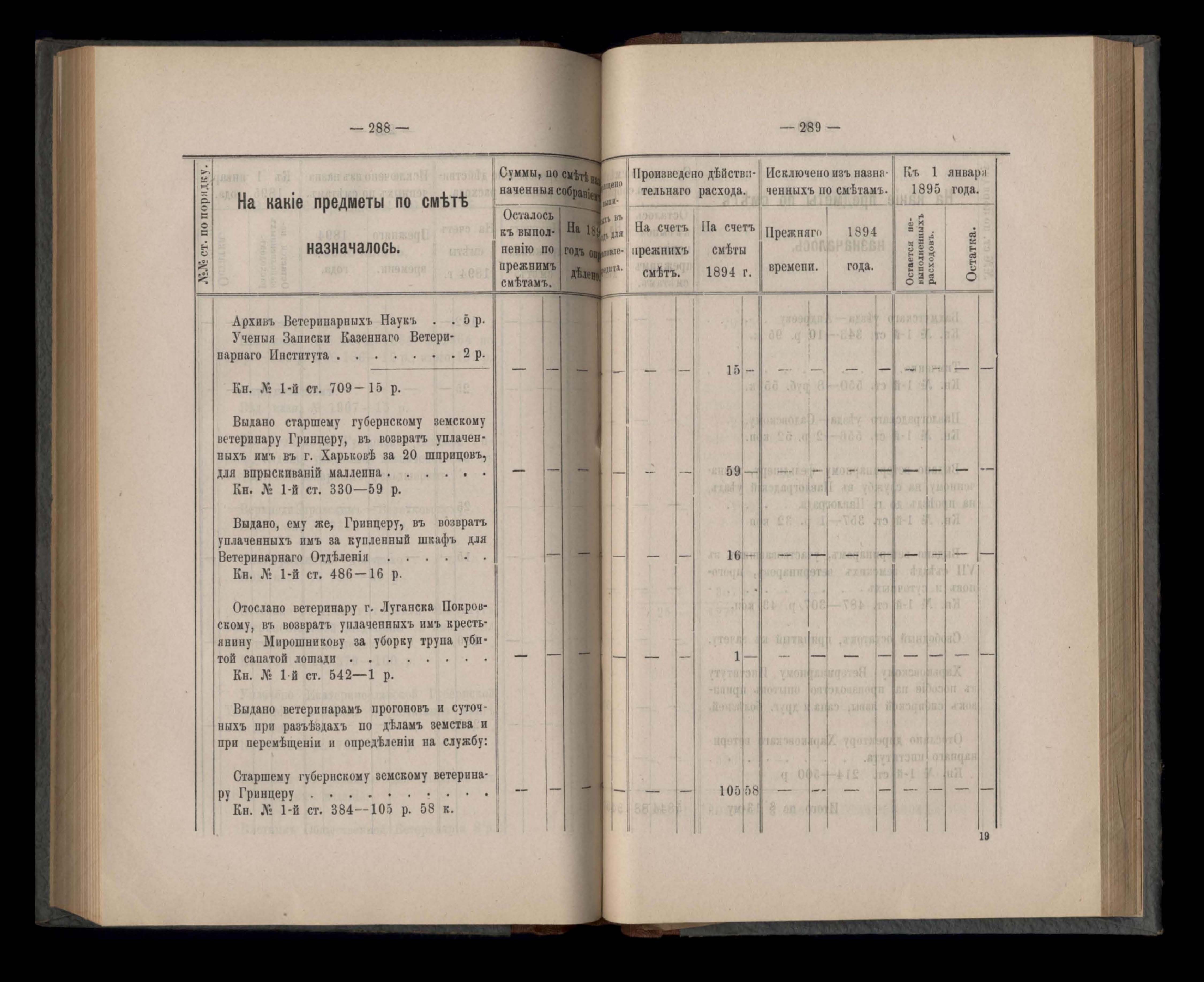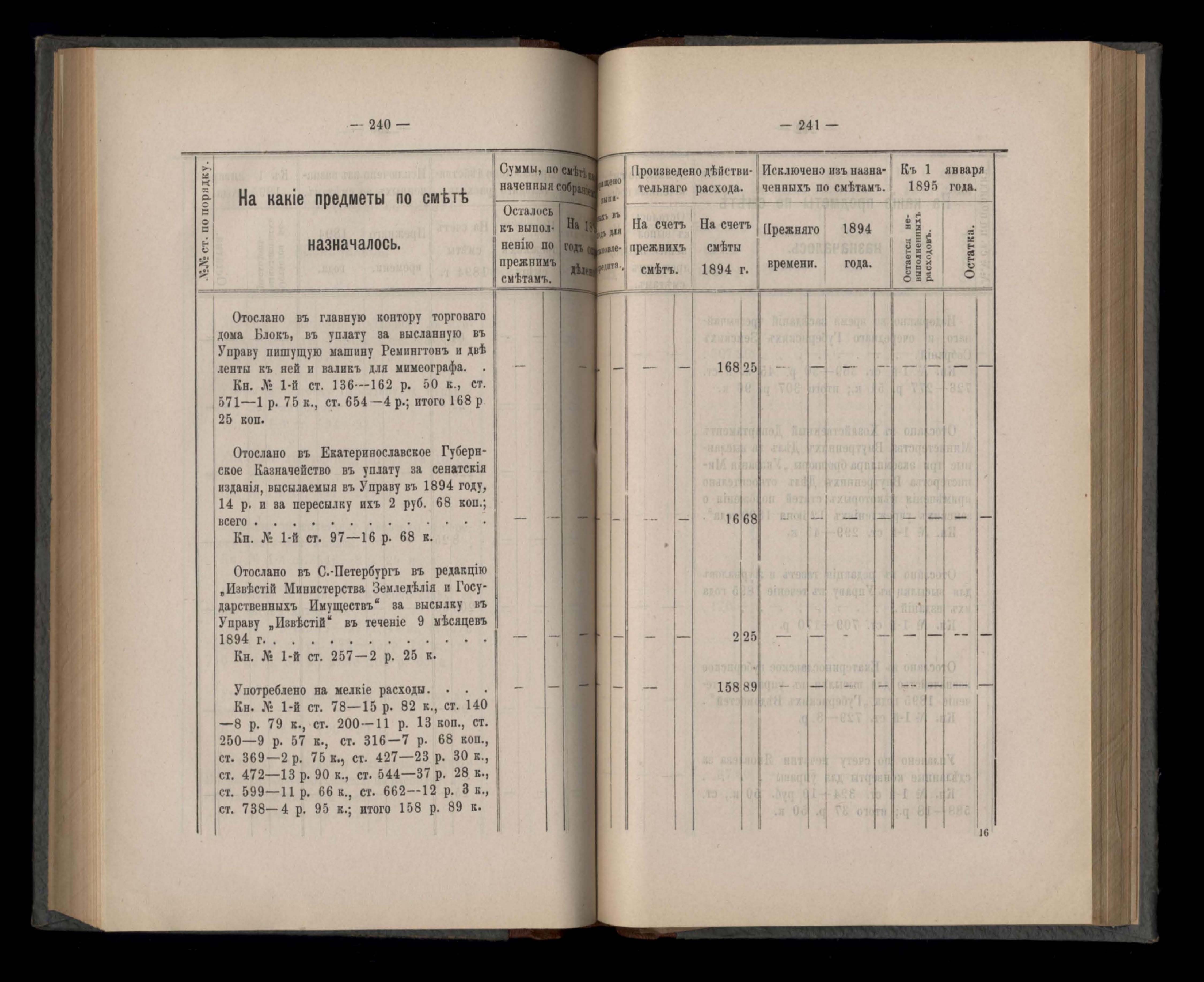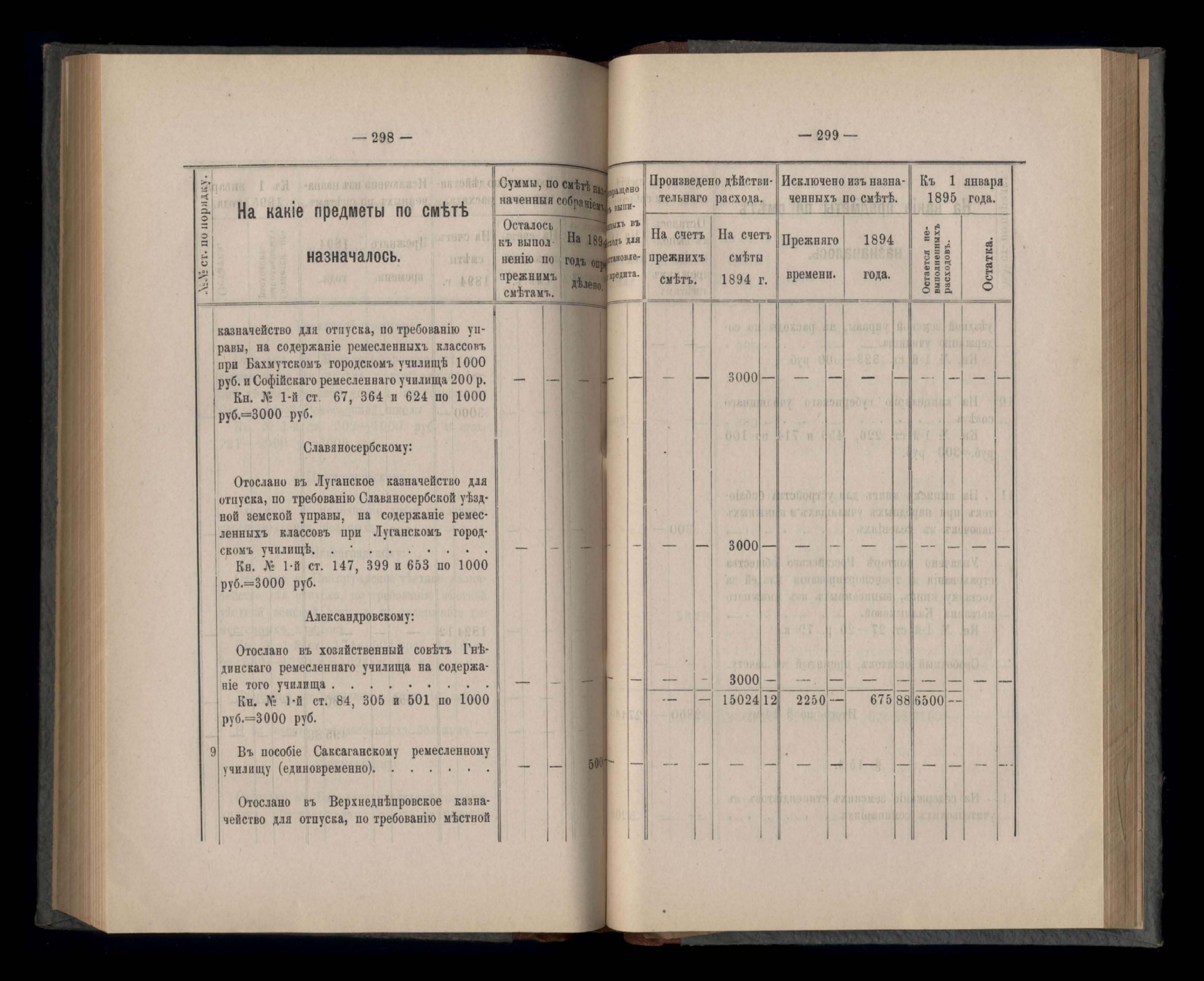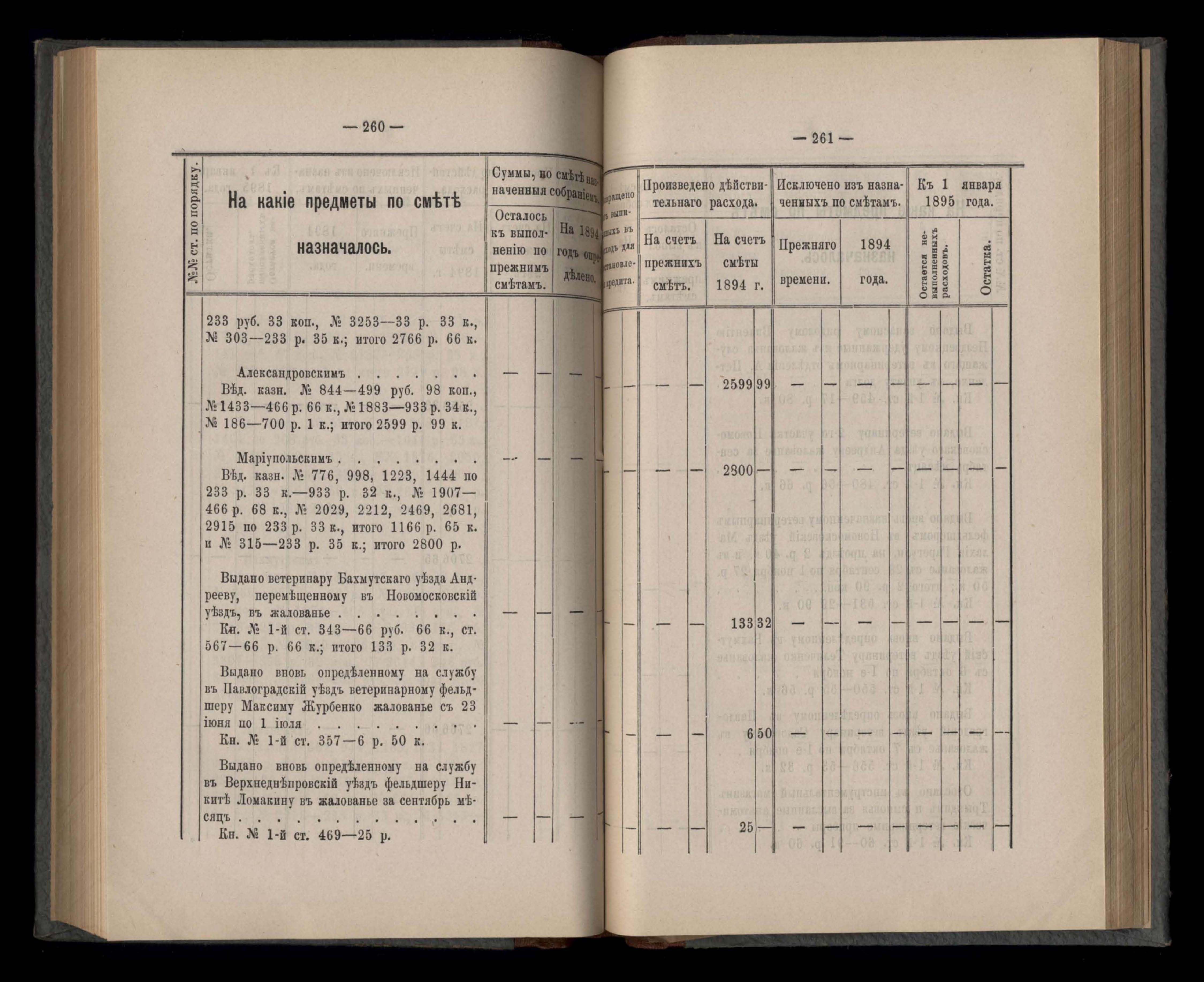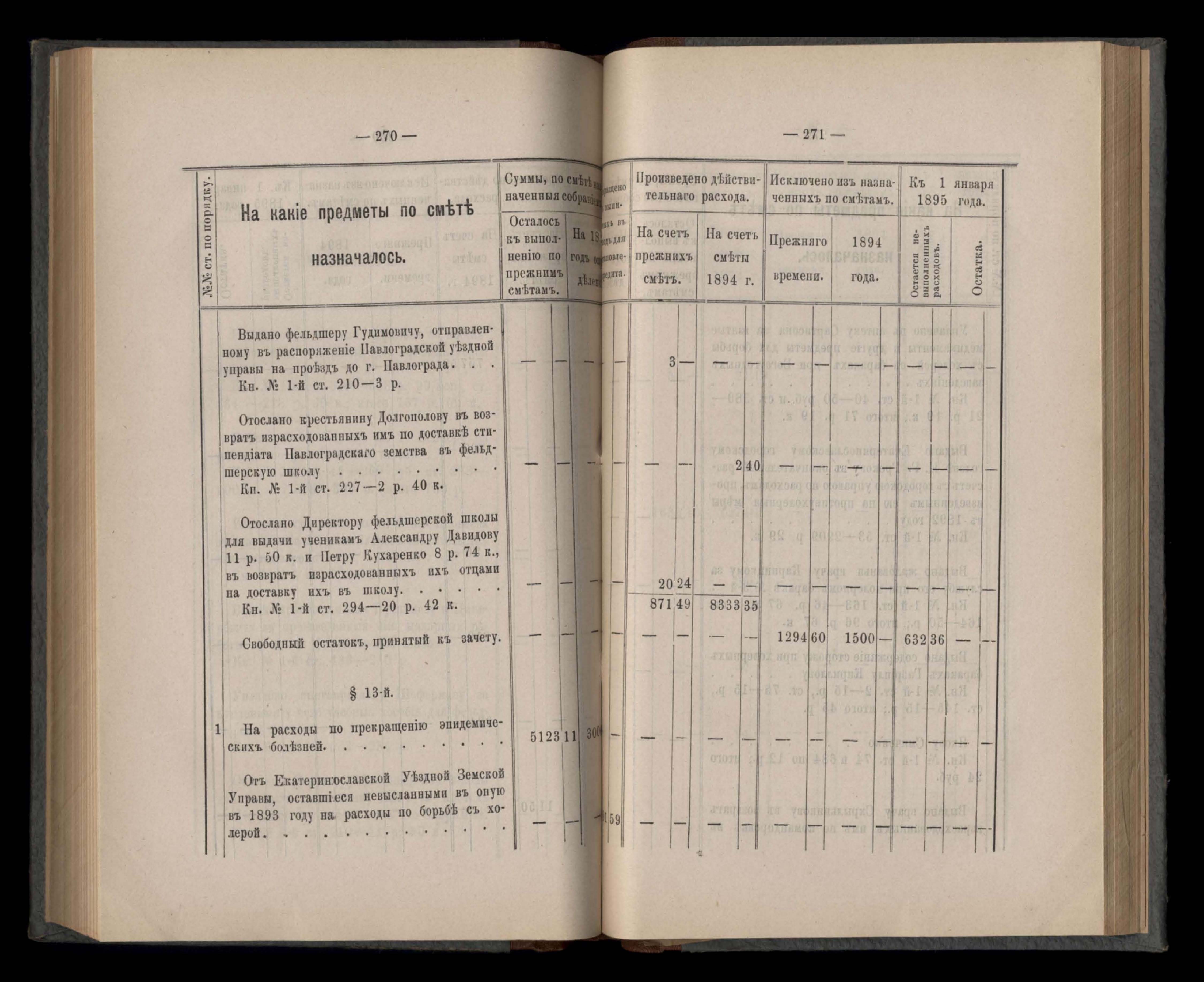 Въдомостъ Екатеринославской губернской земской управы о расходъ суммъ губернскаго земскаго сбора, ассигнованныхъ по смътъ за 1894 годъ