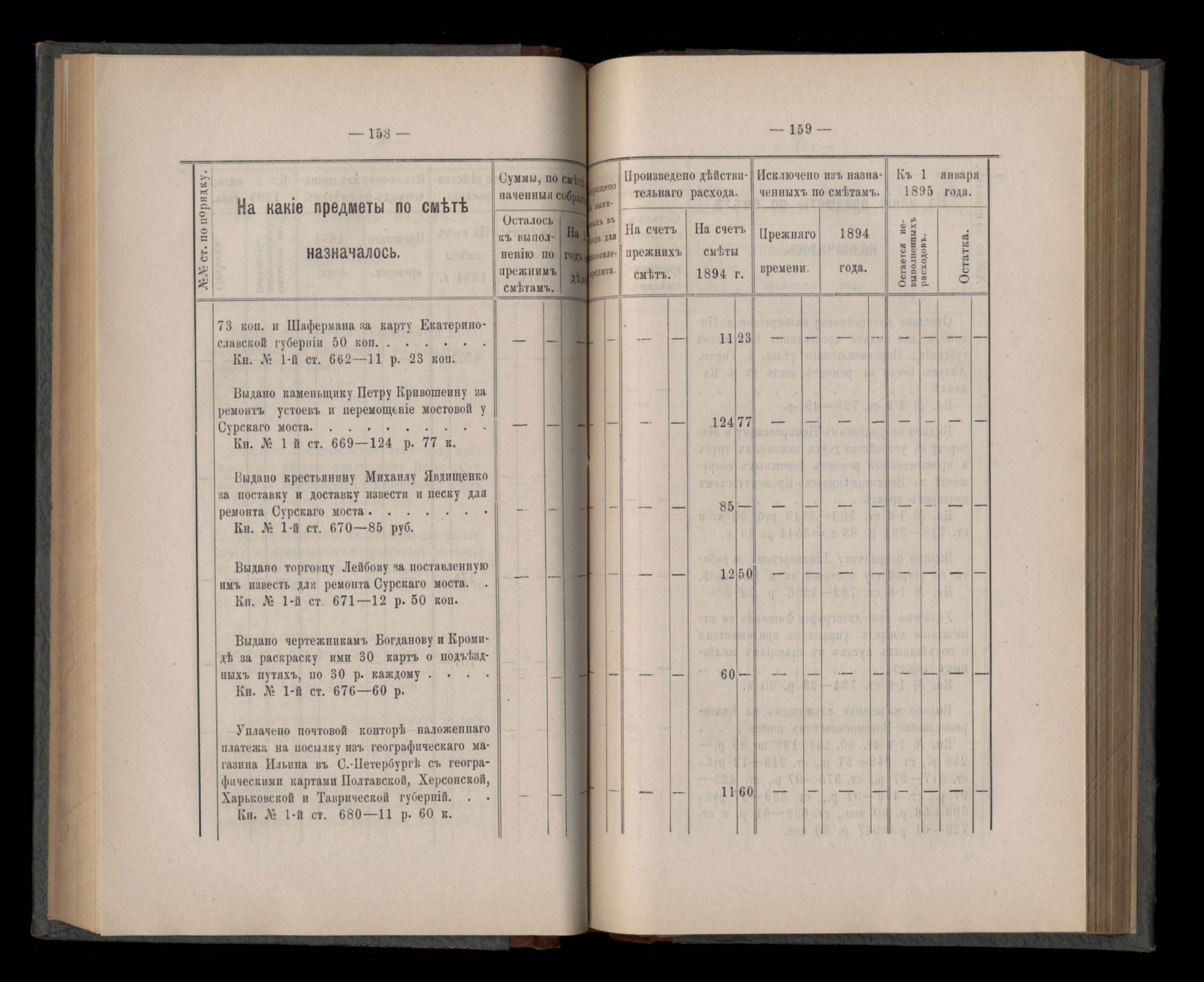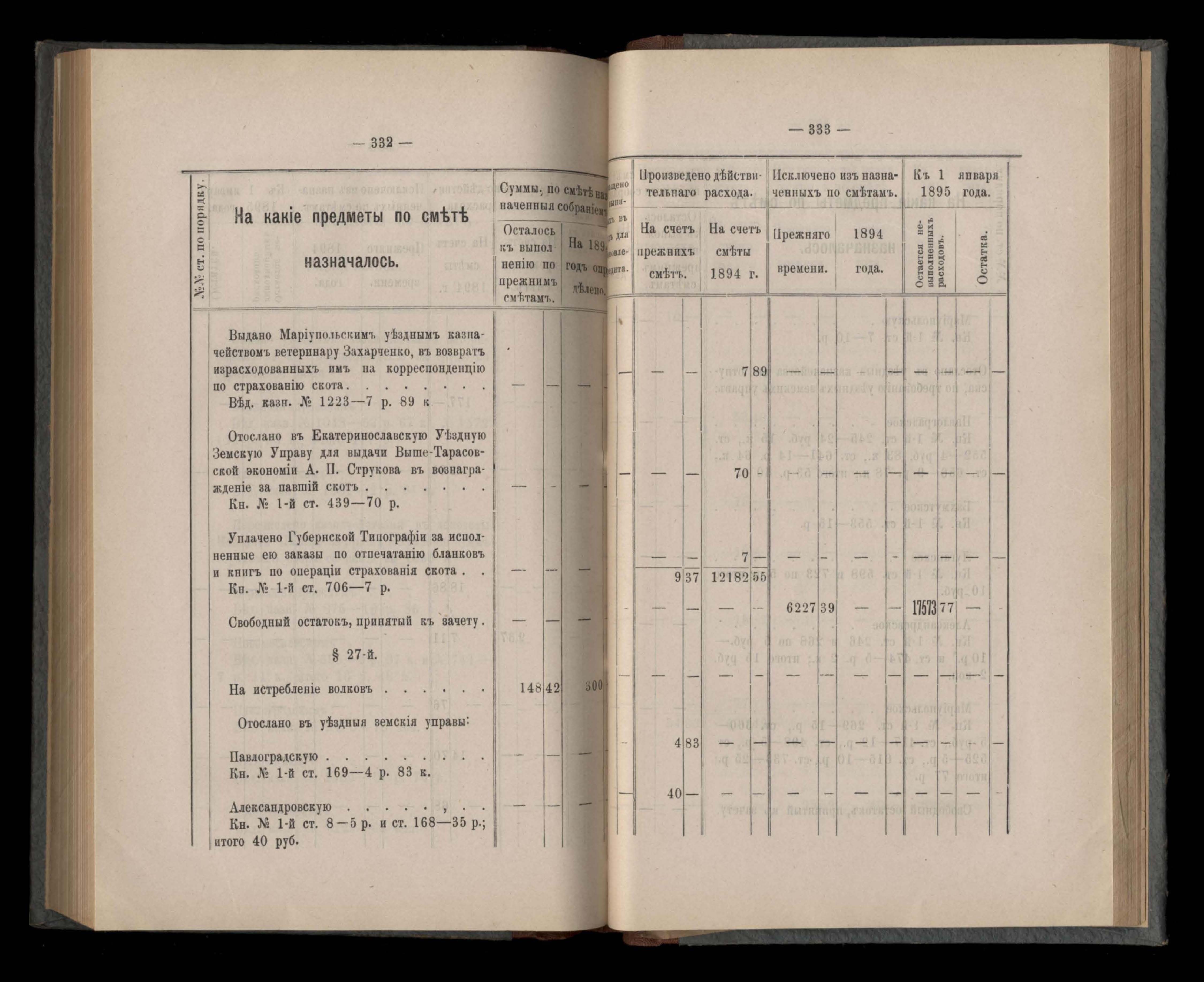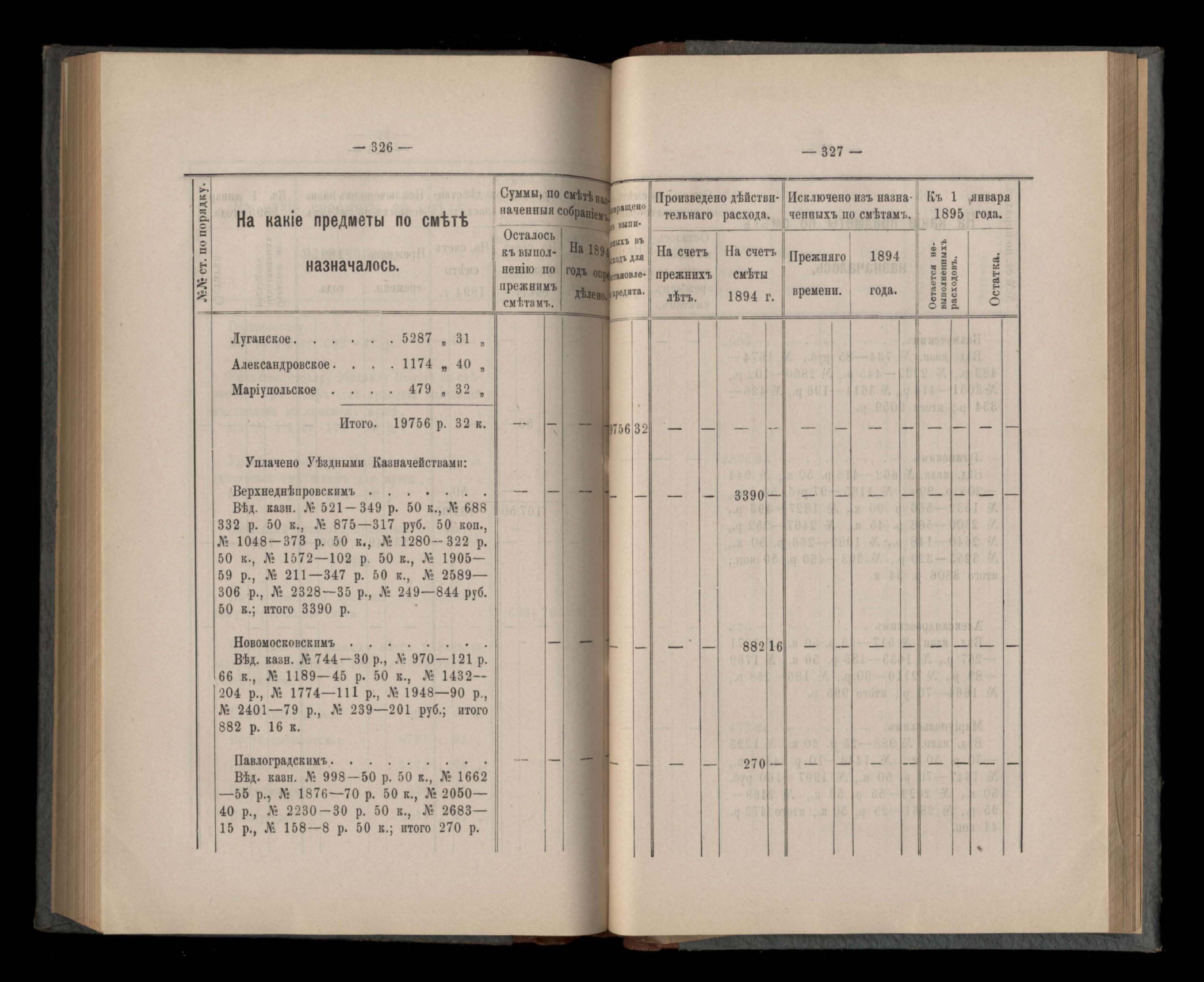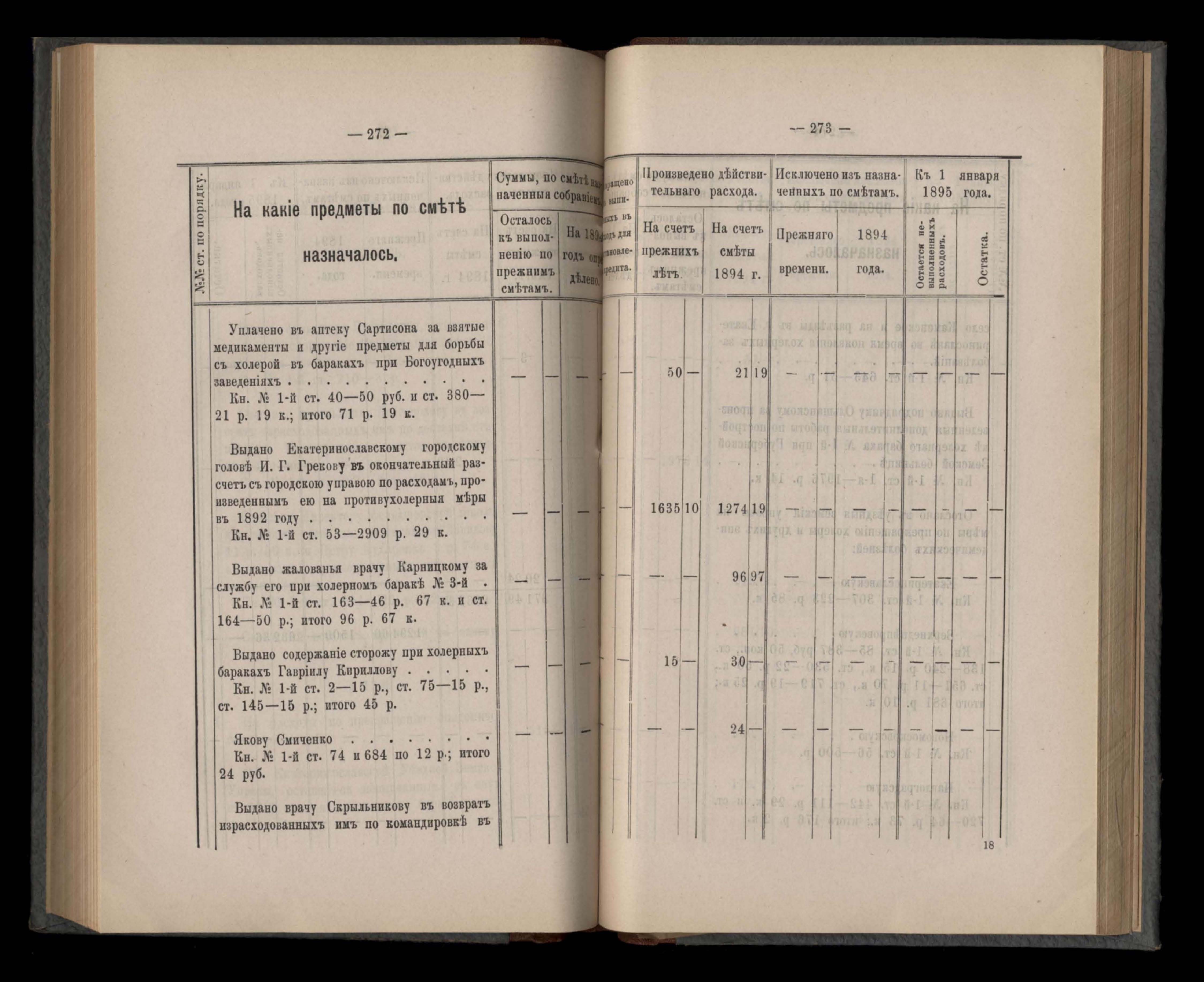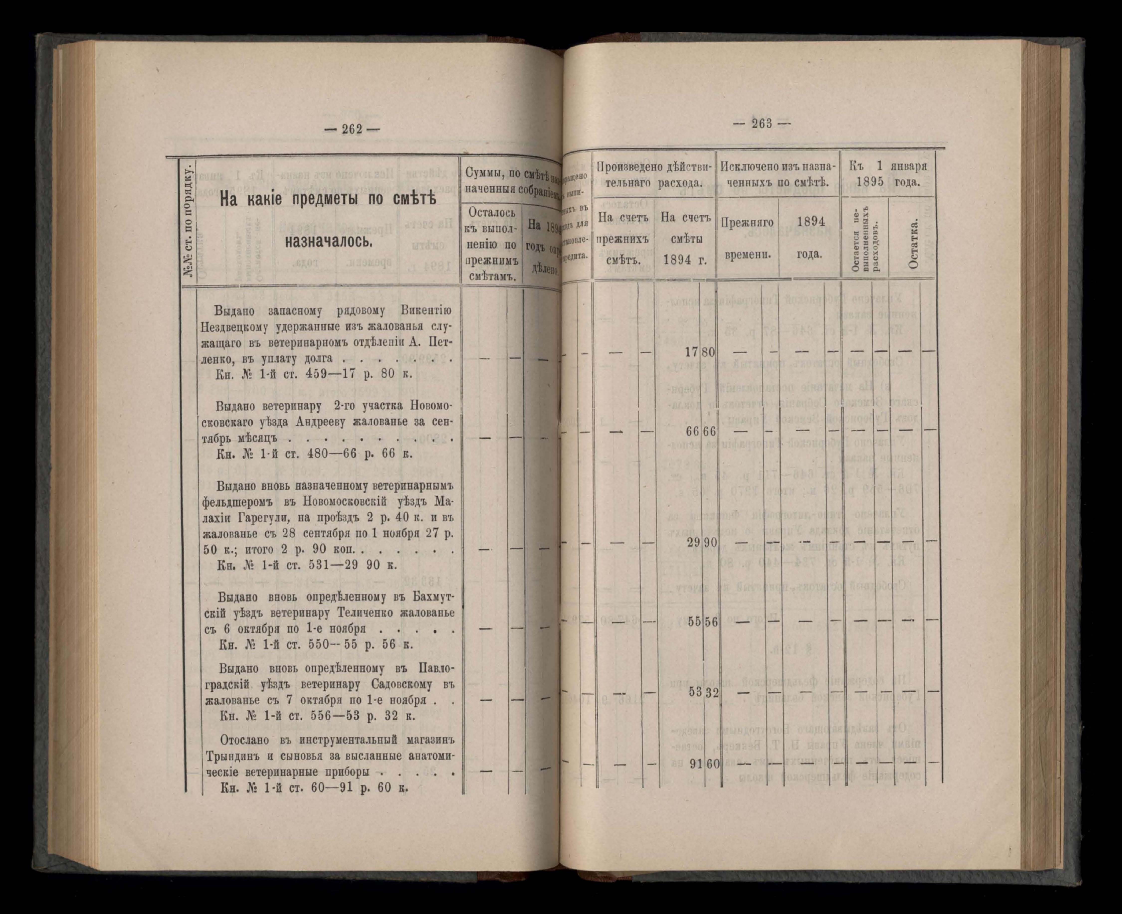 Въдомостъ Екатеринославской губернской земской управы о расходъ суммъ губернскаго земскаго сбора, ассигнованныхъ по смътъ за 1894 годъ