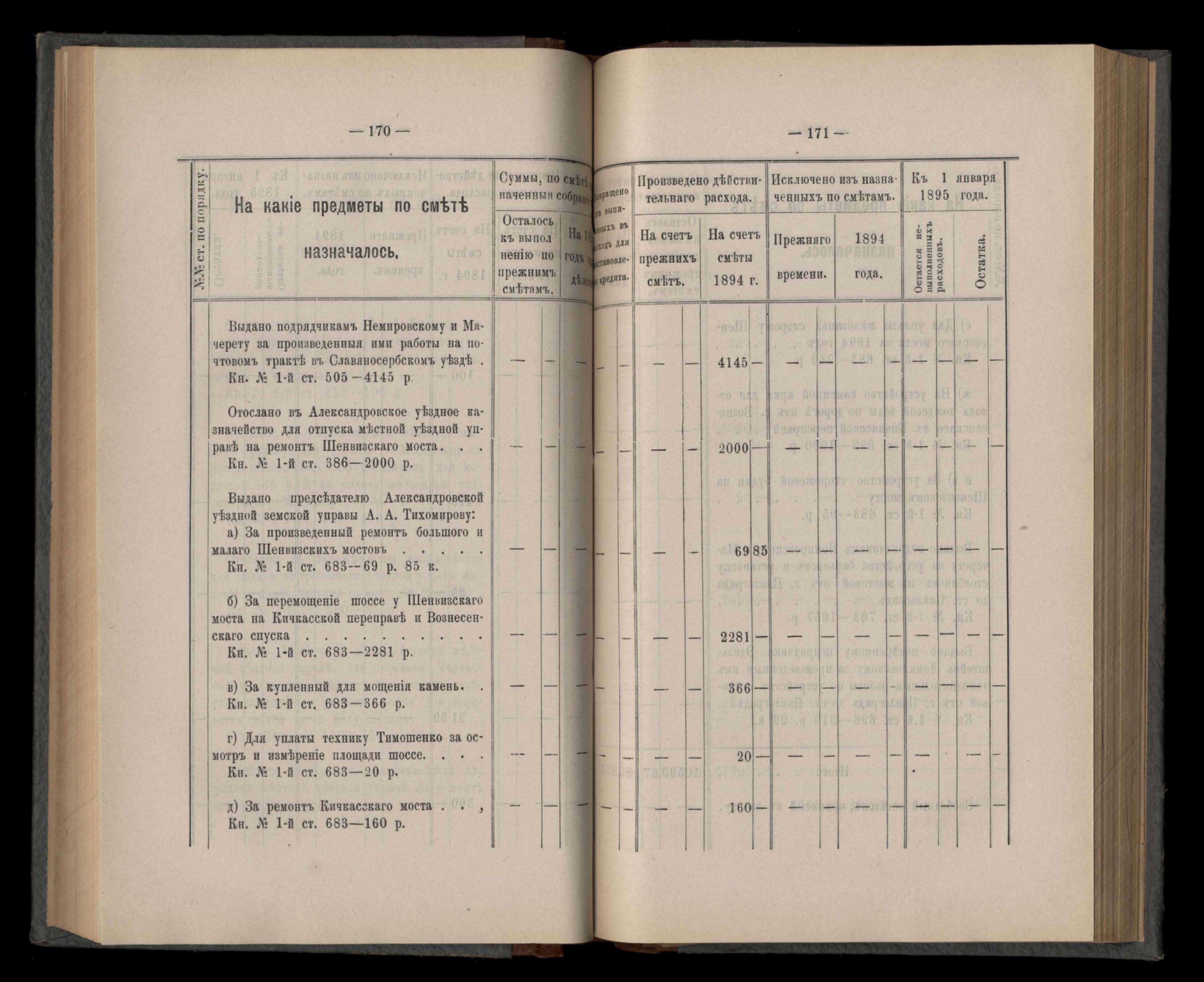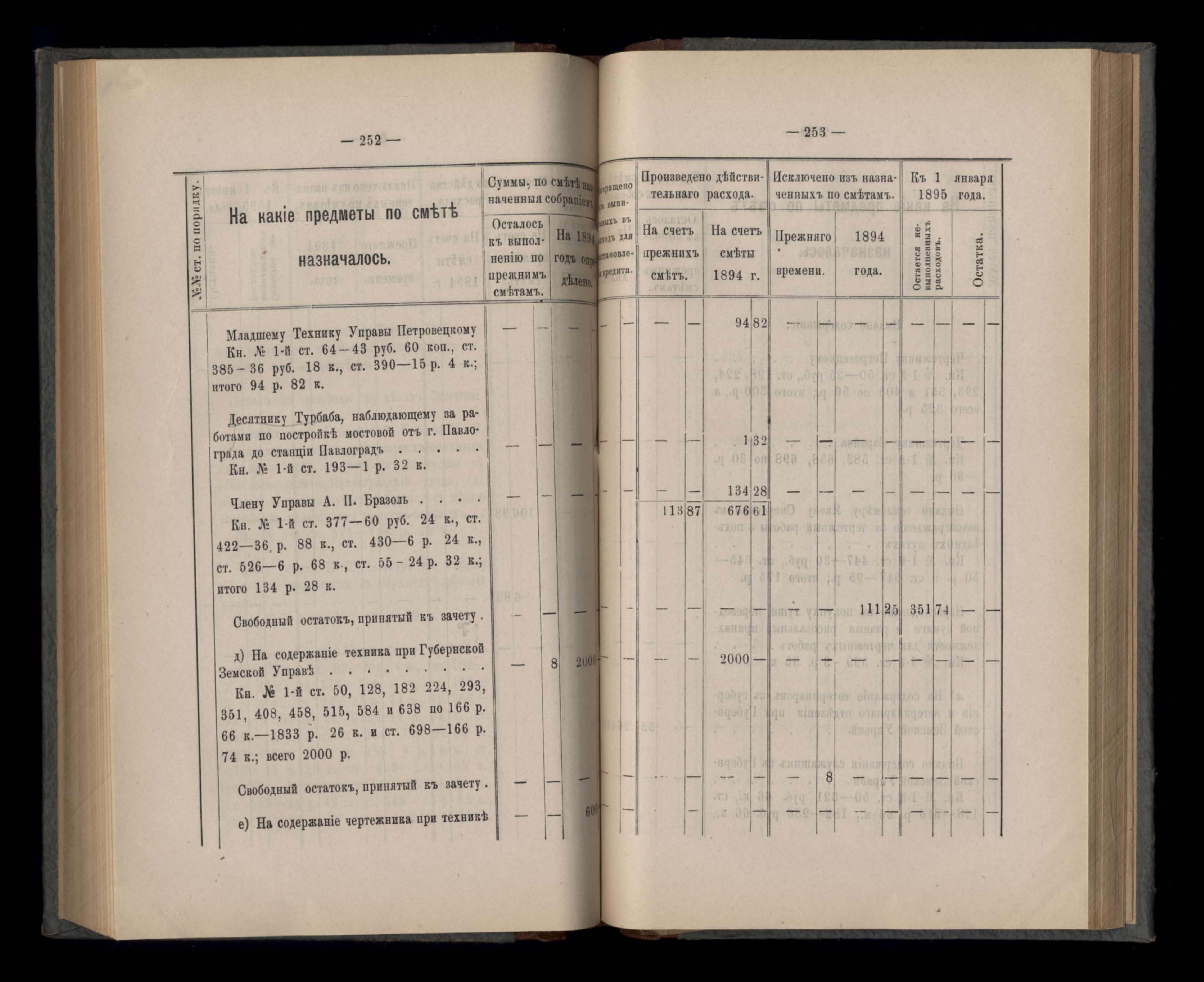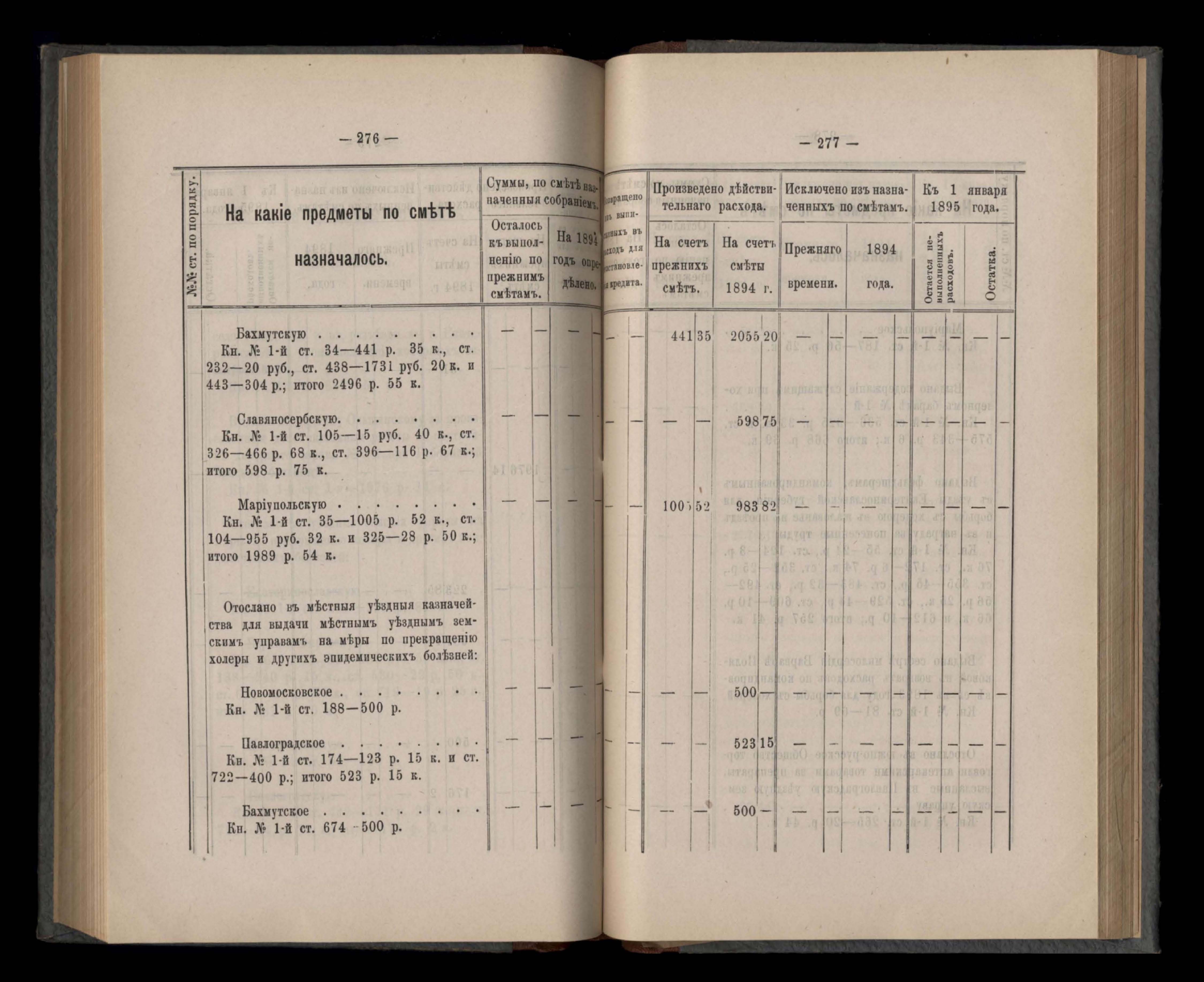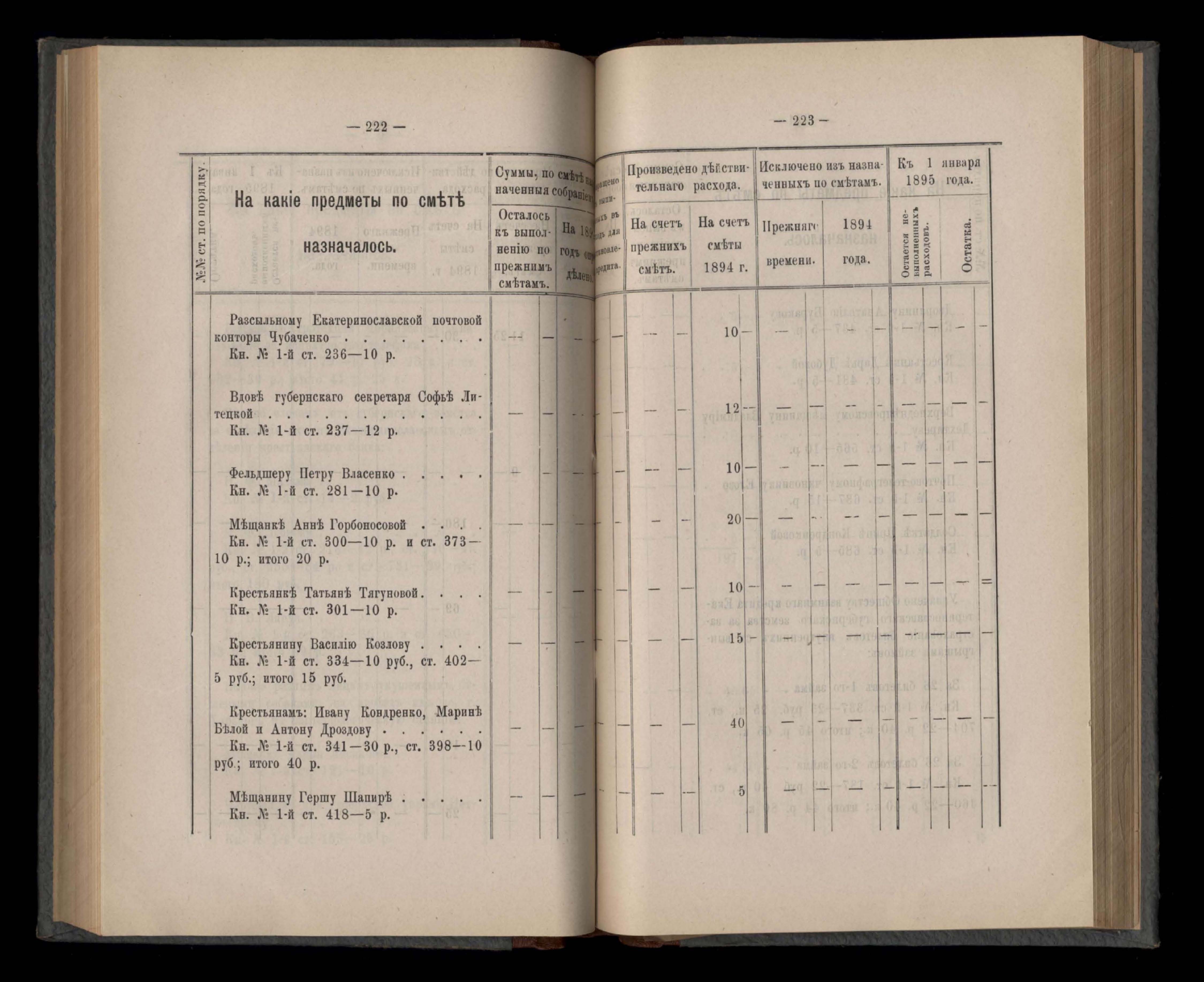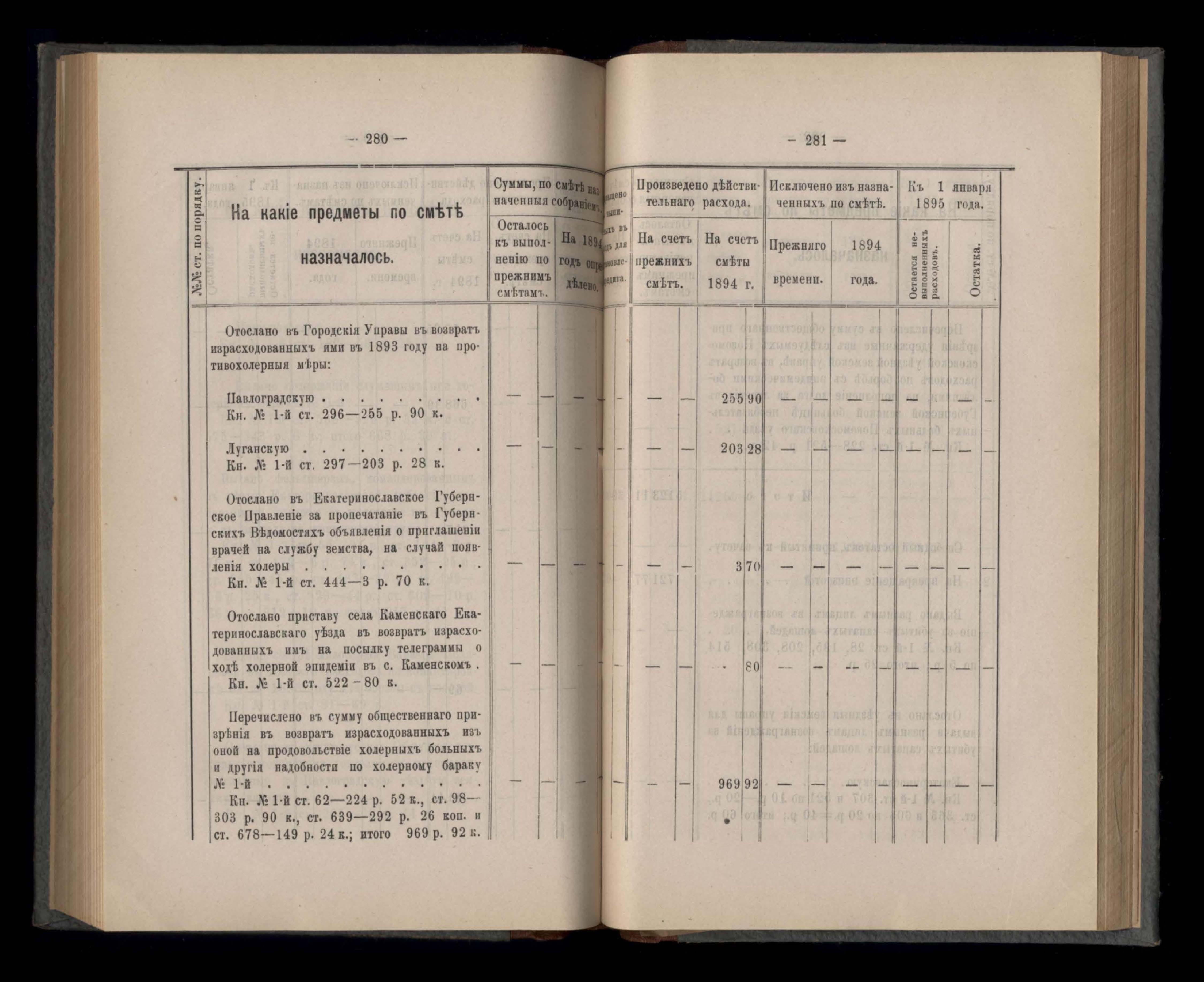 Въдомостъ Екатеринославской губернской земской управы о расходъ суммъ губернскаго земскаго сбора, ассигнованныхъ по смътъ за 1894 годъ