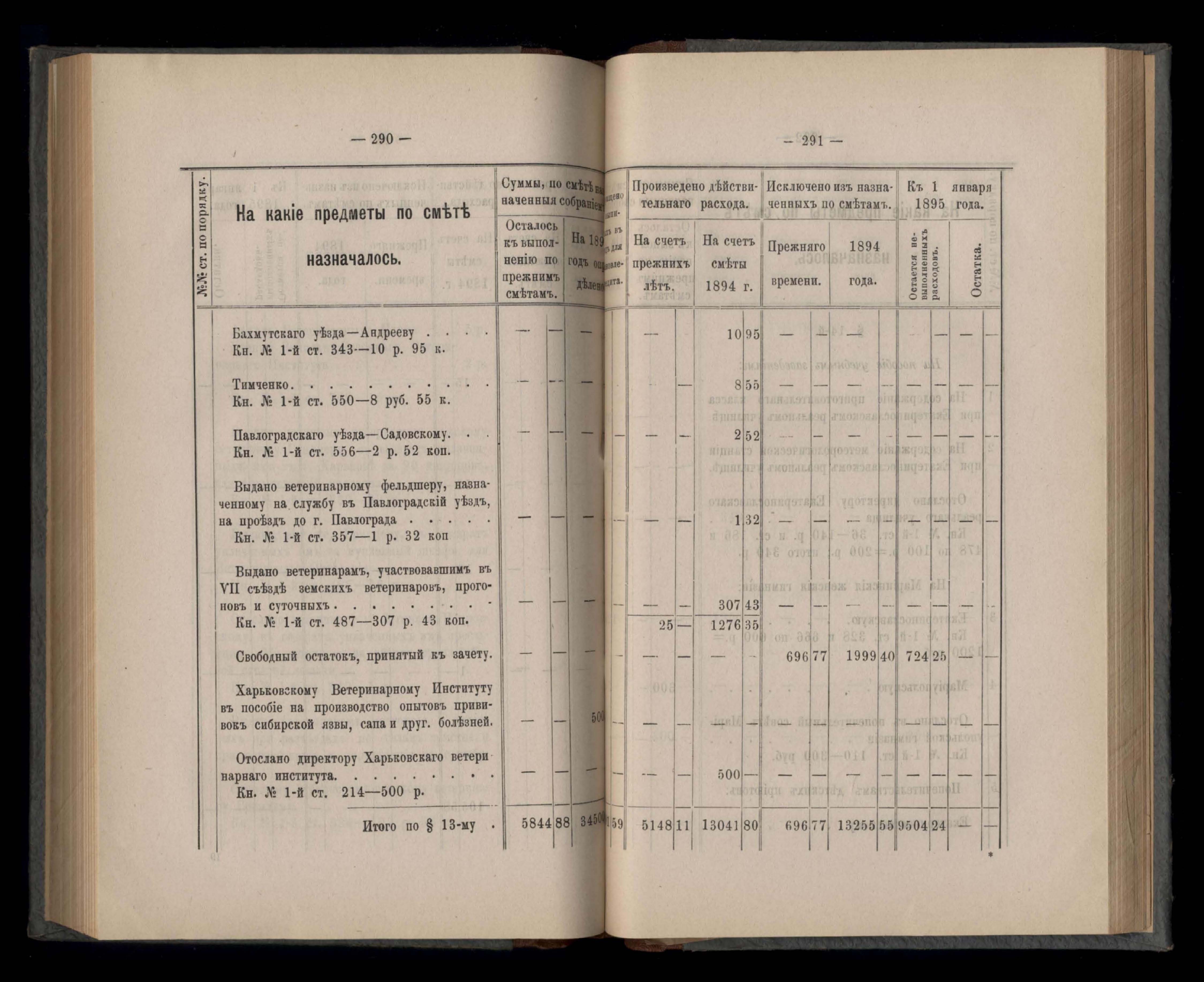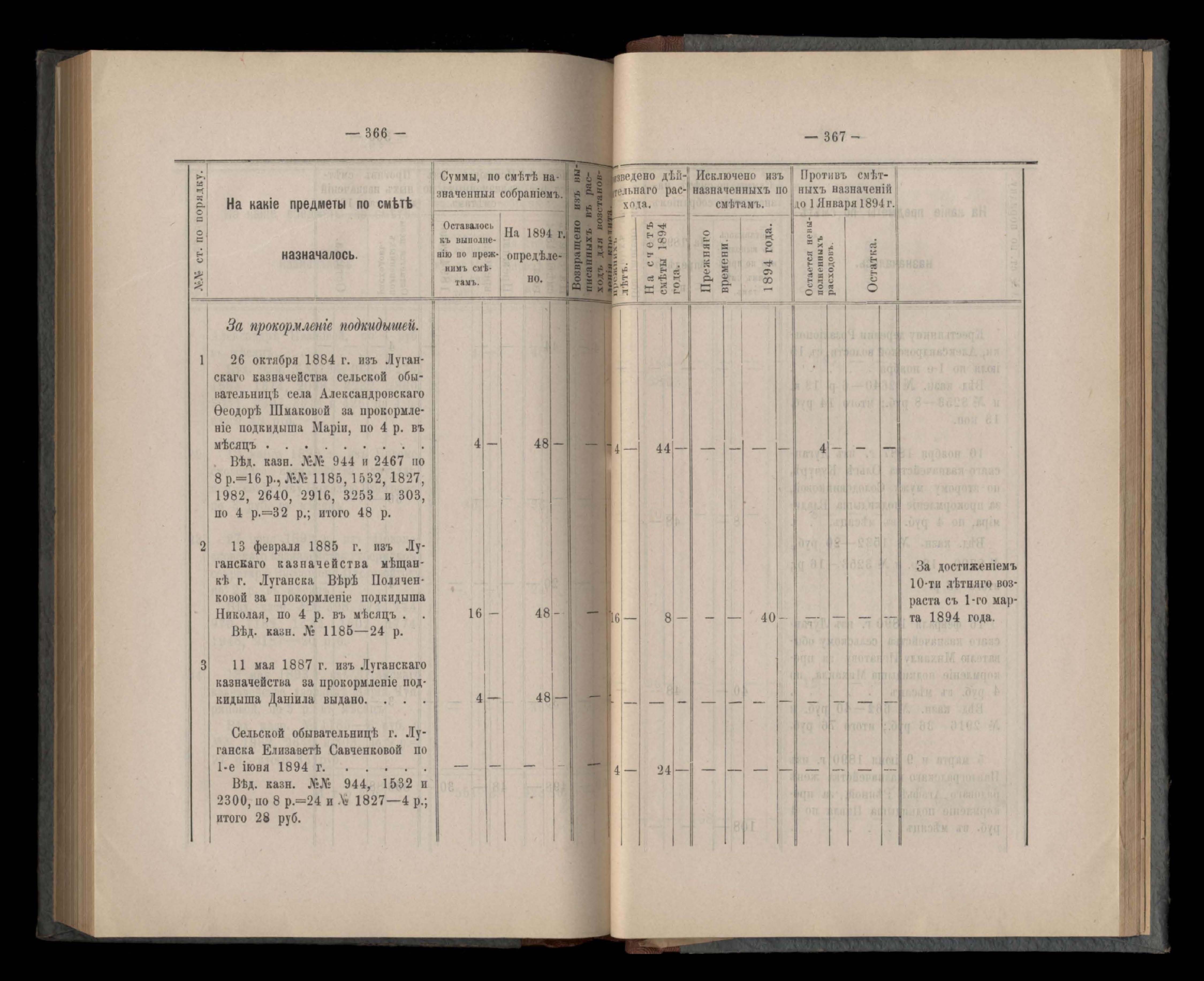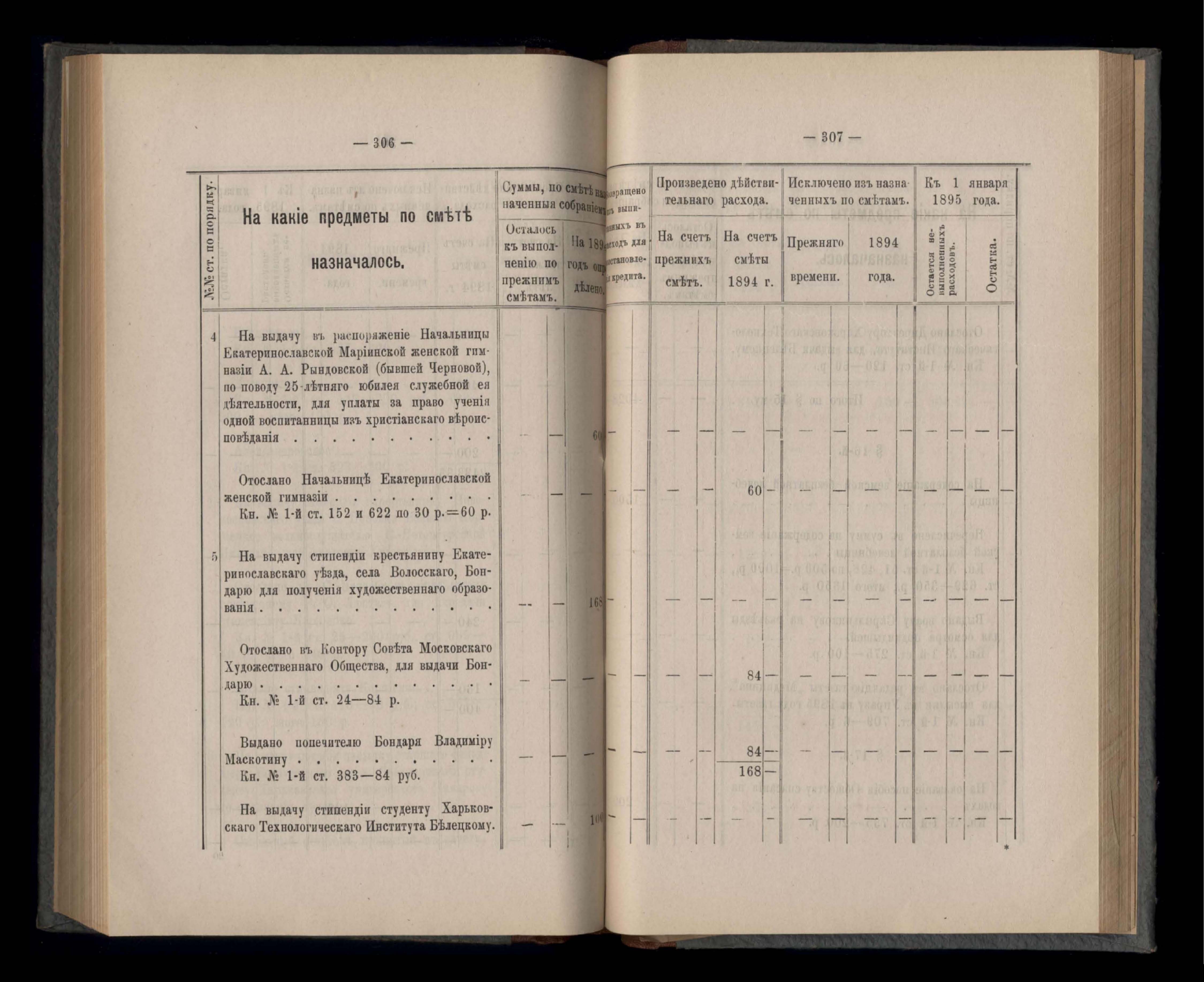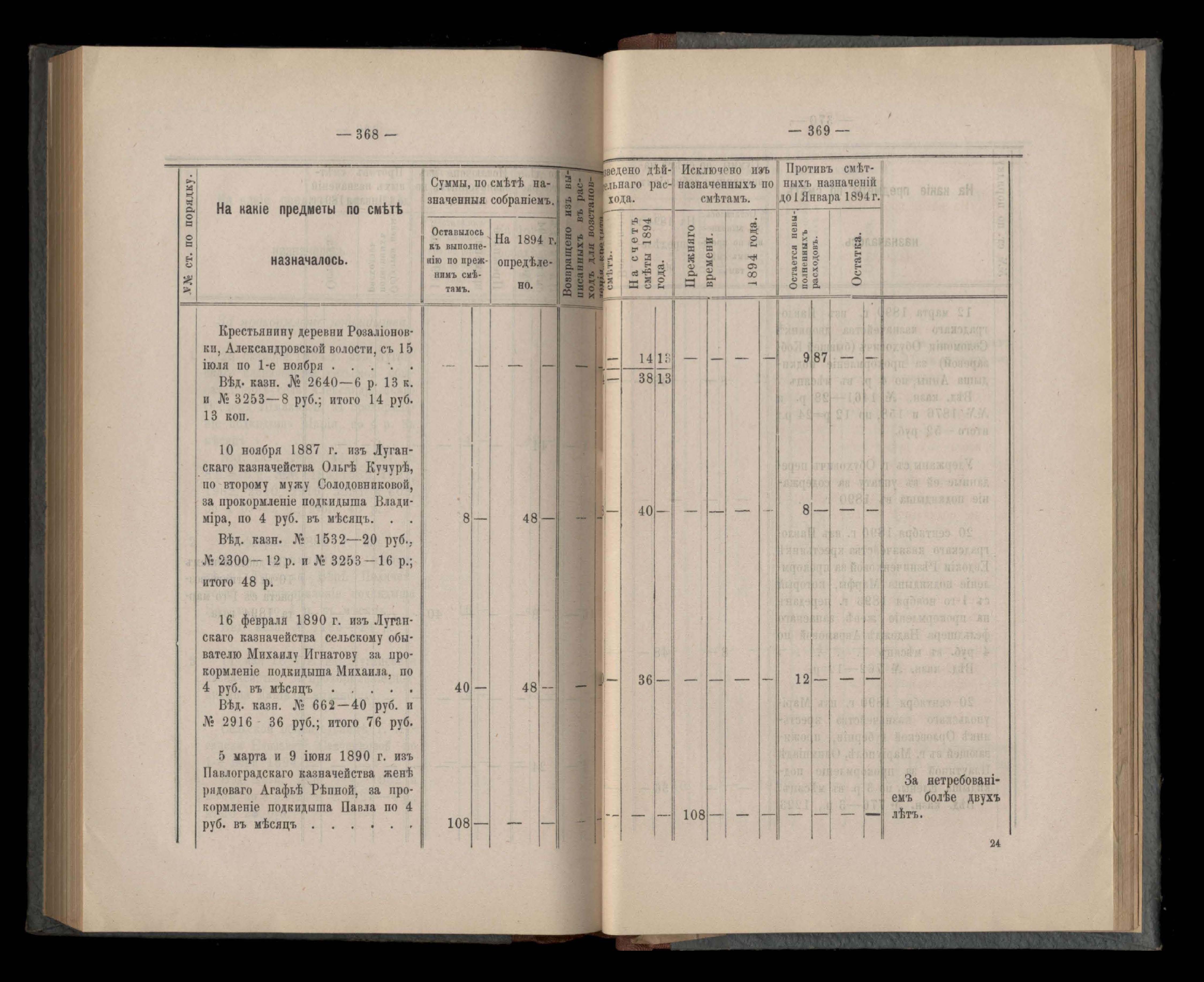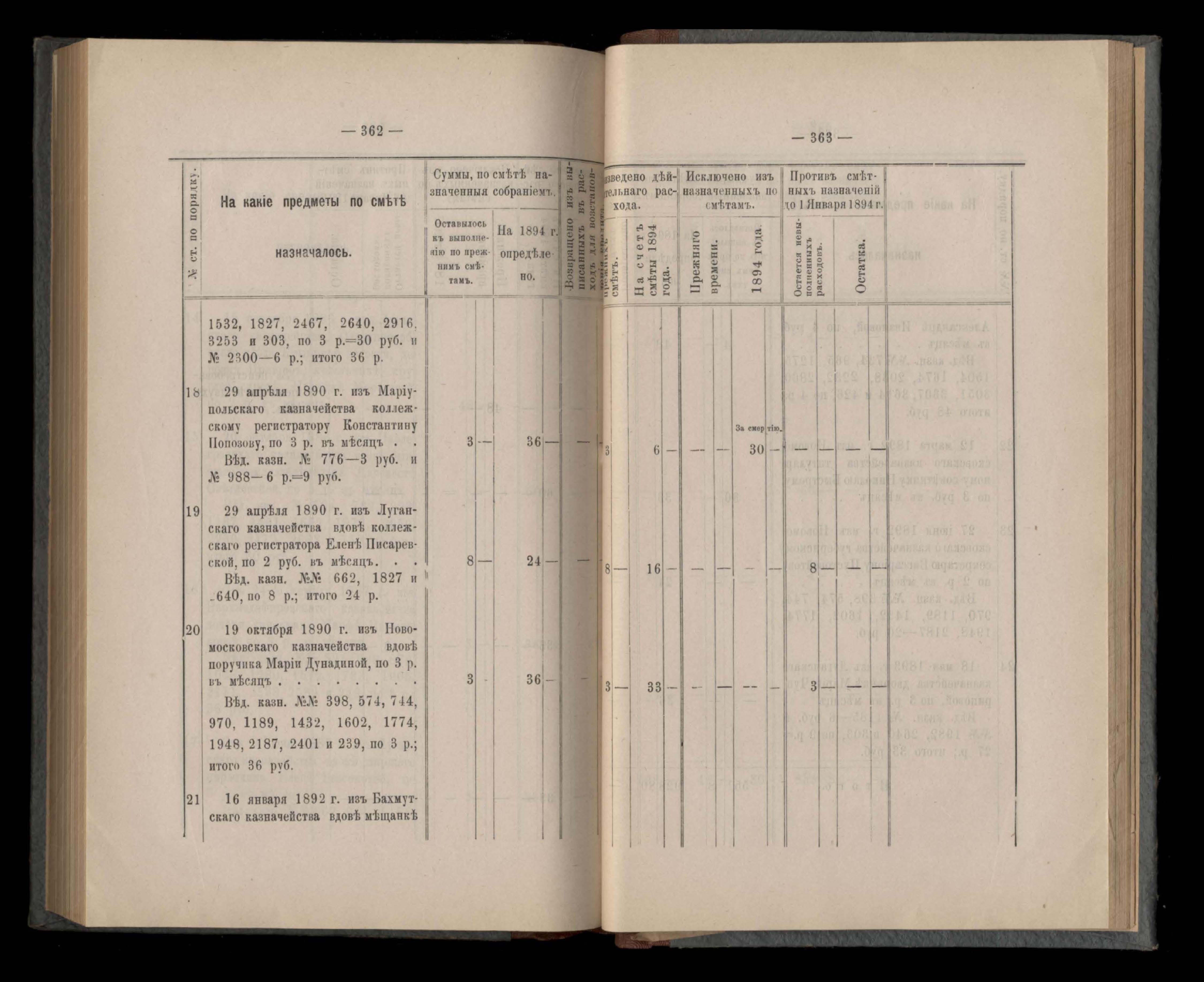 Въдомостъ Екатеринославской губернской земской управы о расходъ суммъ губернскаго земскаго сбора, ассигнованныхъ по смътъ за 1894 годъ