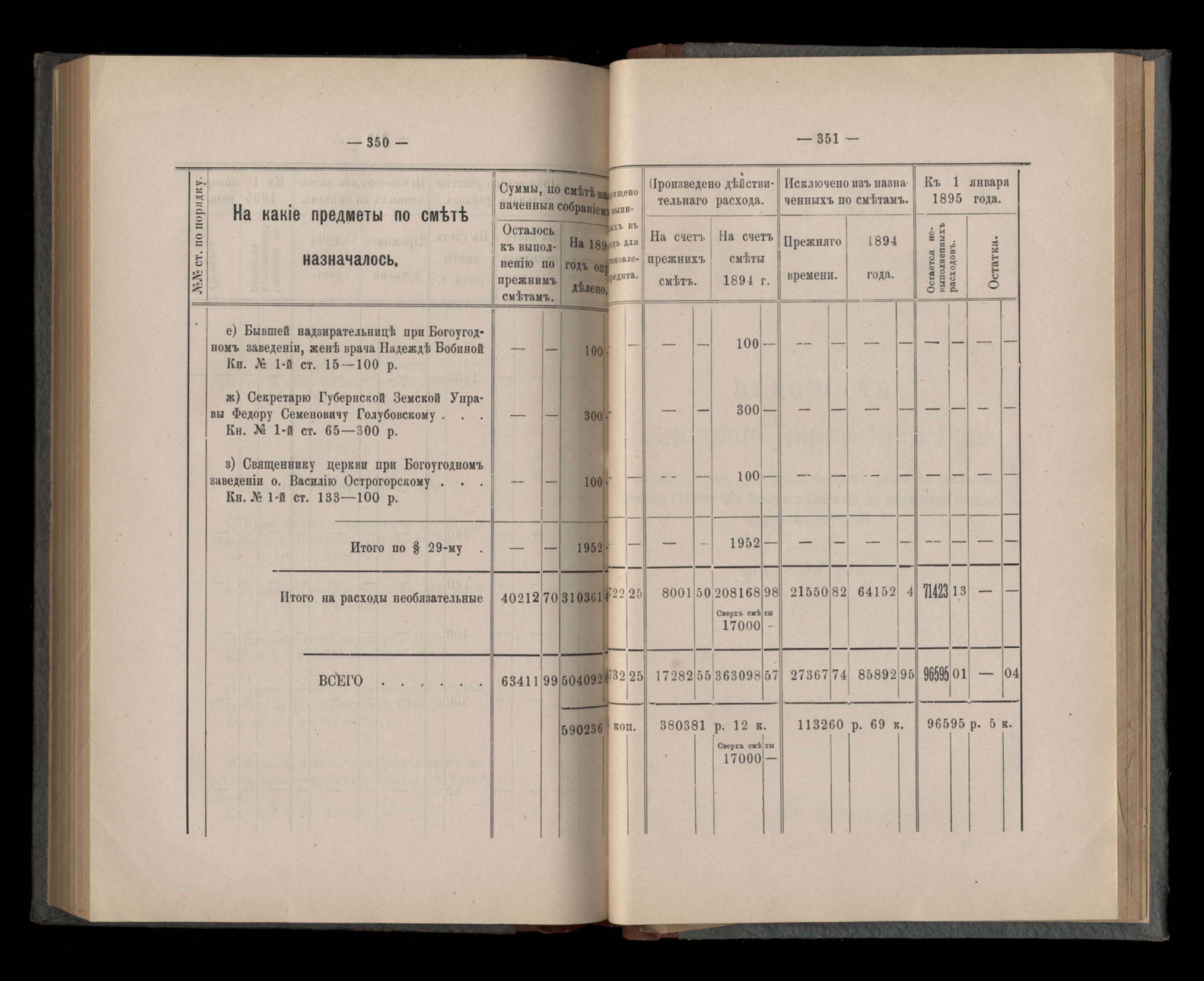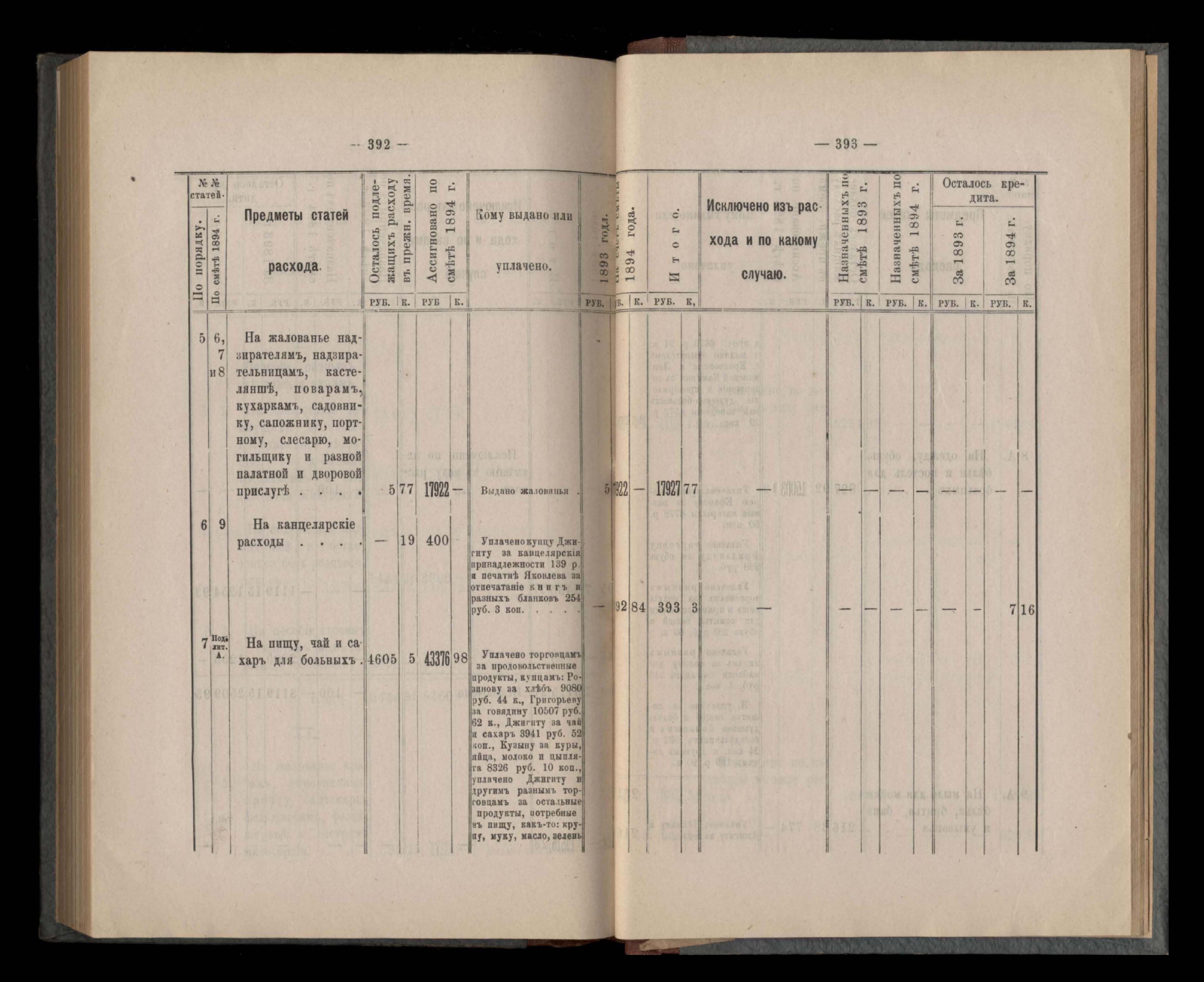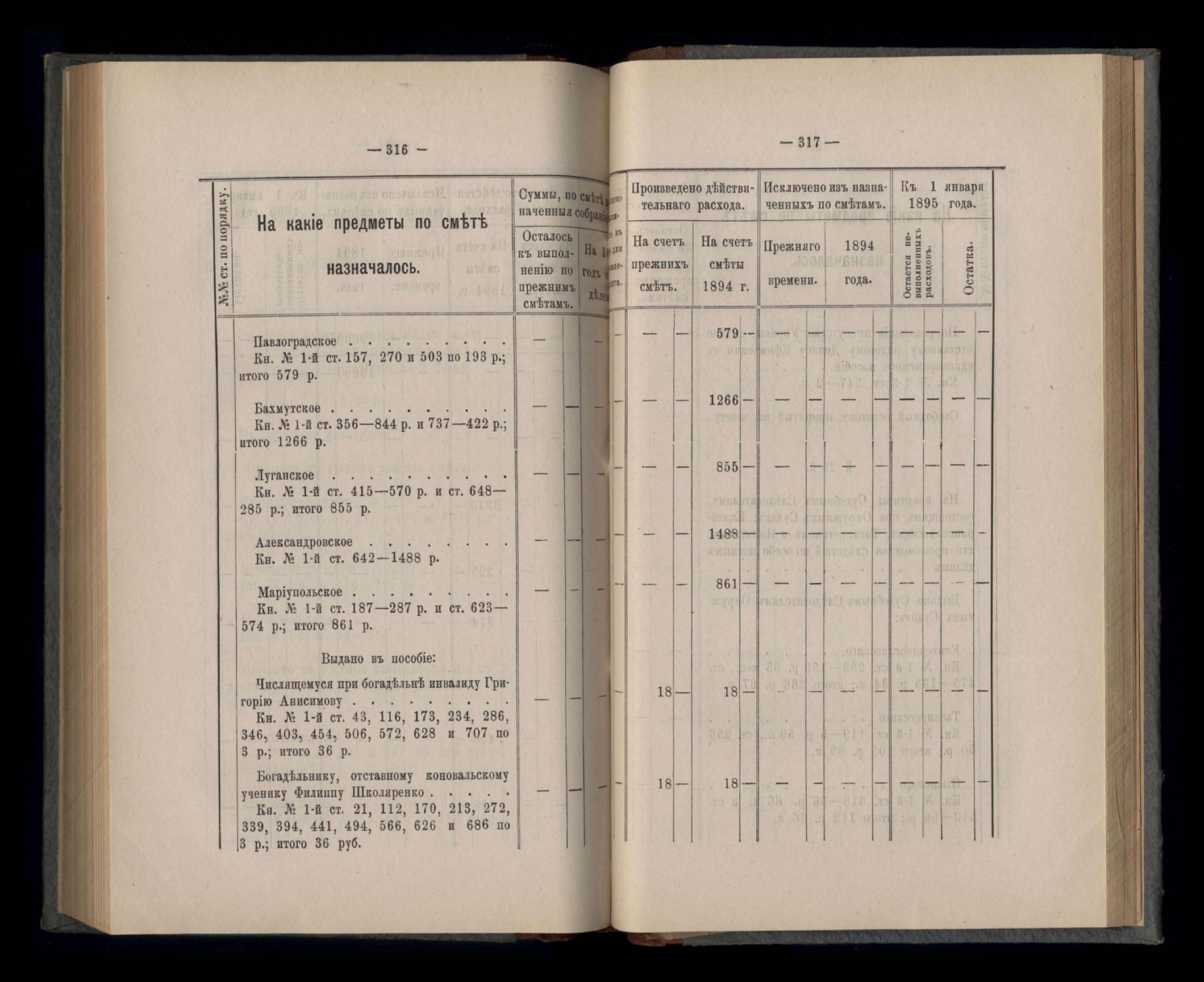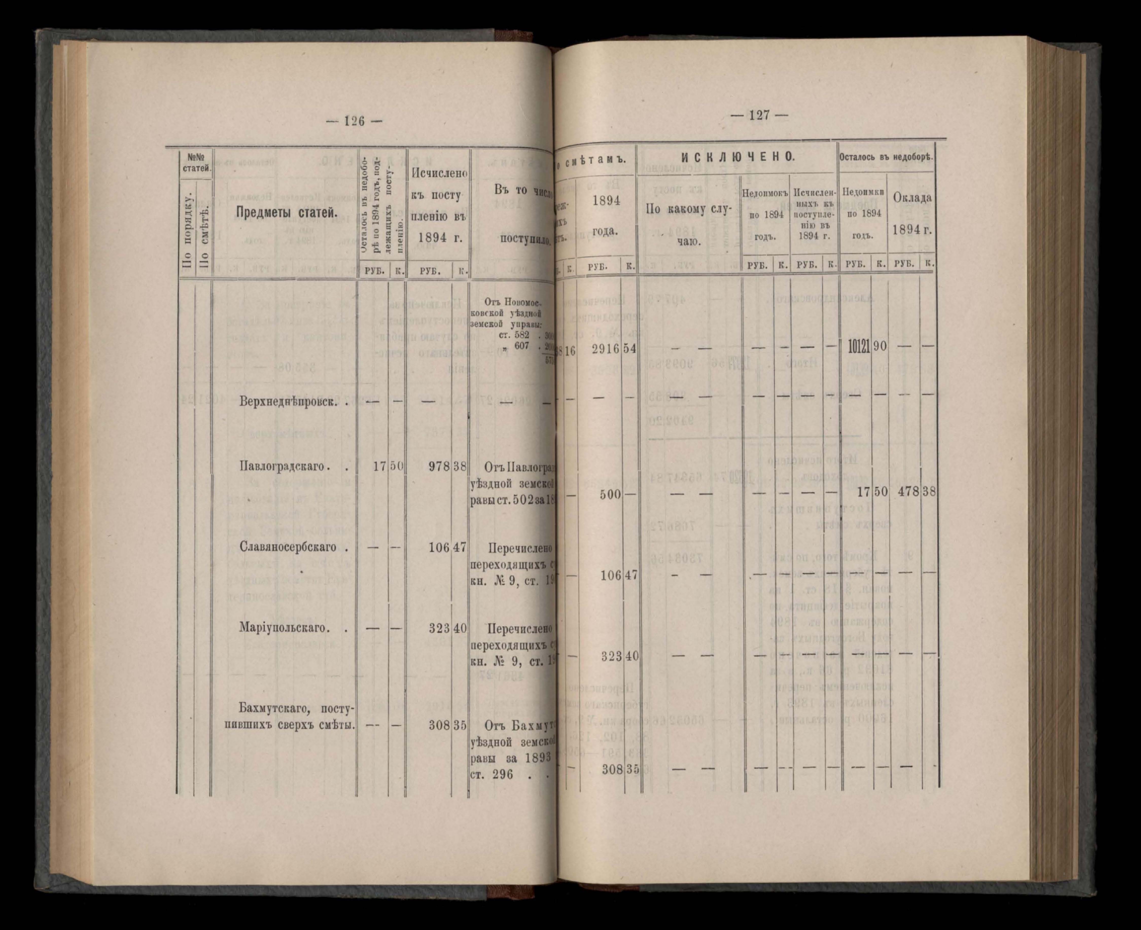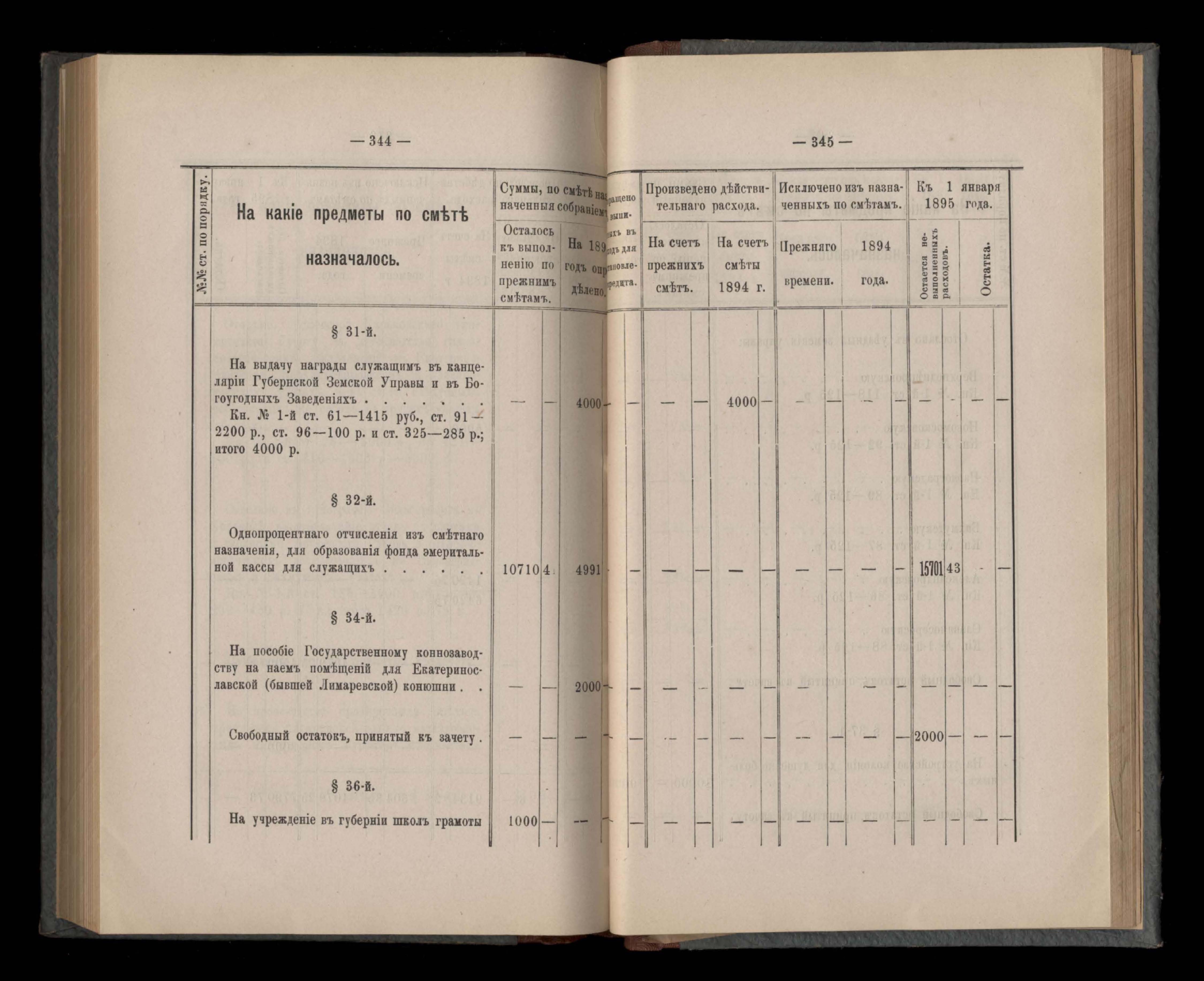 Въдомостъ Екатеринославской губернской земской управы о расходъ суммъ губернскаго земскаго сбора, ассигнованныхъ по смътъ за 1894 годъ