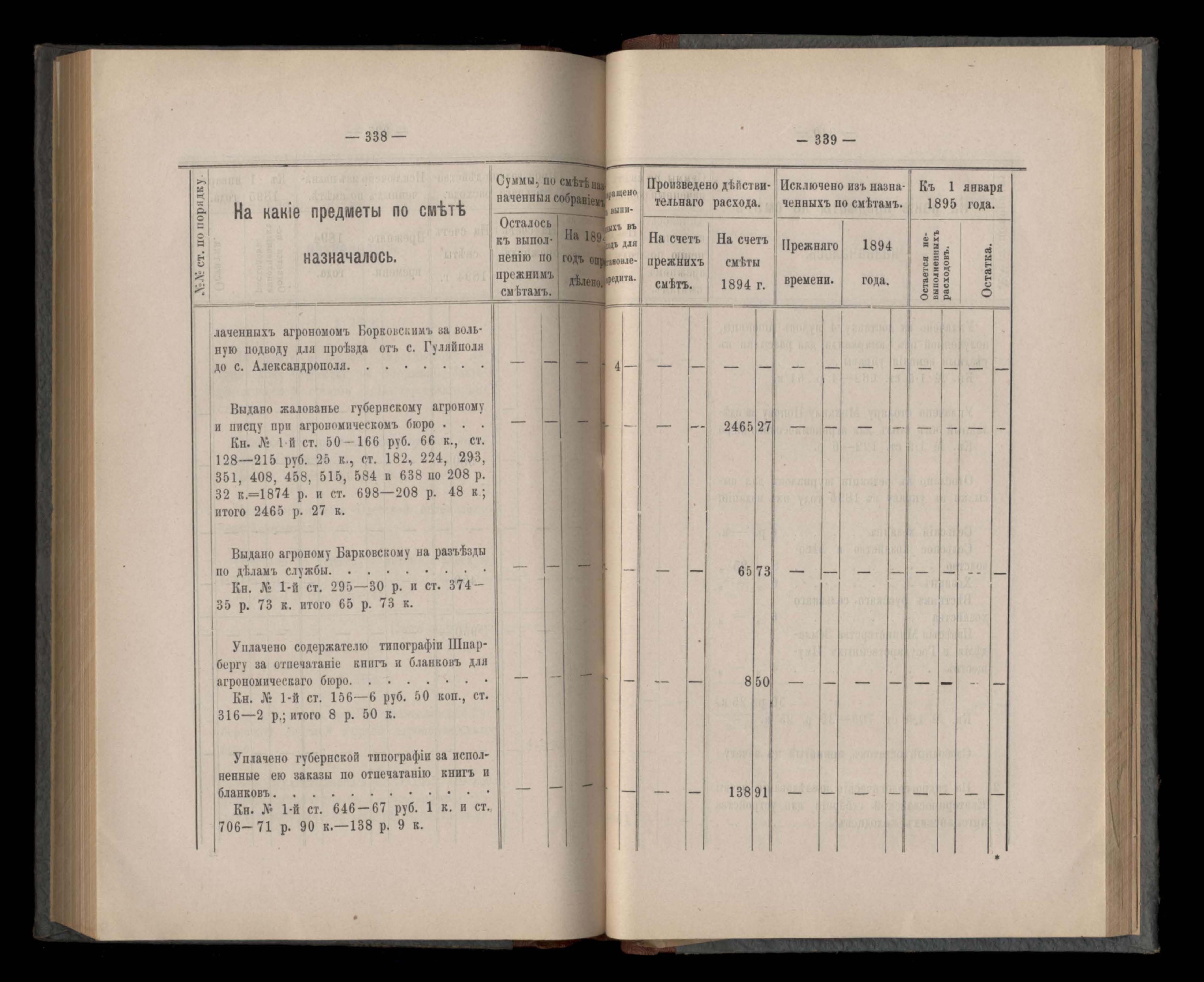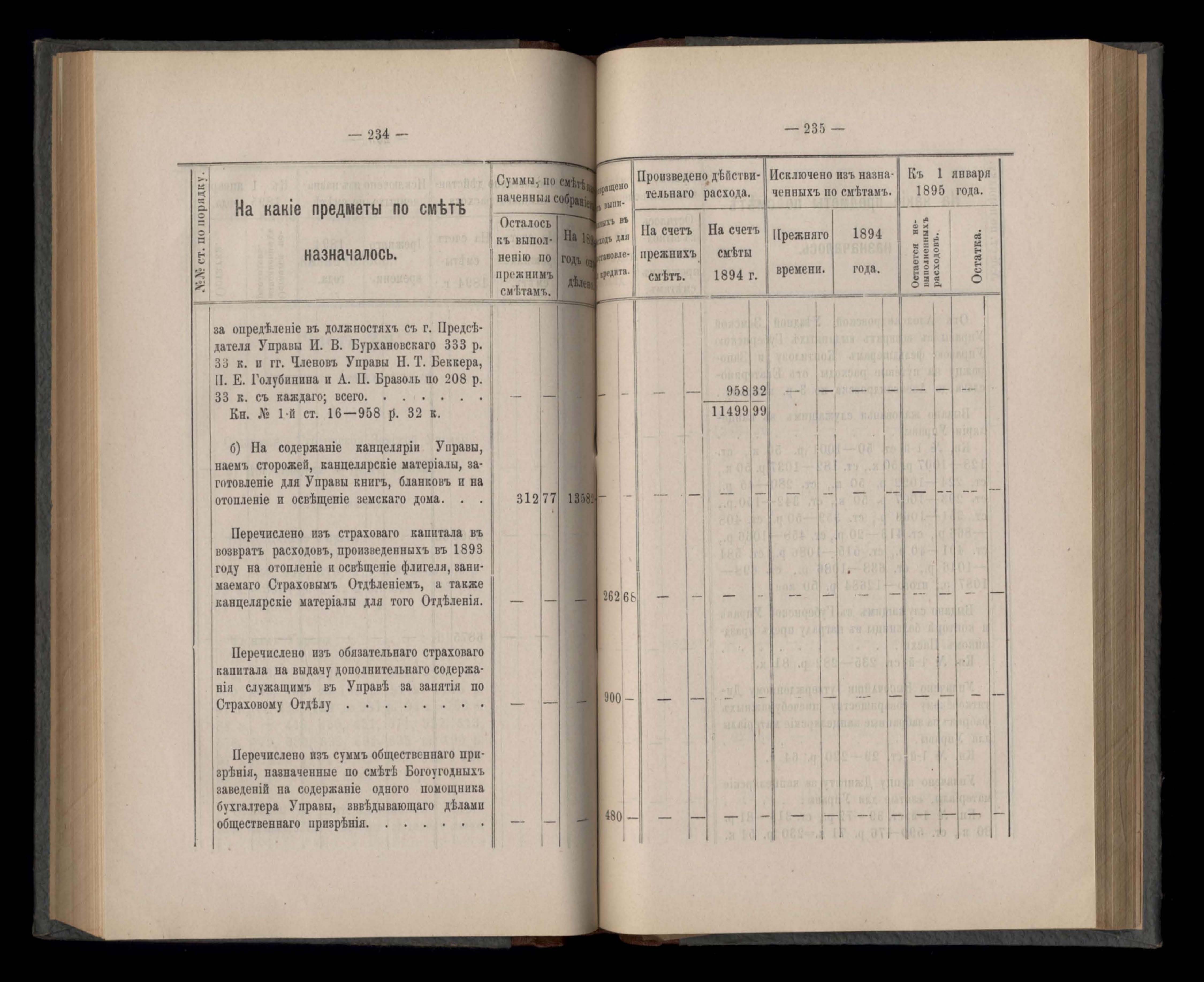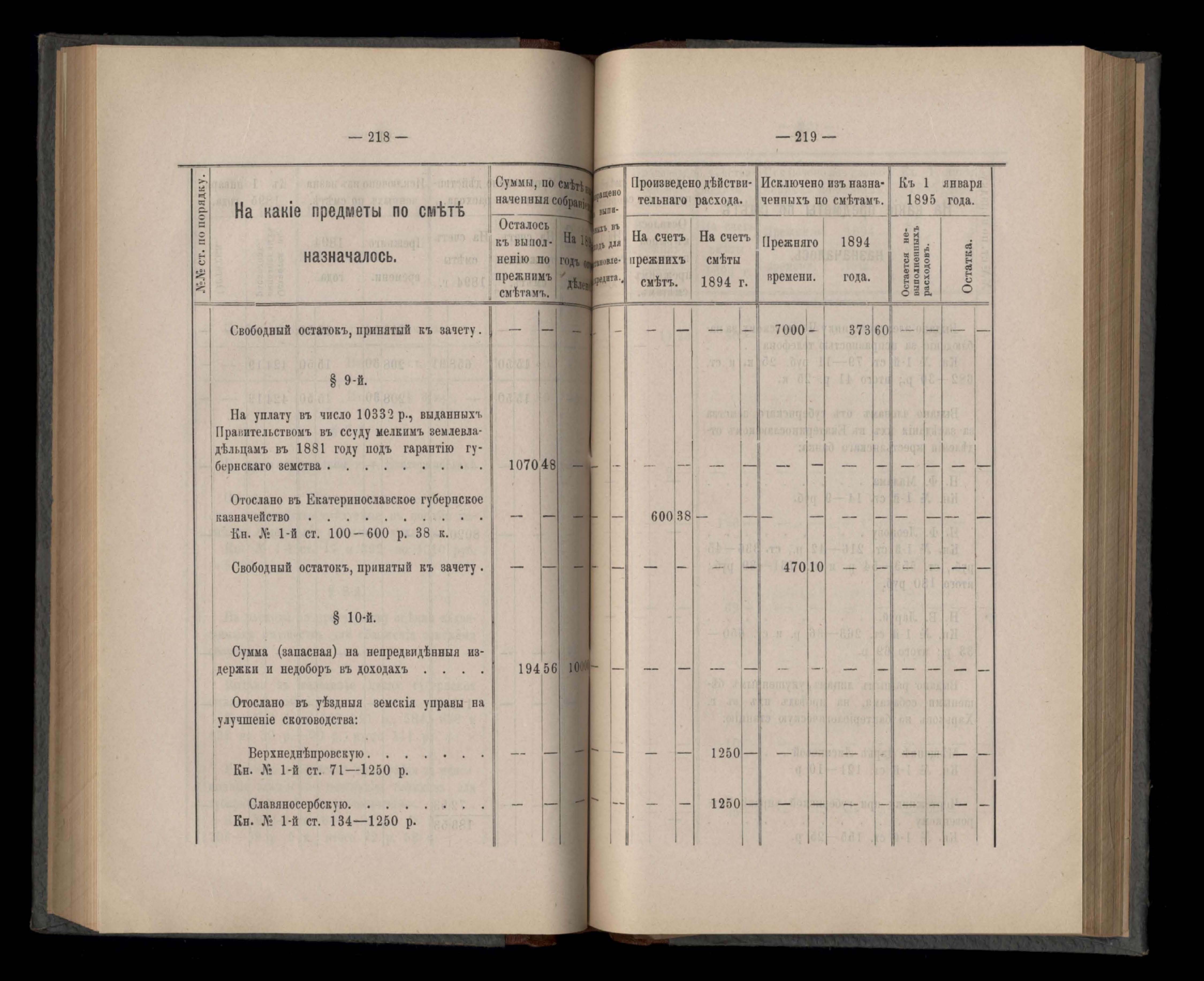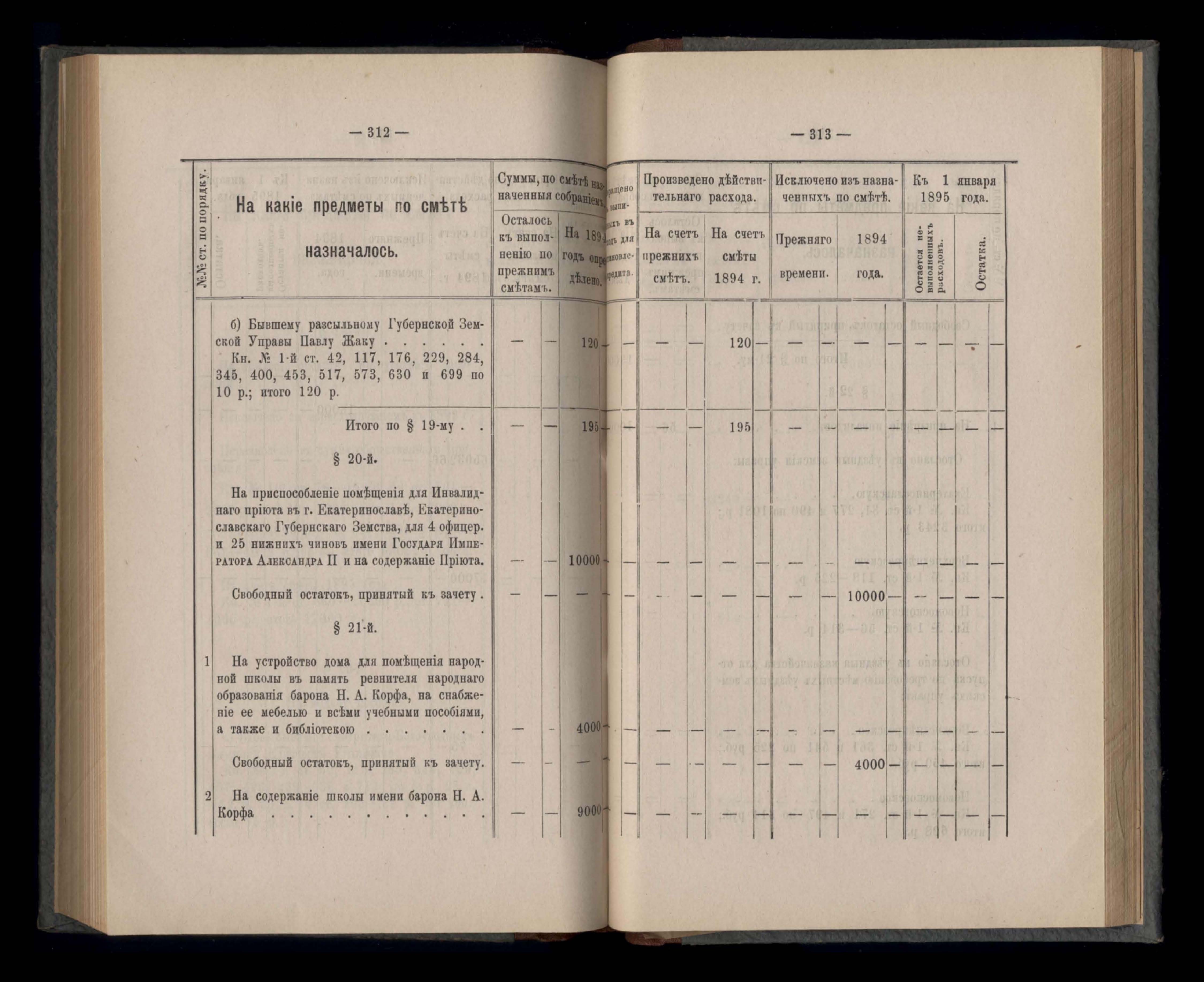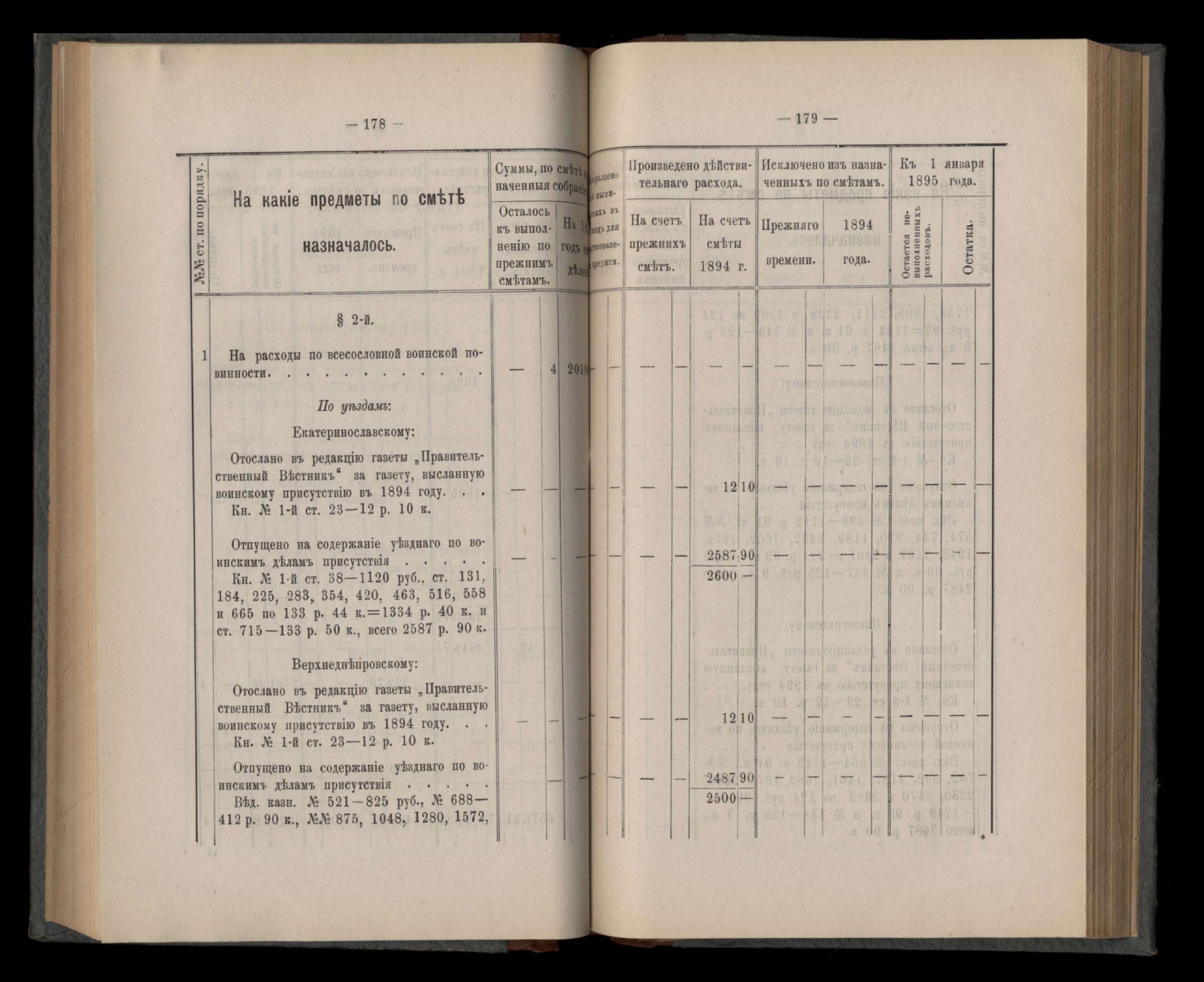 Въдомостъ Екатеринославской губернской земской управы о расходъ суммъ губернскаго земскаго сбора, ассигнованныхъ по смътъ за 1894 годъ