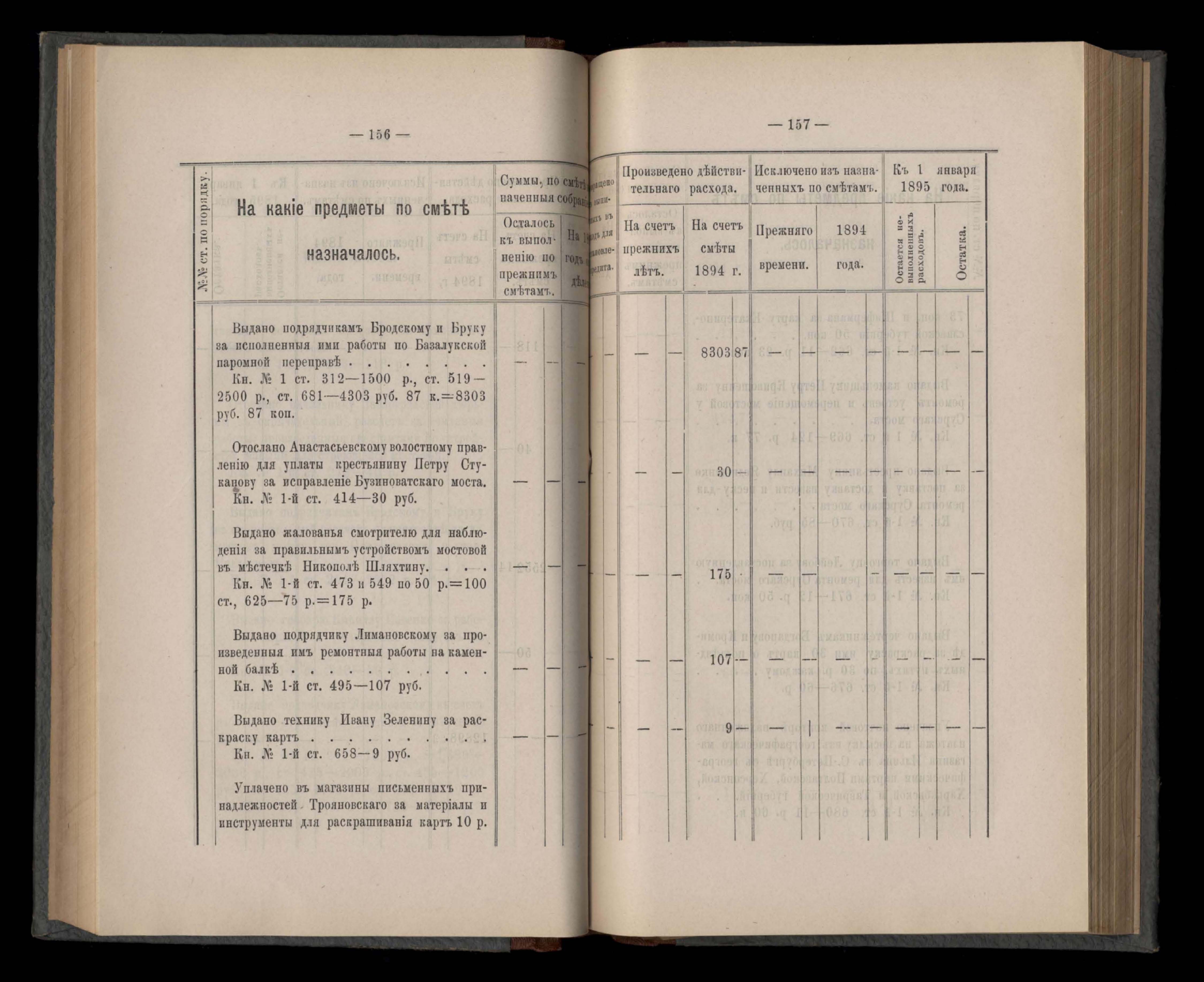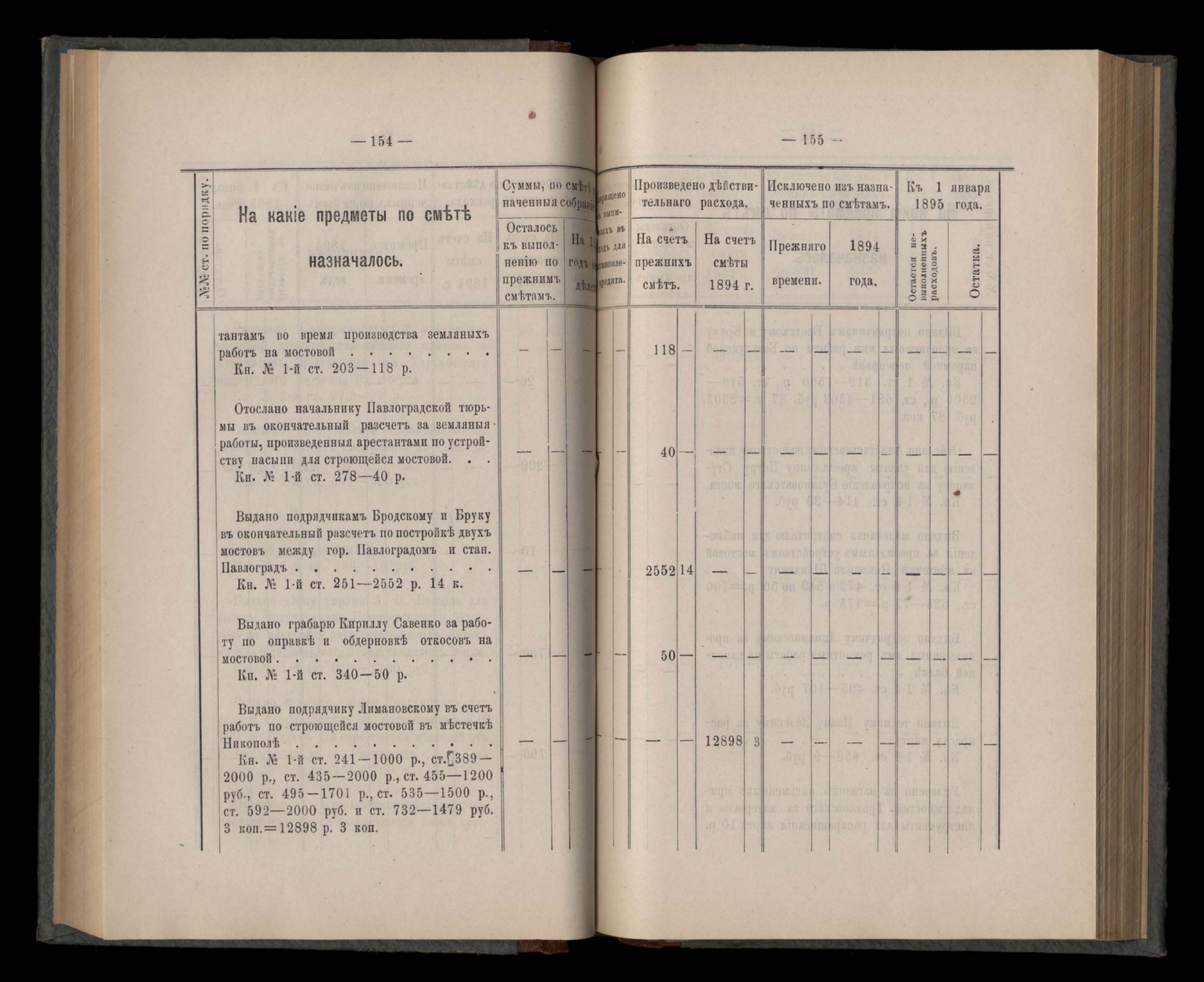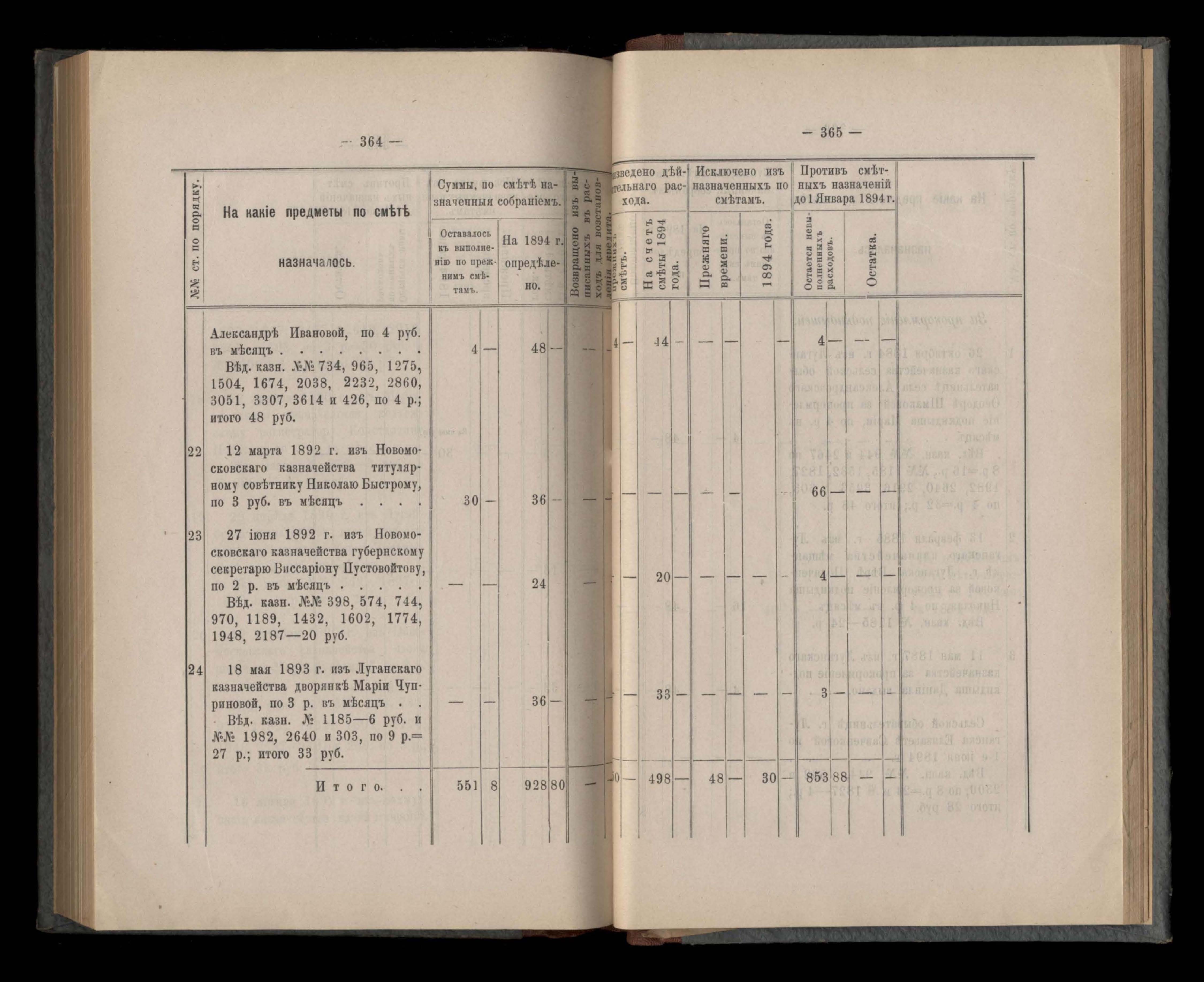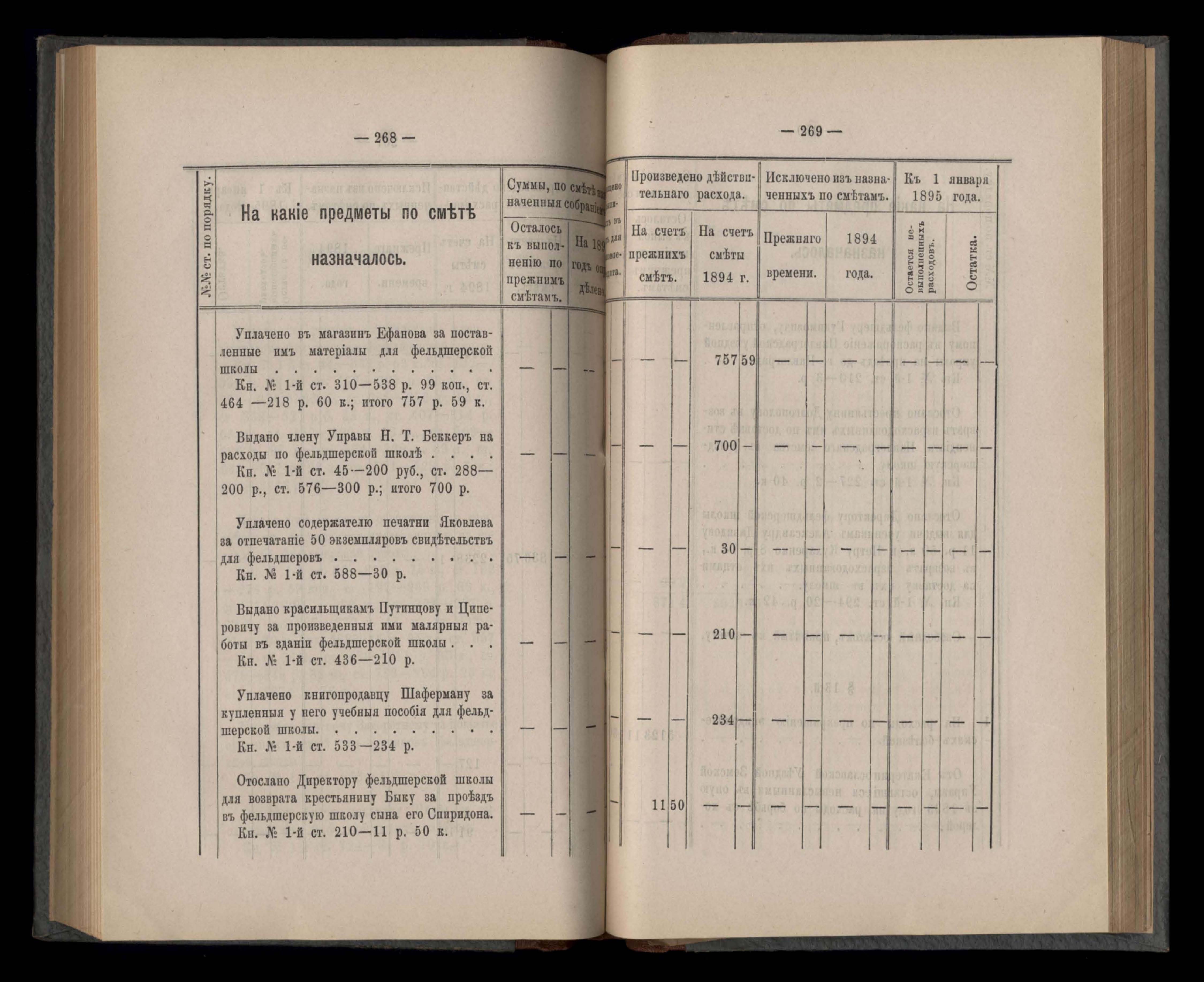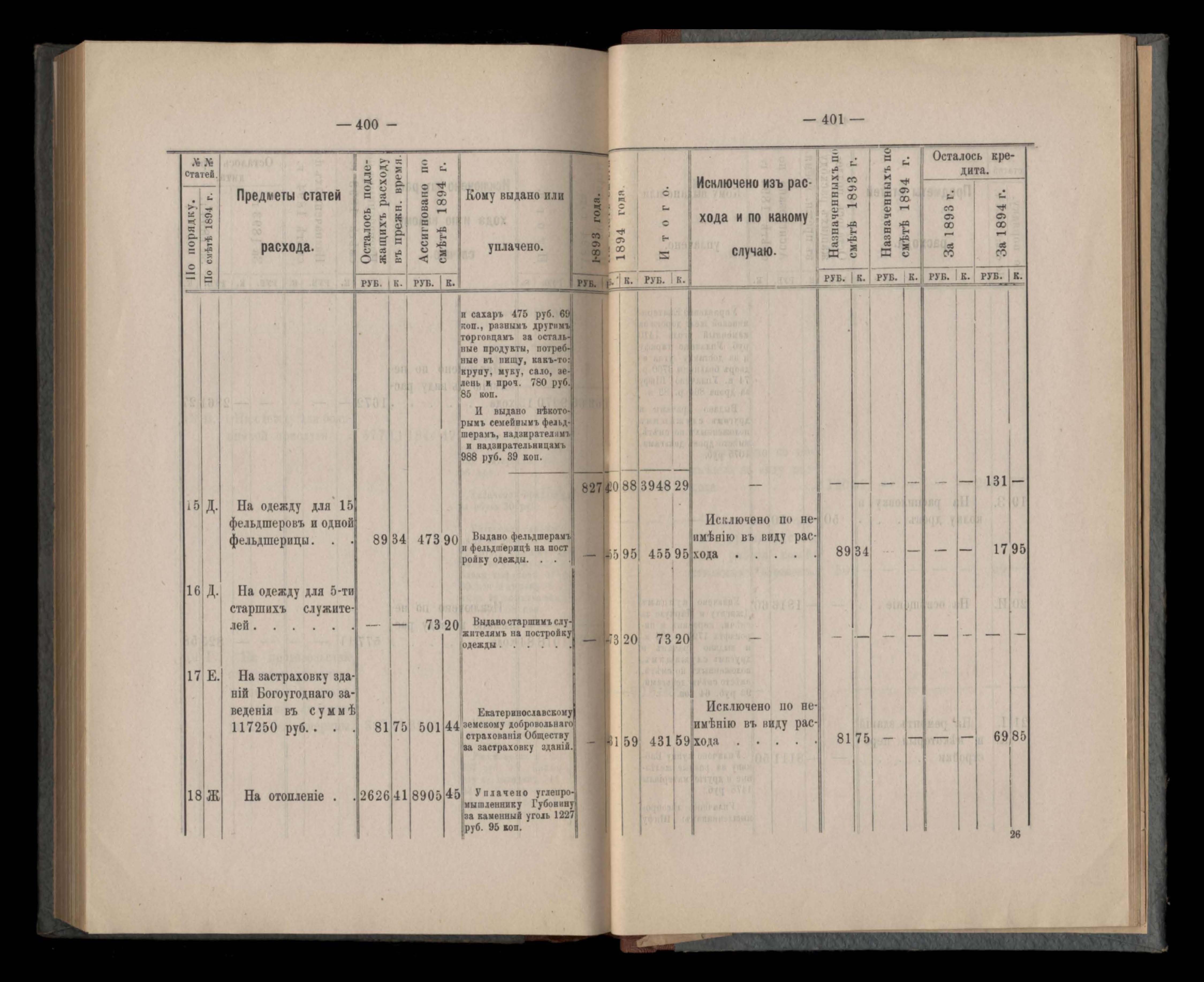 Въдомостъ Екатеринославской губернской земской управы о расходъ суммъ губернскаго земскаго сбора, ассигнованныхъ по смътъ за 1894 годъ
