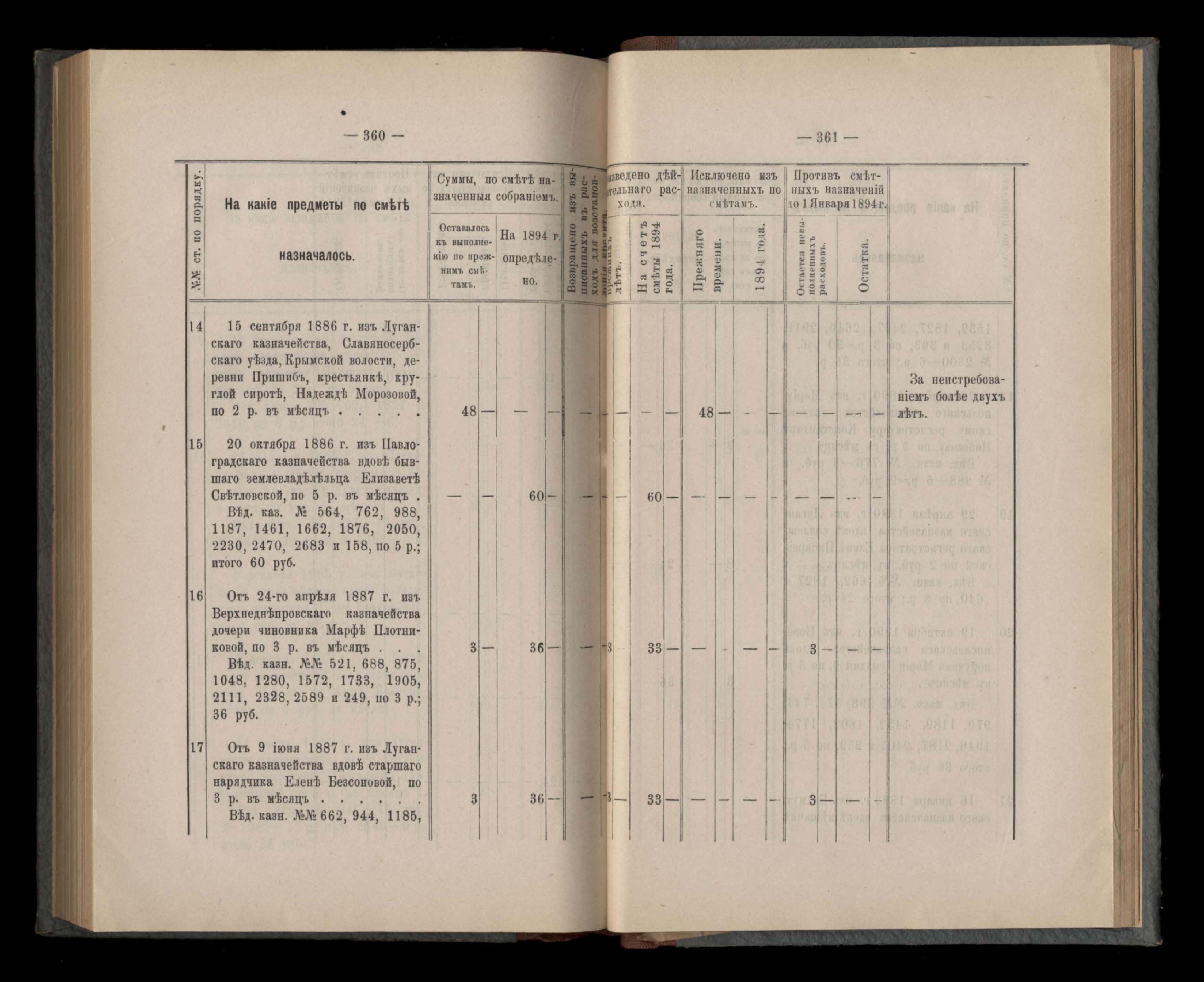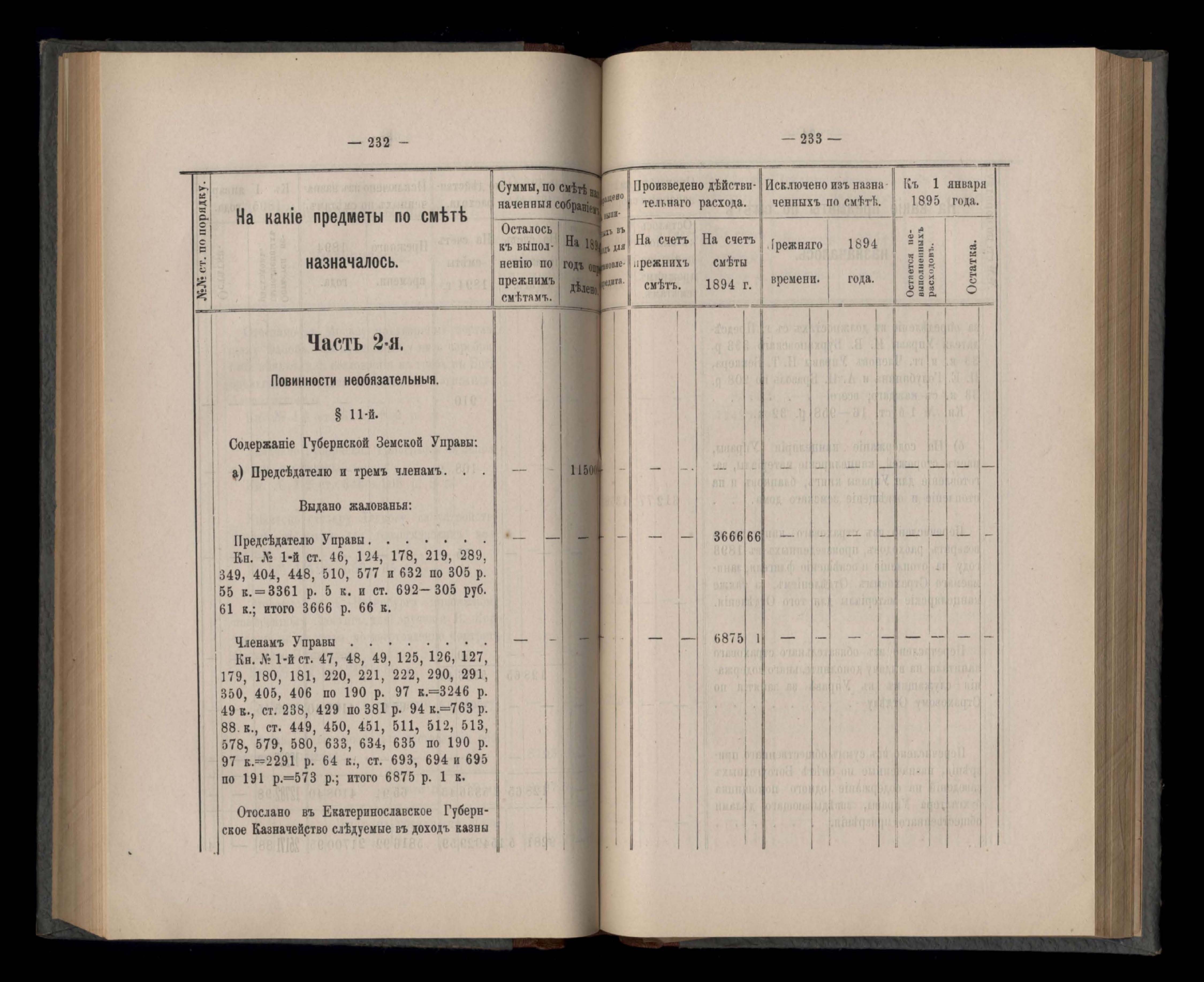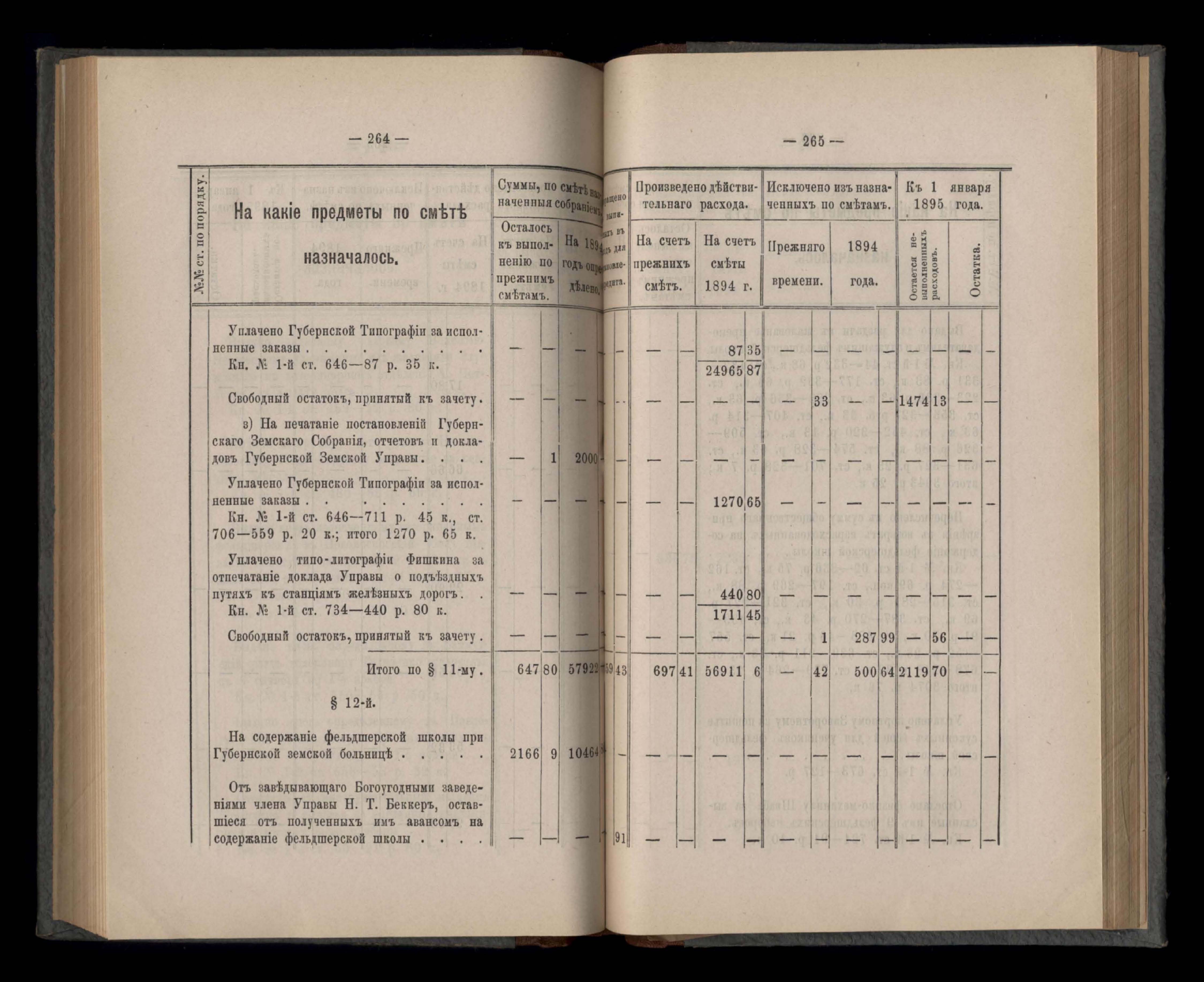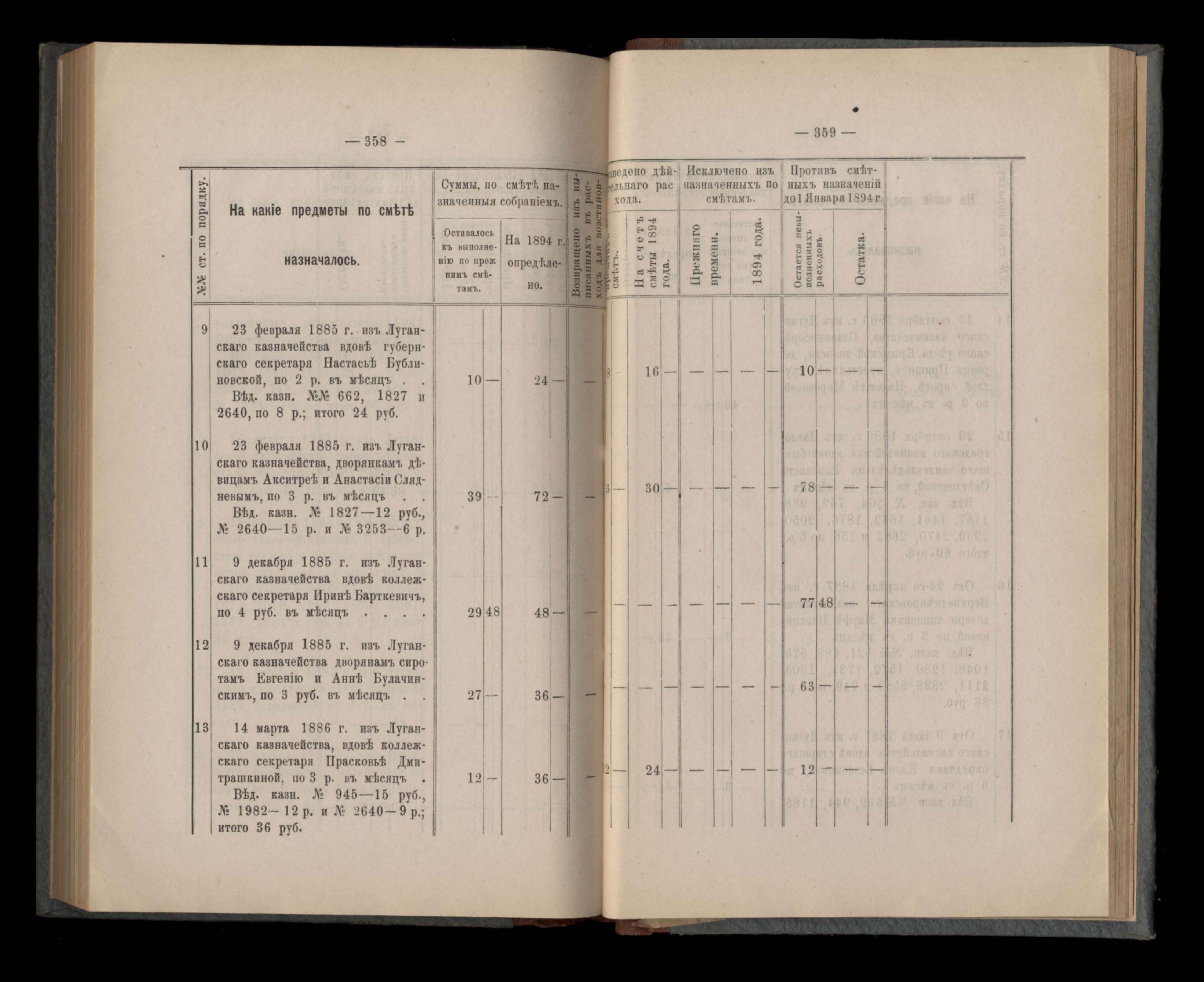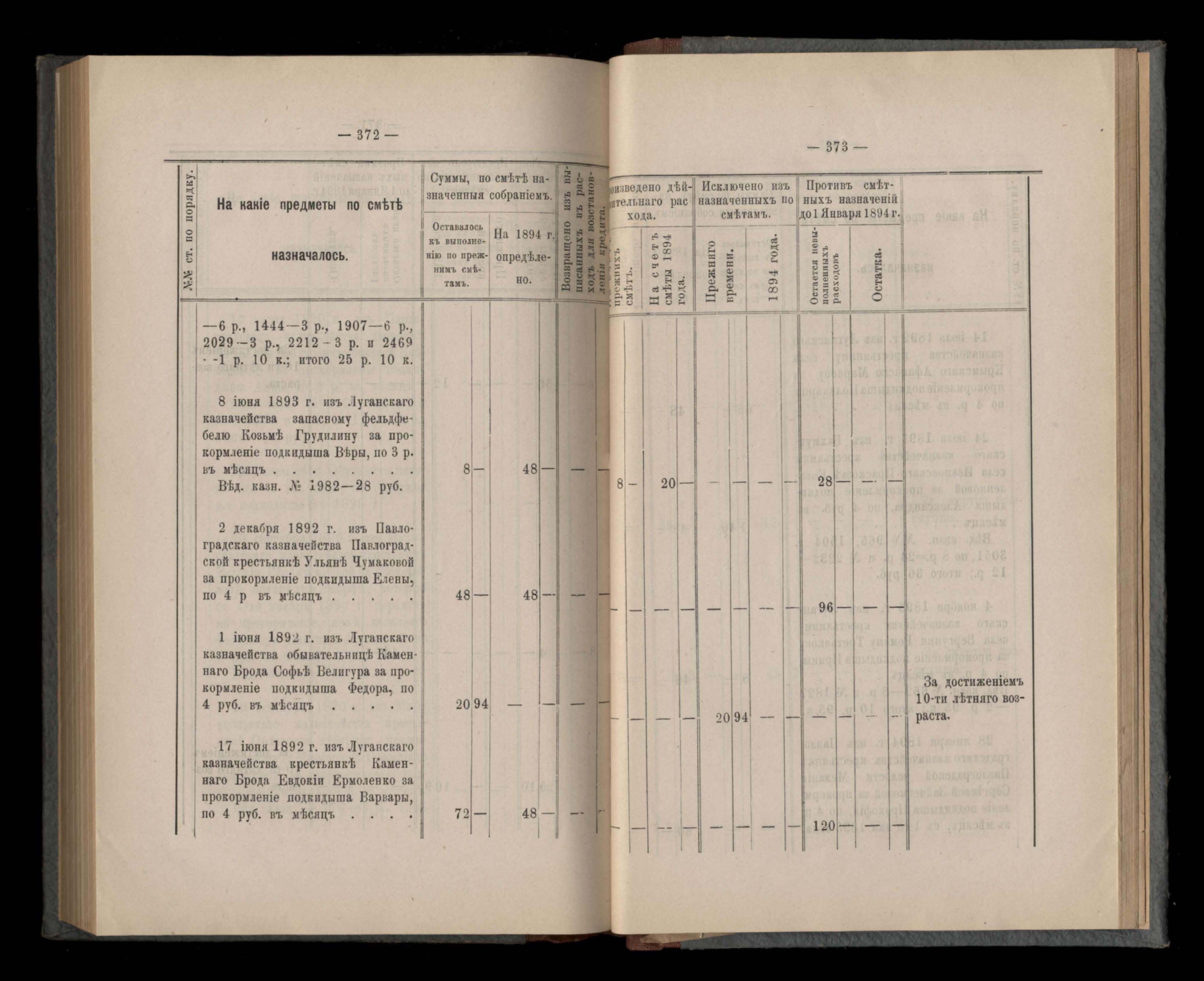 Въдомостъ Екатеринославской губернской земской управы о расходъ суммъ губернскаго земскаго сбора, ассигнованныхъ по смътъ за 1894 годъ