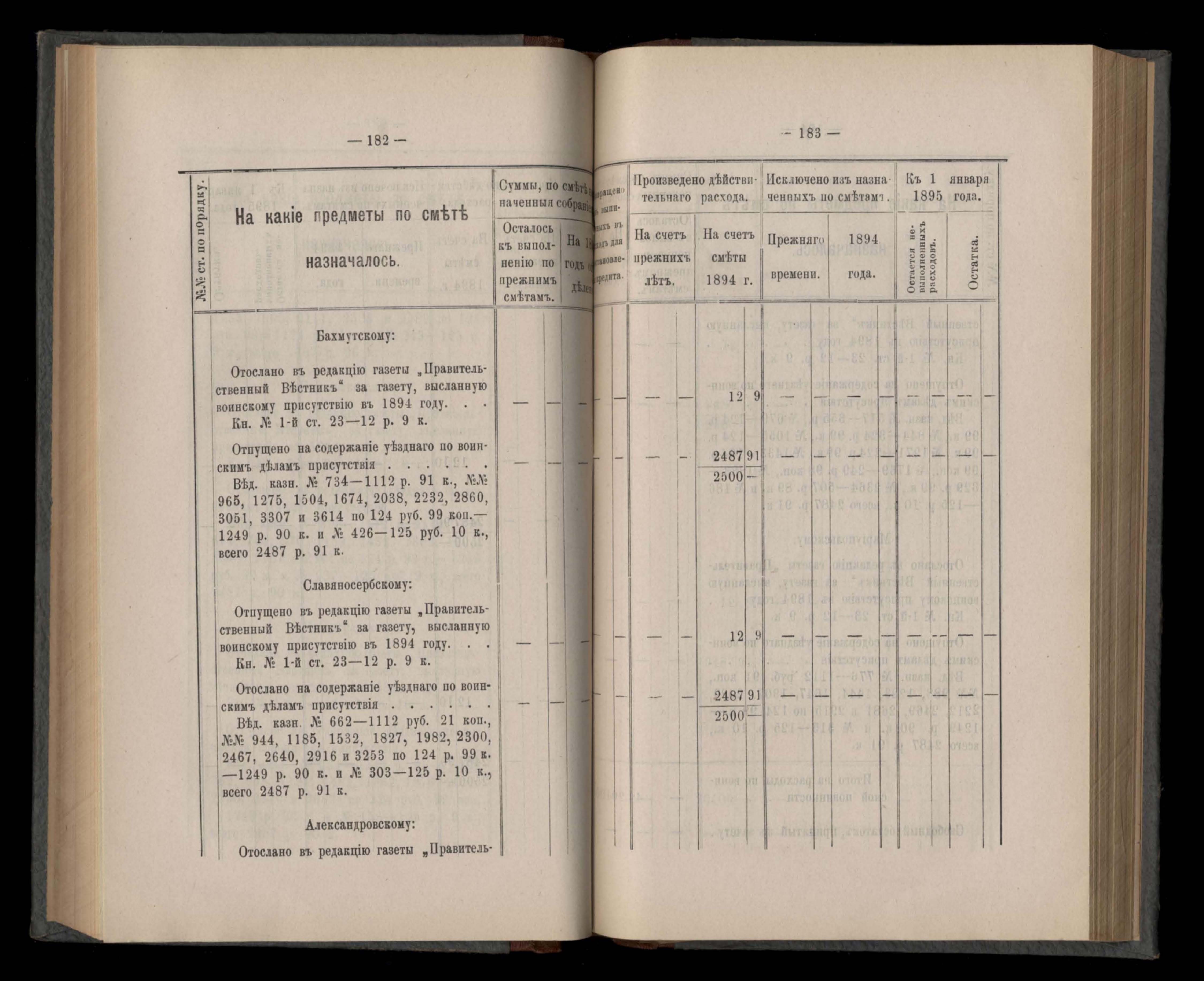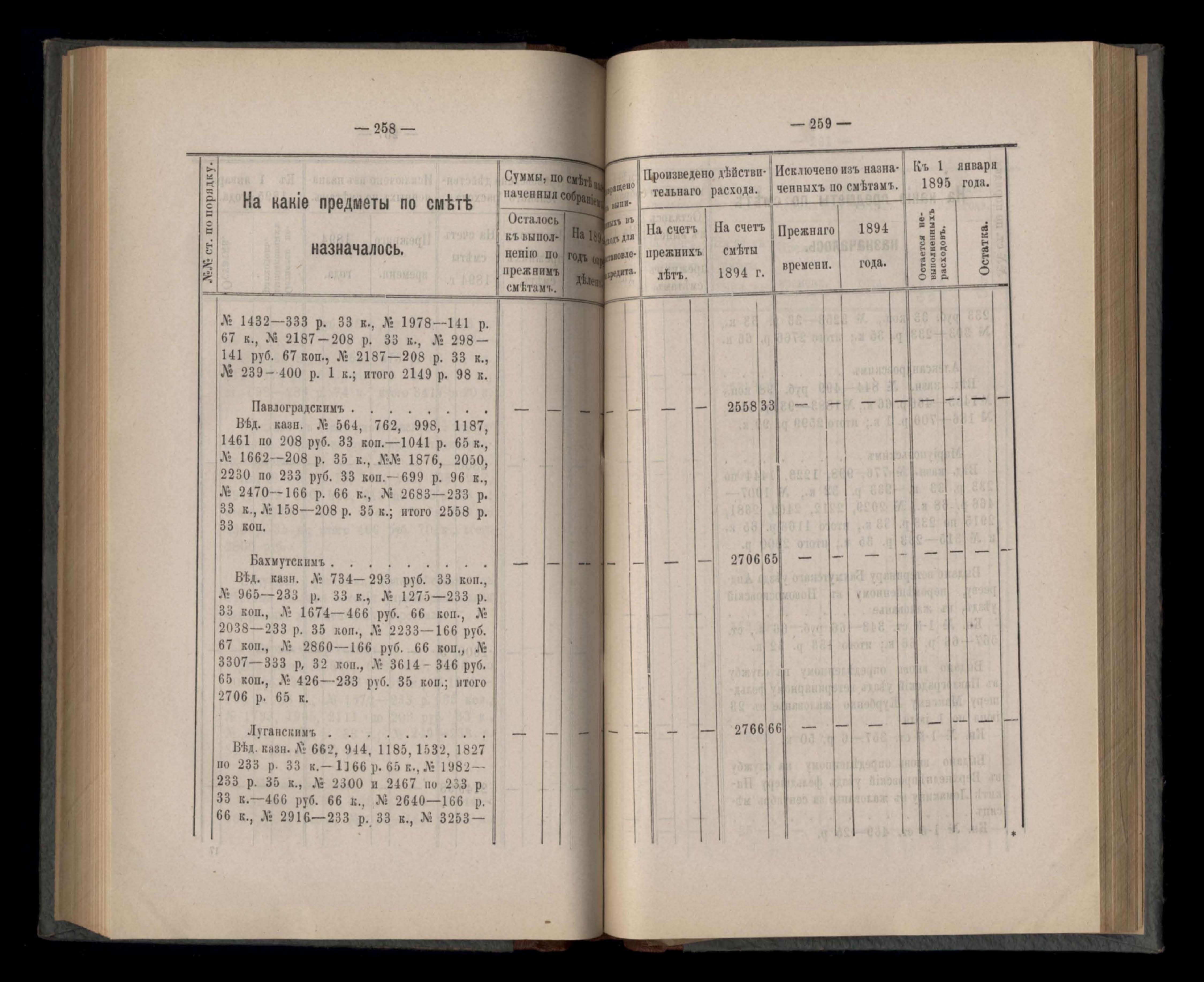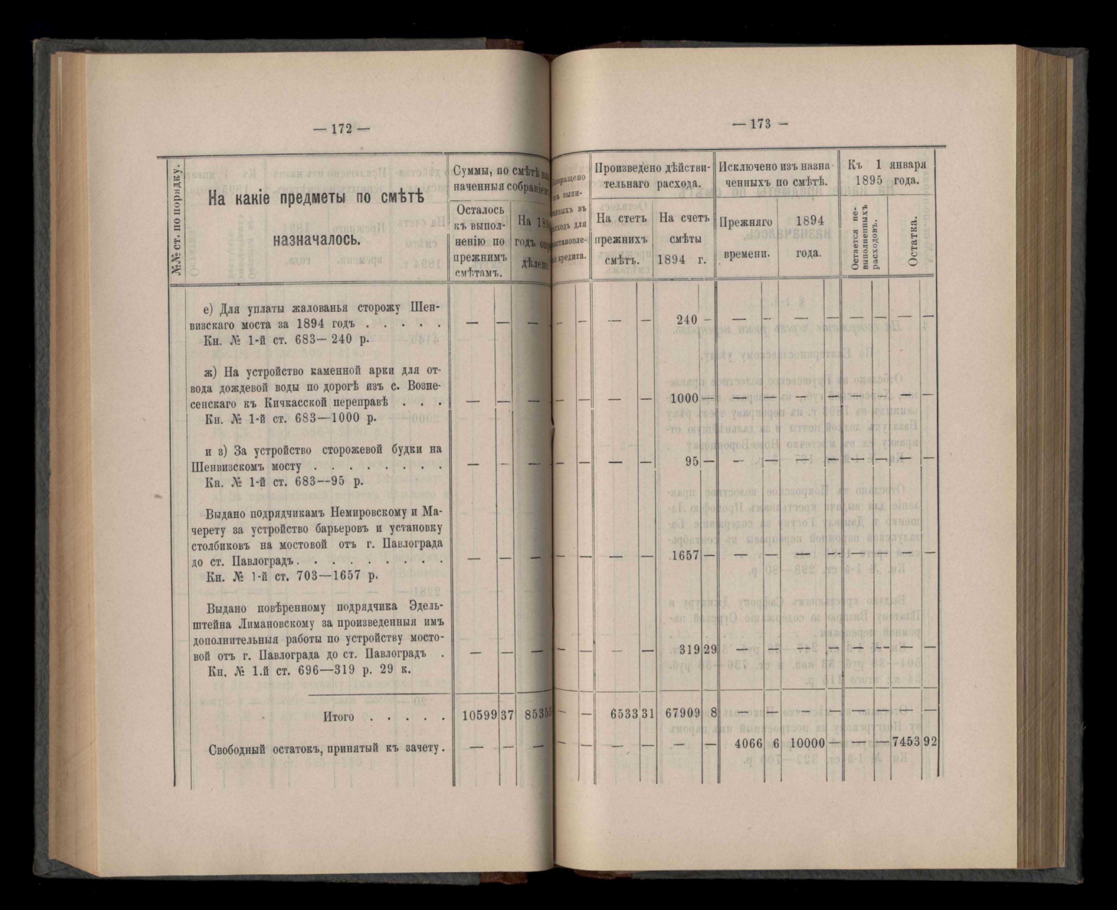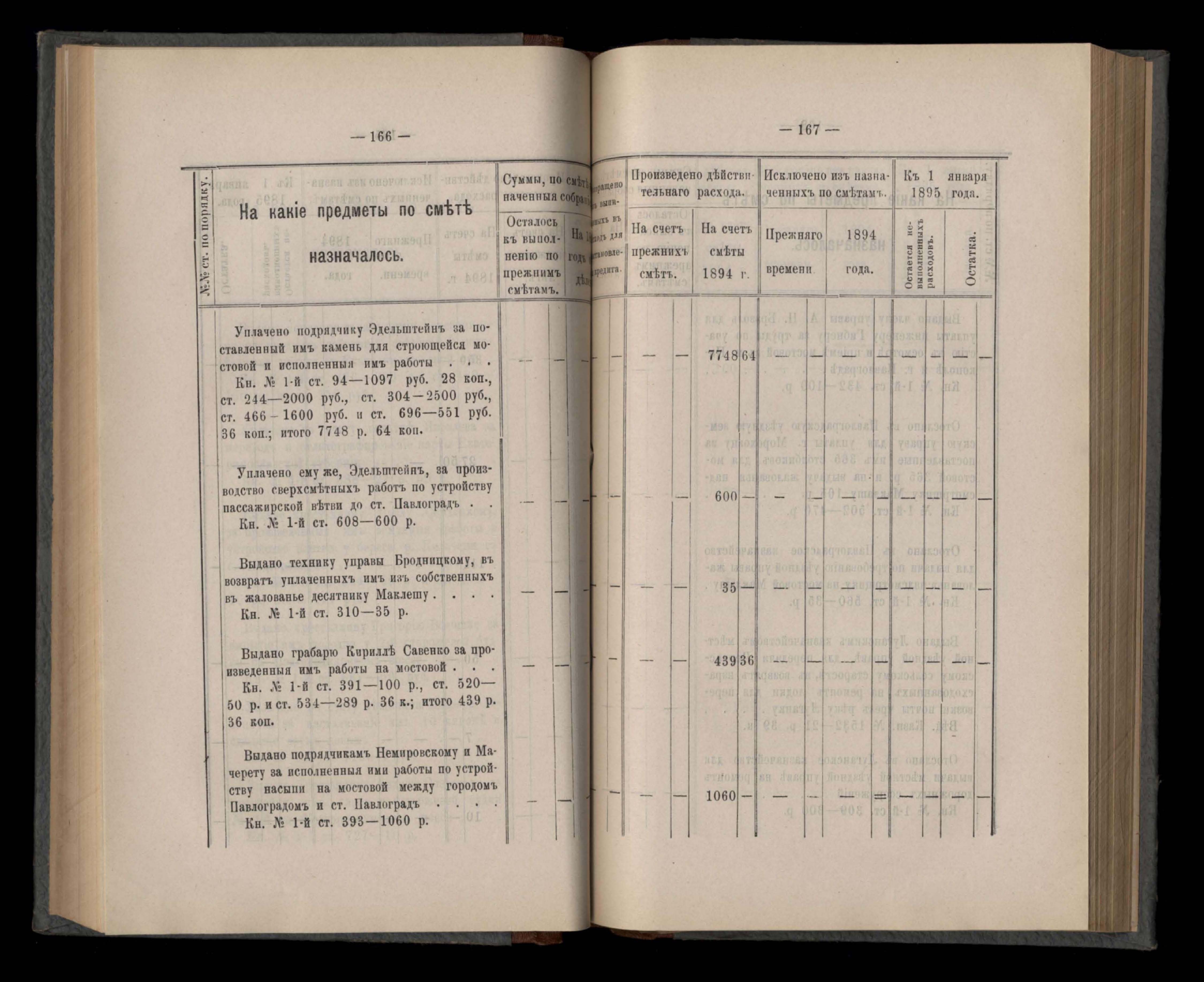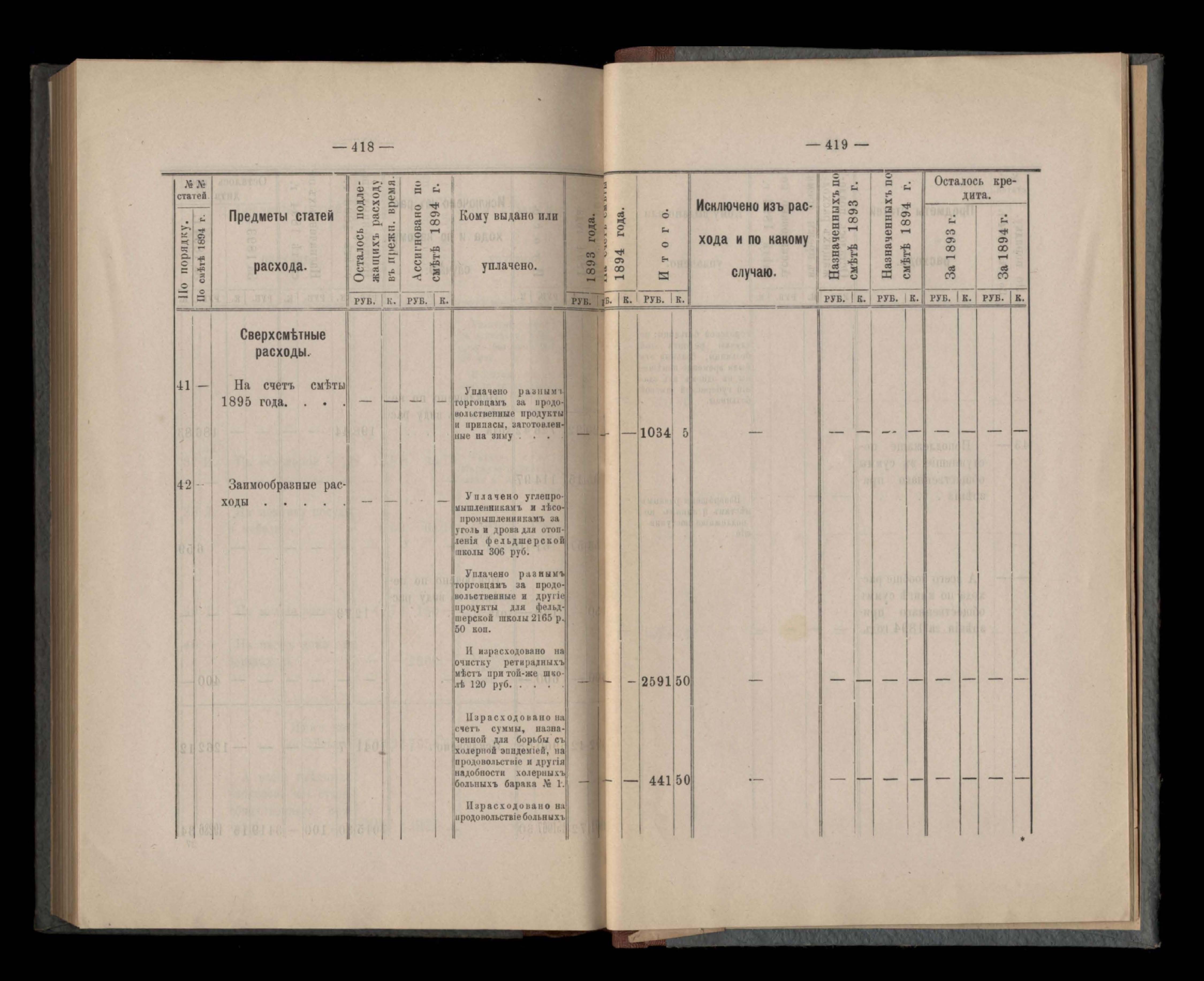 Въдомостъ Екатеринославской губернской земской управы о расходъ суммъ губернскаго земскаго сбора, ассигнованныхъ по смътъ за 1894 годъ