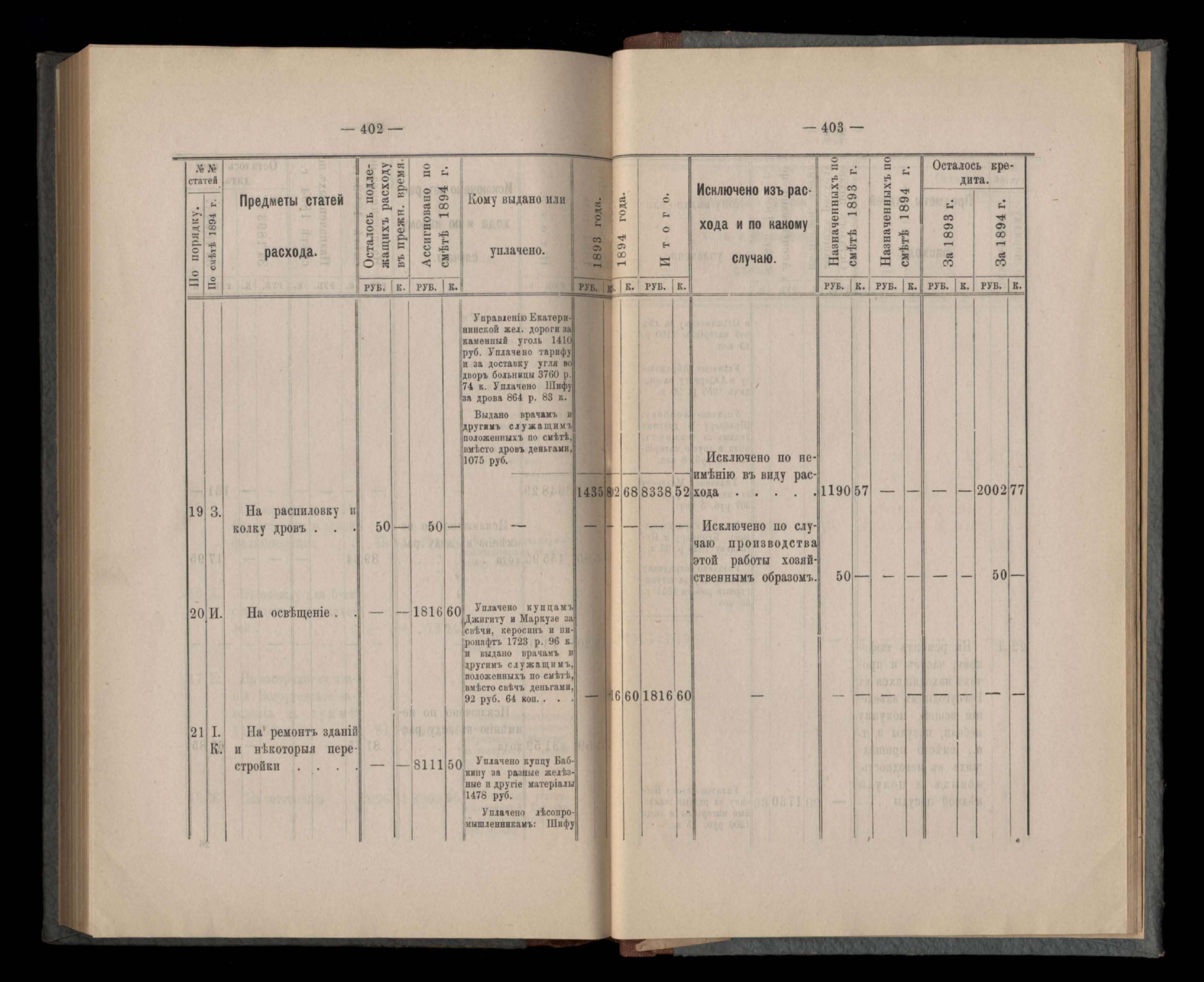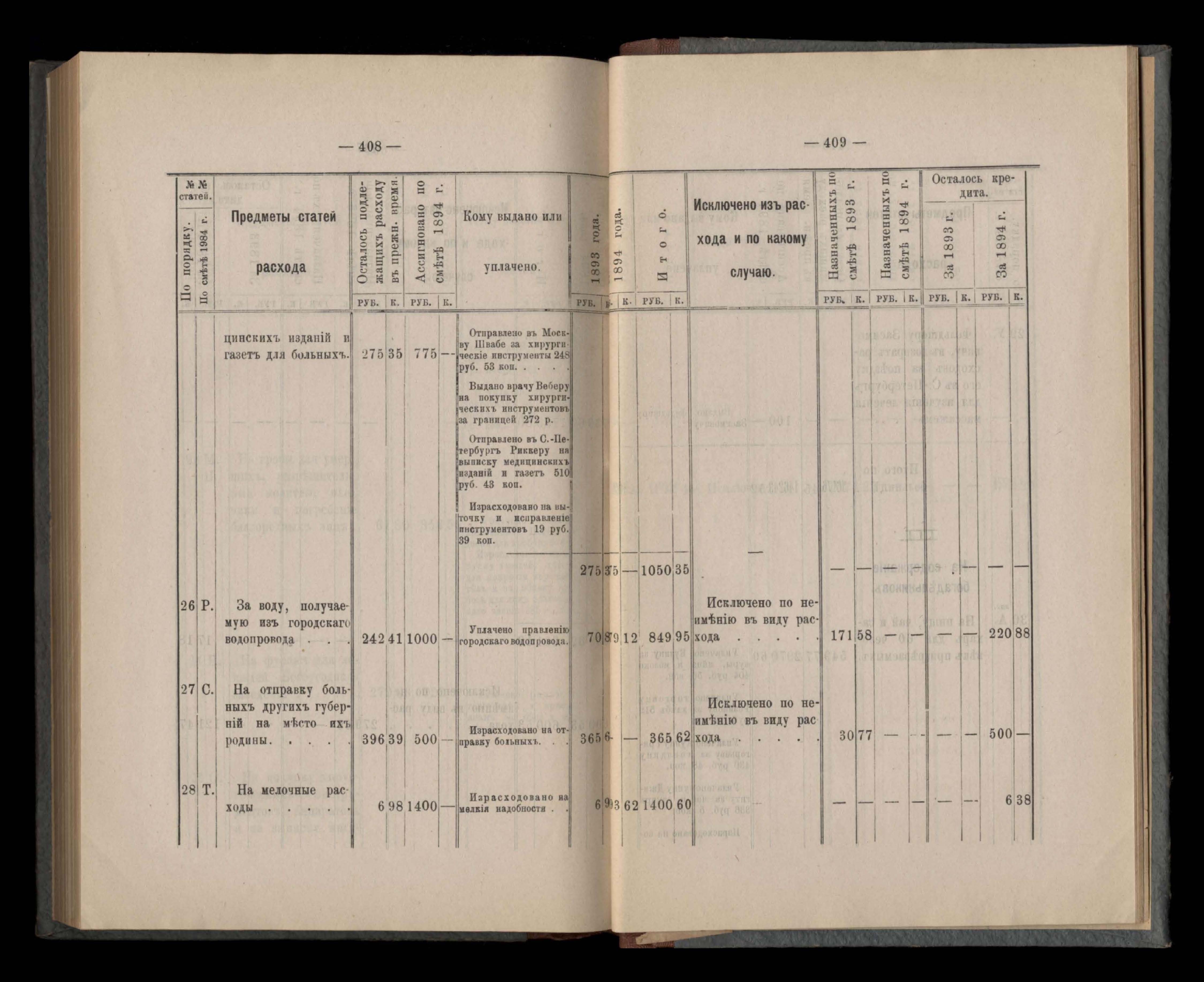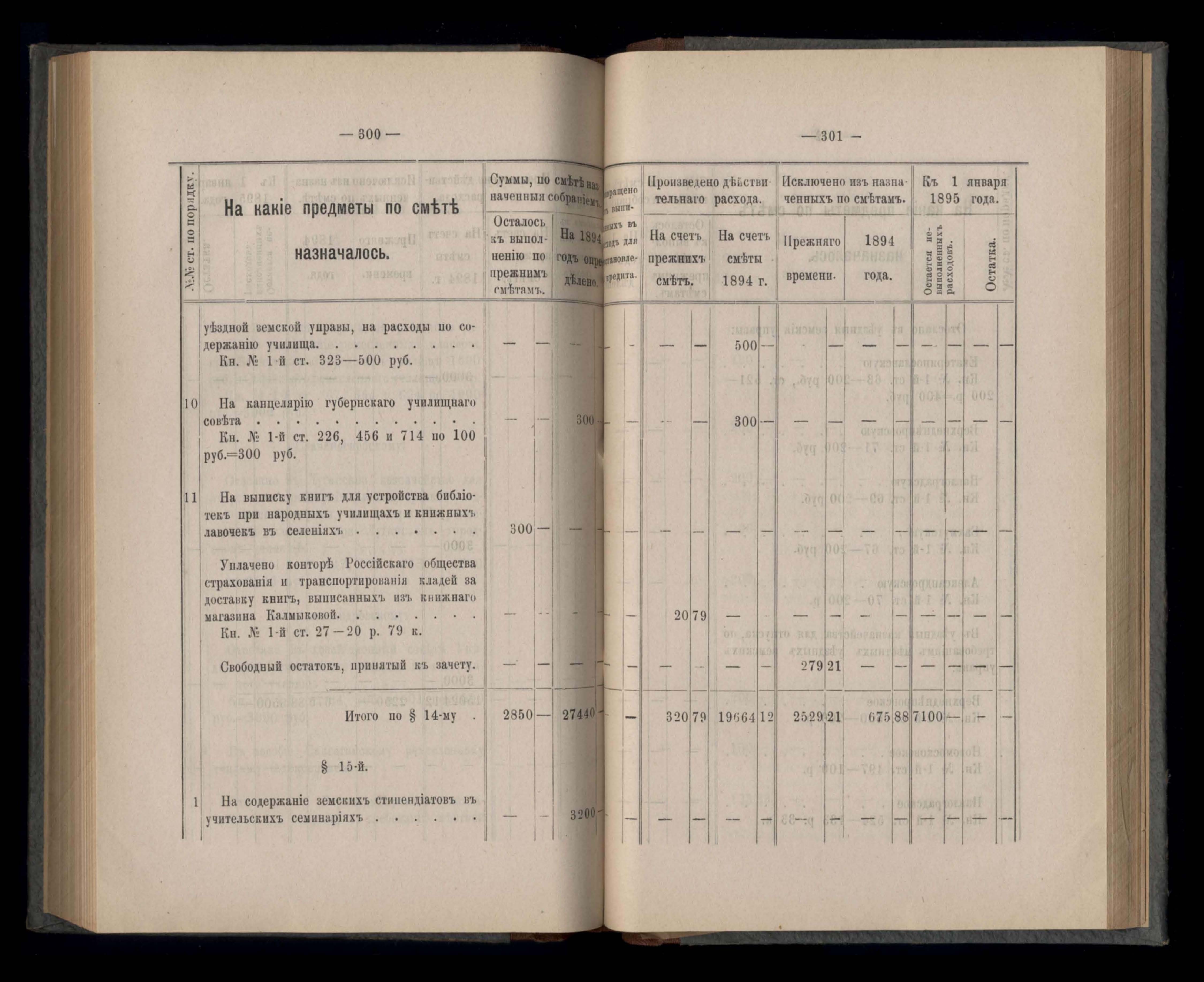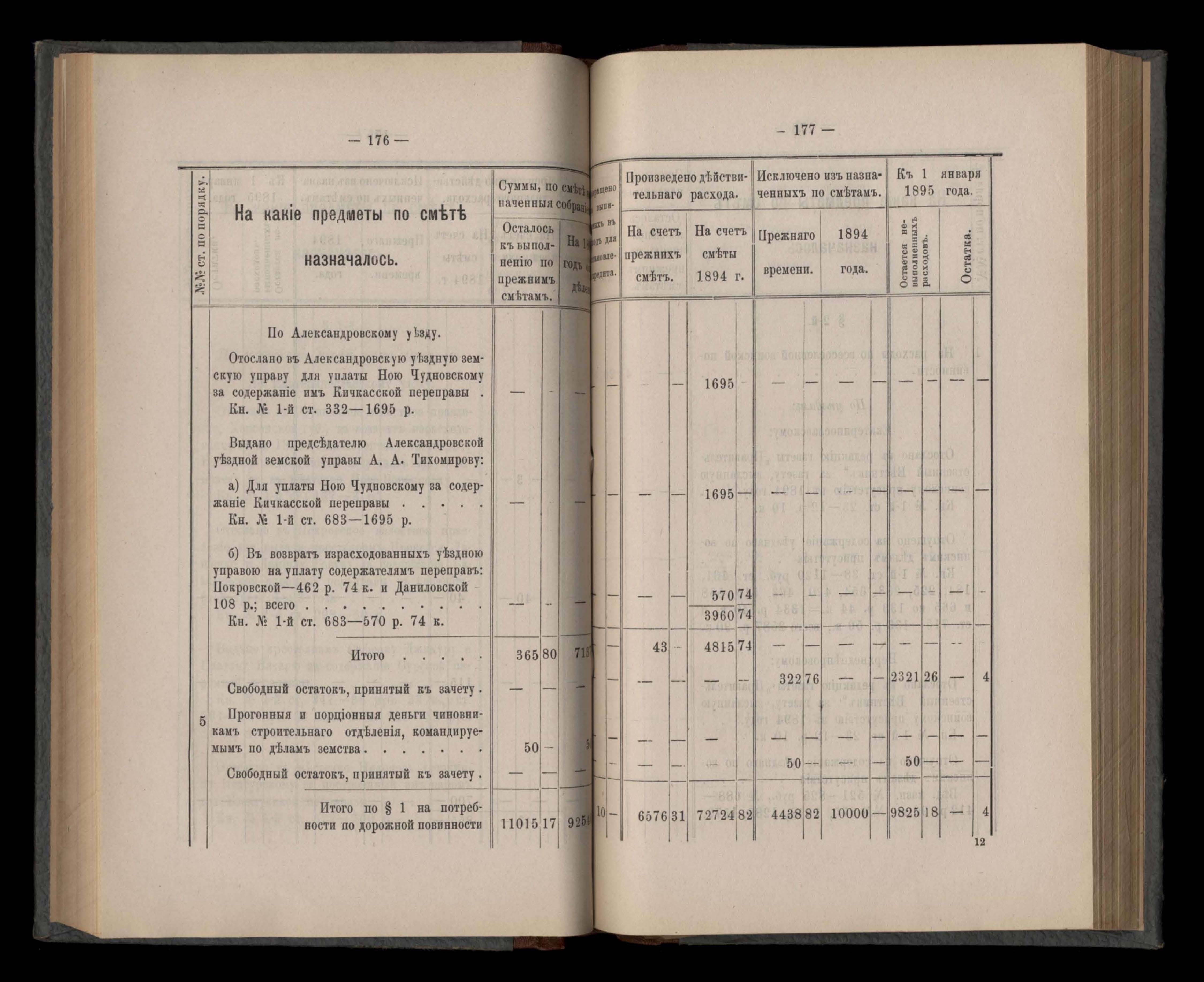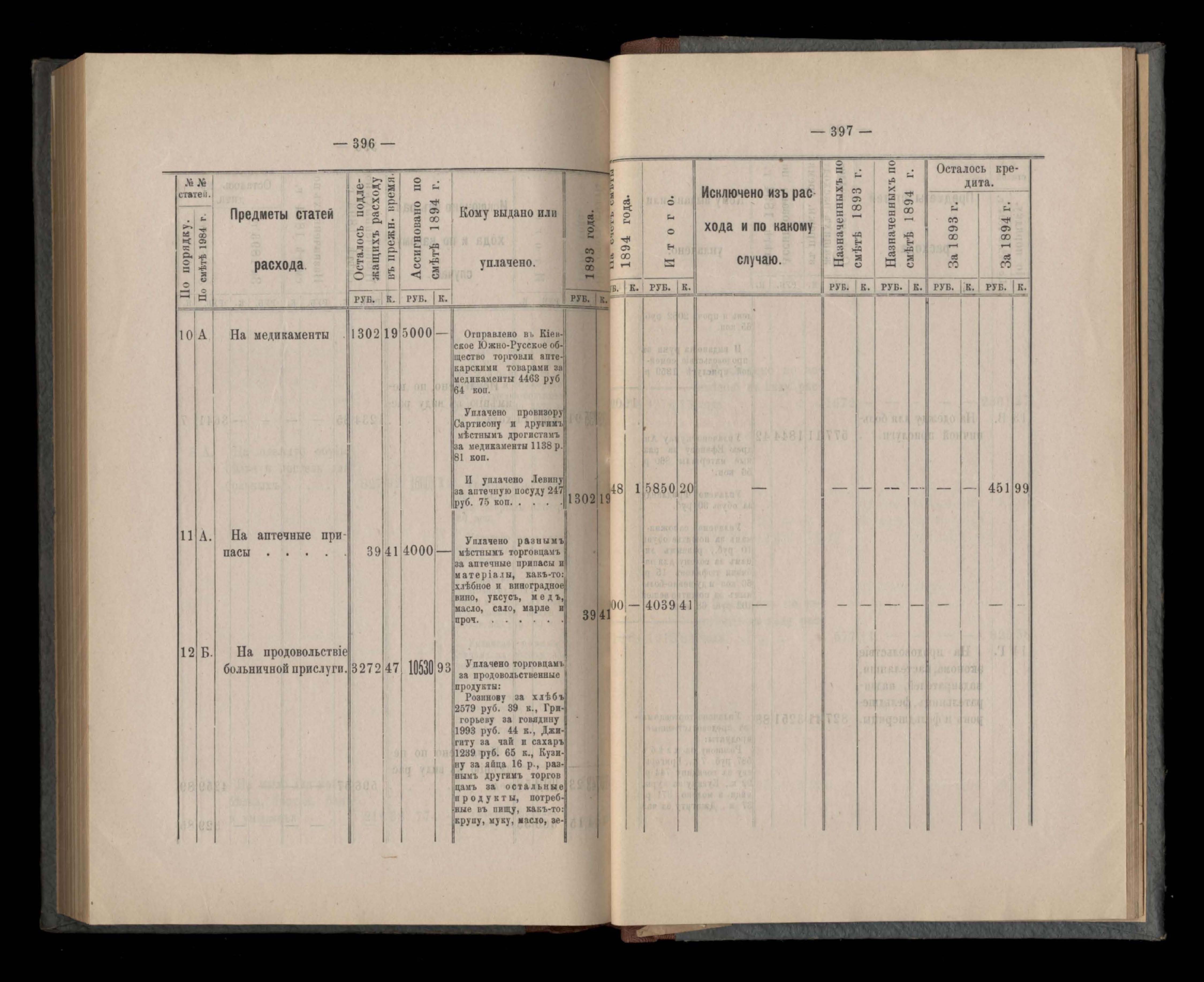 Въдомостъ Екатеринославской губернской земской управы о расходъ суммъ губернскаго земскаго сбора, ассигнованныхъ по смътъ за 1894 годъ