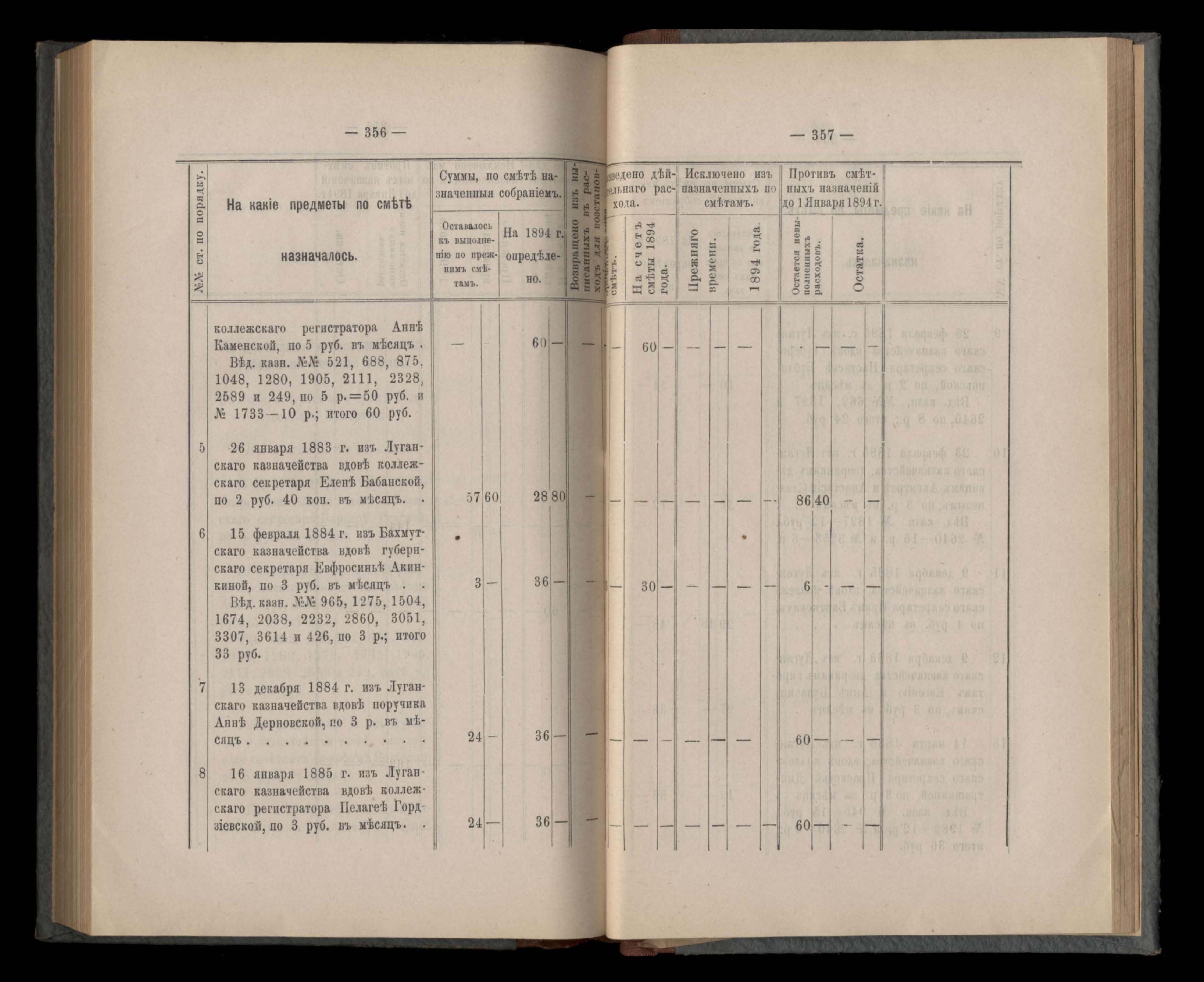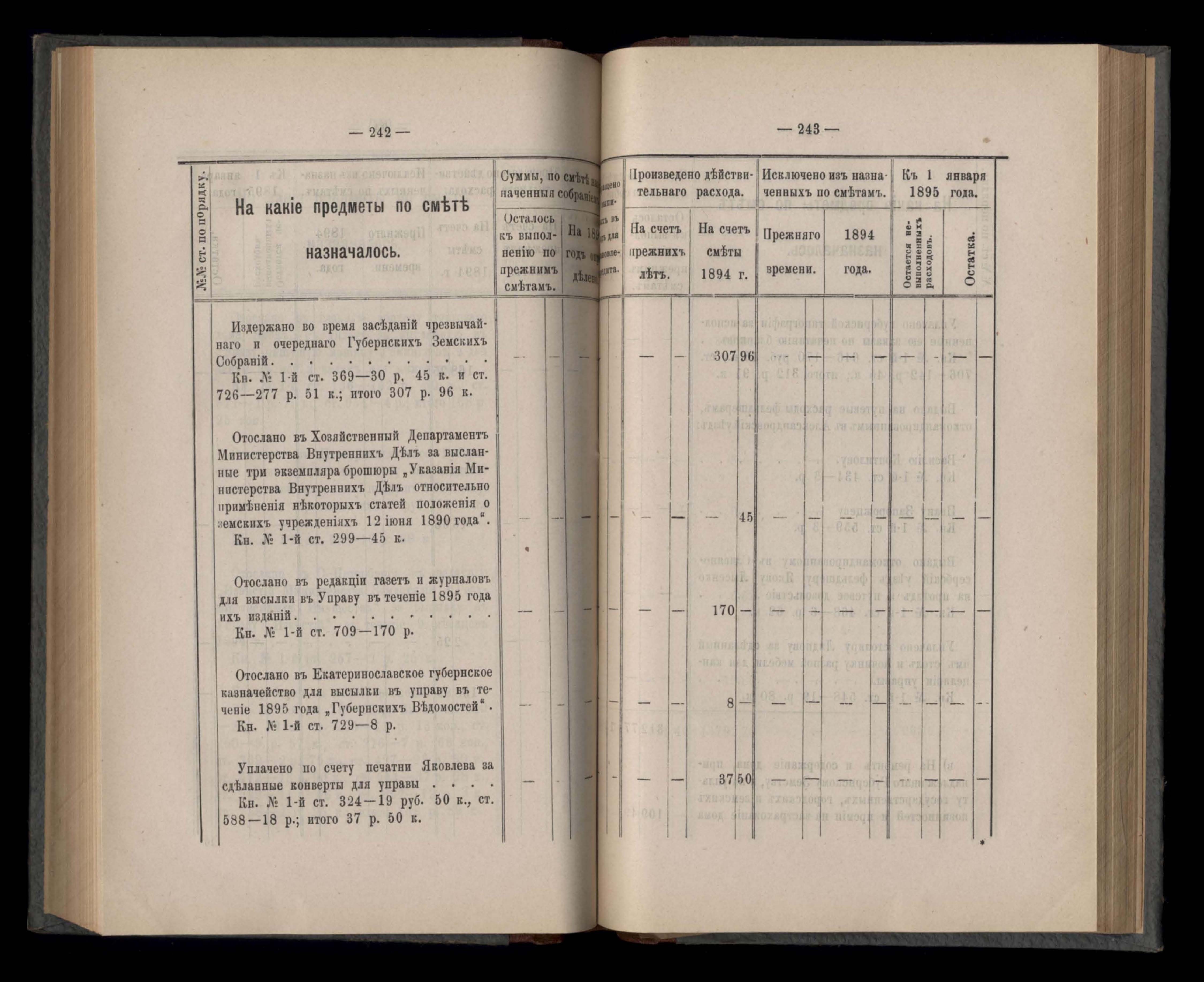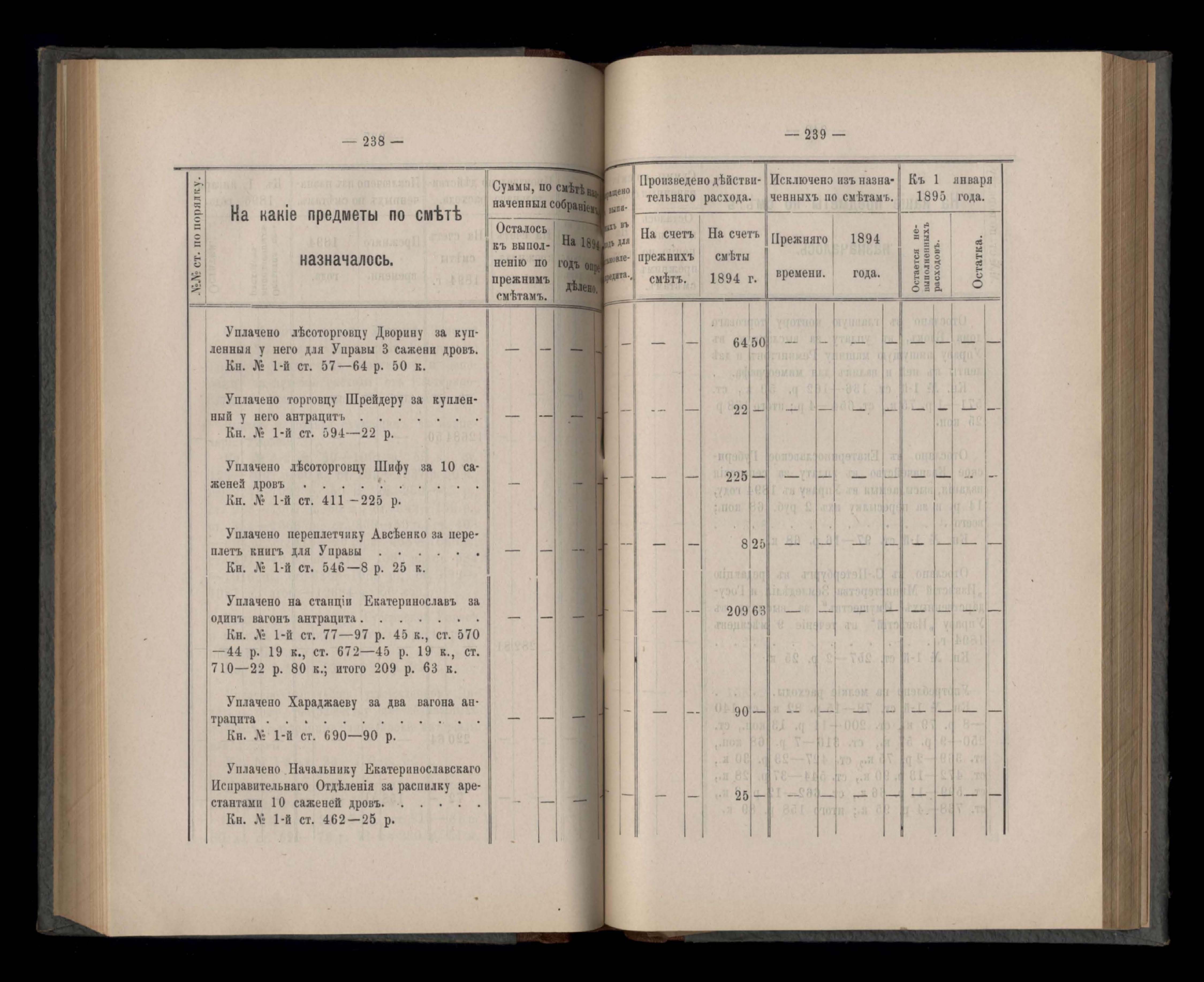 Въдомостъ Екатеринославской губернской земской управы о расходъ суммъ Губернскаго Земскаго Собранія по журналамъ управы и другимъ случаямъ за 1894 годъ