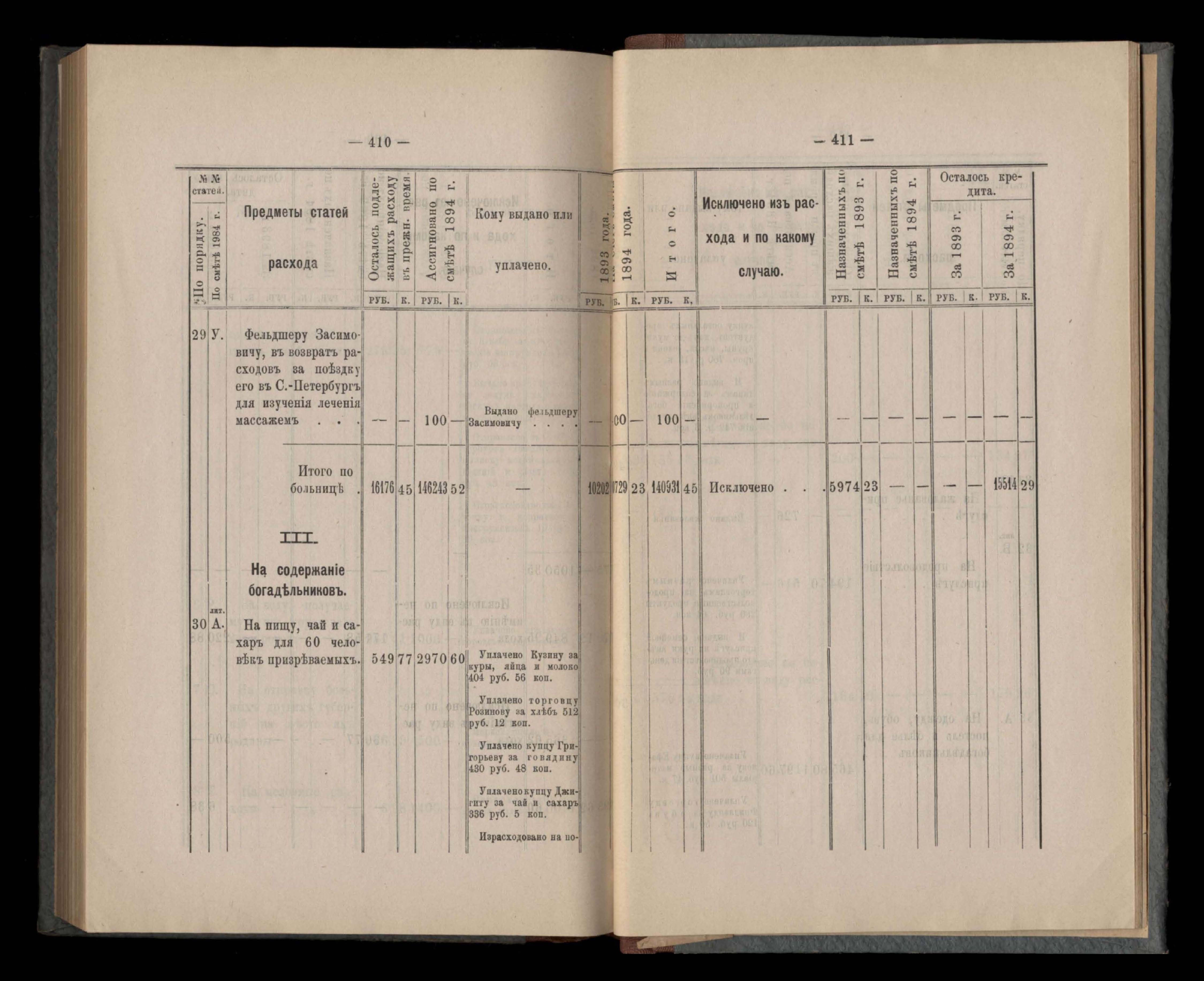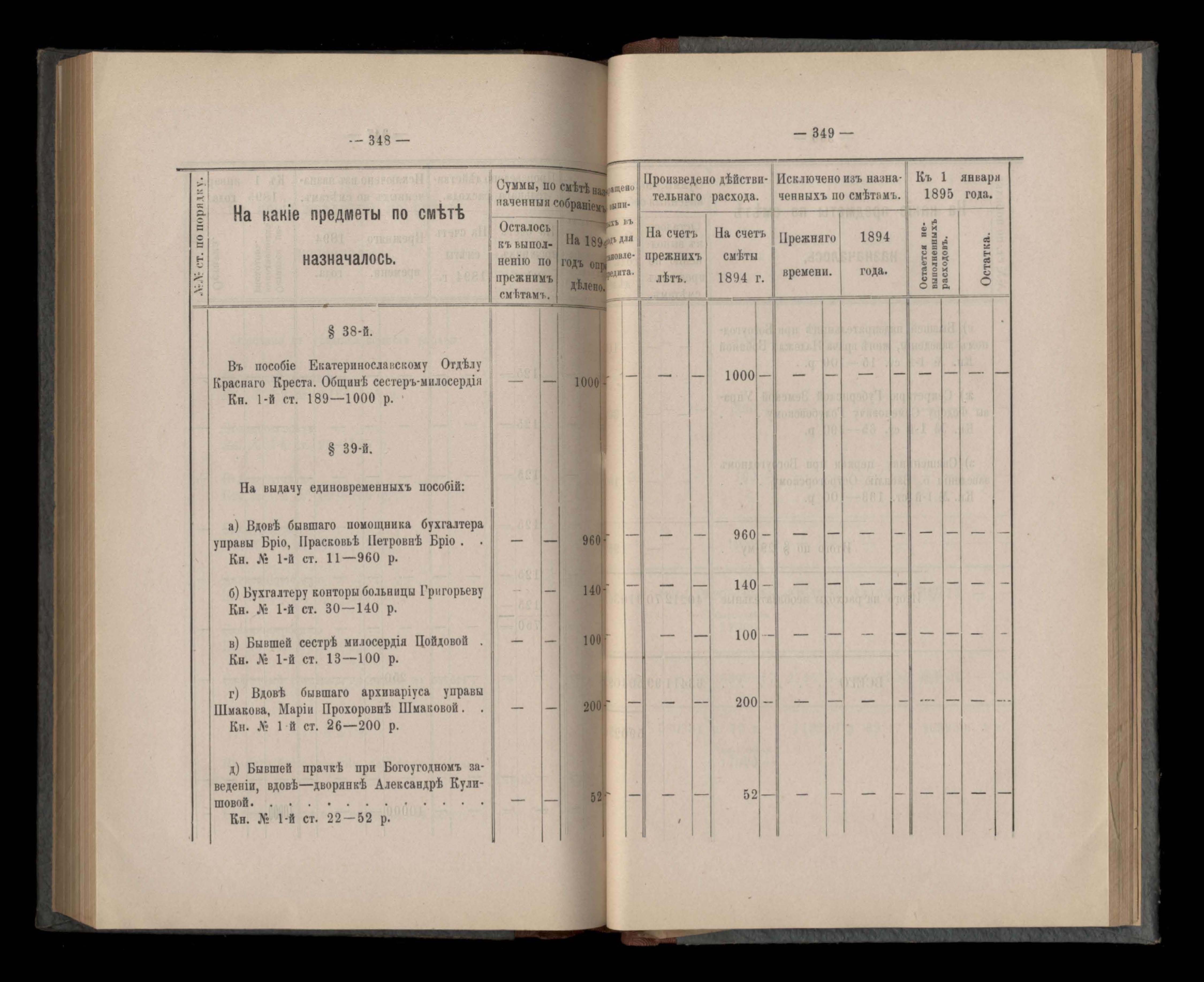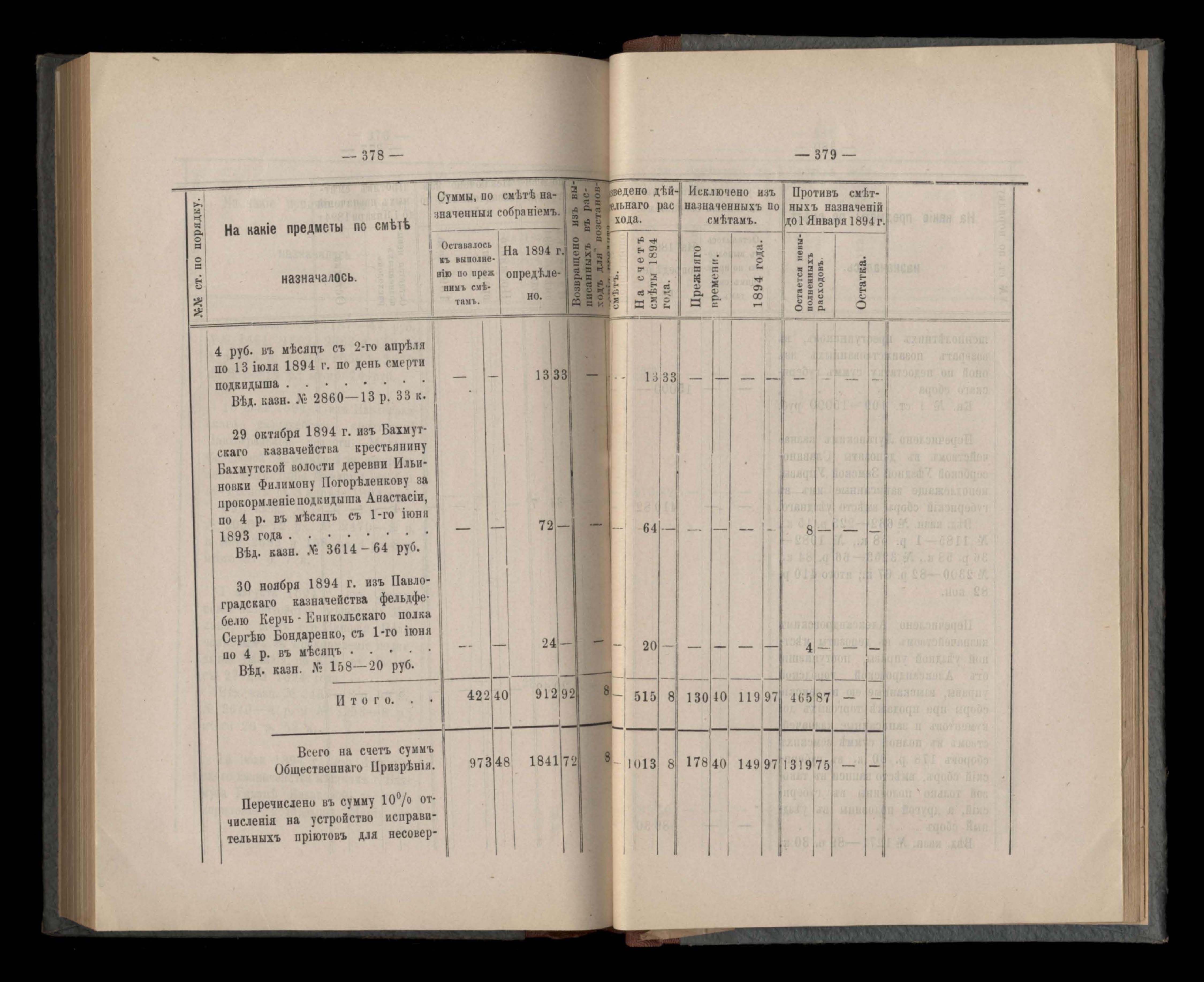 Въдомостъ Екатеринославской губернской земской управы о расходъ суммъ общественнаго призрънія за 1894 годъ