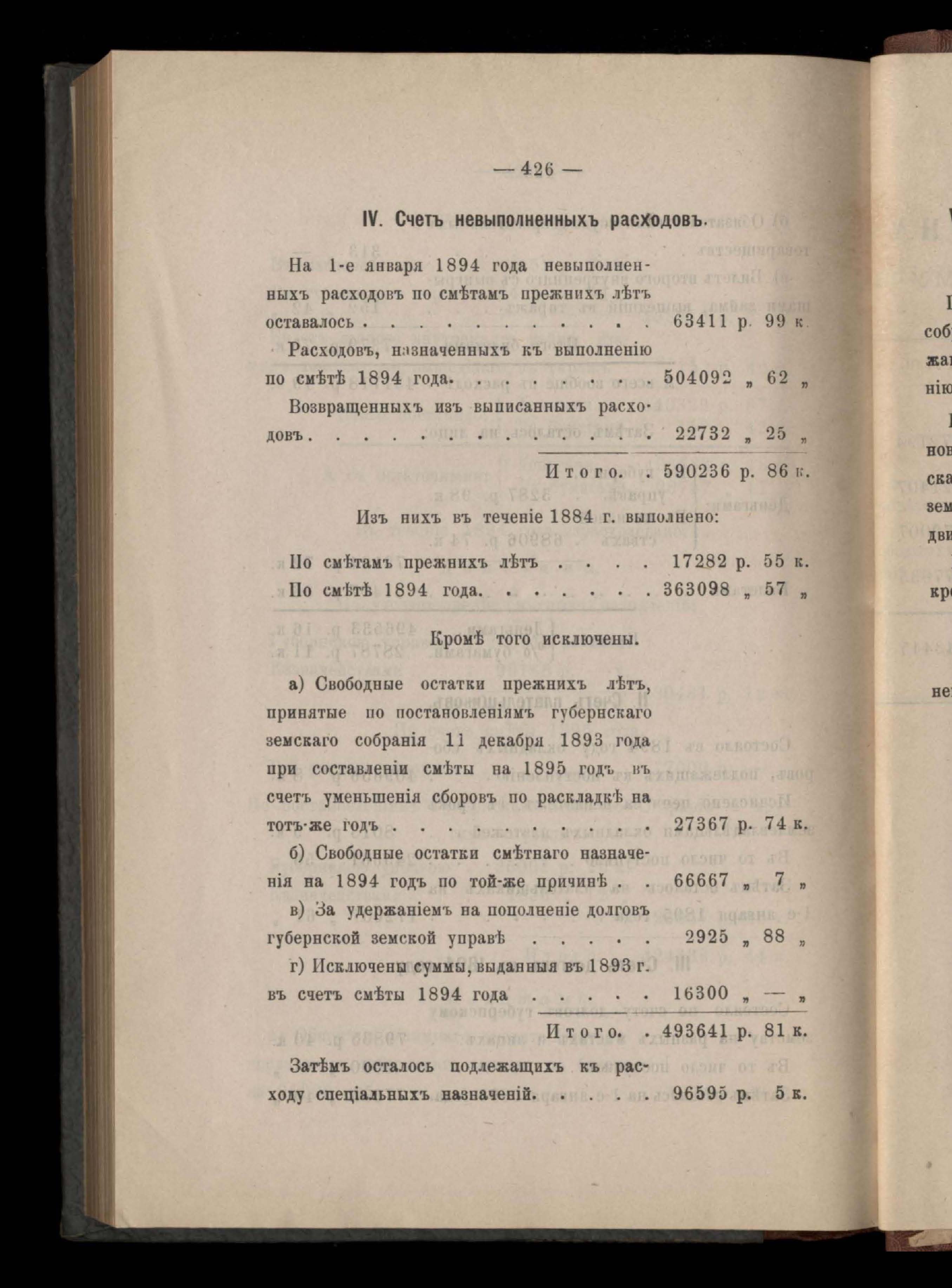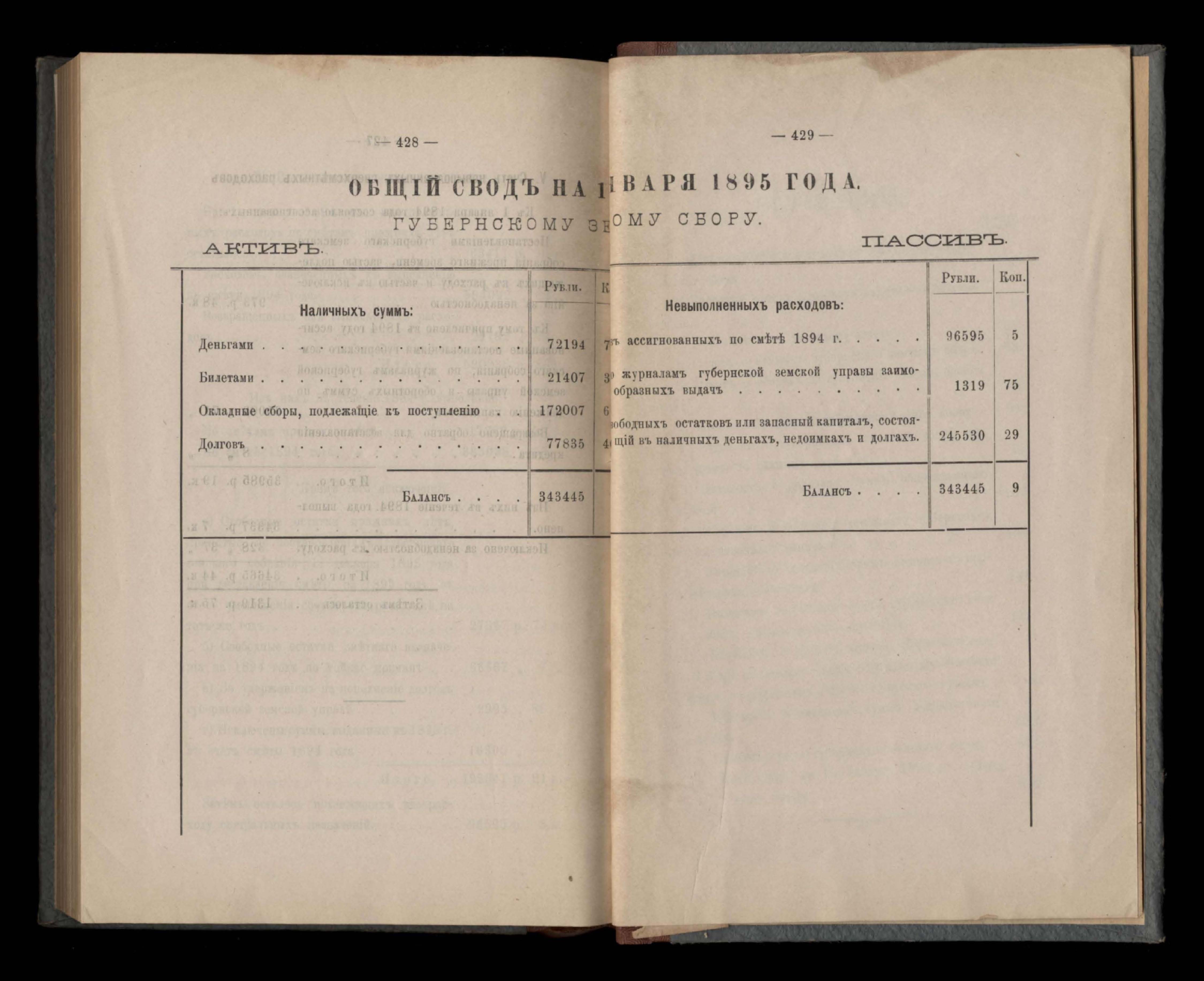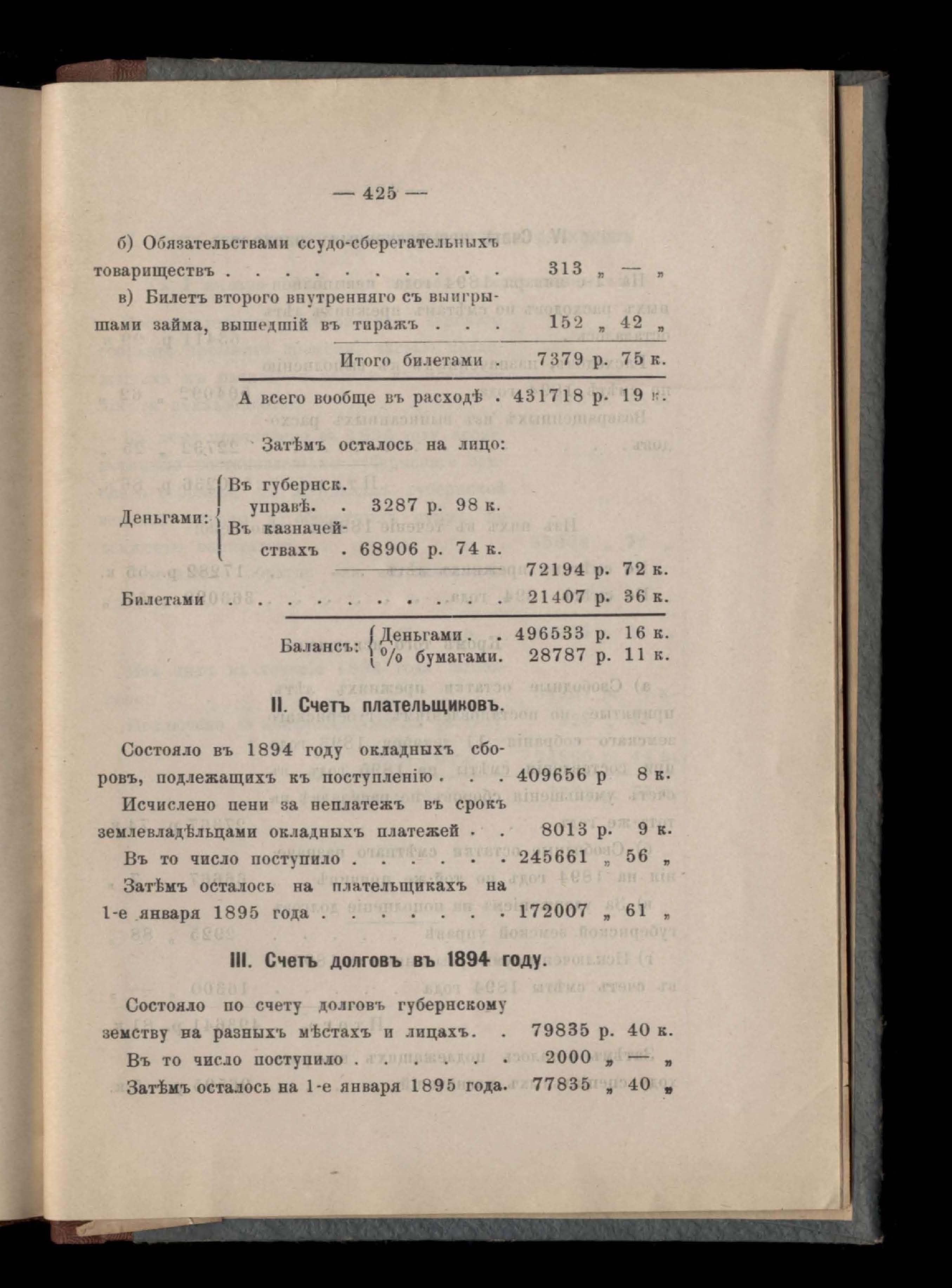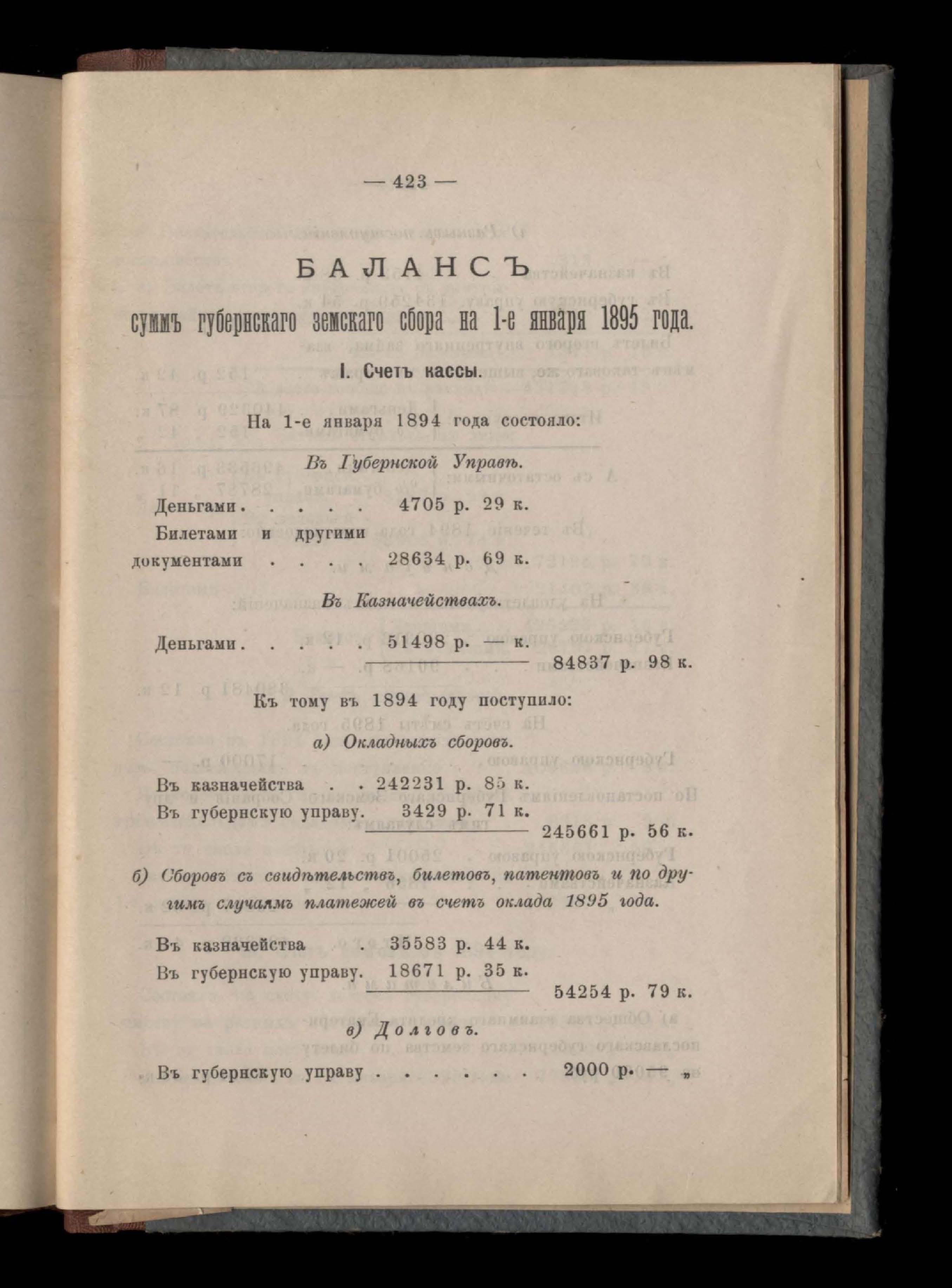Балансъ суммъ губернскаго земскаго сбора на 1-е января 1894 года