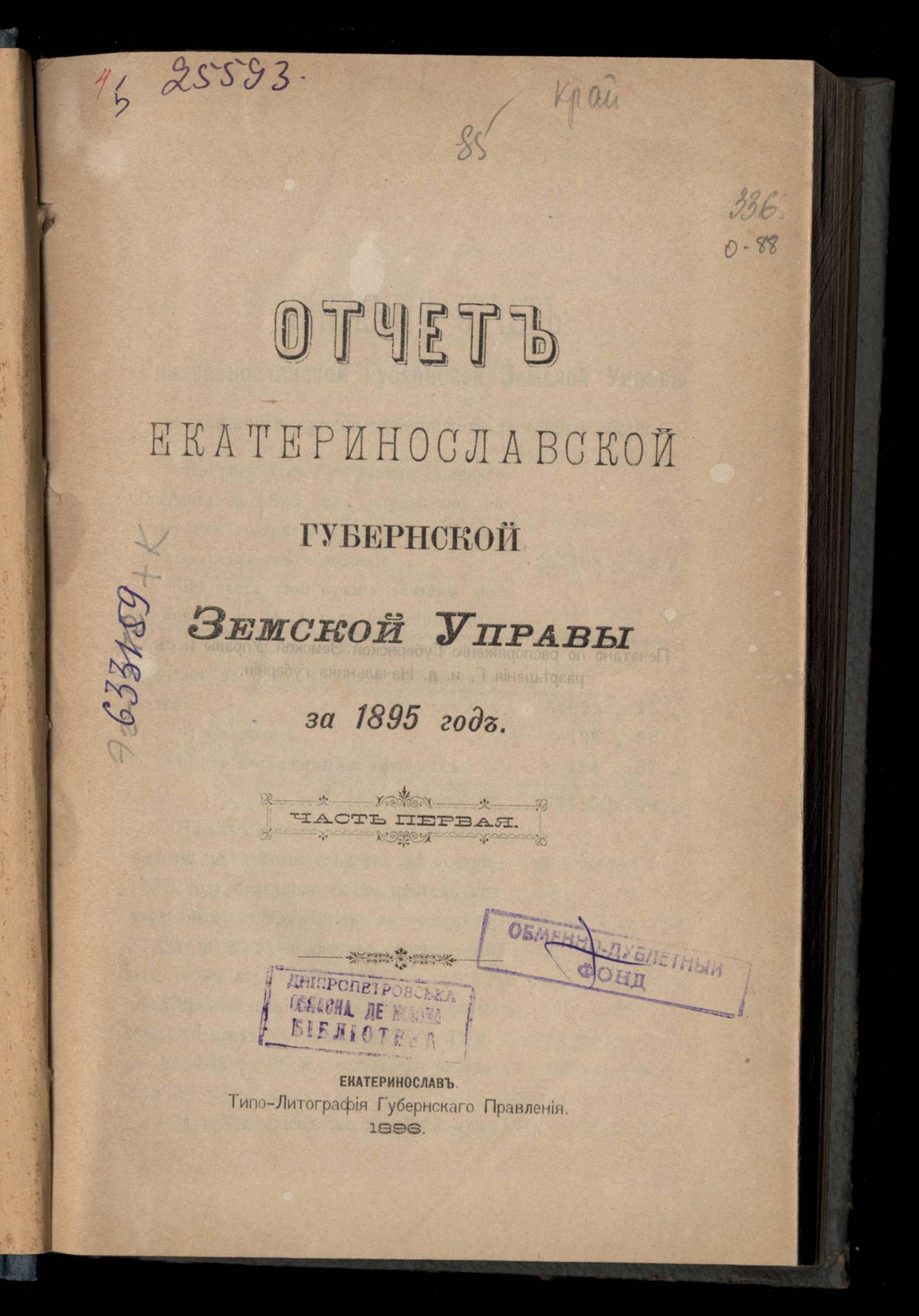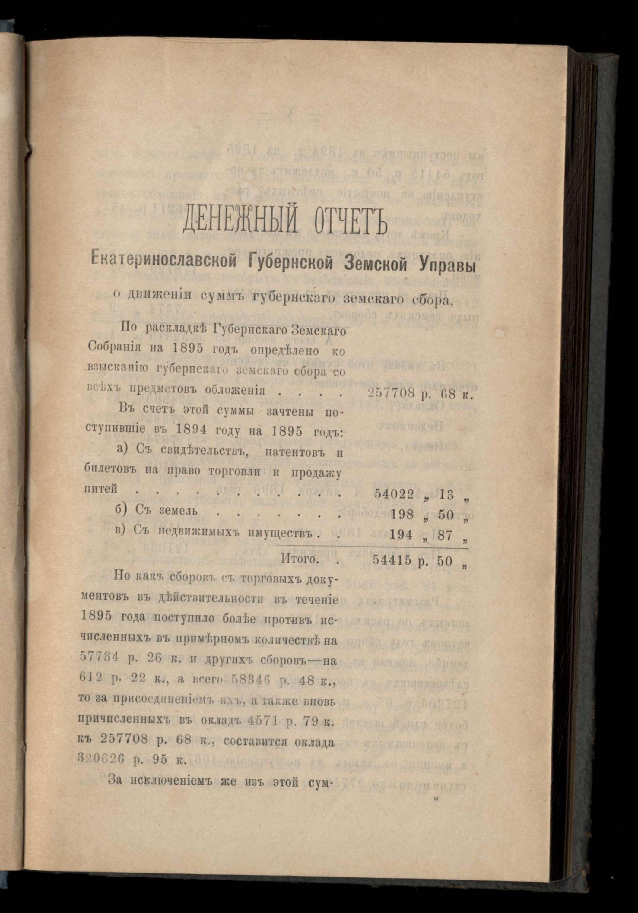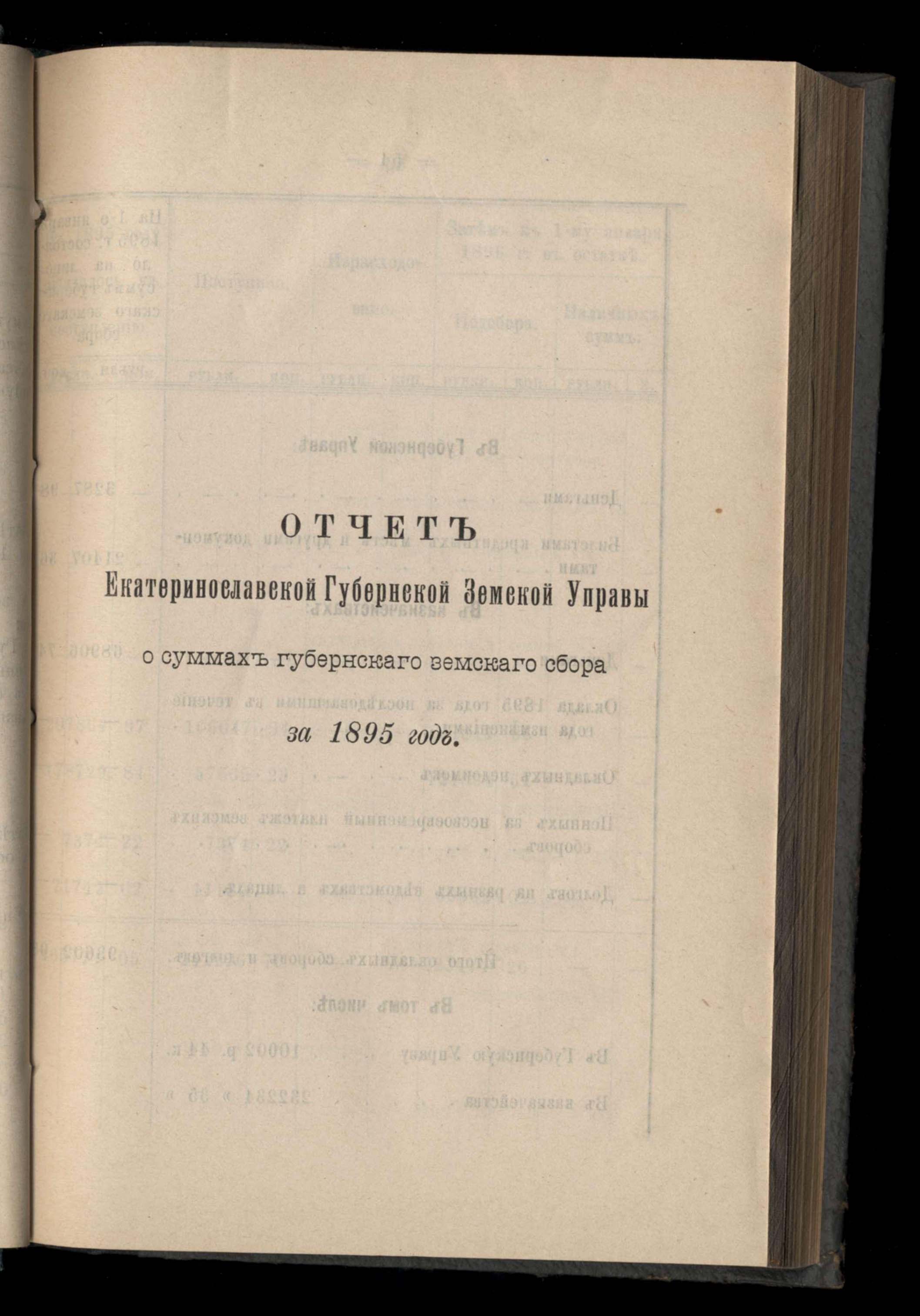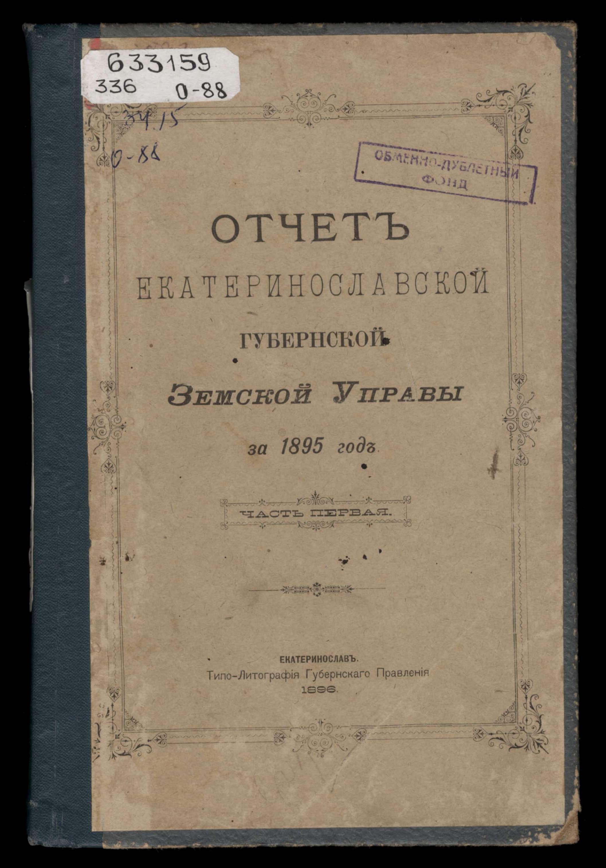 Отчетъ Екатеринославской Губернской Земской Управы о суммахъ губернскаго земскаго сбора за 1895 годъ