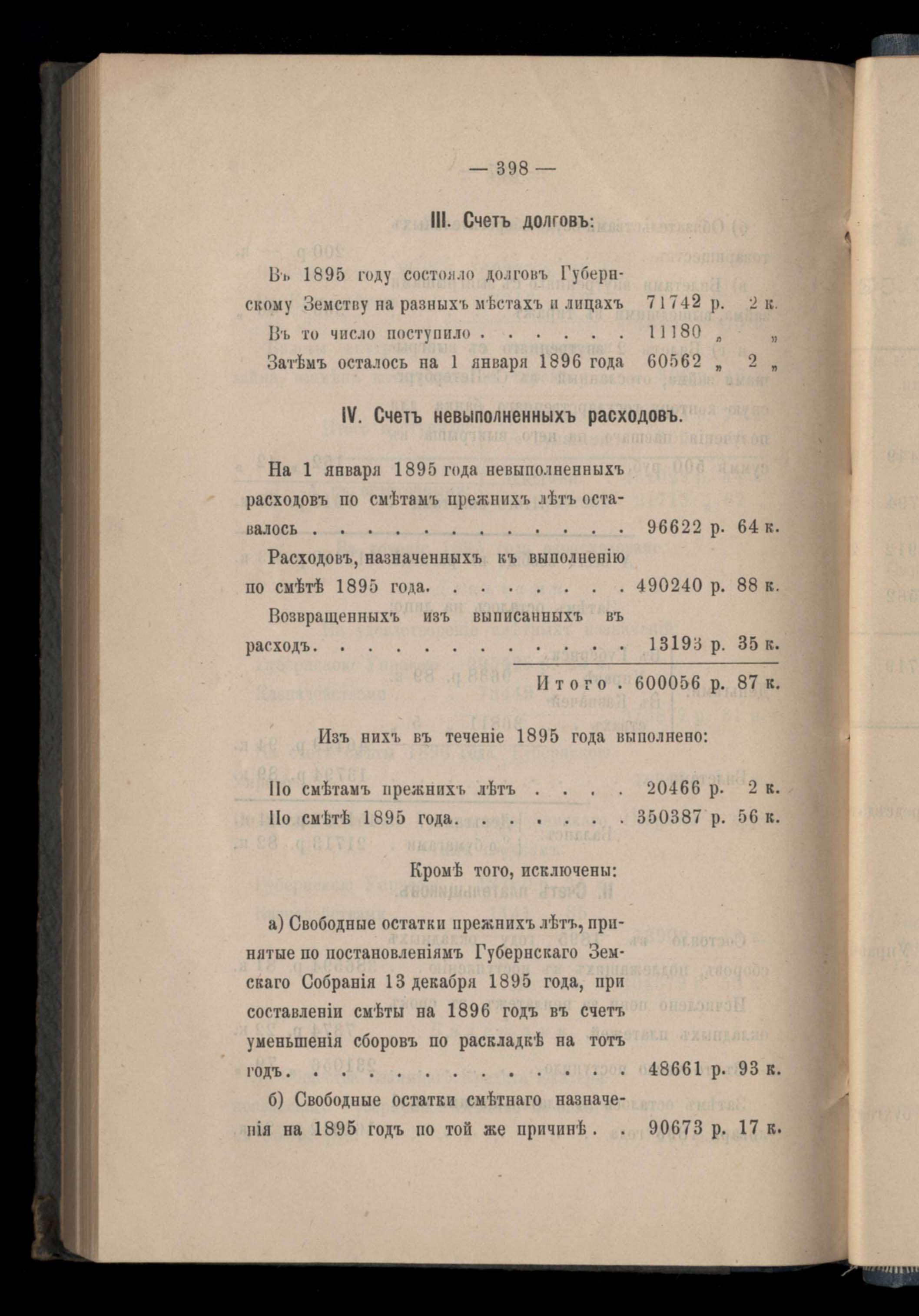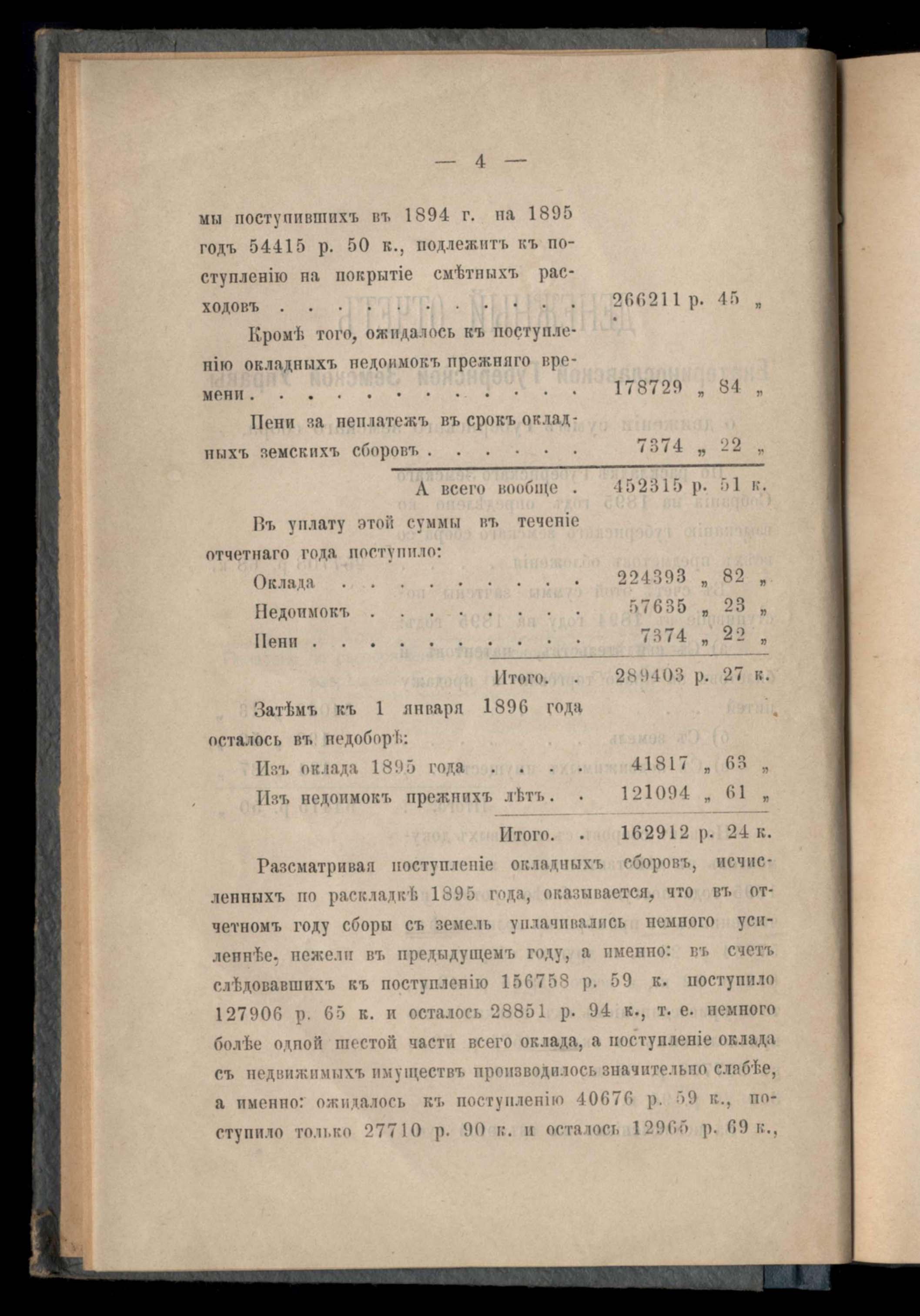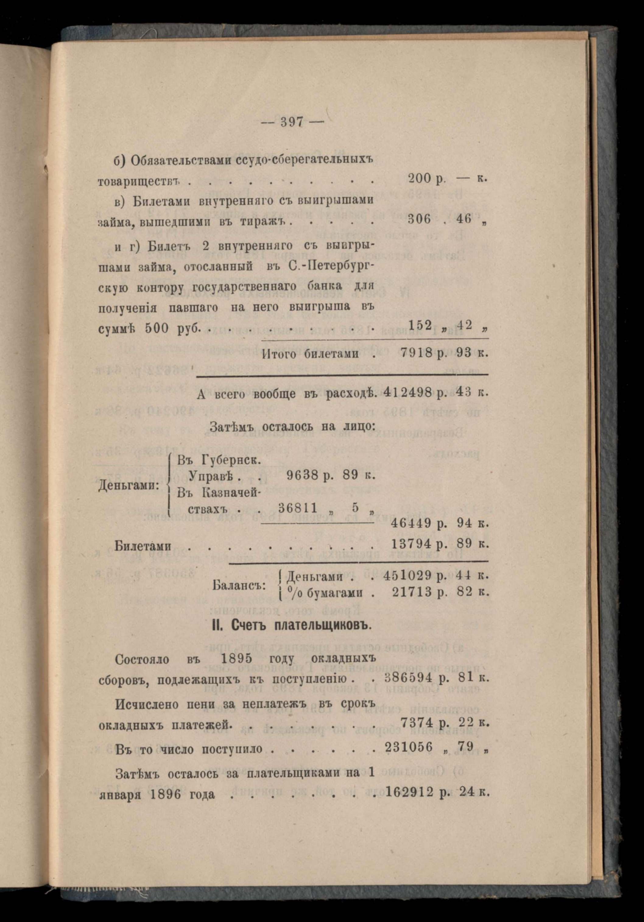 Балансъ суммъ губернскаго земскаго сбора на 1-е января 1896 года