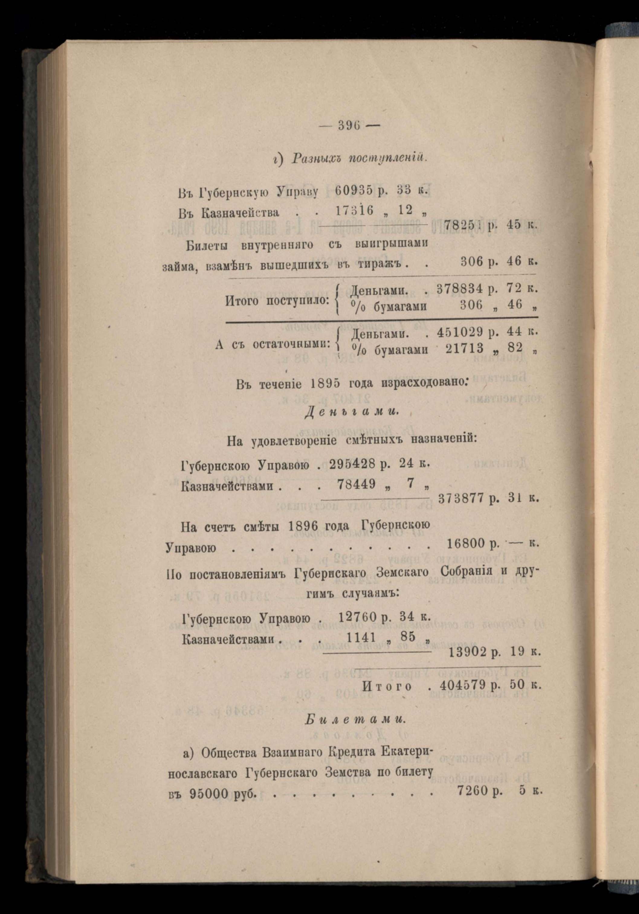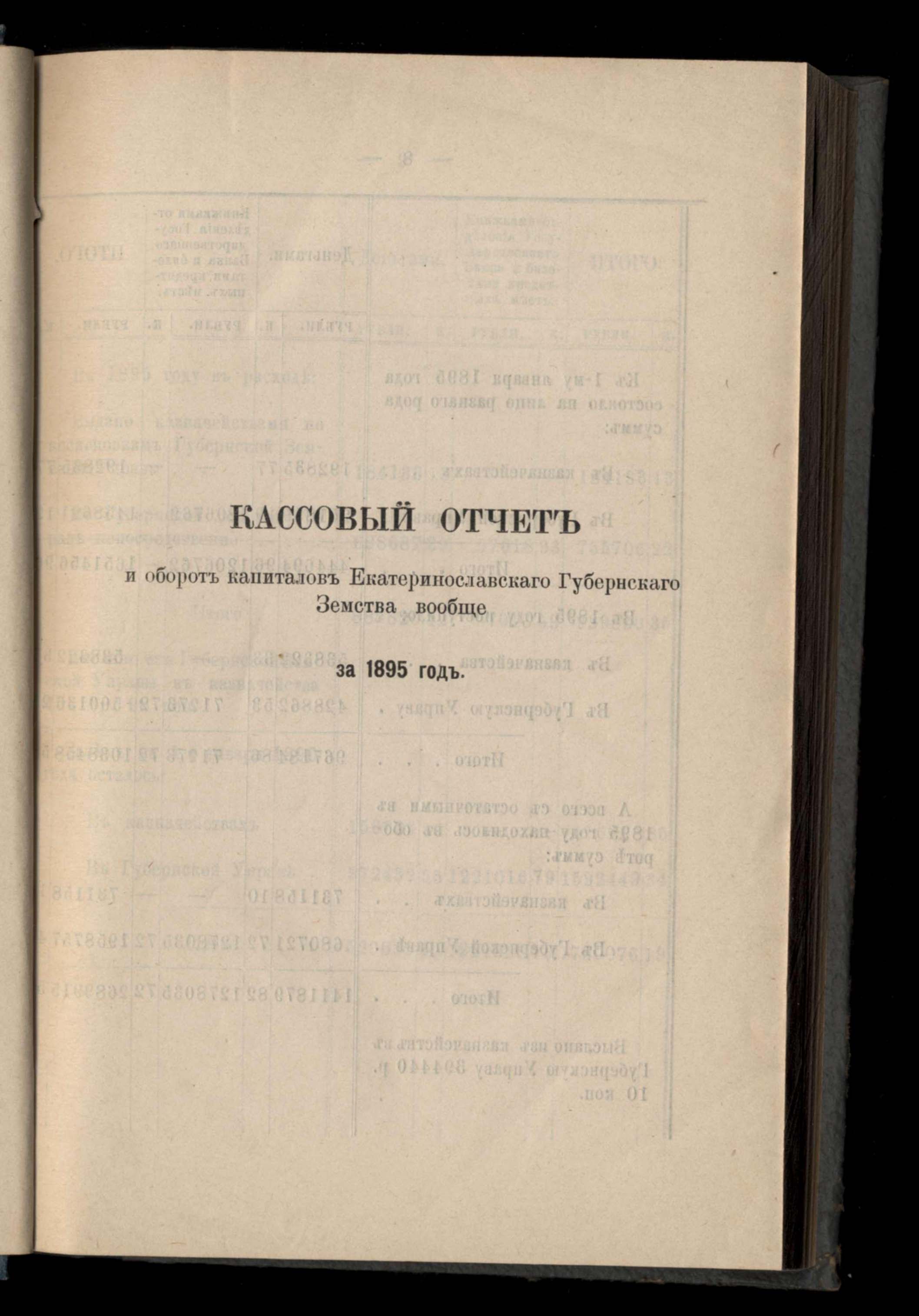 Кассовый отчетъ и оборотъ капиталовъ Екатеринославскаго Губернскаго Земства вообще за 1895 годъ