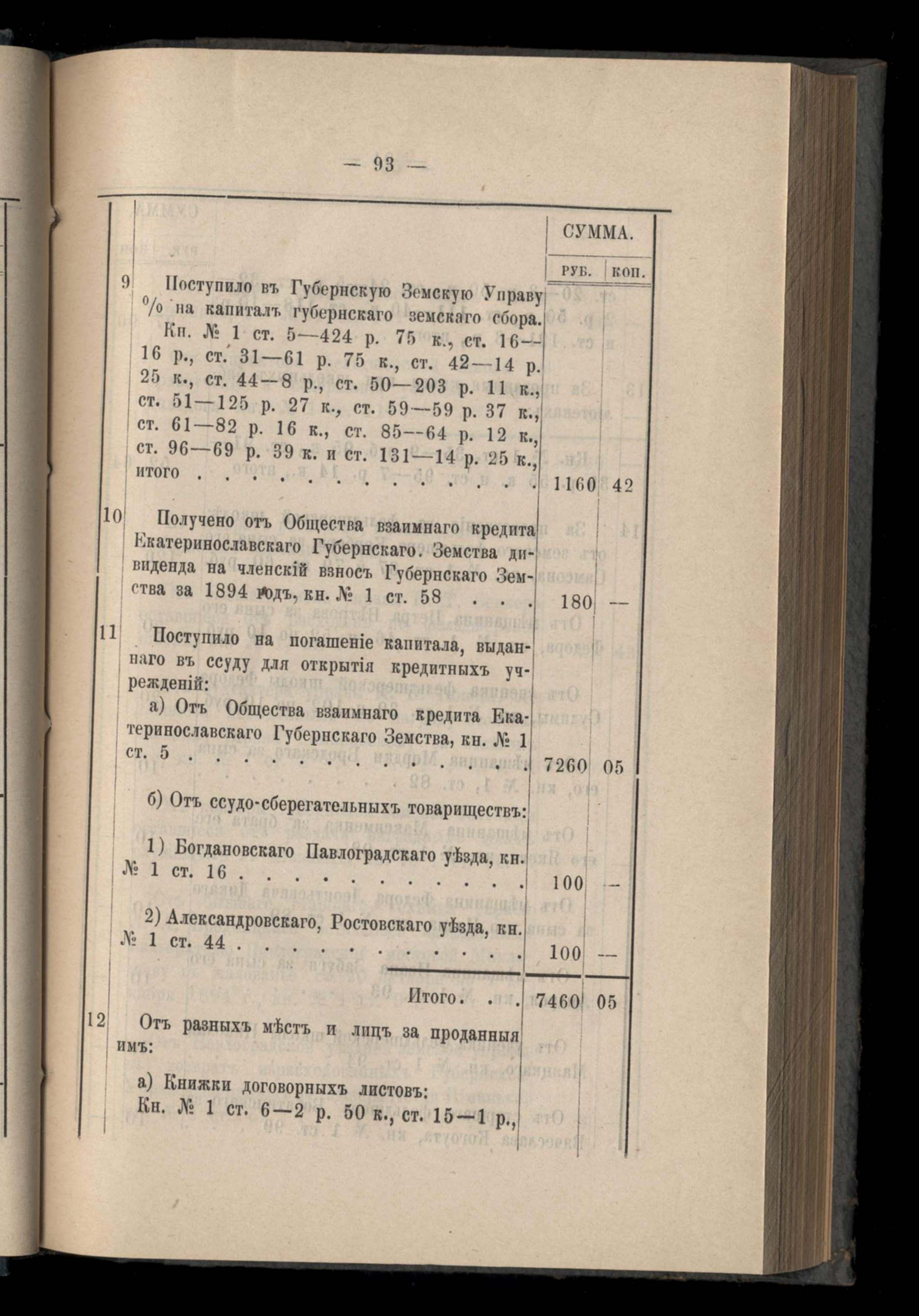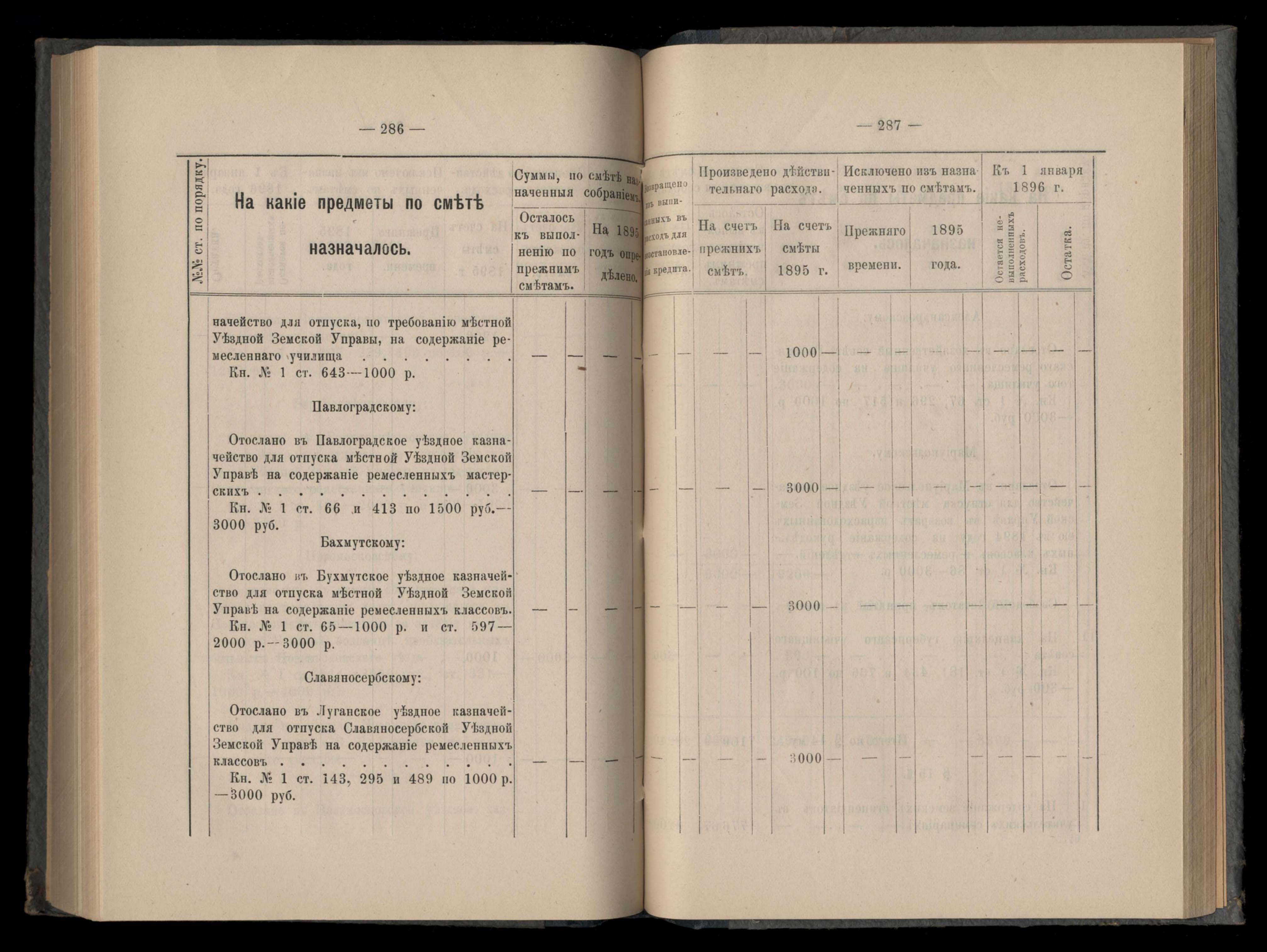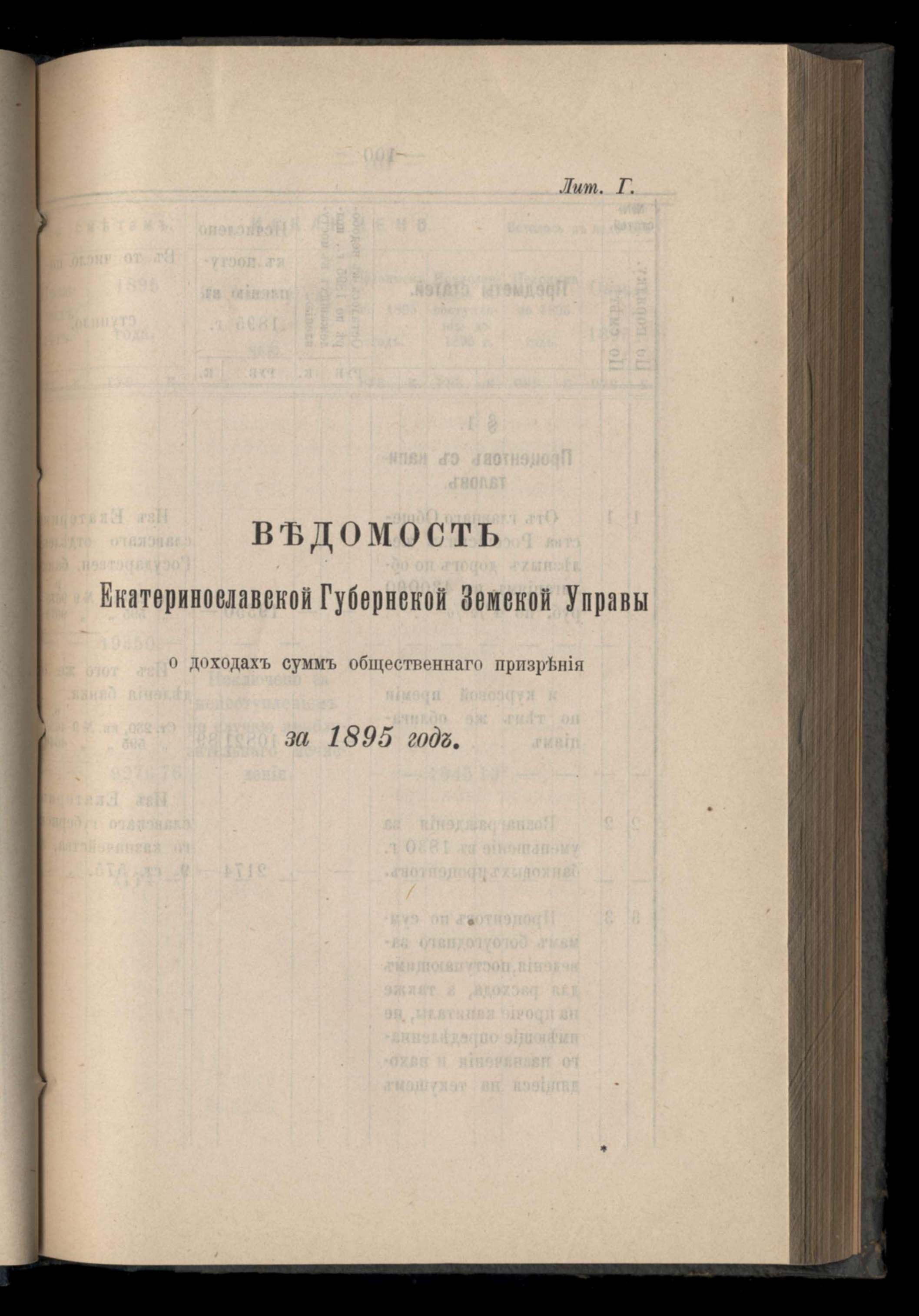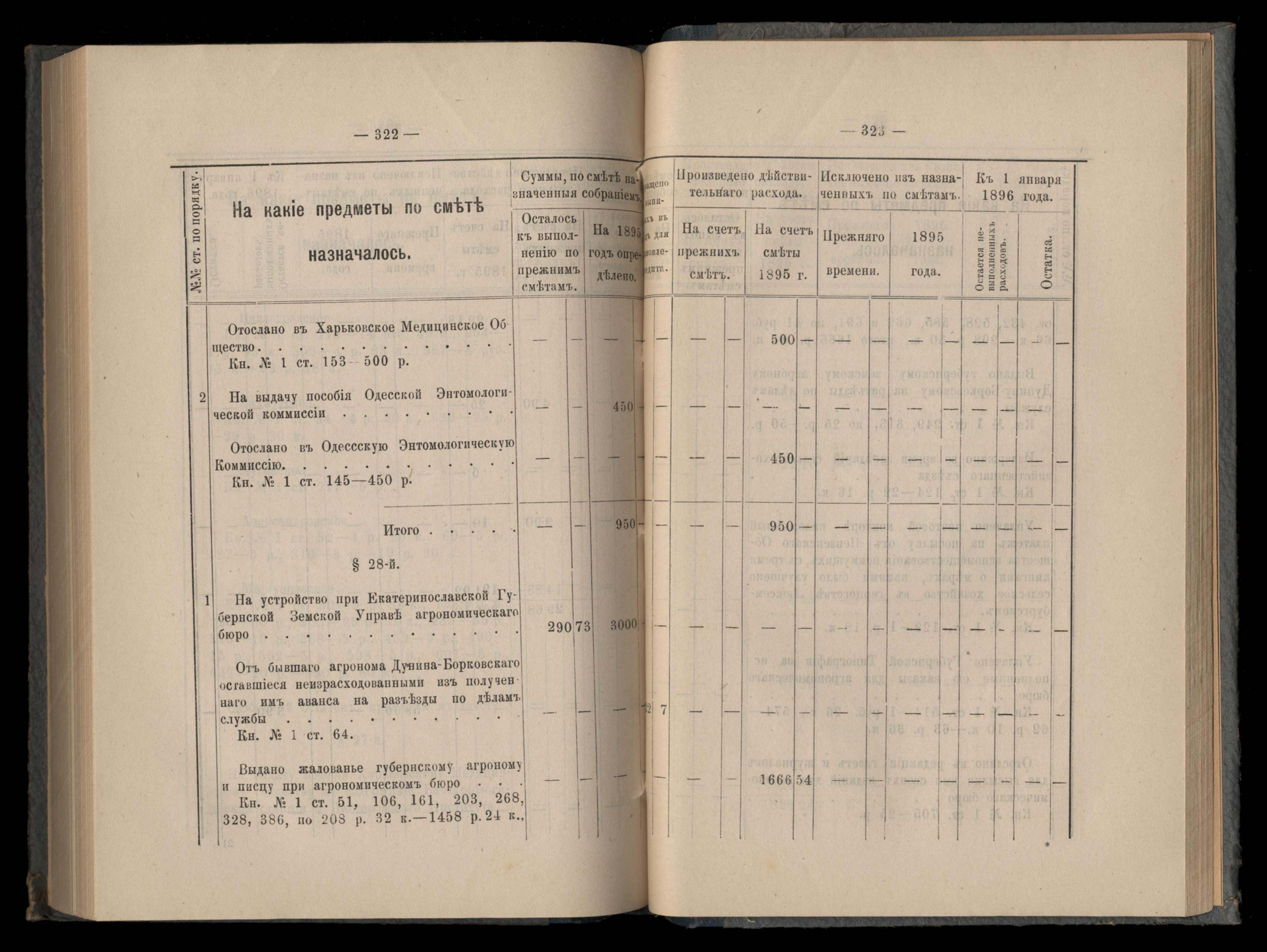 Ведомость Екатеринославской Губернской Земской Управы о приходе и расходе суммъ Имперскаго продовольственнаго капитала, отпущеннаго Правительствомъ для выдачи въ ссуду сельскимъ обществамъ на продовольствіе за 1895 годъ