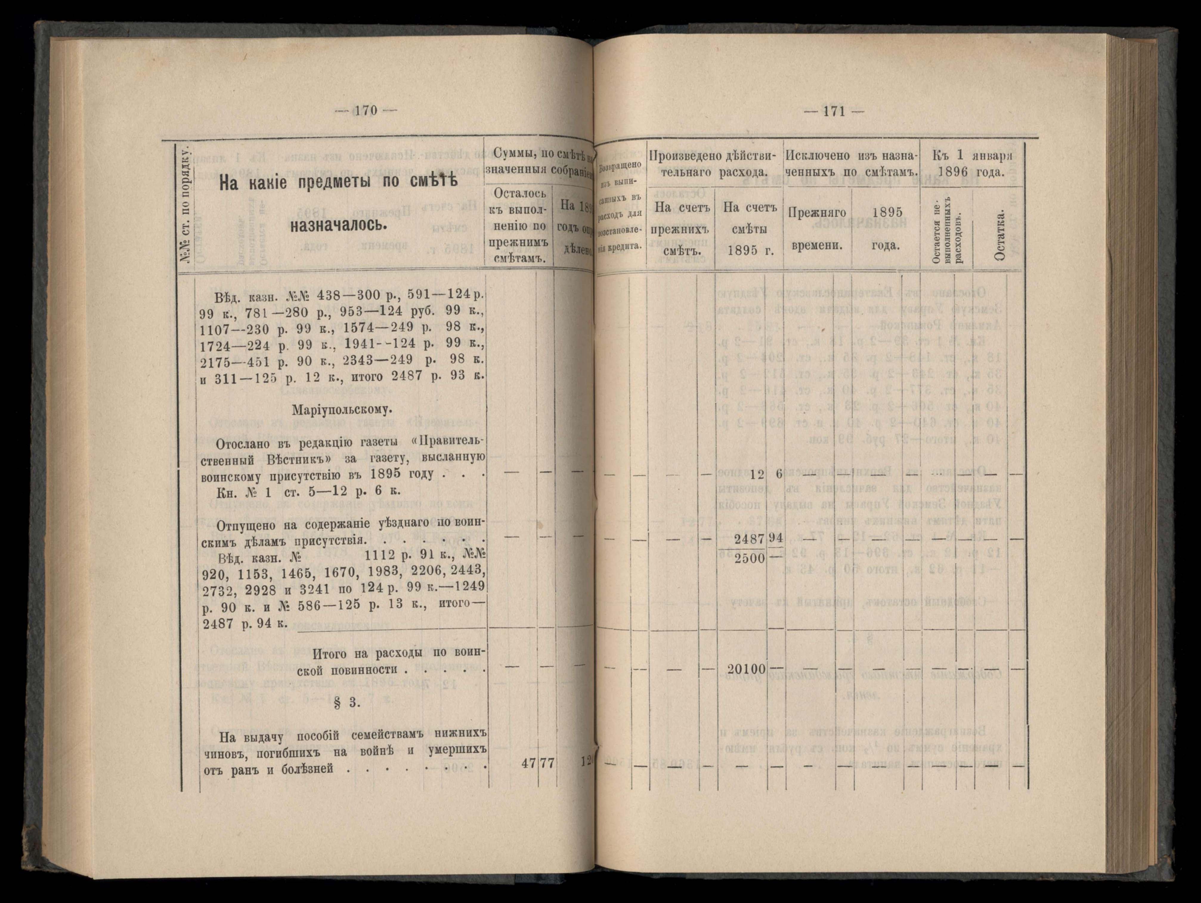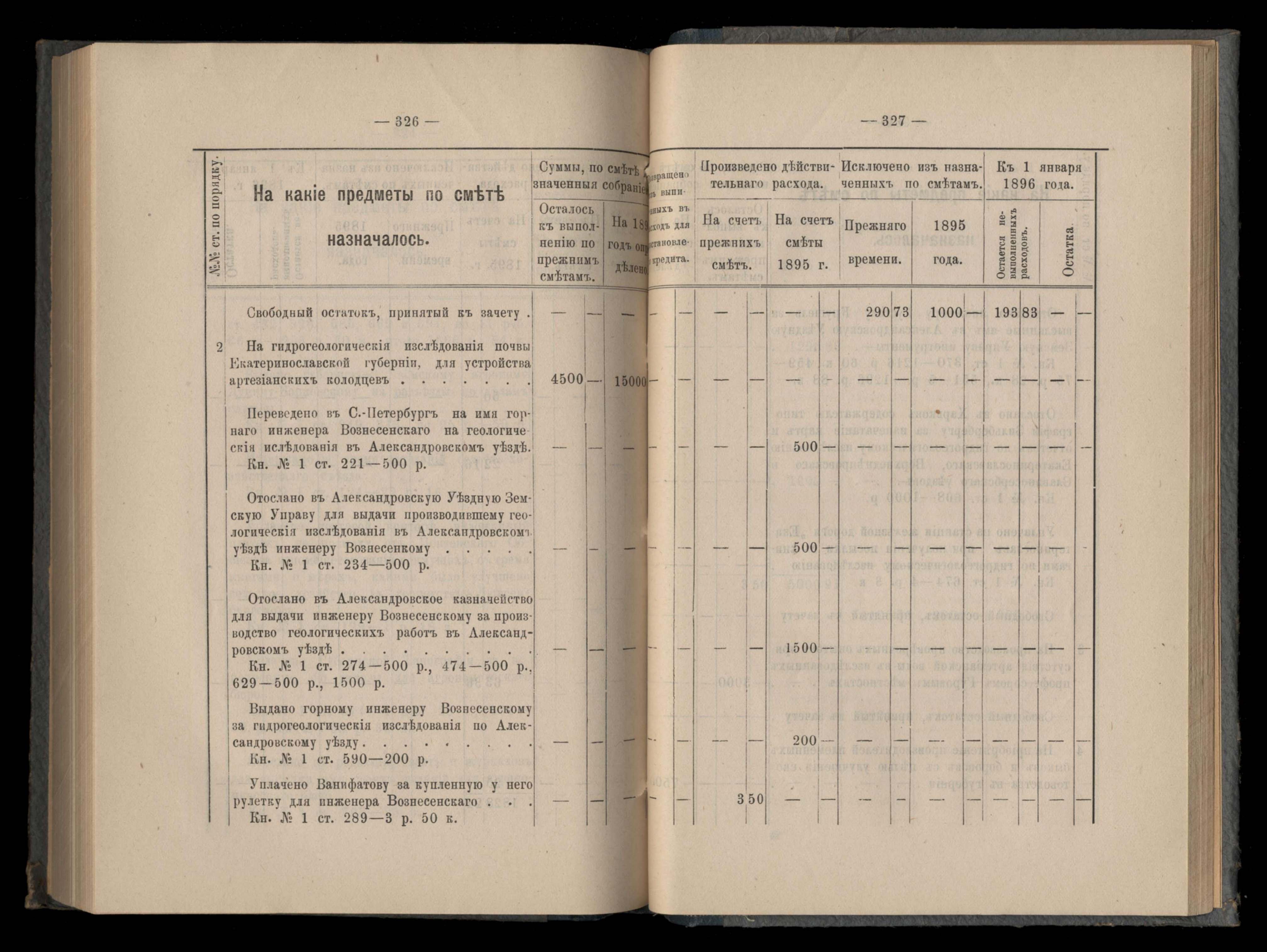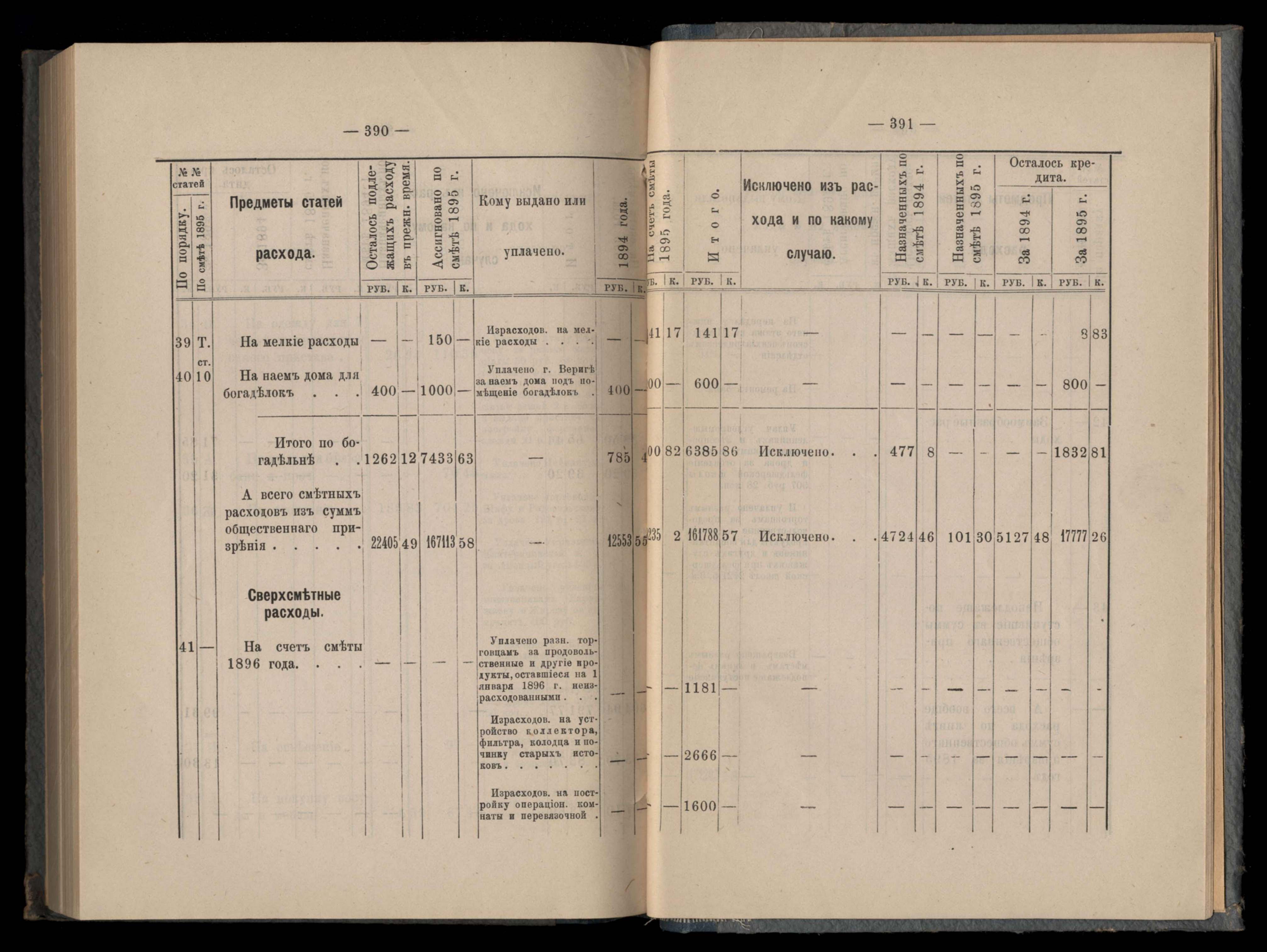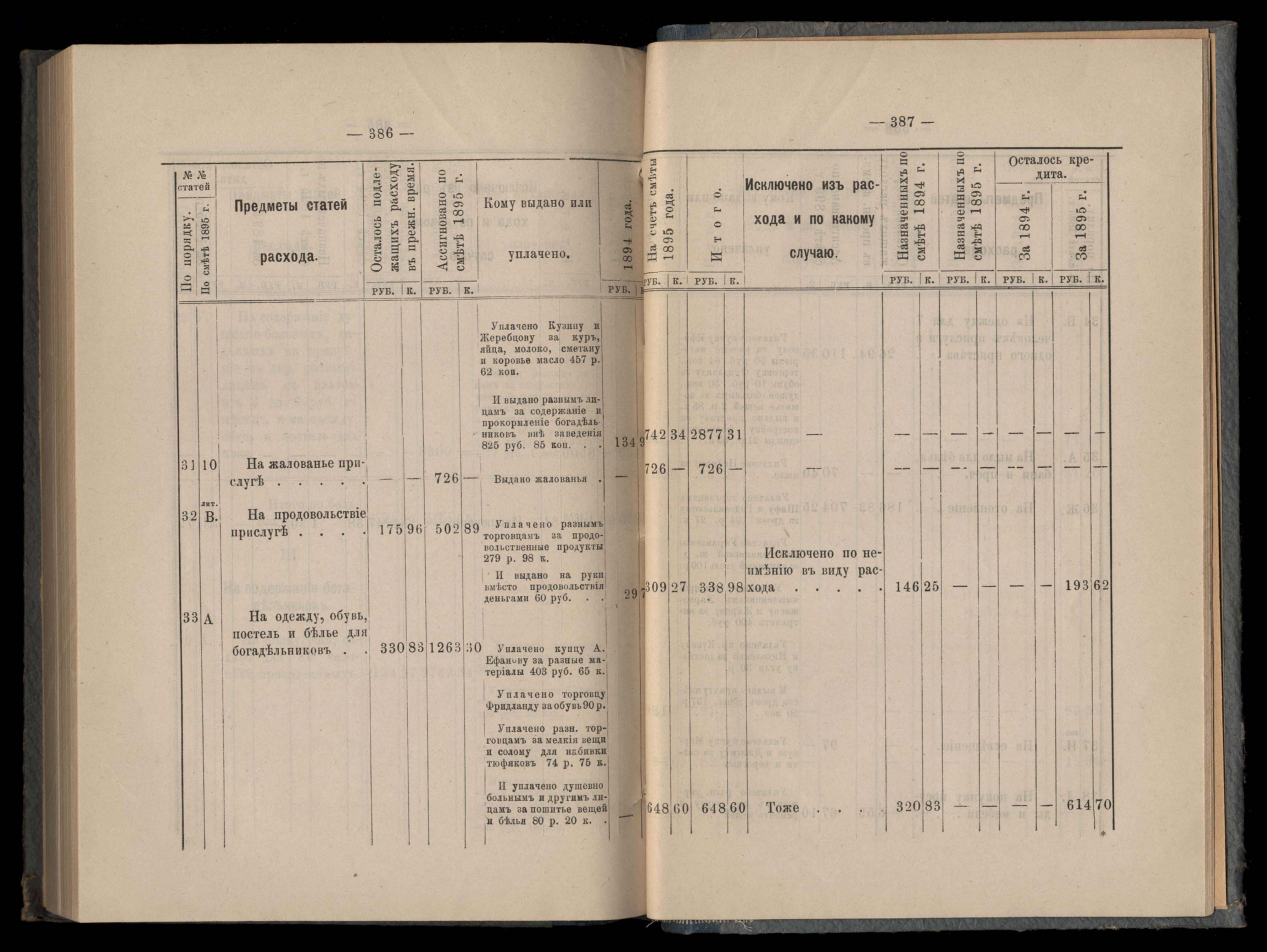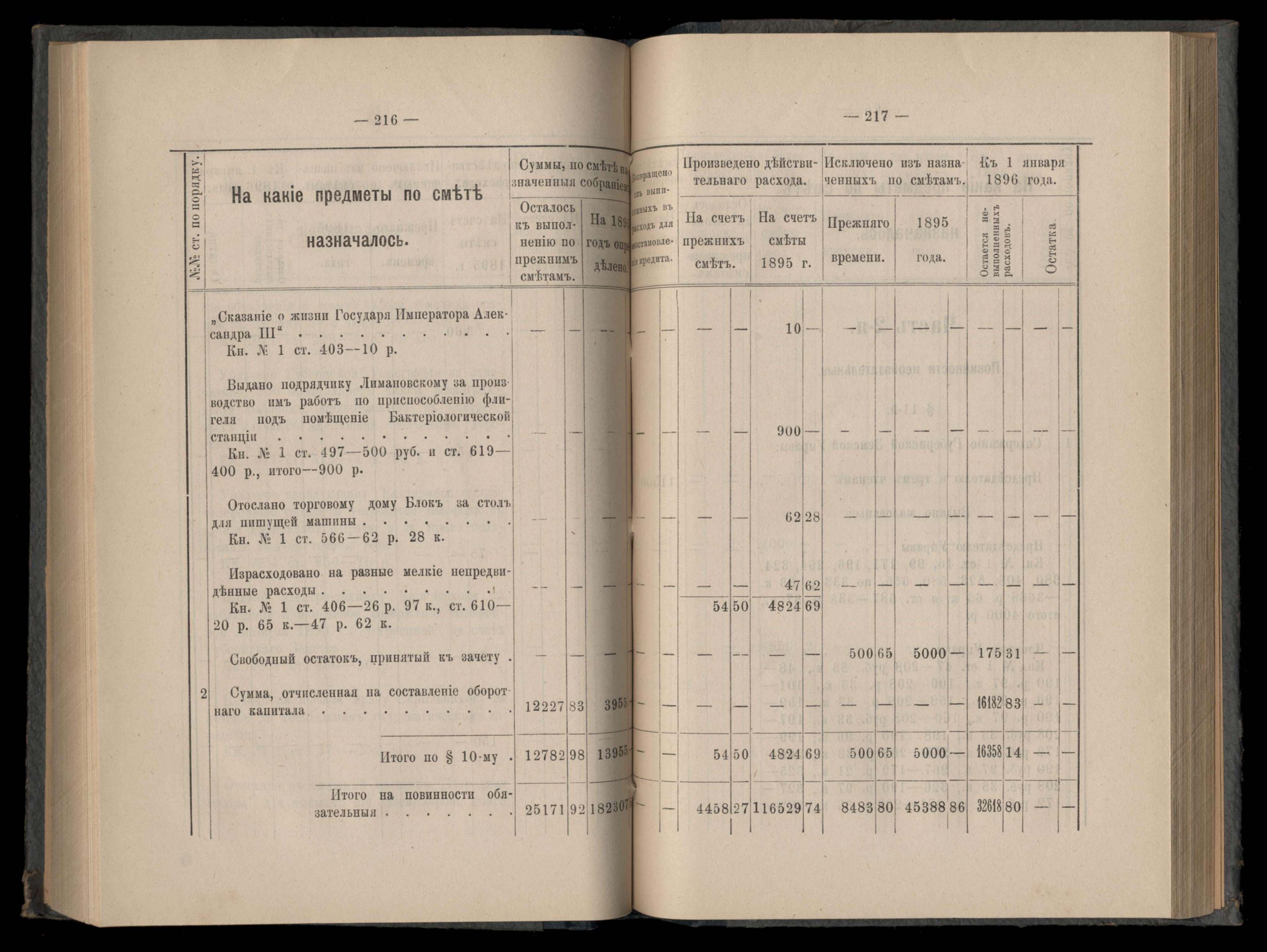 Ведомость Екатеринославской Губернской Земской Управы о приходе и расходе суммъ Имперскаго продовольственнаго капитала, отпущеннаго Правительствомъ для выдачи въ ссуду сельскимъ обществамъ на продовольствіе за 1895 годъ