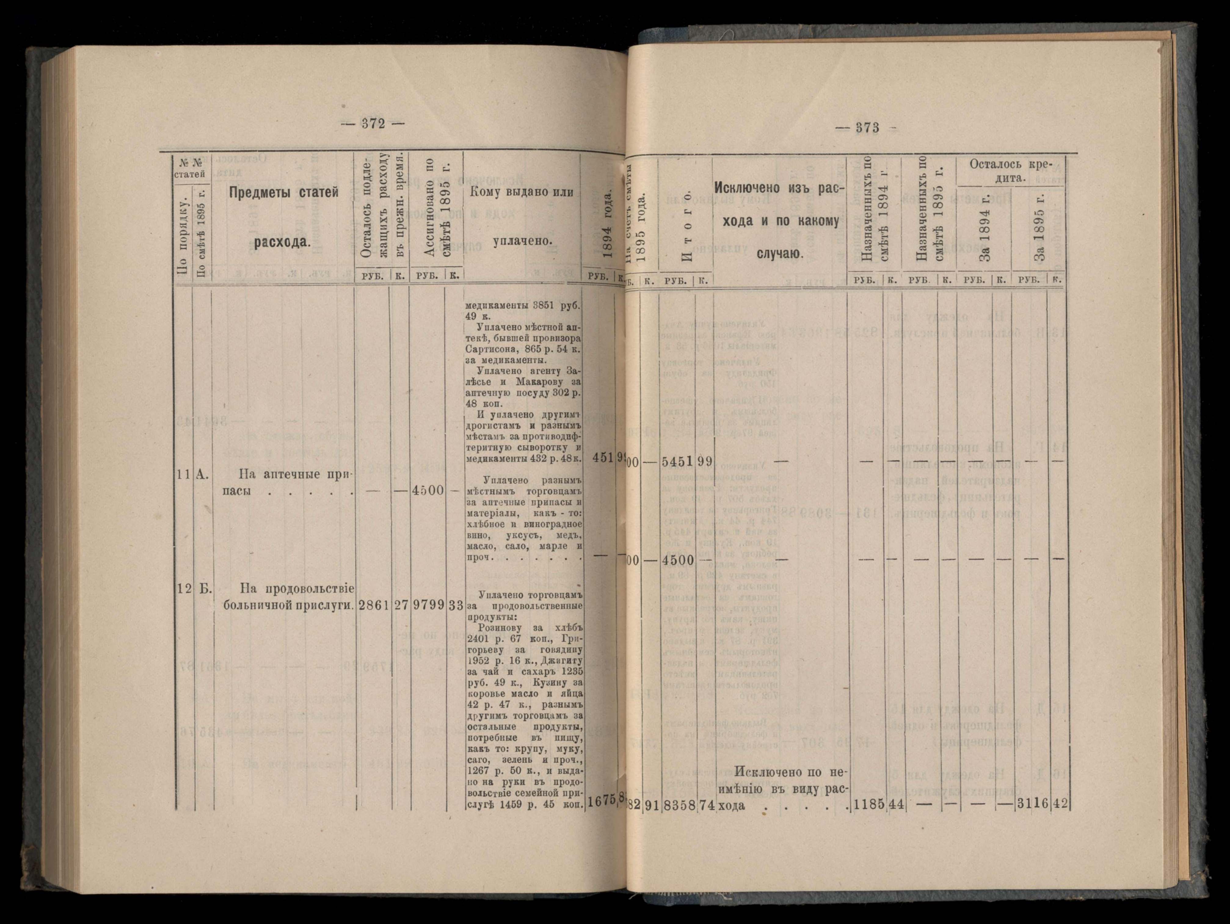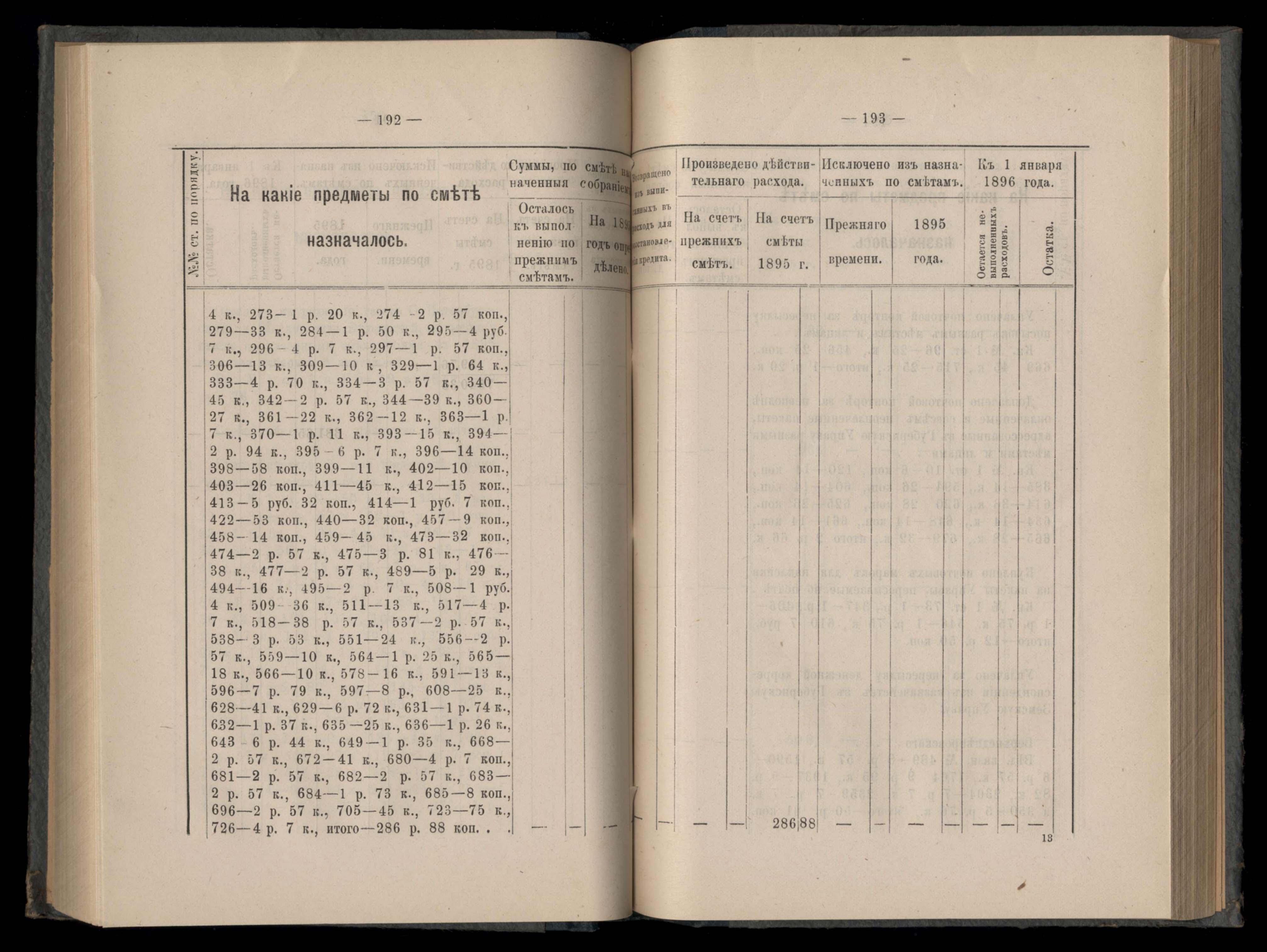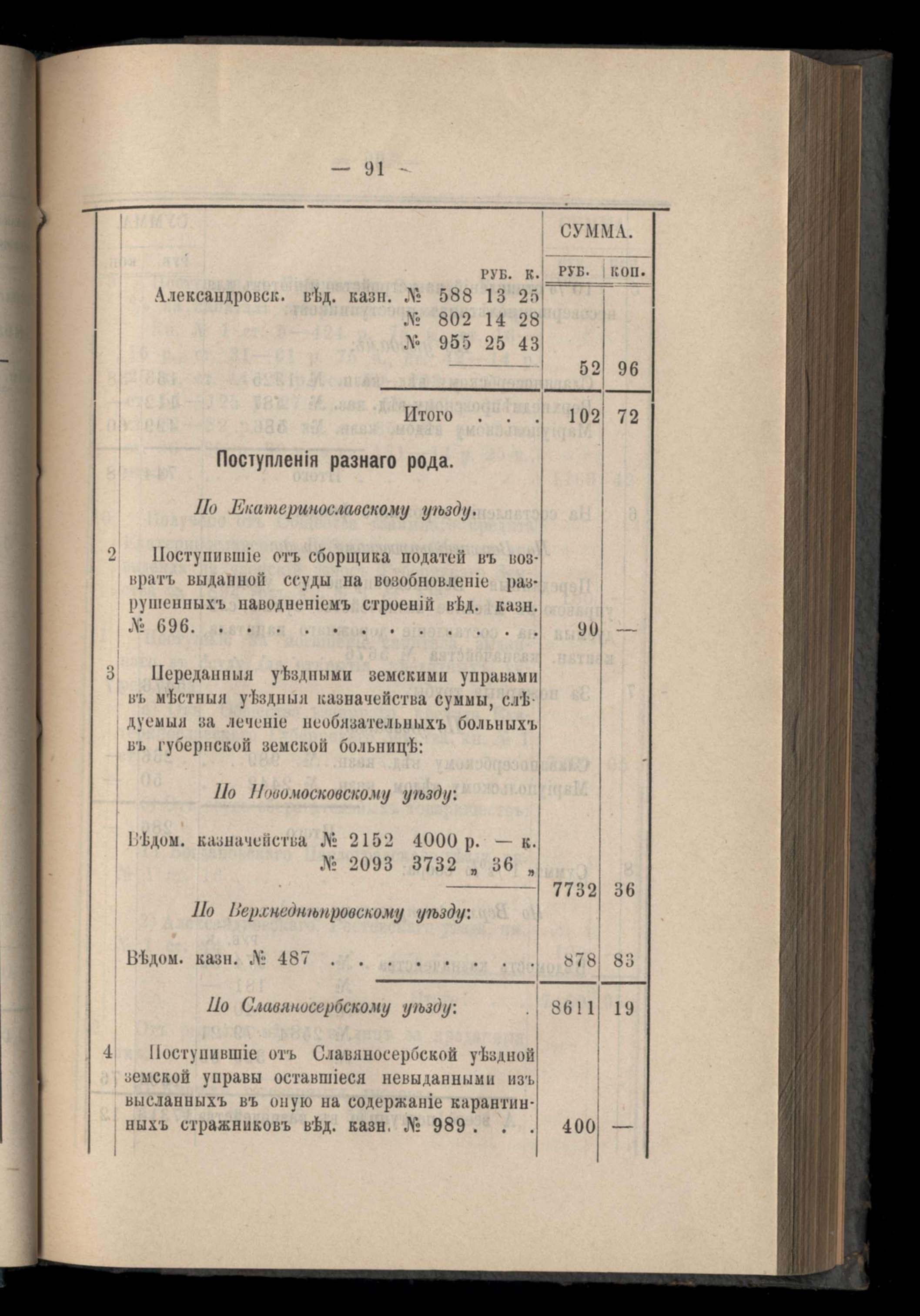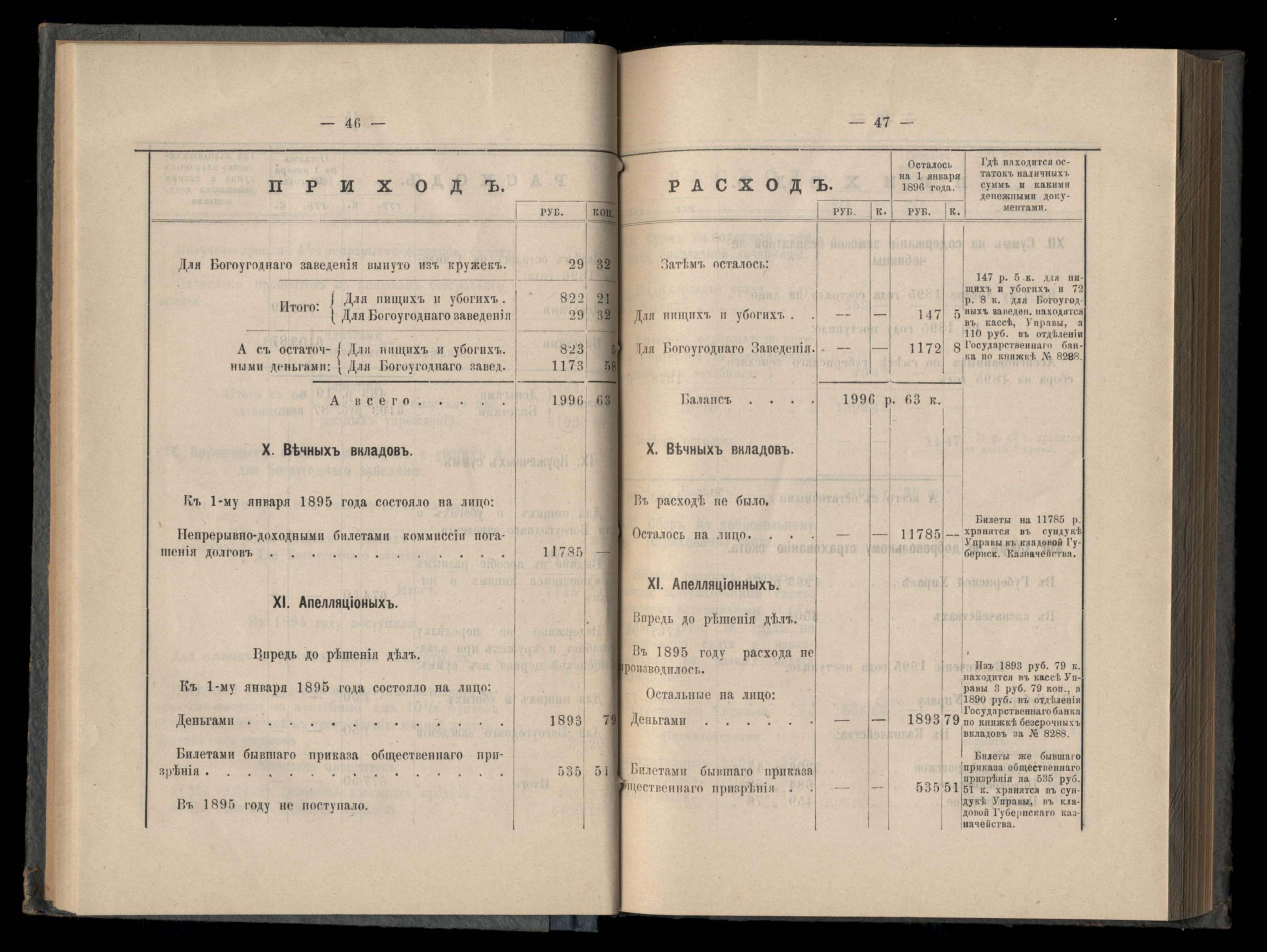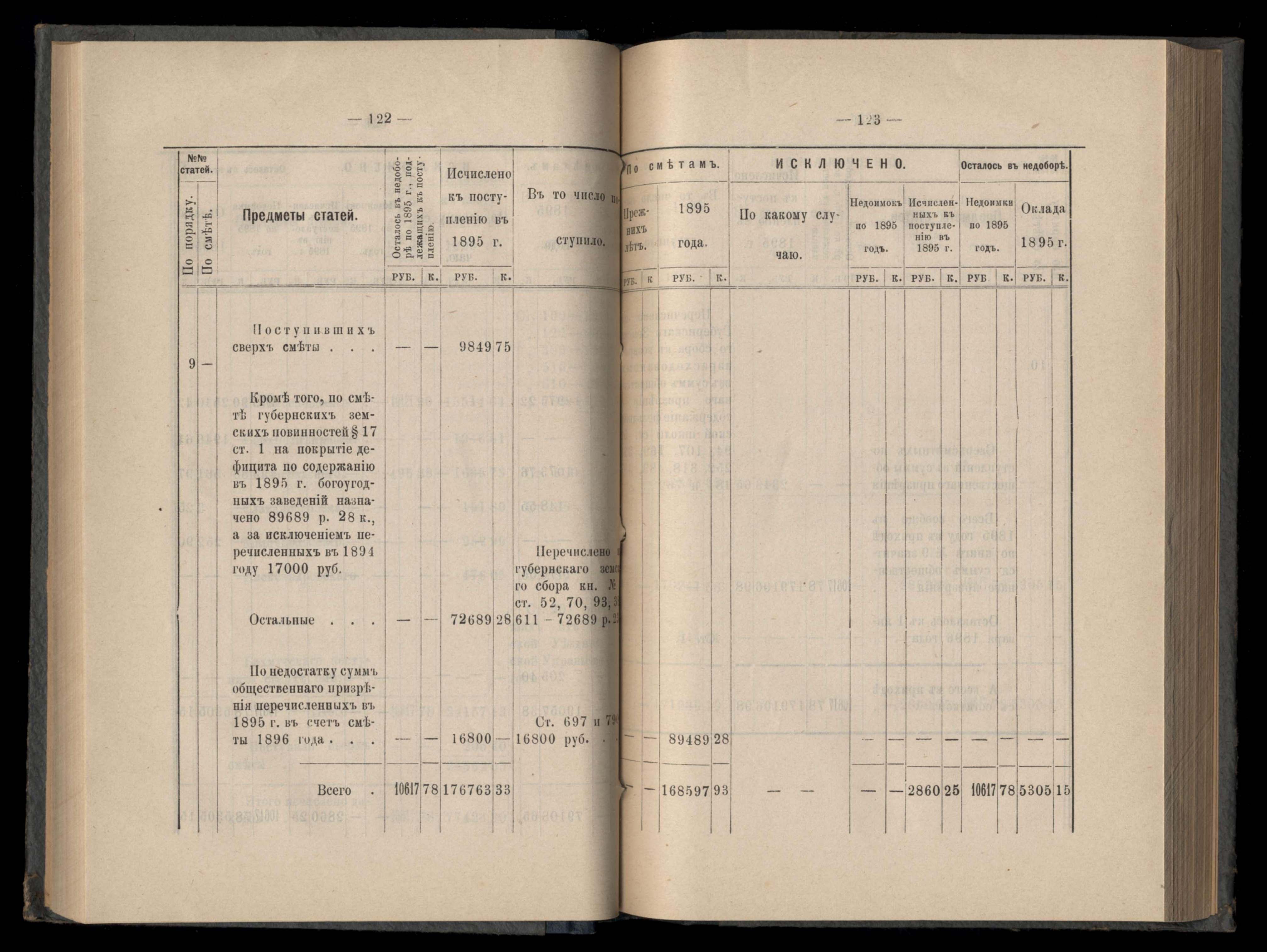 Ведомость Екатеринославской Губернской Земской Управы о приходе и расходе суммъ Имперскаго продовольственнаго капитала, отпущеннаго Правительствомъ для выдачи въ ссуду сельскимъ обществамъ на продовольствіе за 1895 годъ