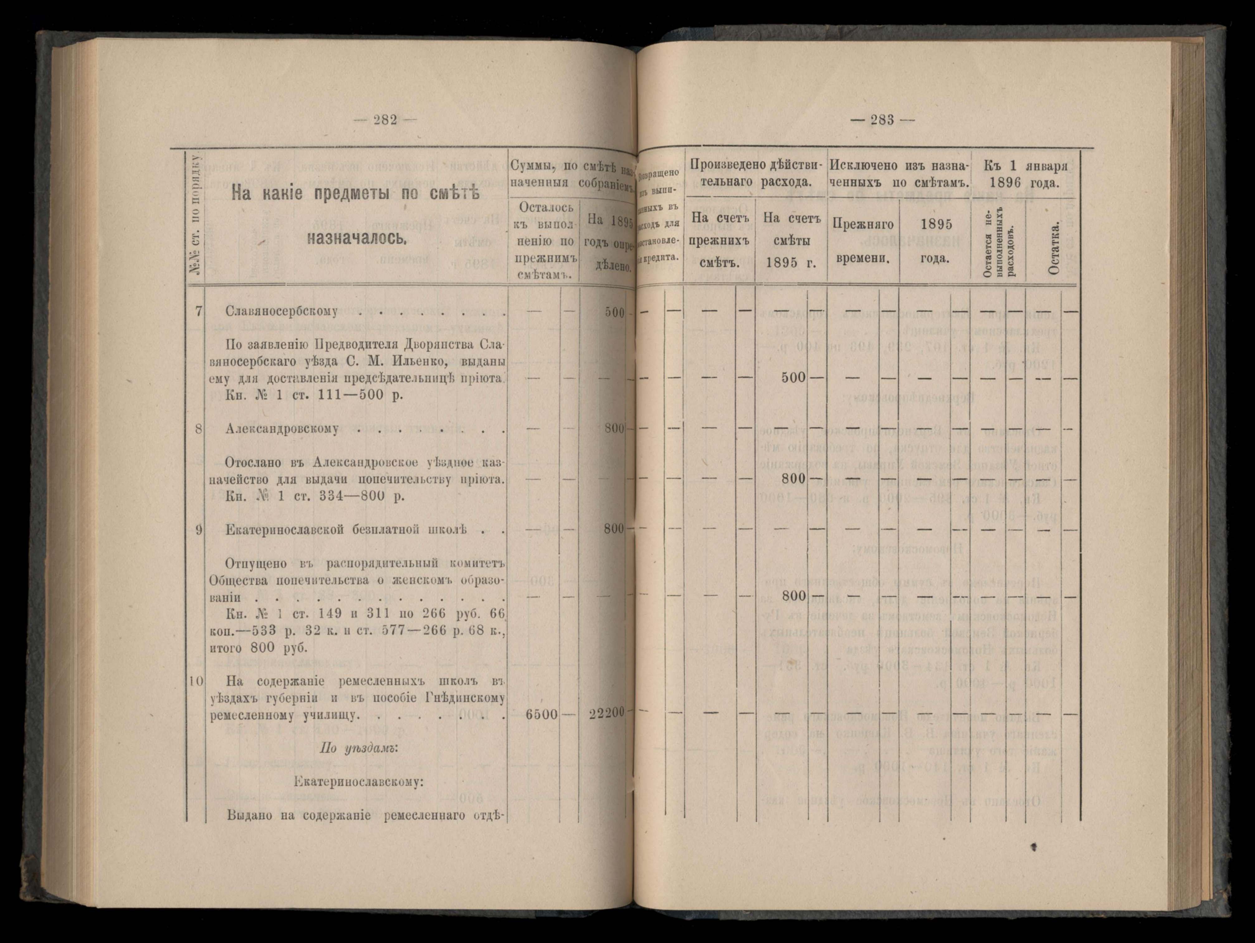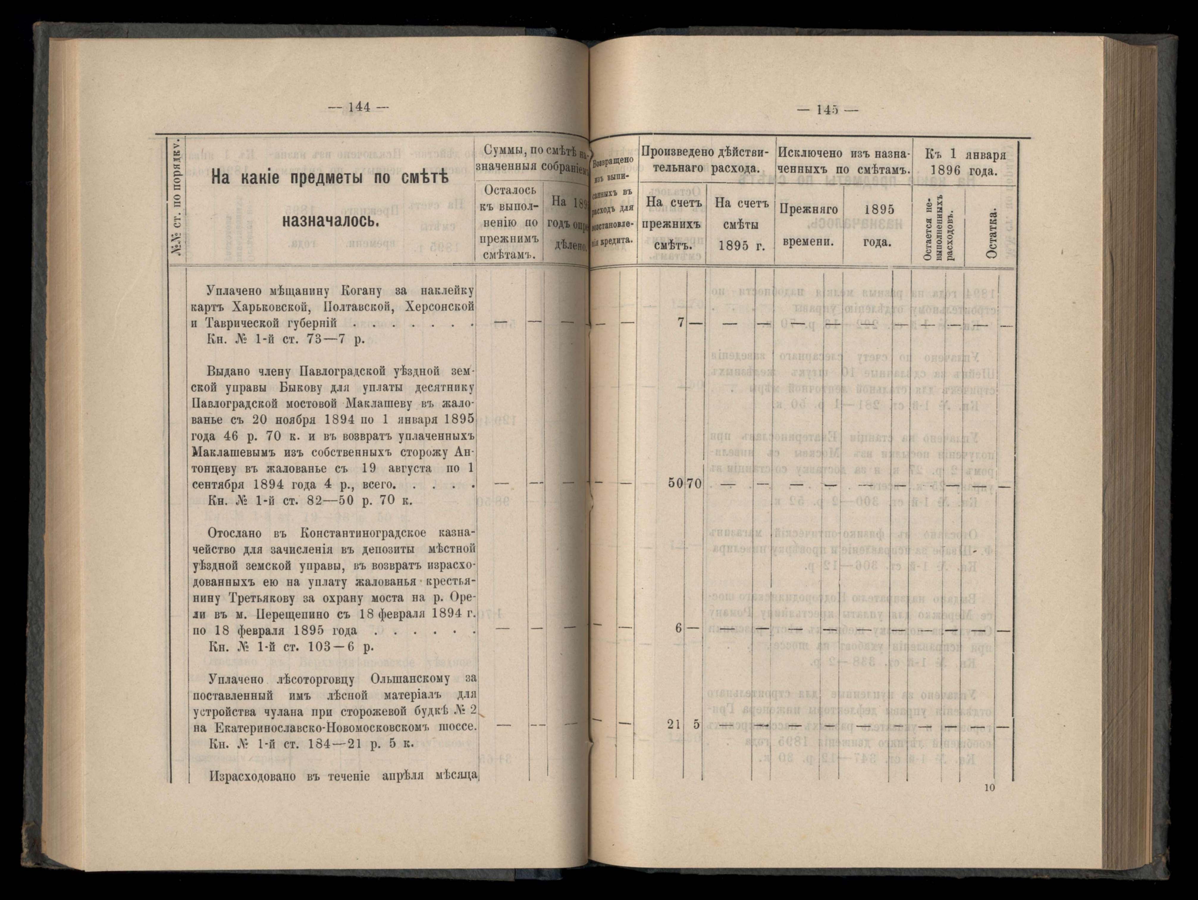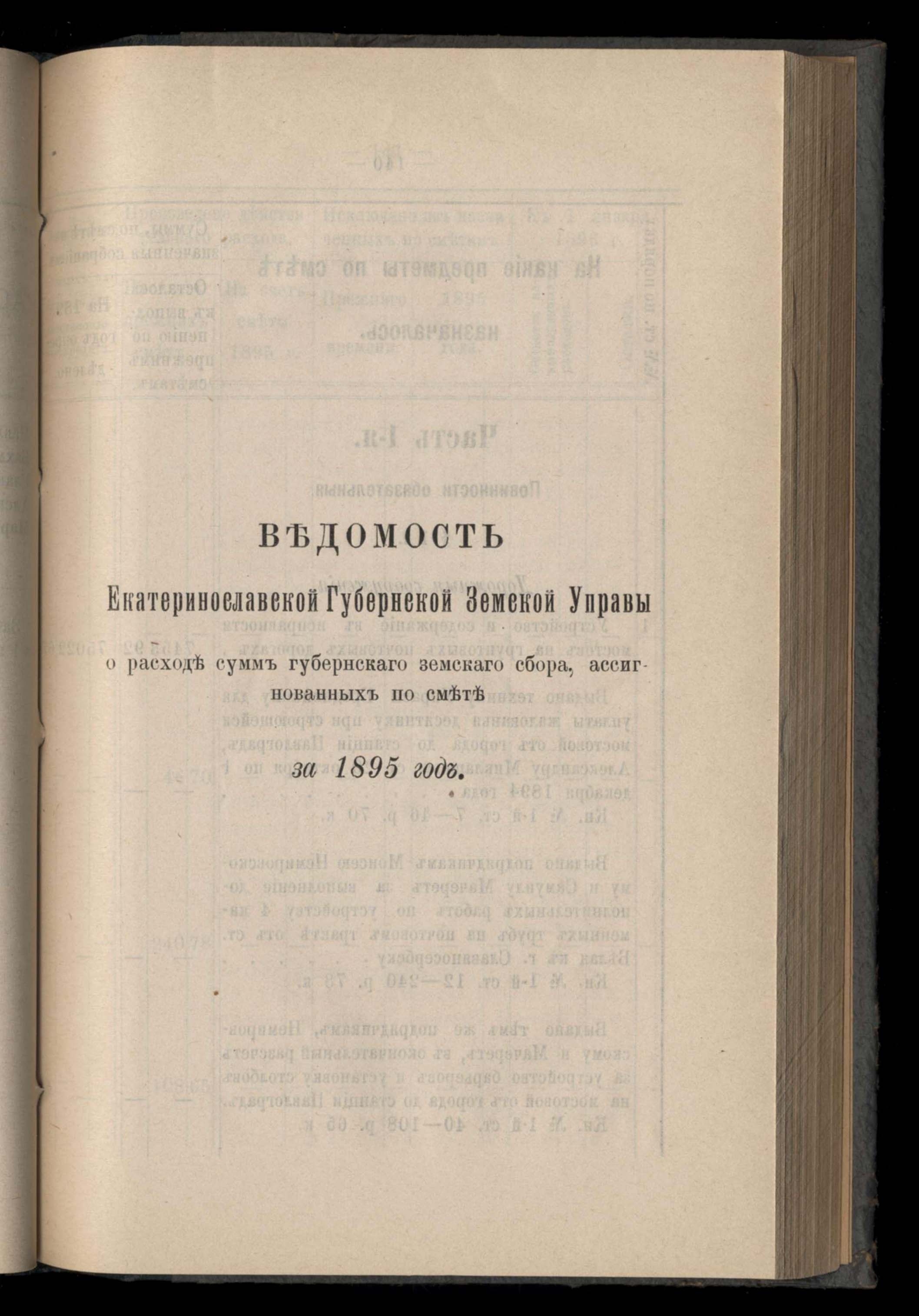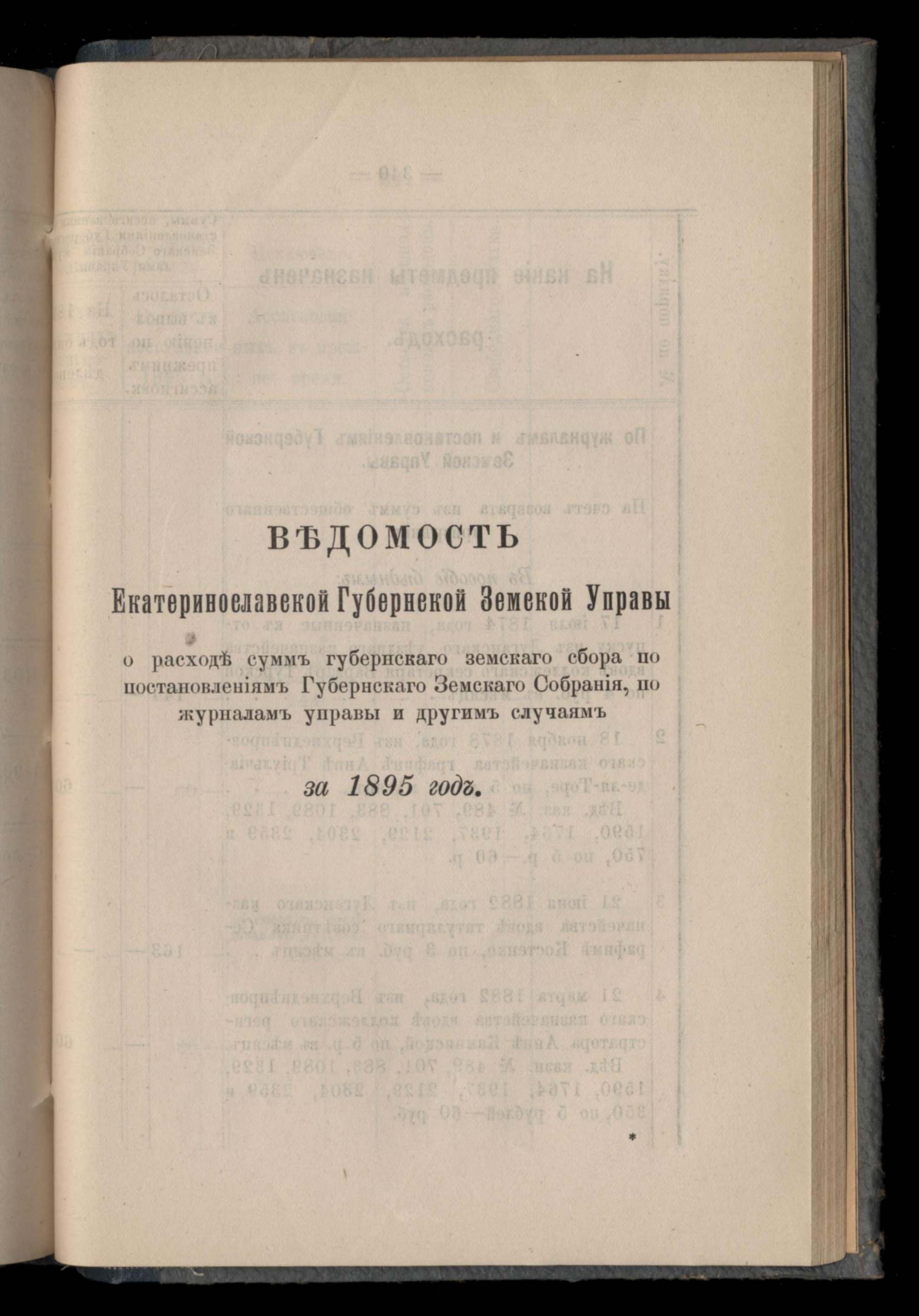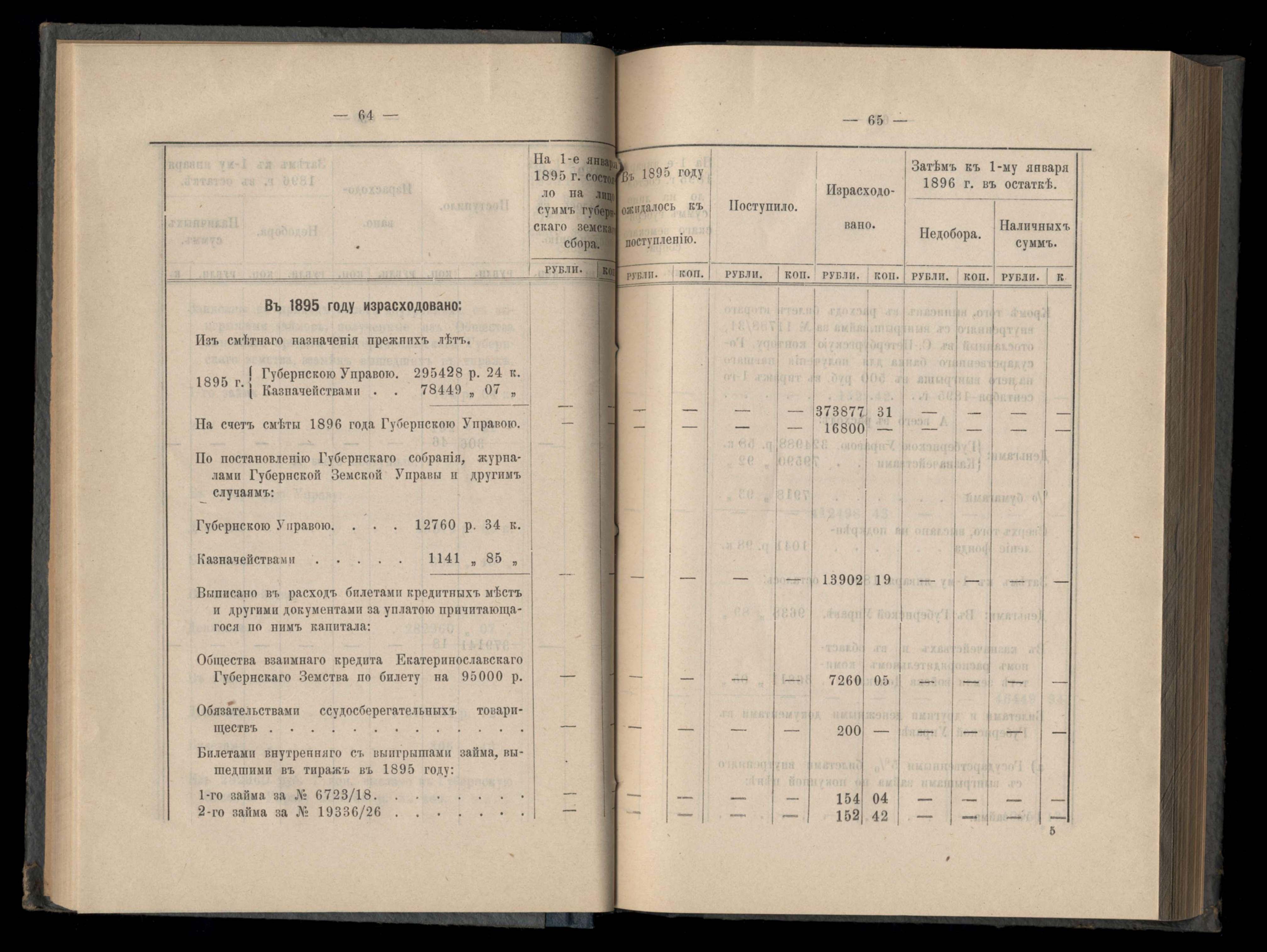 Ведомость Екатеринославской Губернской Земской Управы о Расходахъ суммъ губернскаго земскаго сбора, по постановленіямъ Губернскаго Земскаго Собранія, по журналамъ управы и другимъ случаямъ за 1895 годъ