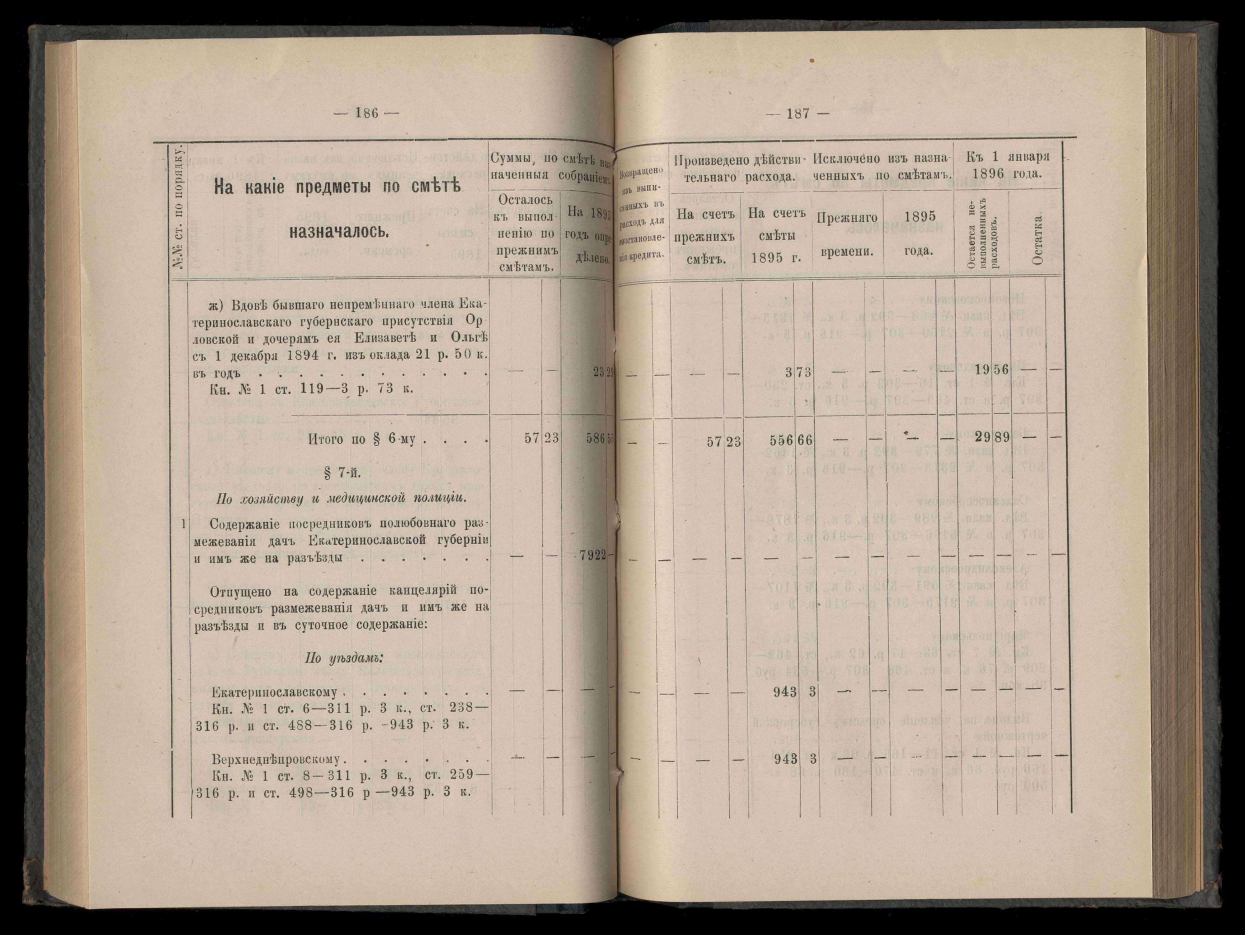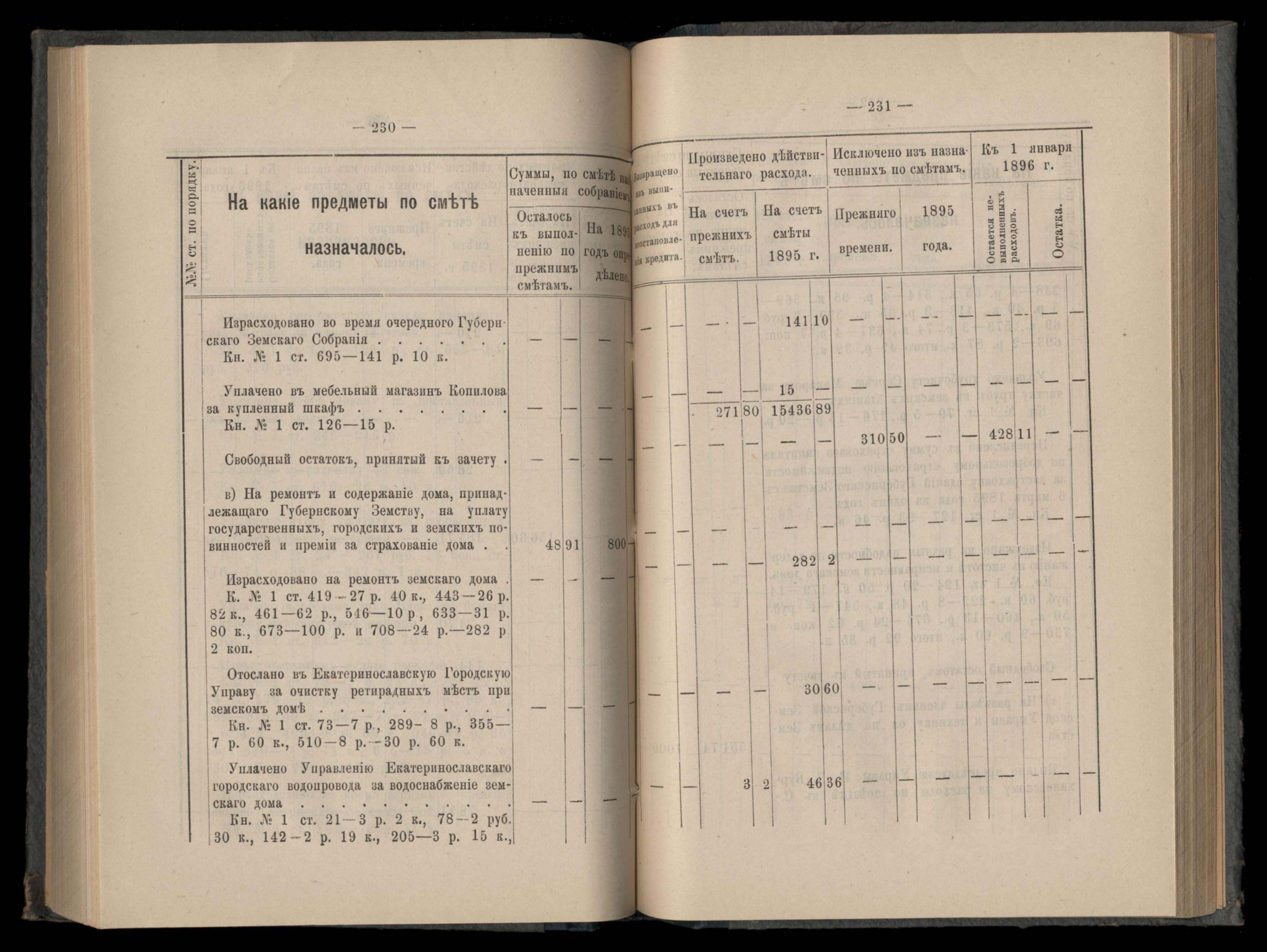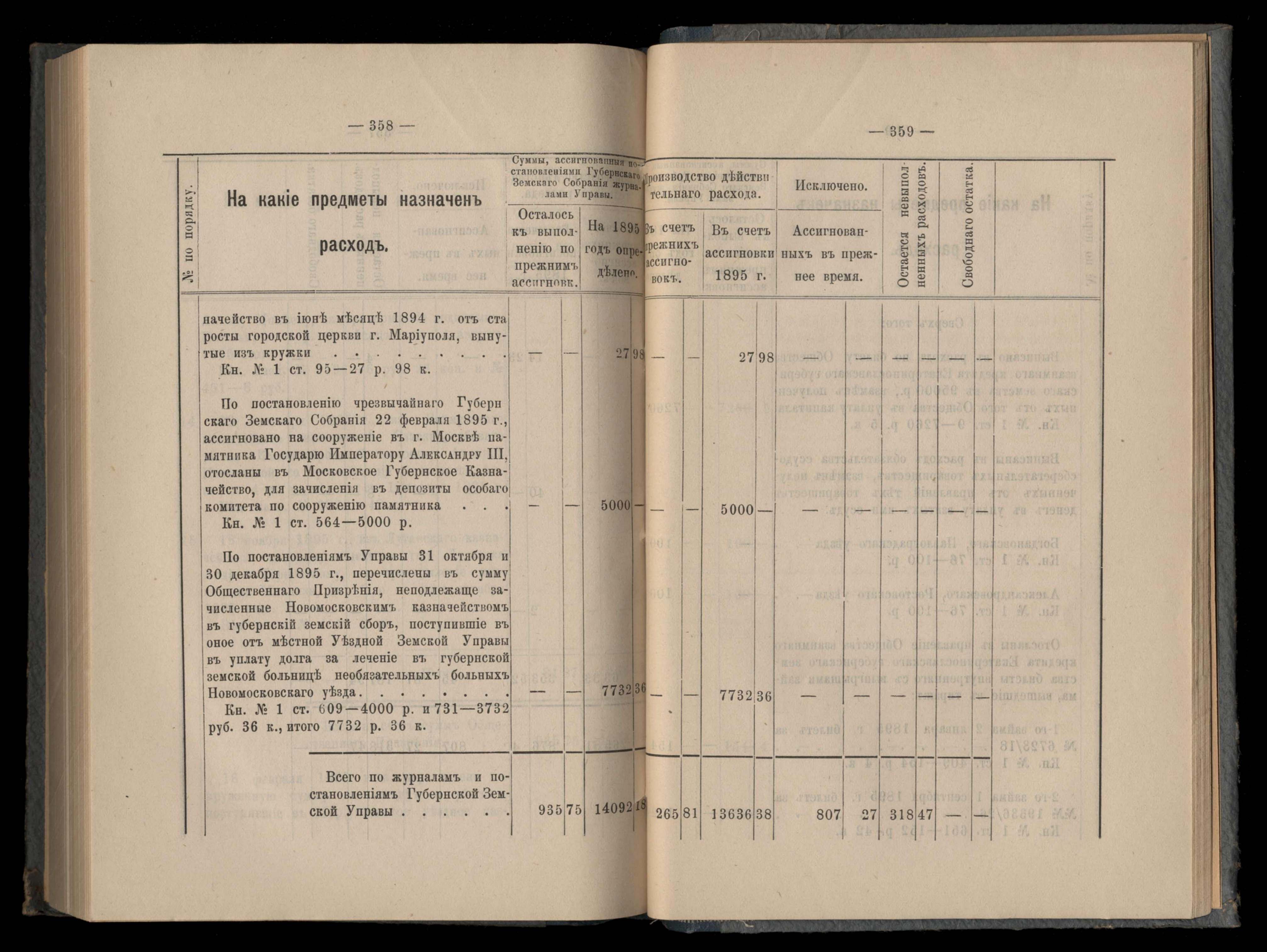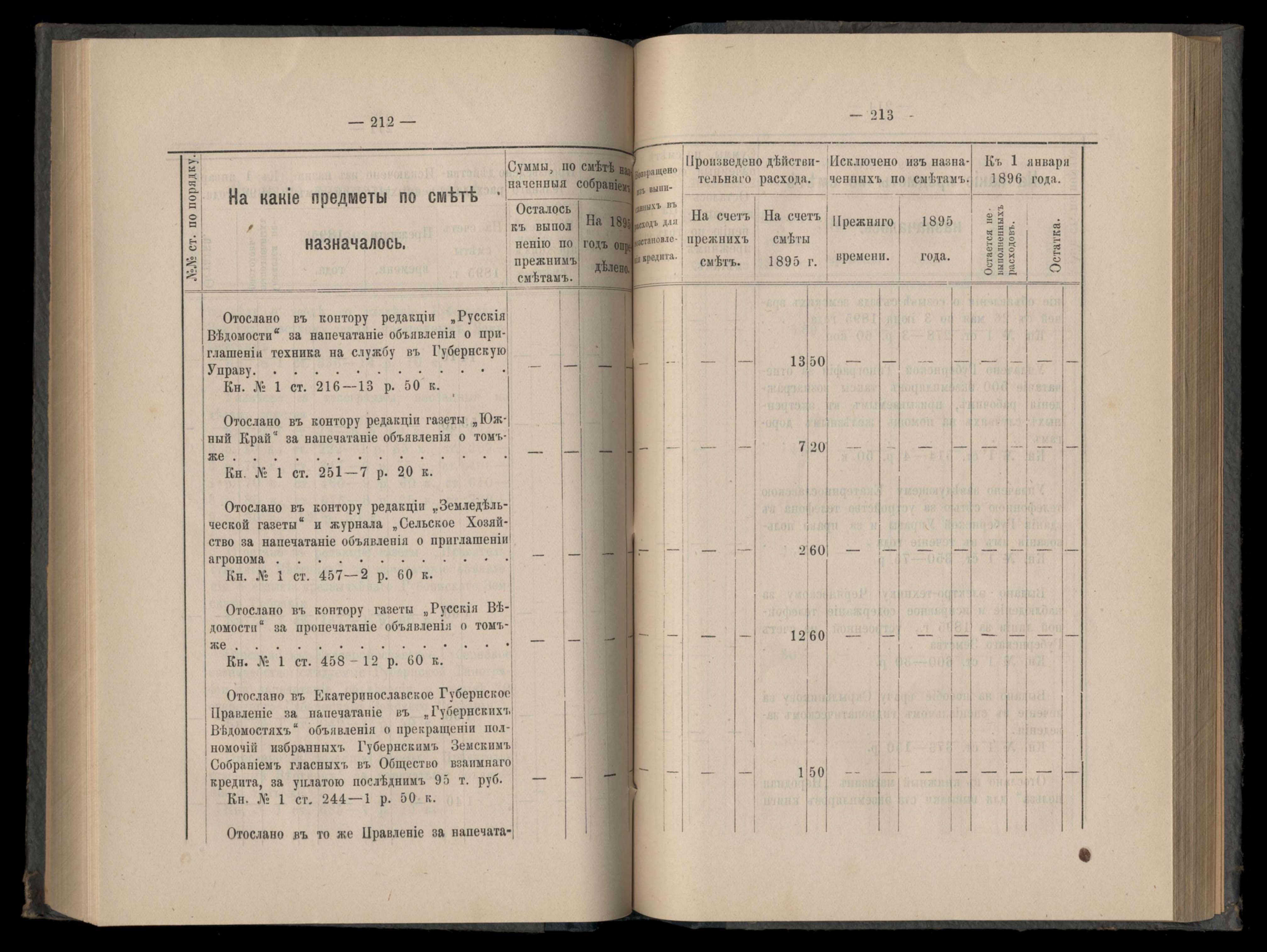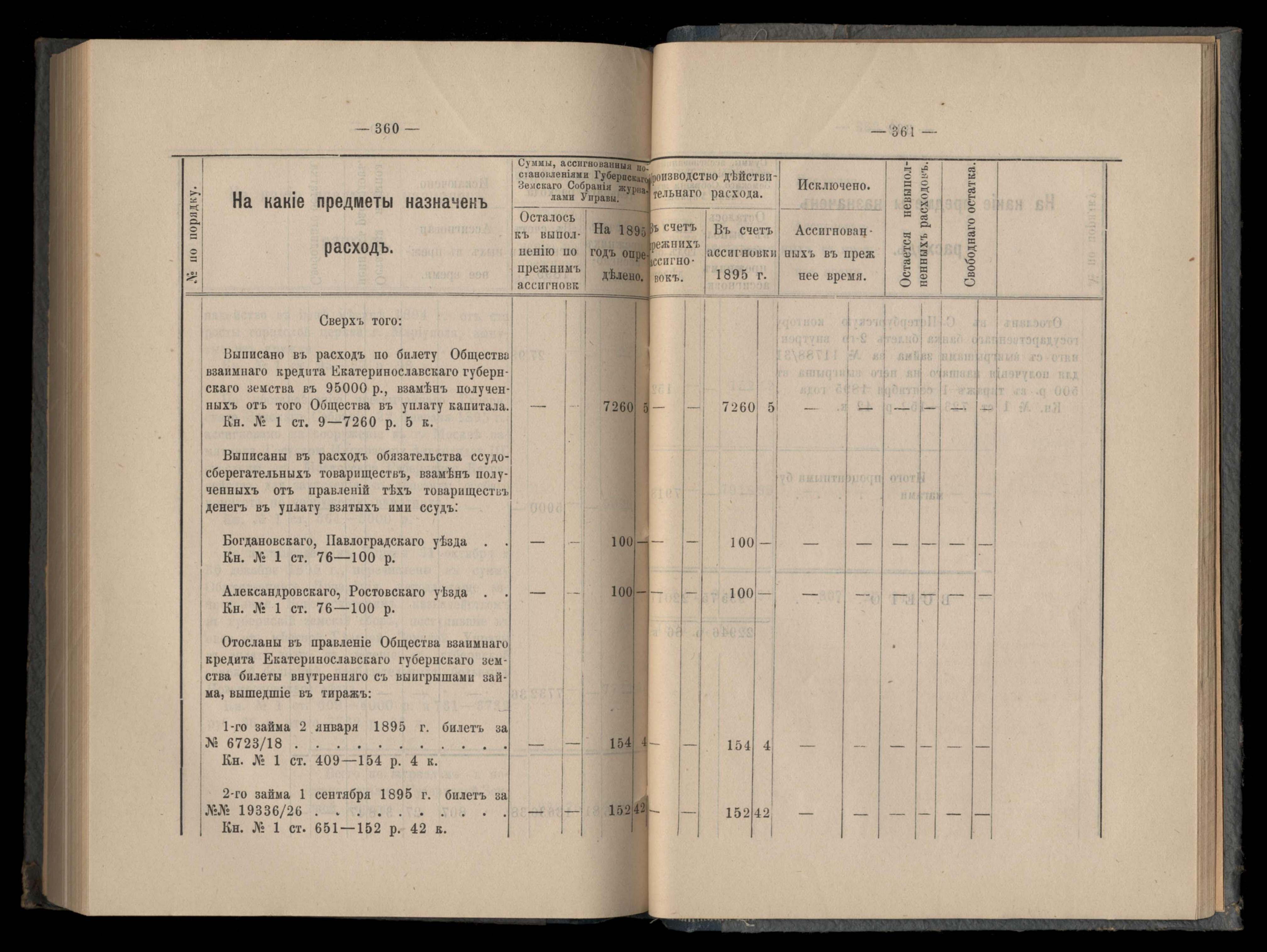 Ведомость Екатеринославской Губернской Земской Управы о Расходахъ суммъ губернскаго земскаго сбора, по постановленіямъ Губернскаго Земскаго Собранія, по журналамъ управы и другимъ случаямъ за 1895 годъ