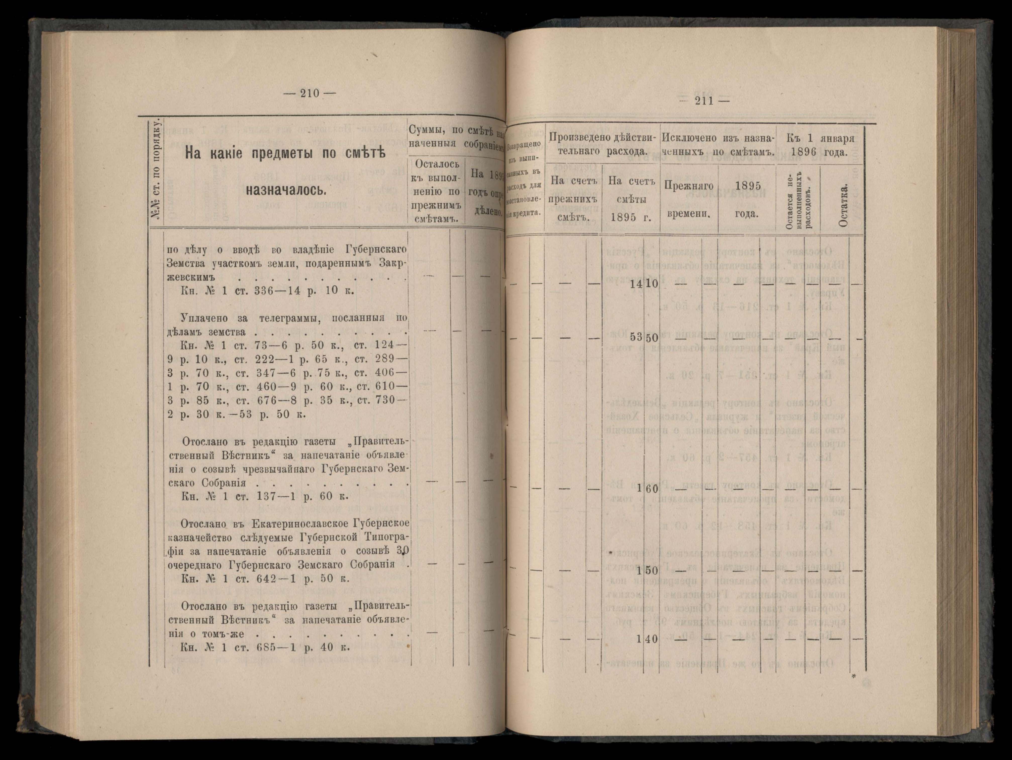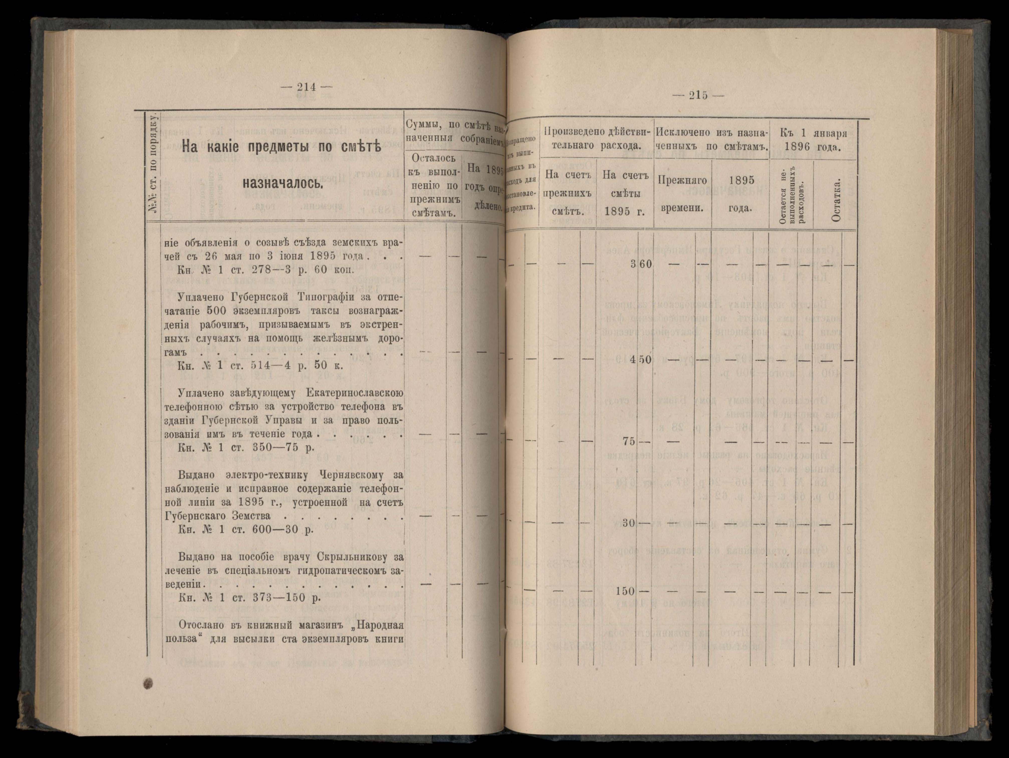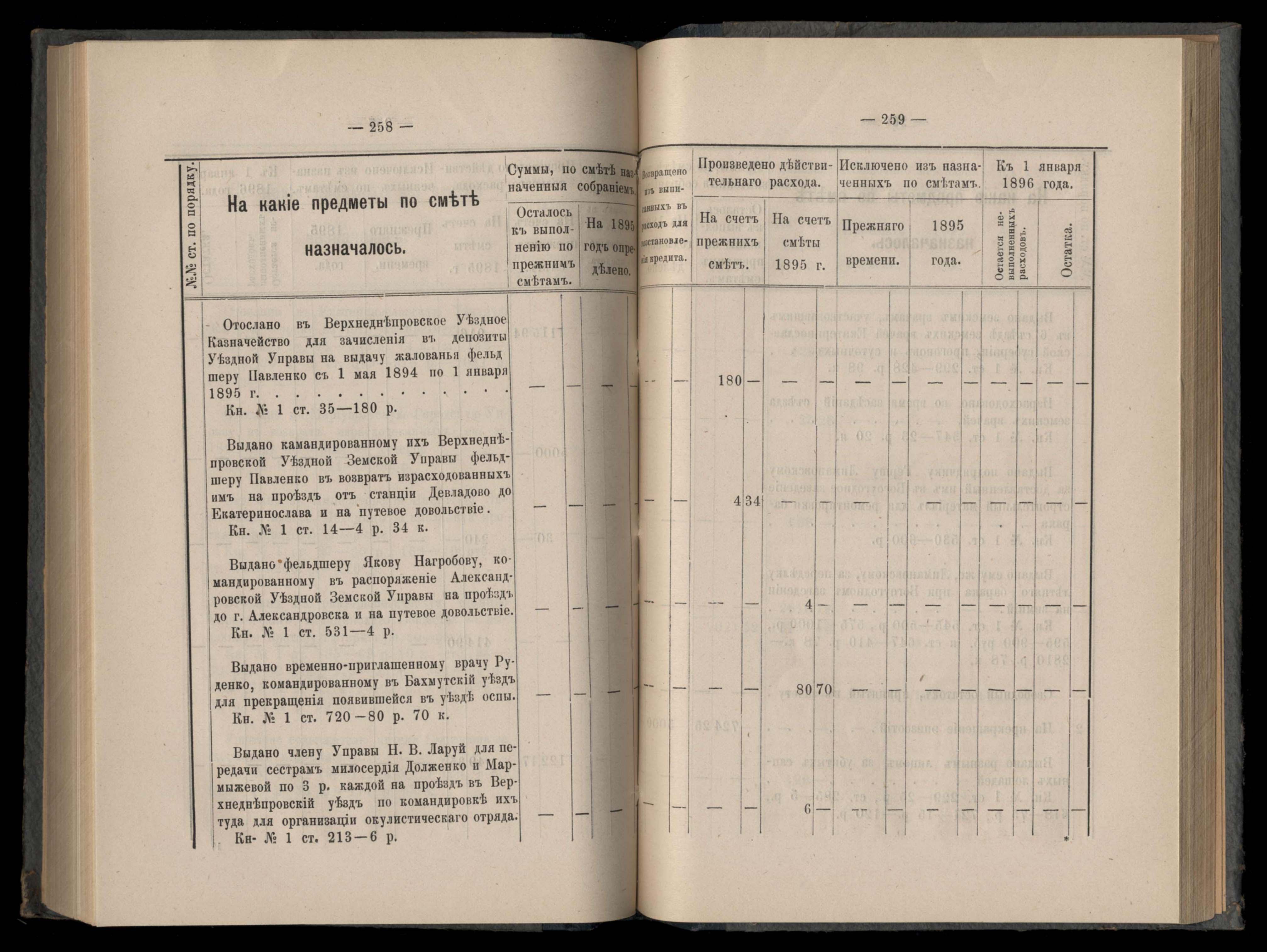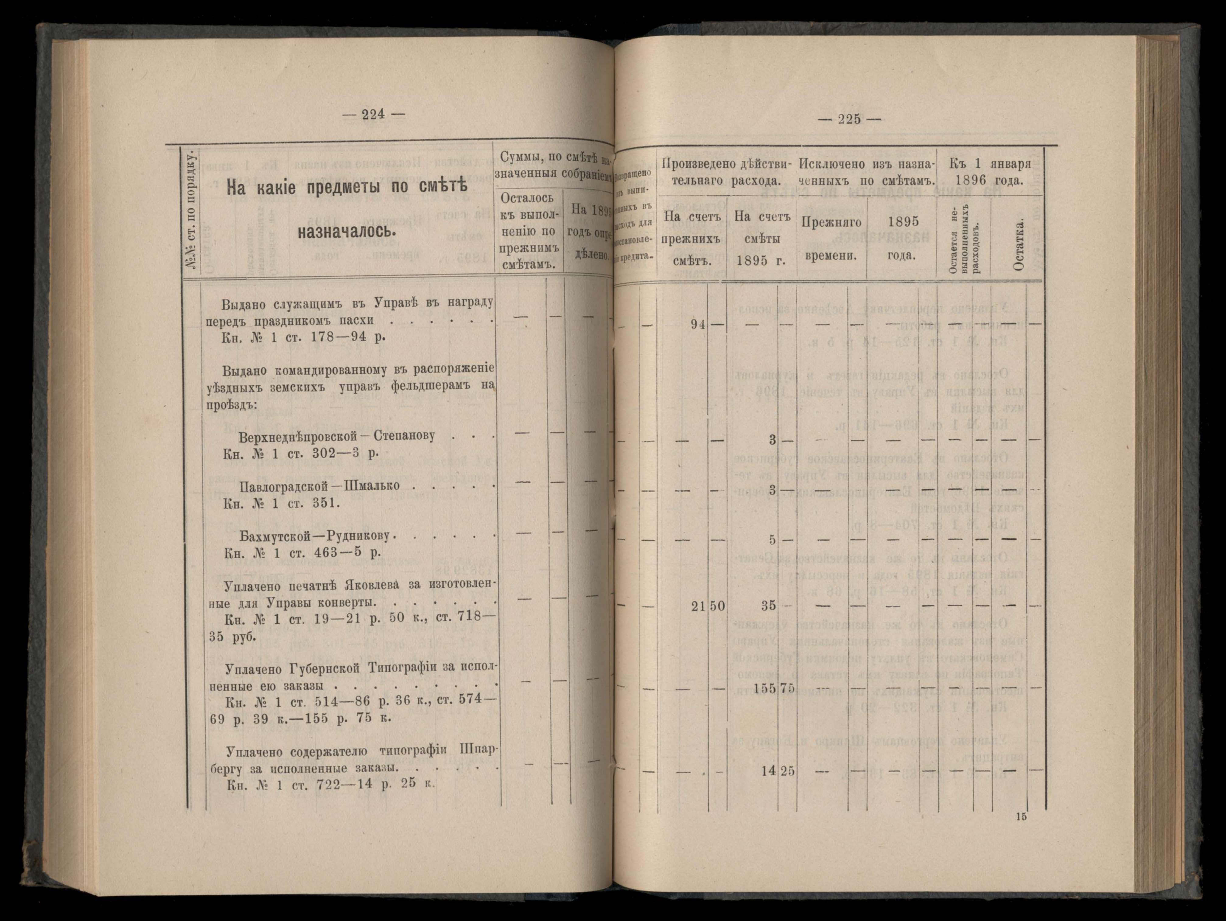 Ведомость Екатеринославской Губернской Земской Управы о Расходахъ суммъ губернскаго земскаго сбора, по постановленіямъ Губернскаго Земскаго Собранія, по журналамъ управы и другимъ случаямъ за 1895 годъ