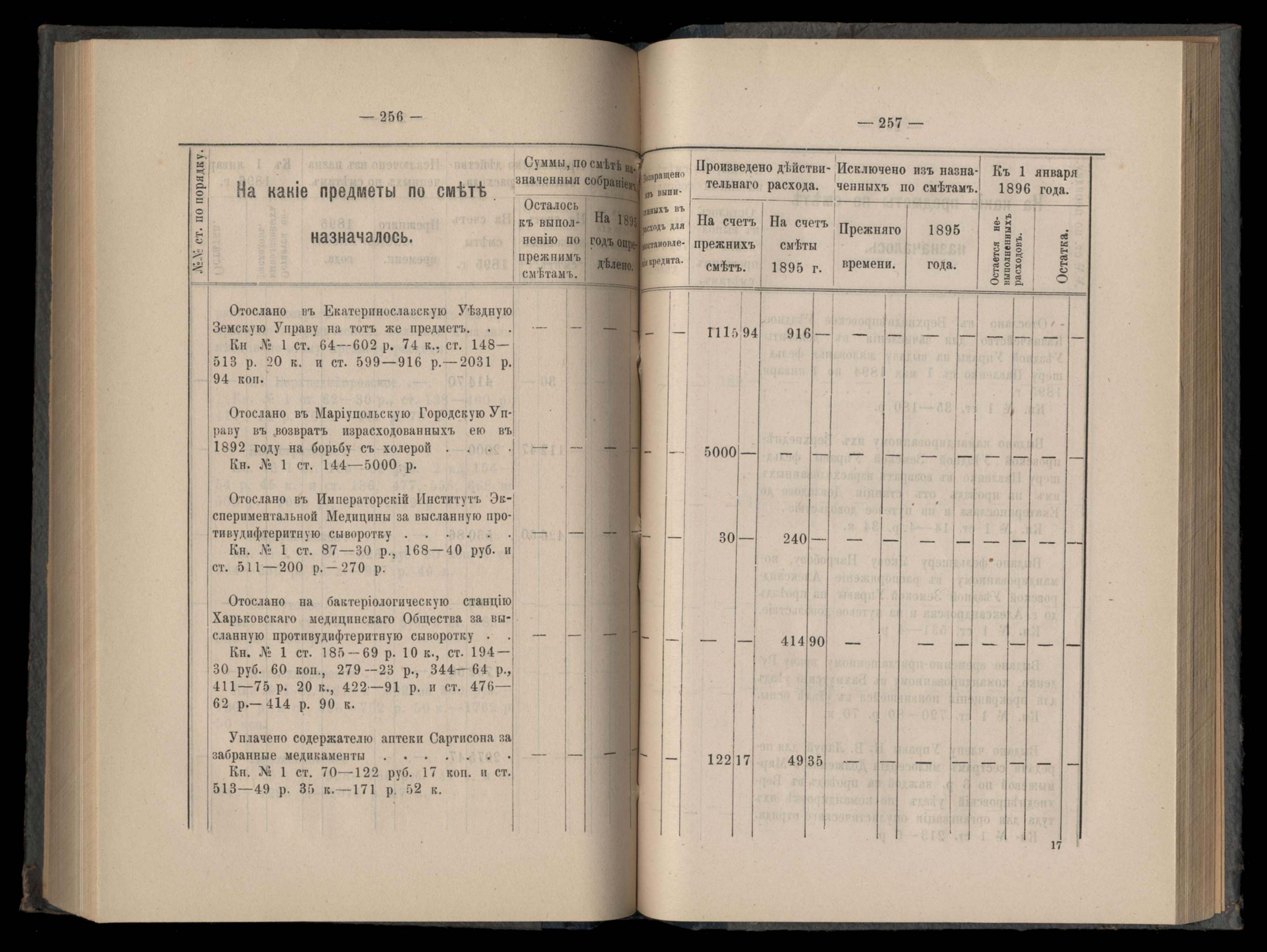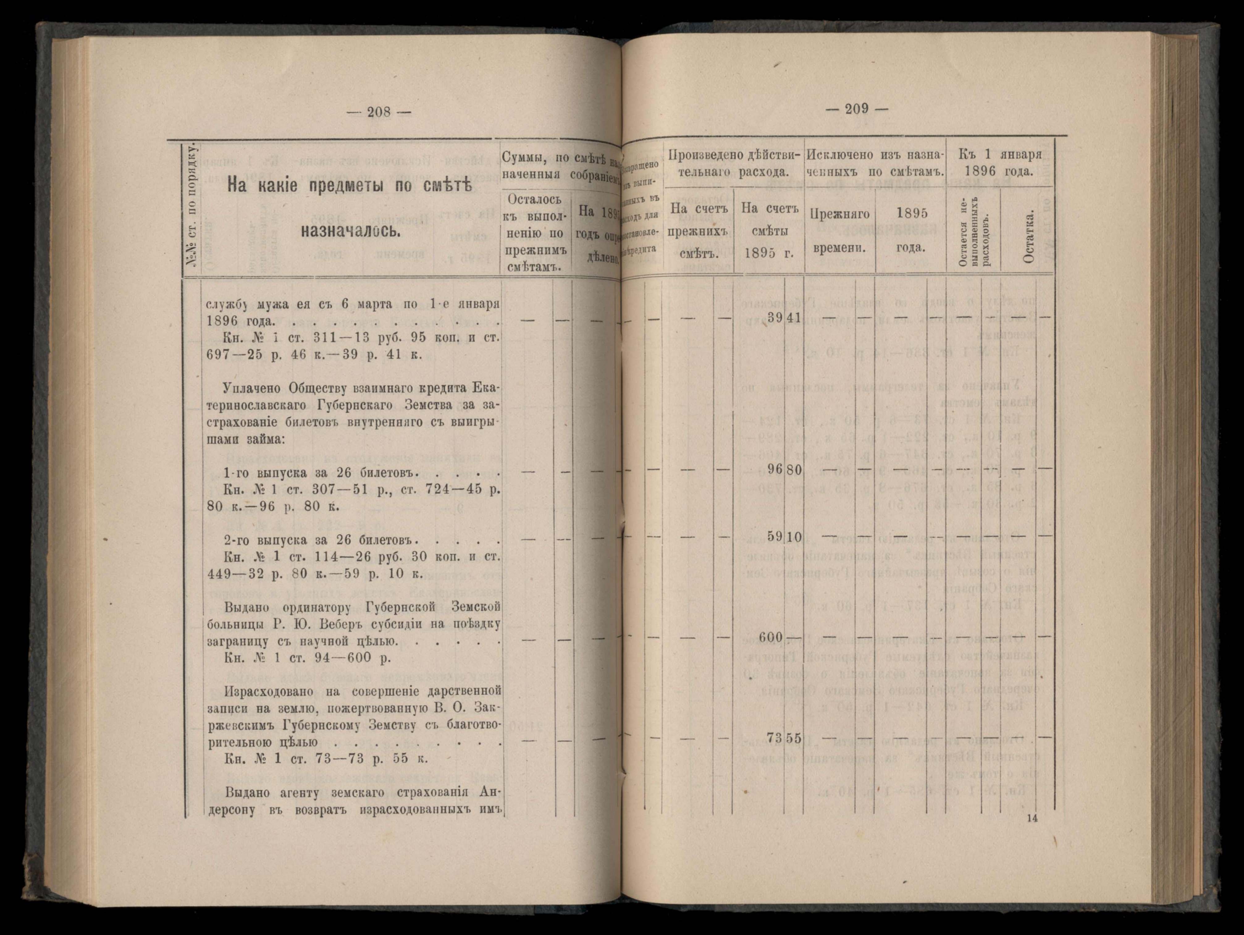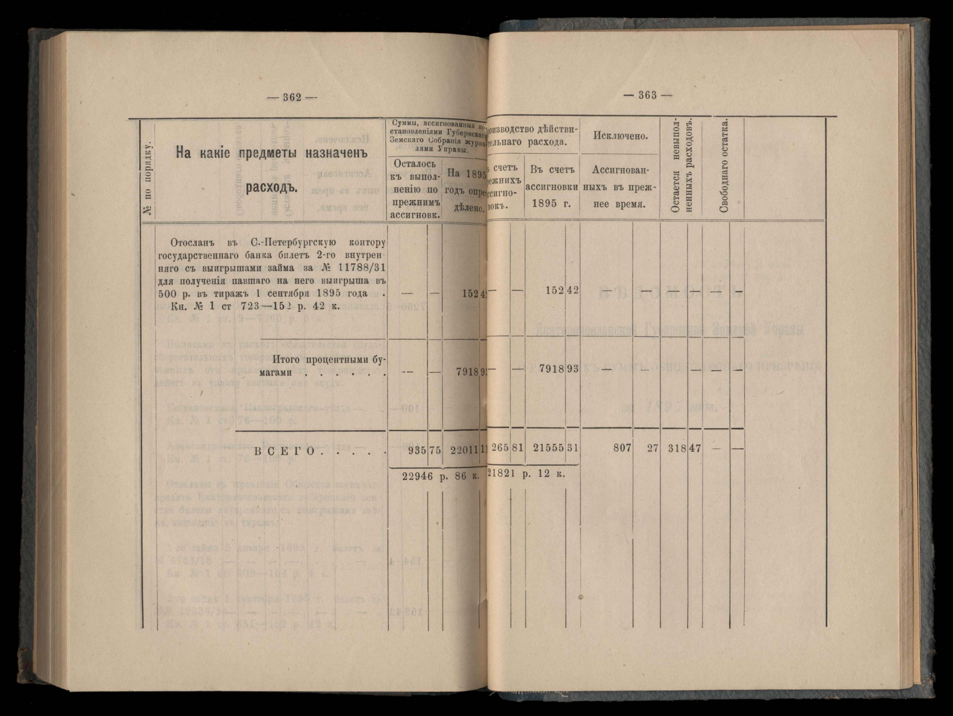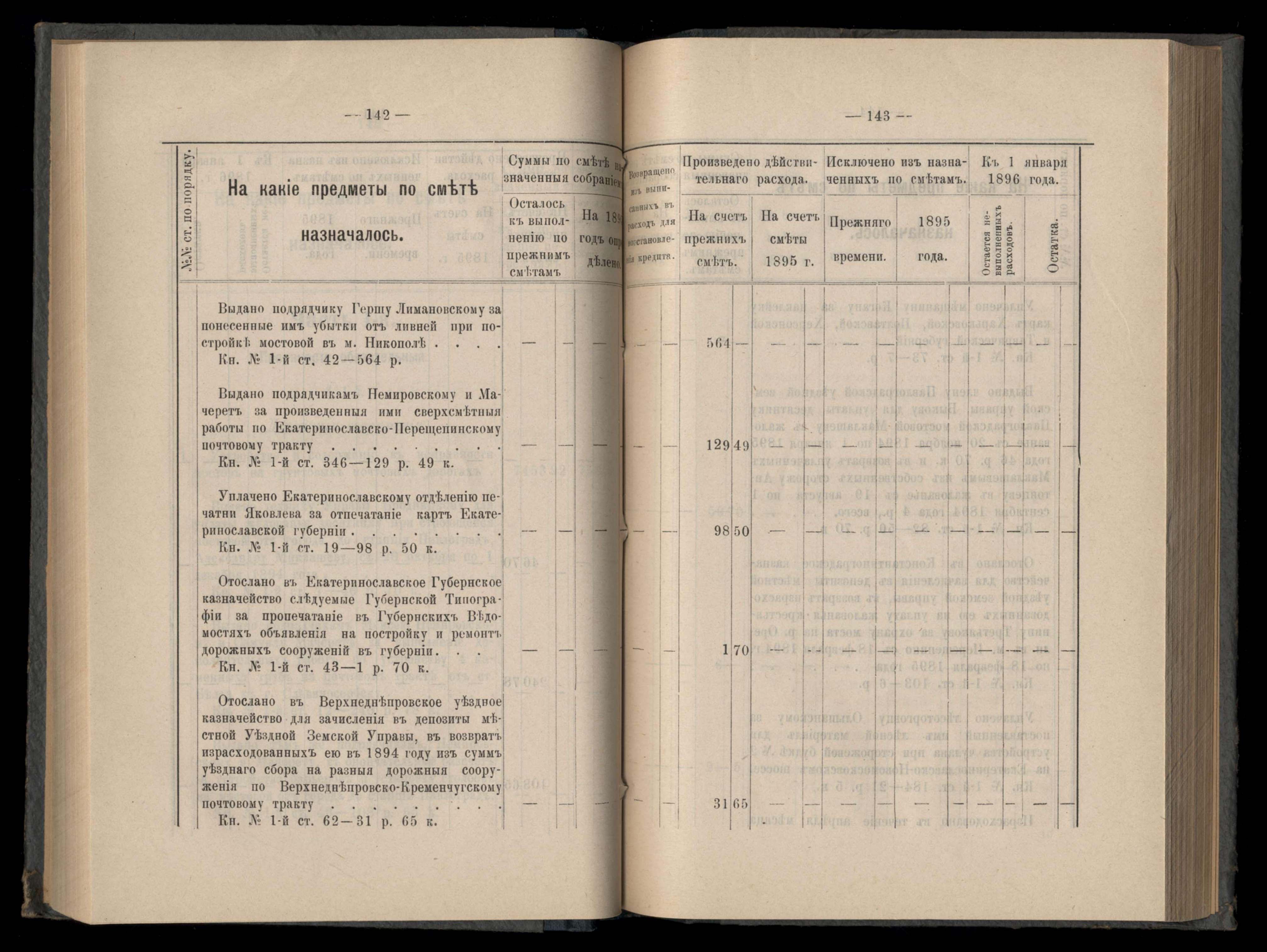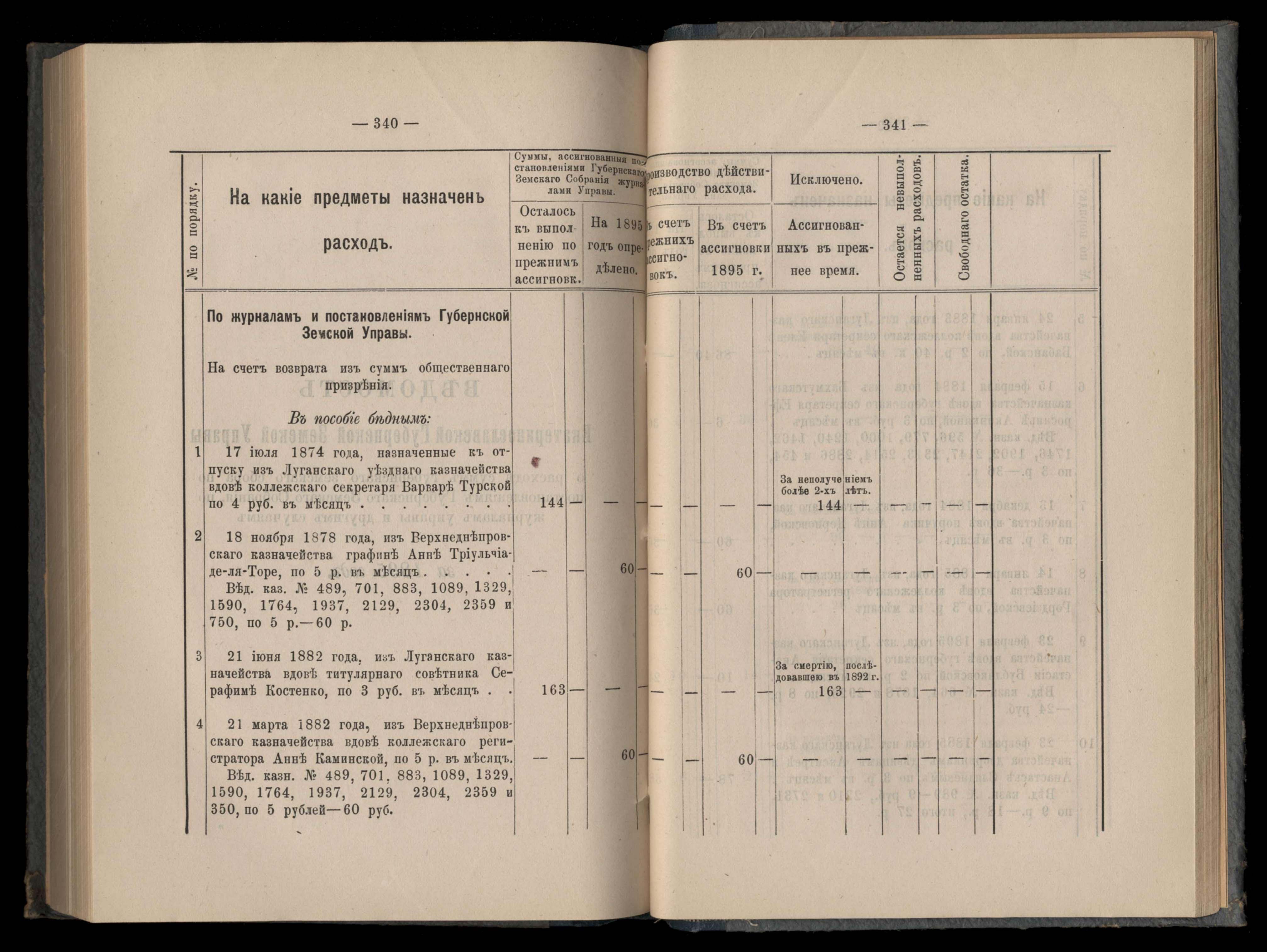 Ведомость Екатеринославской Губернской Земской Управы о Расходахъ суммъ губернскаго земскаго сбора, по постановленіямъ Губернскаго Земскаго Собранія, по журналамъ управы и другимъ случаямъ за 1895 годъ