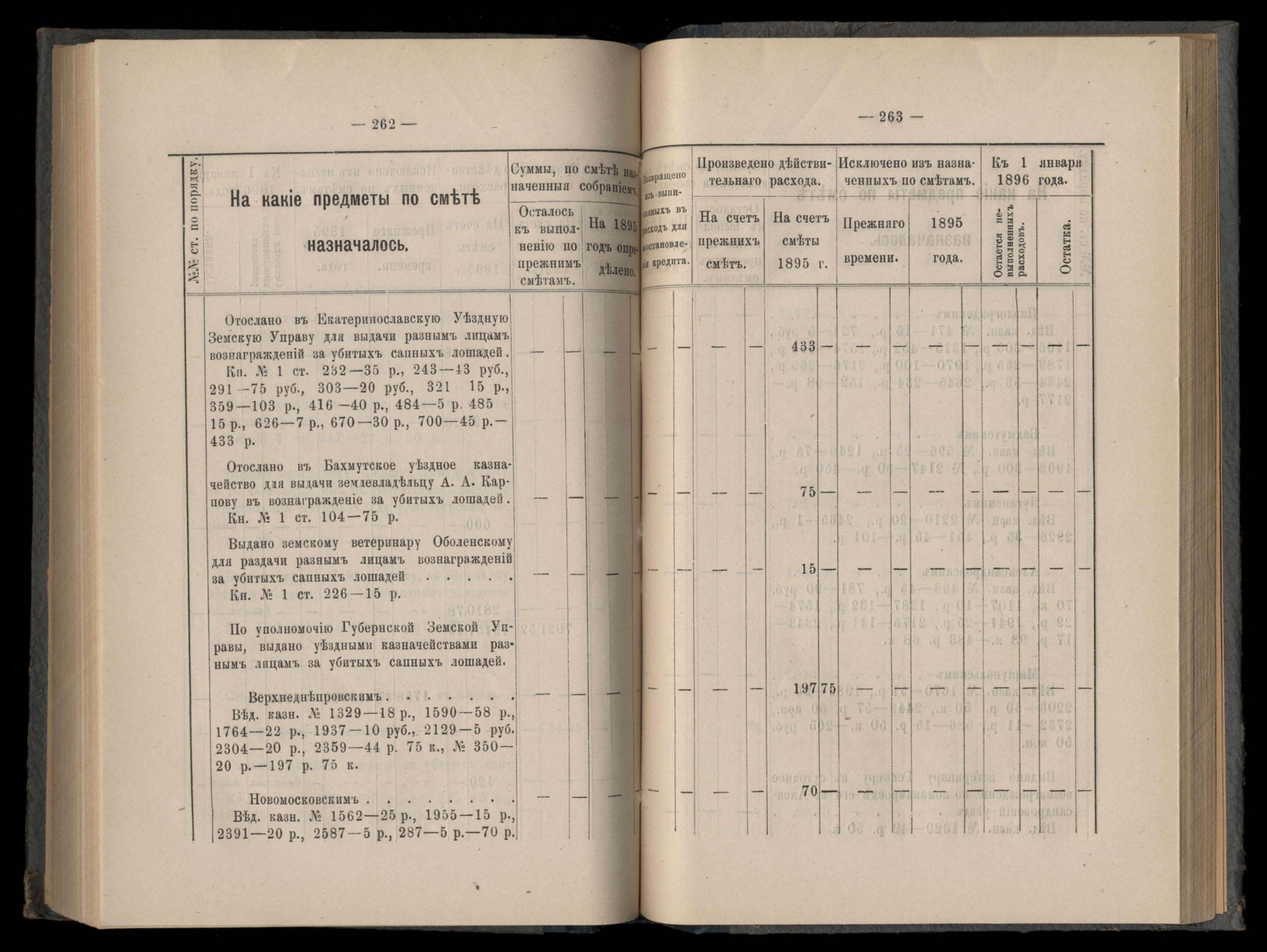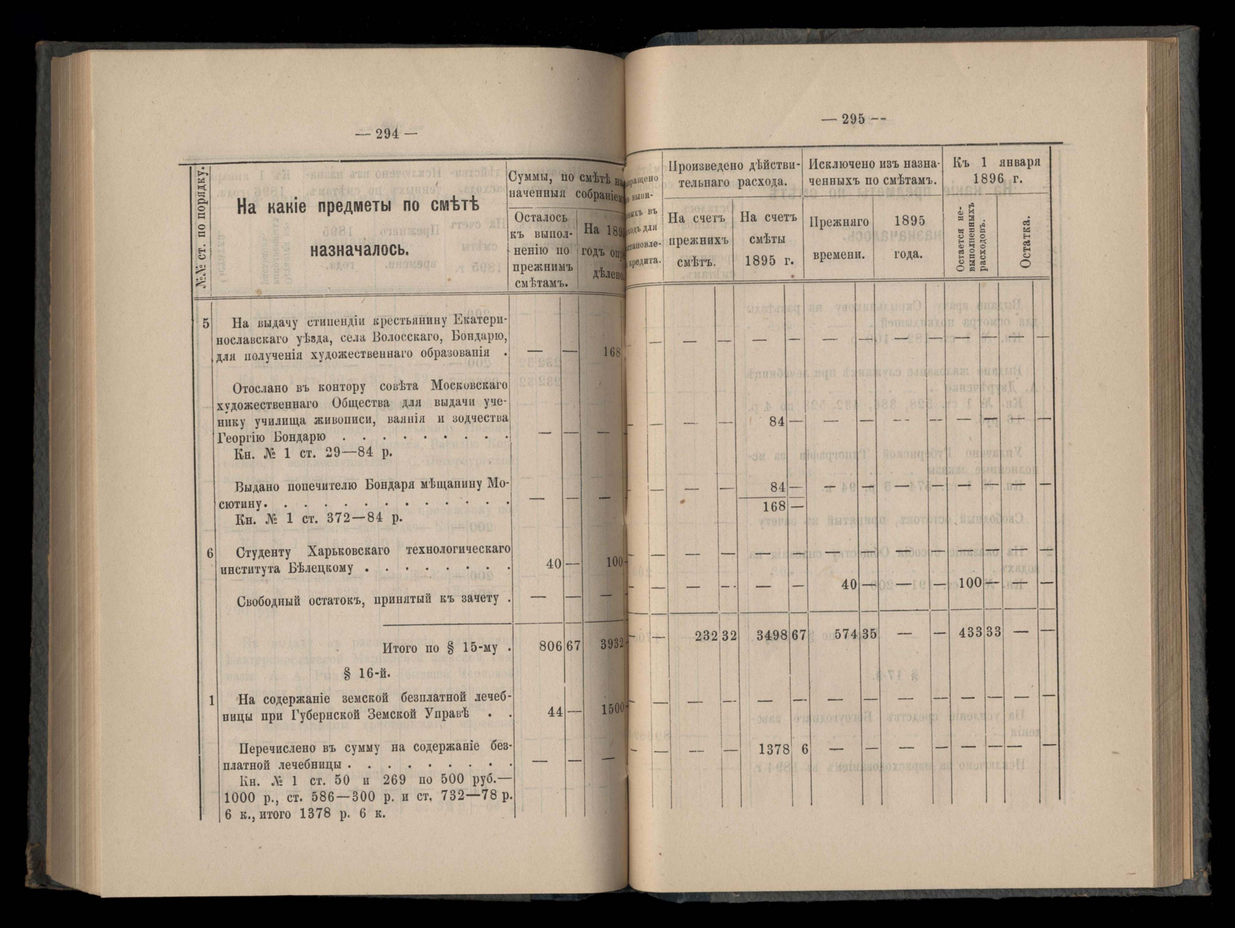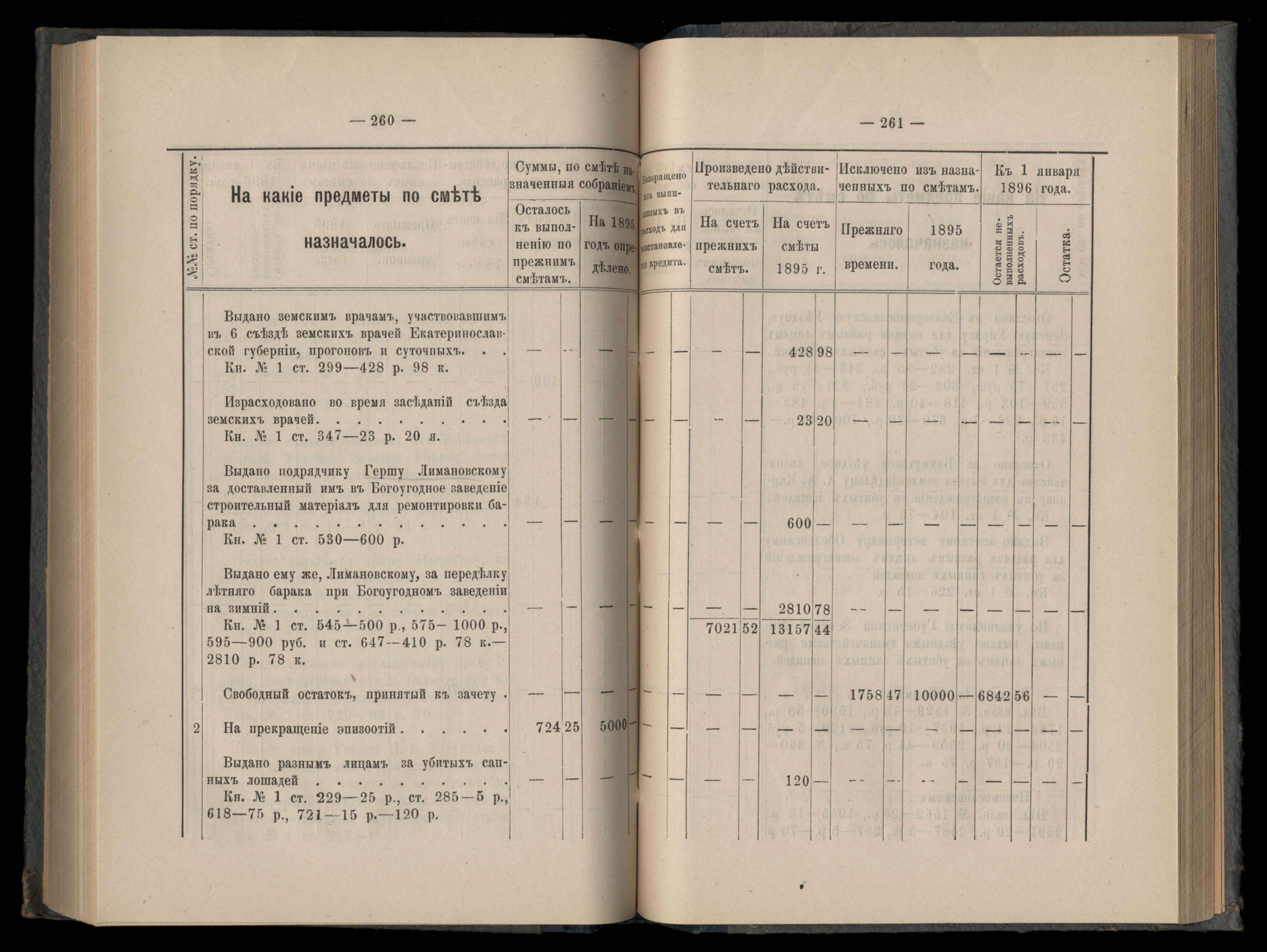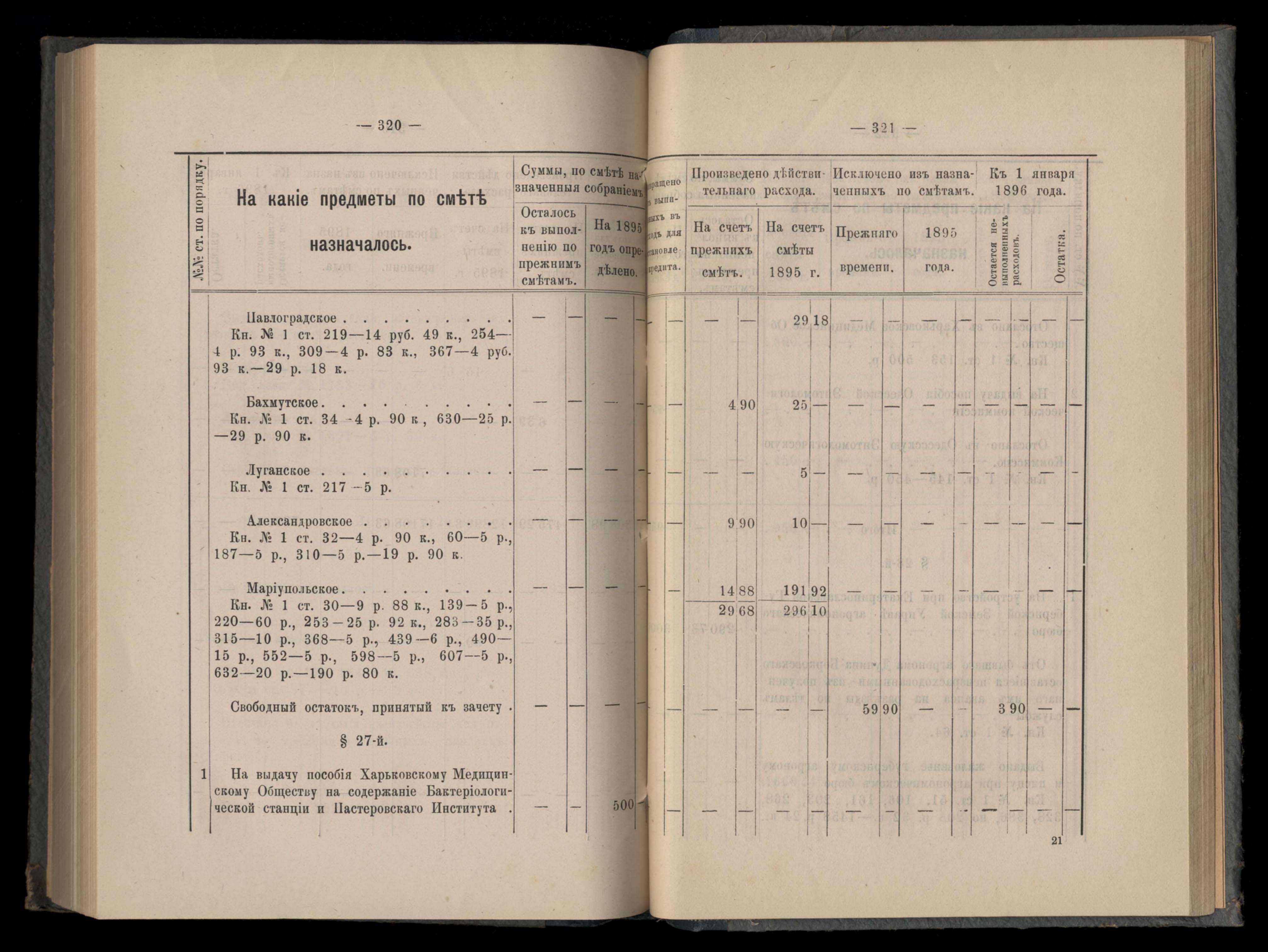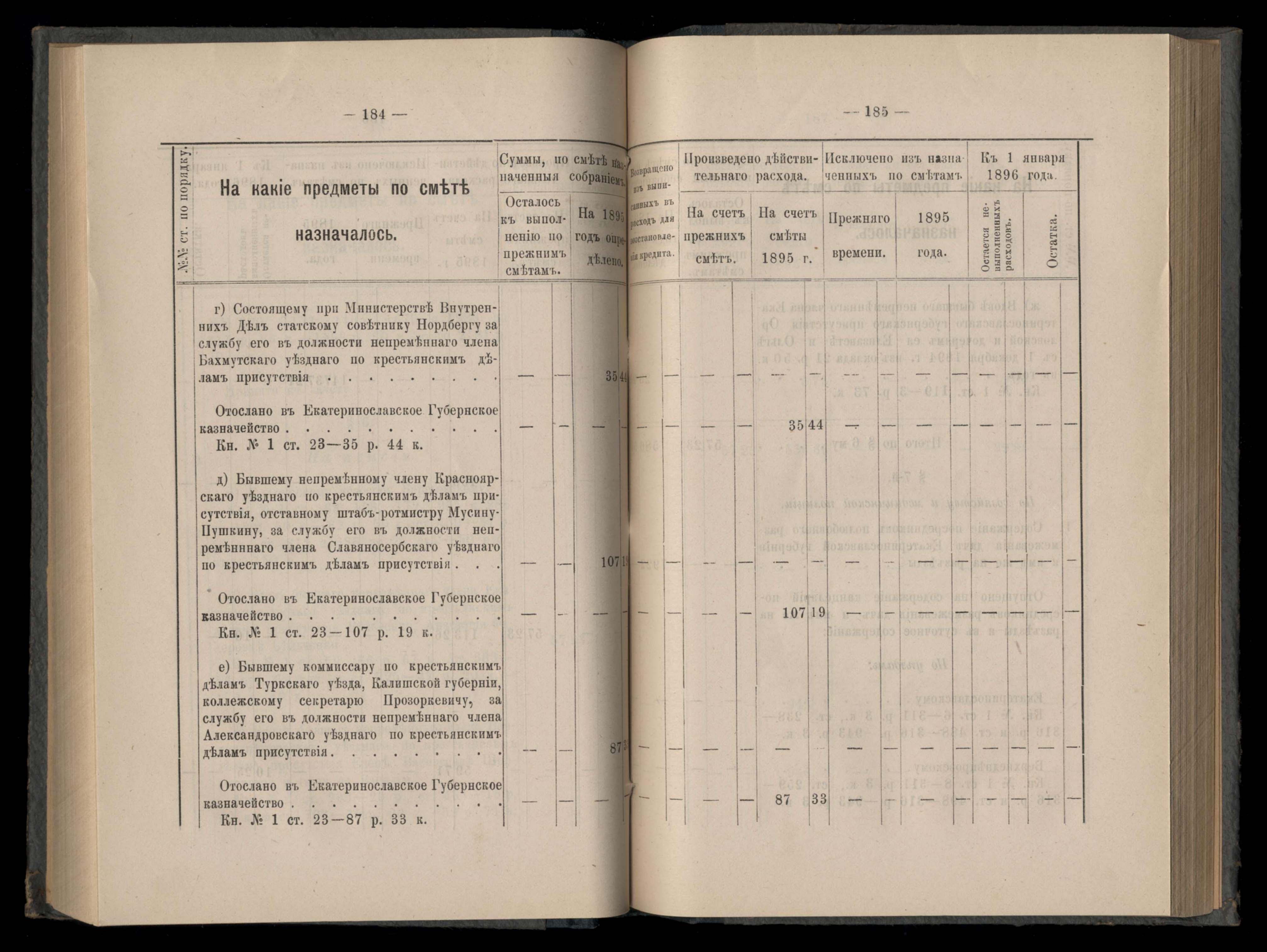 Ведомость Екатеринославской Губернской Земской Управы о Расходахъ суммъ губернскаго земскаго сбора, по постановленіямъ Губернскаго Земскаго Собранія, по журналамъ управы и другимъ случаямъ за 1895 годъ