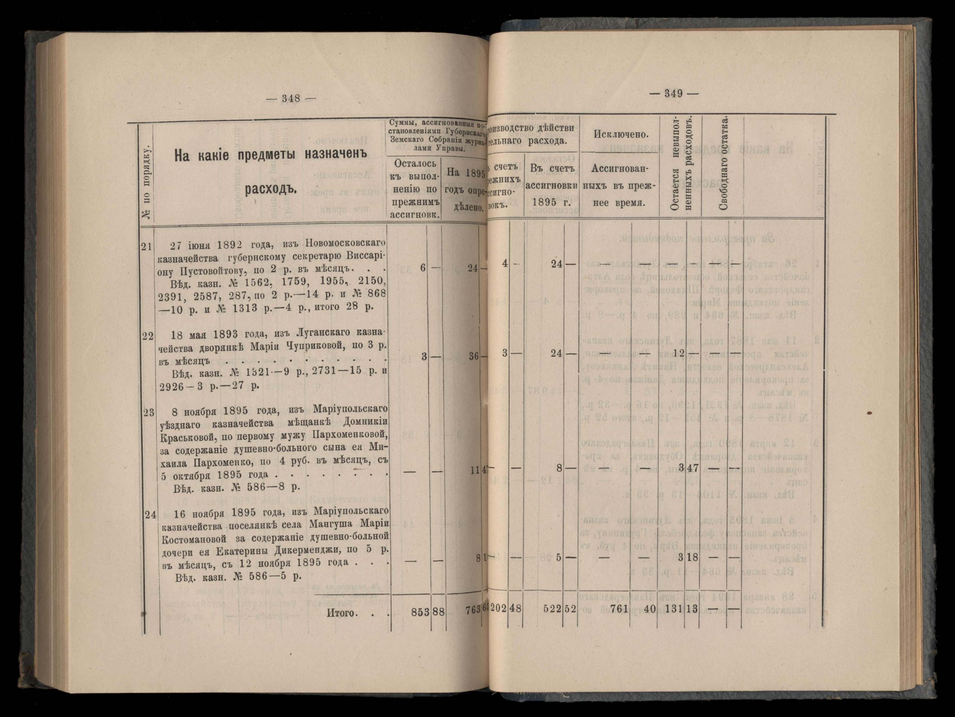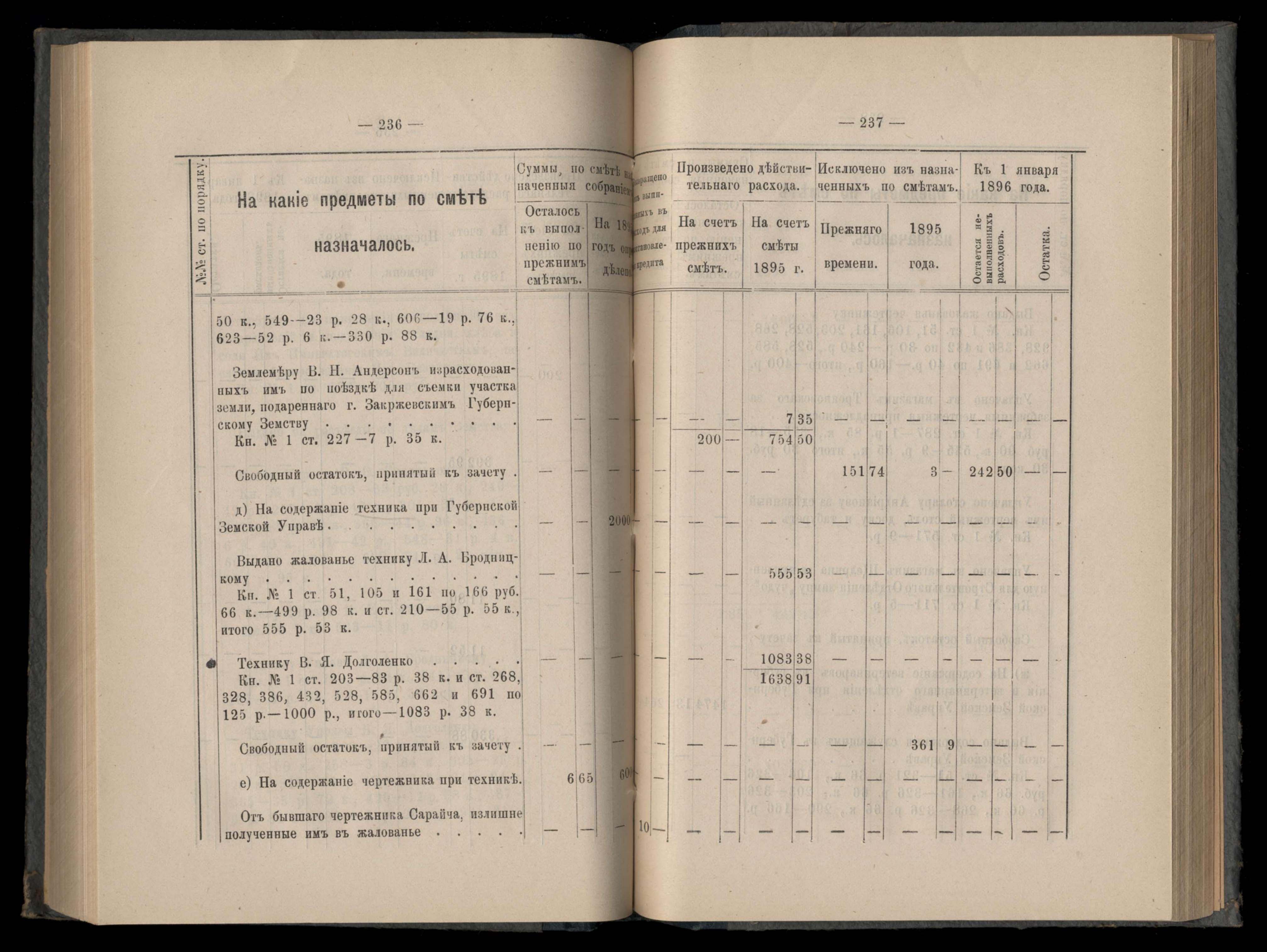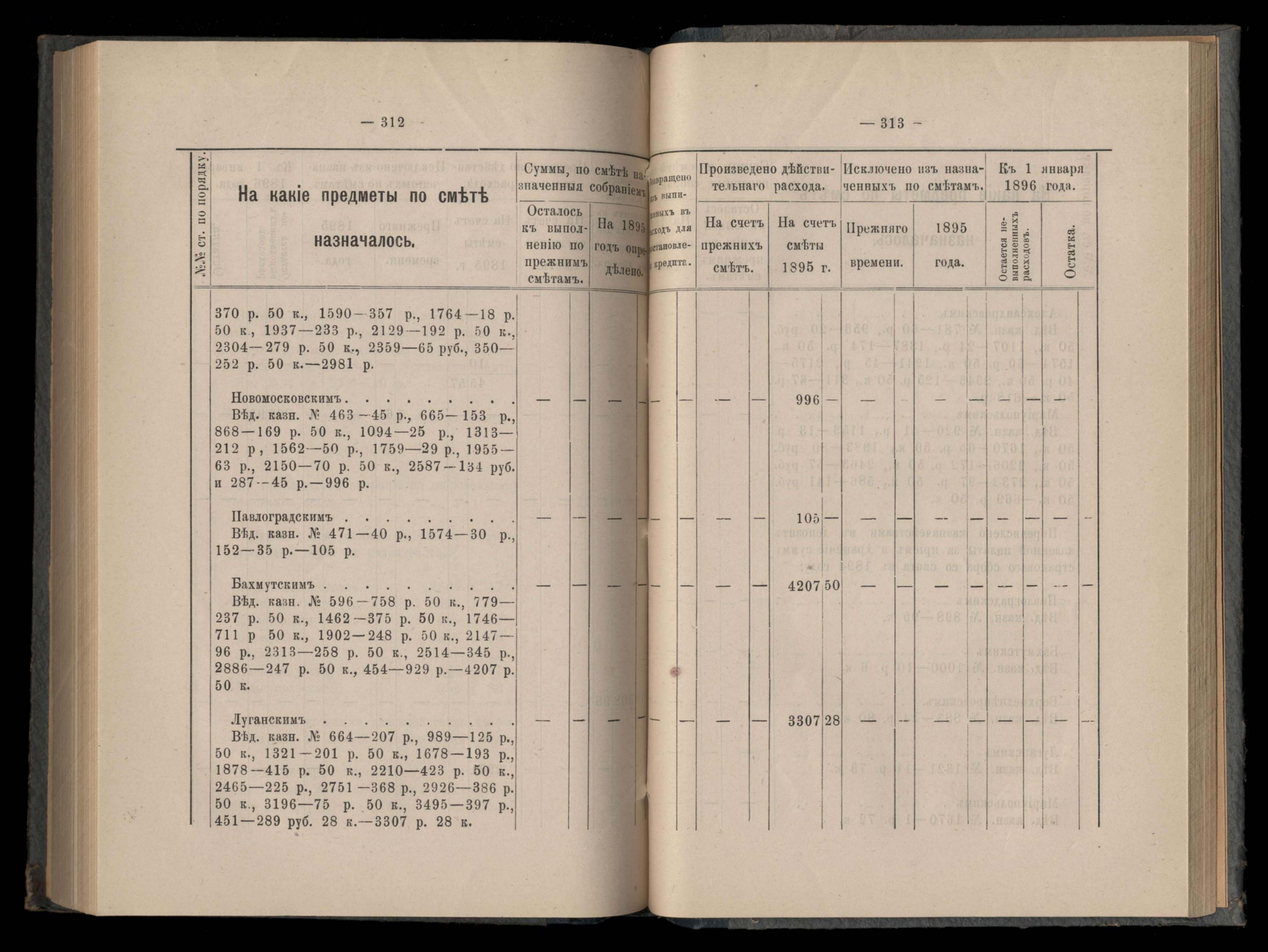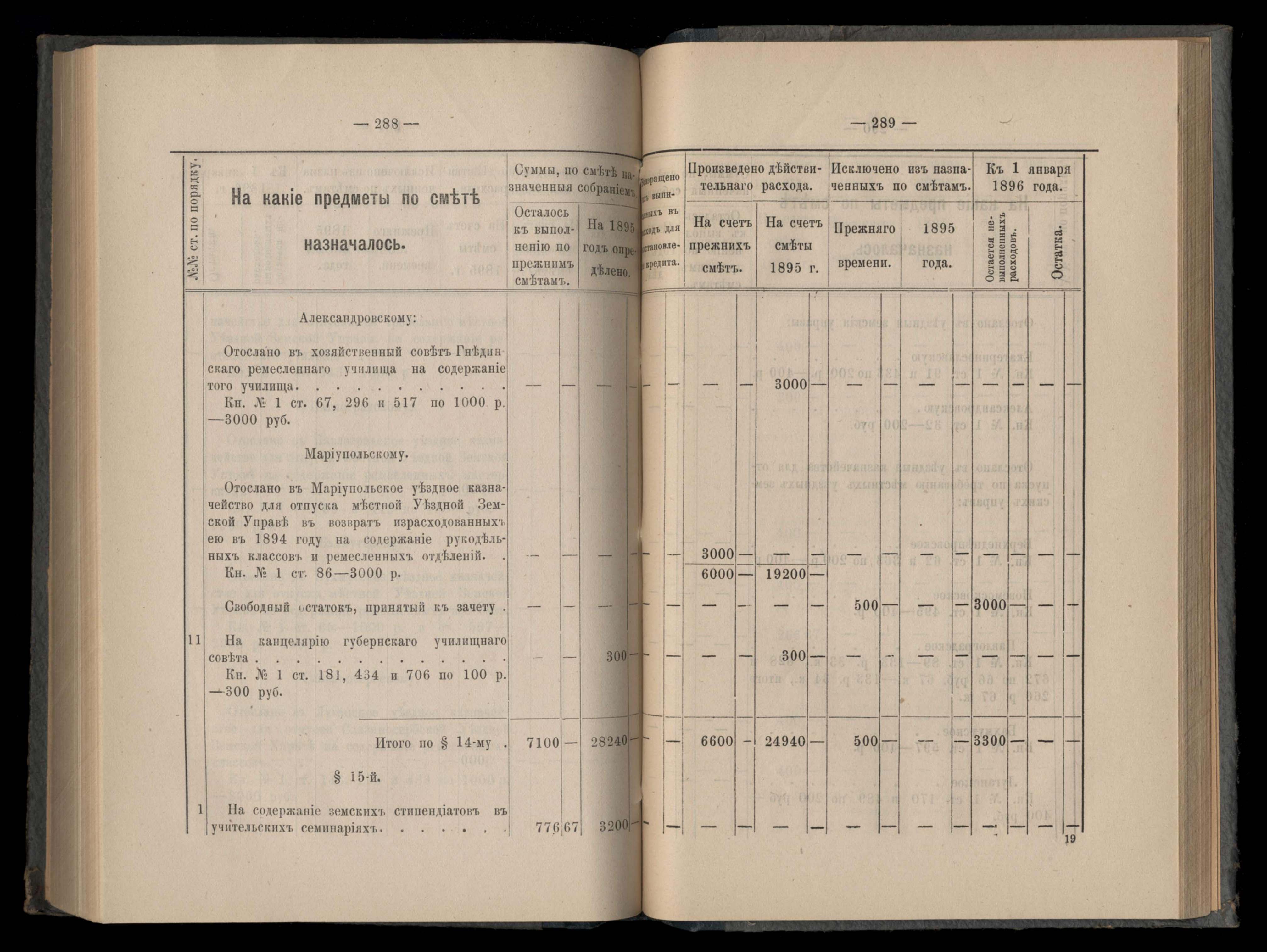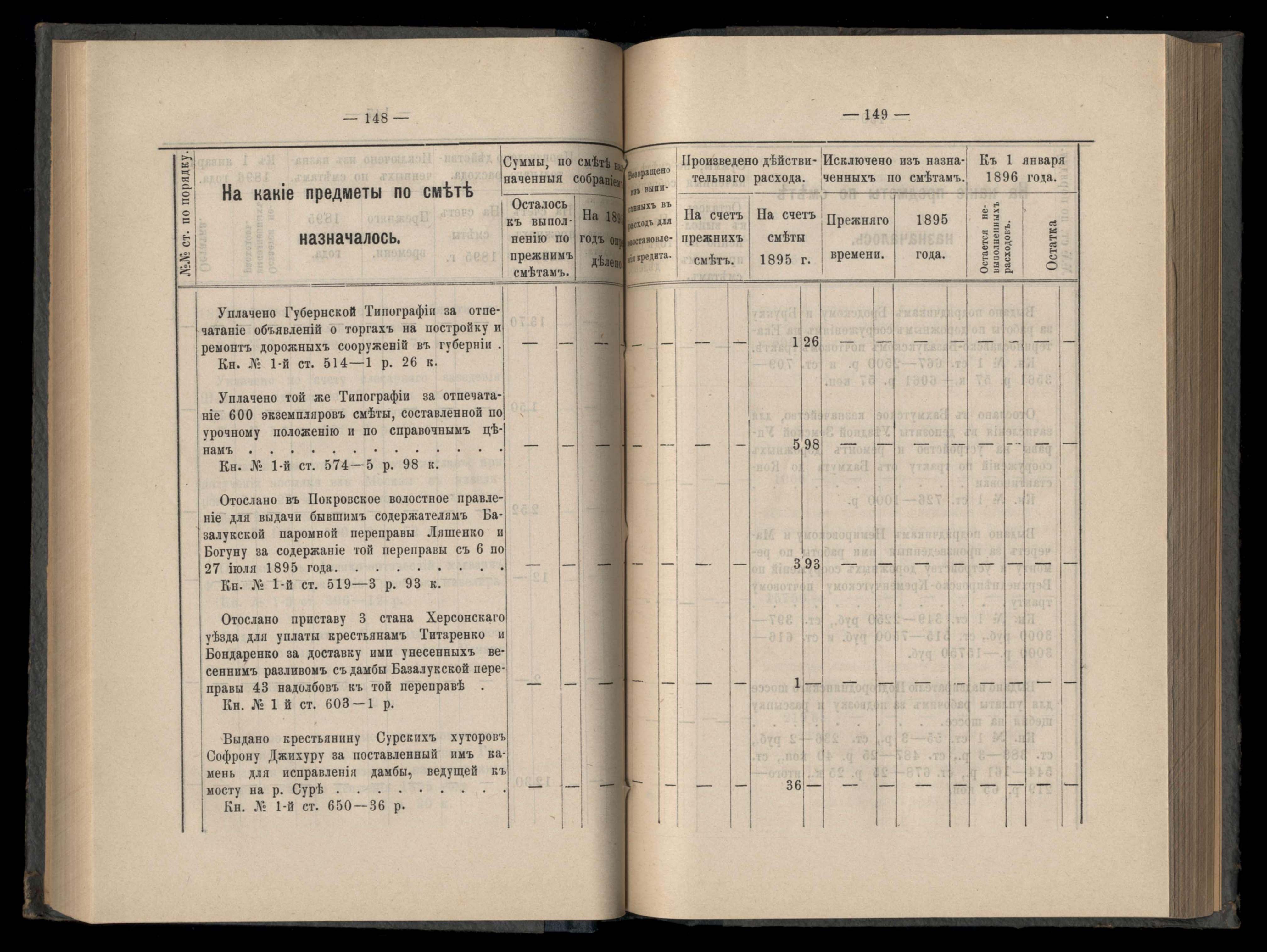 Ведомость Екатеринославской Губернской Земской Управы о Расходахъ суммъ губернскаго земскаго сбора, по постановленіямъ Губернскаго Земскаго Собранія, по журналамъ управы и другимъ случаямъ за 1895 годъ