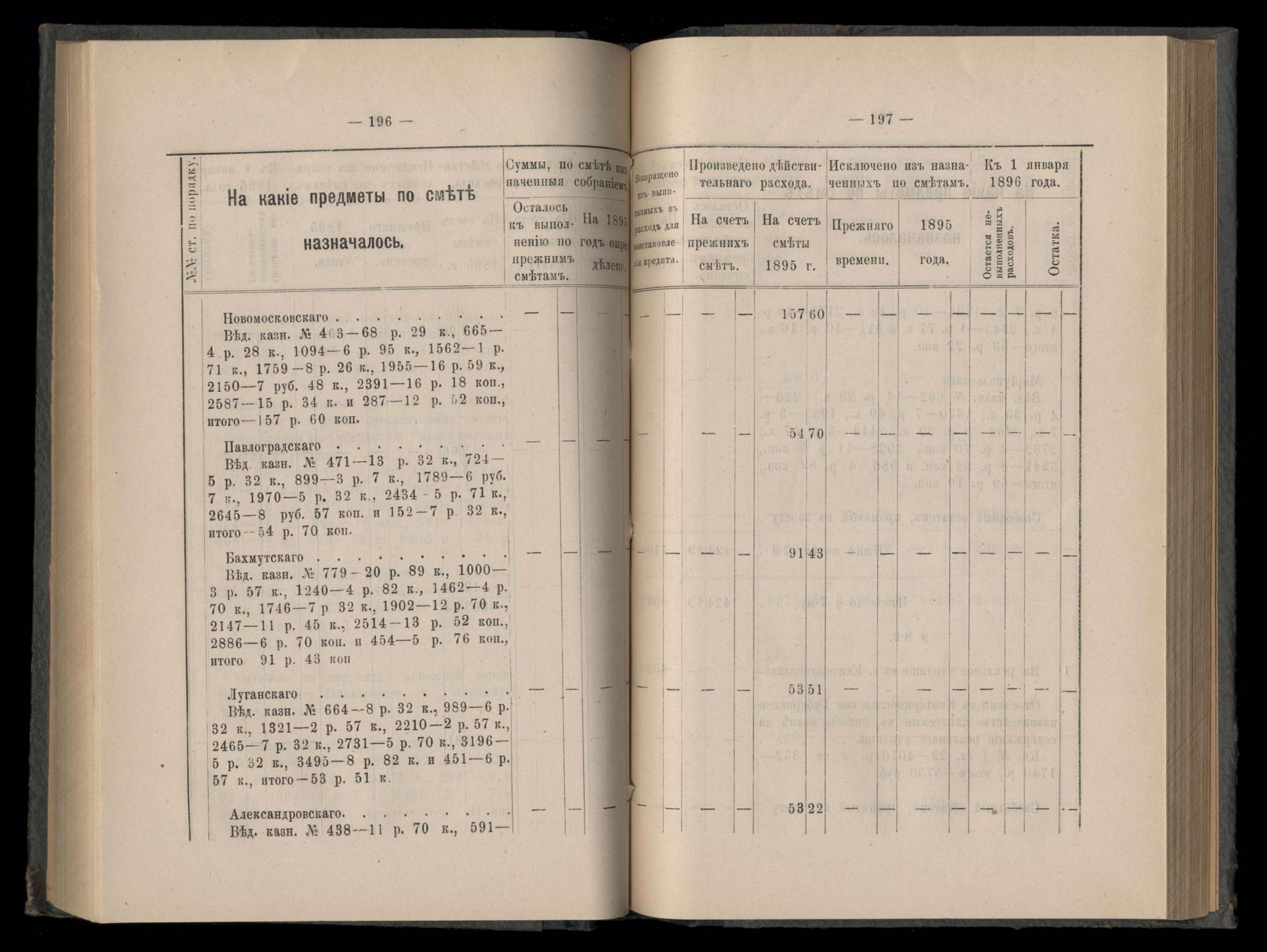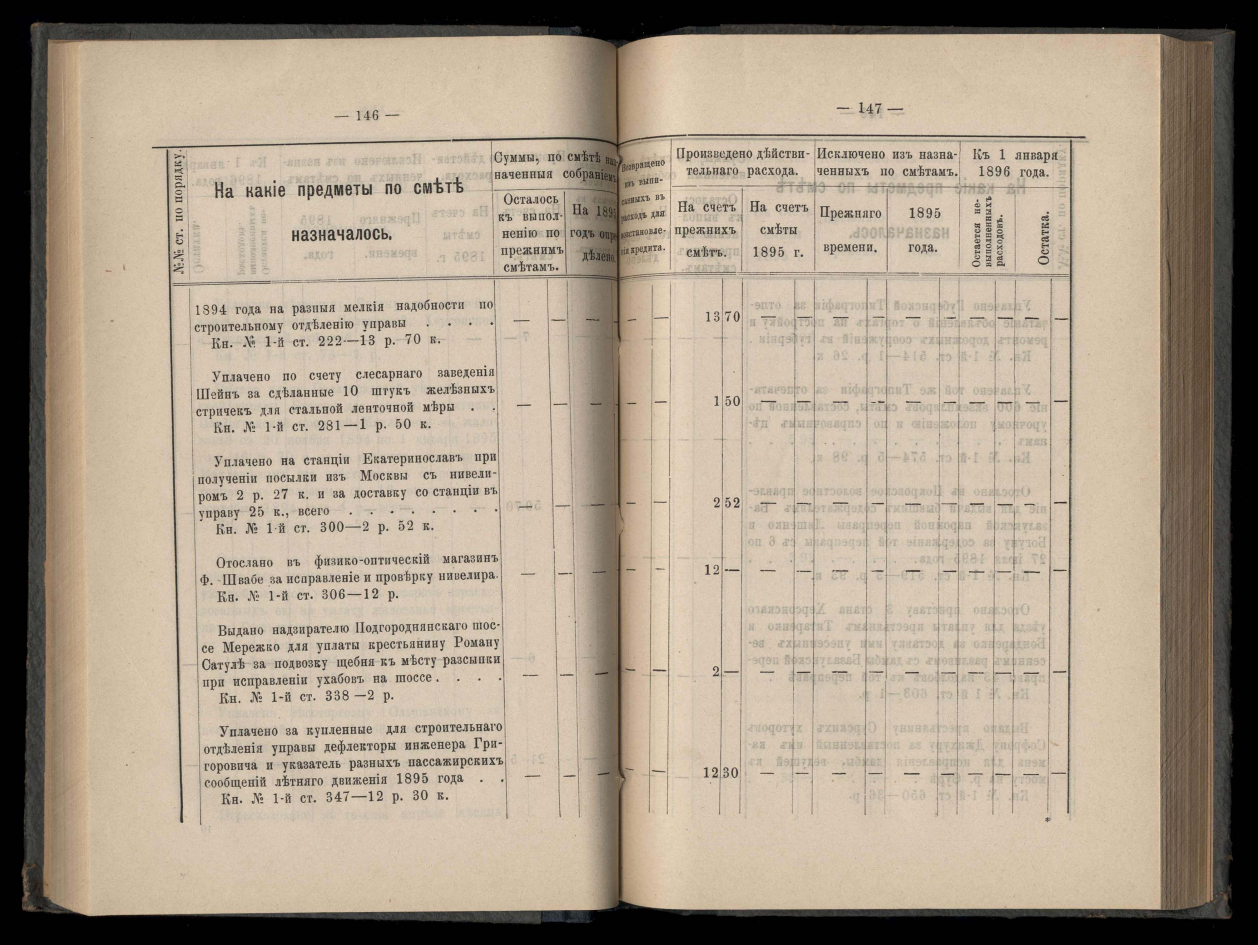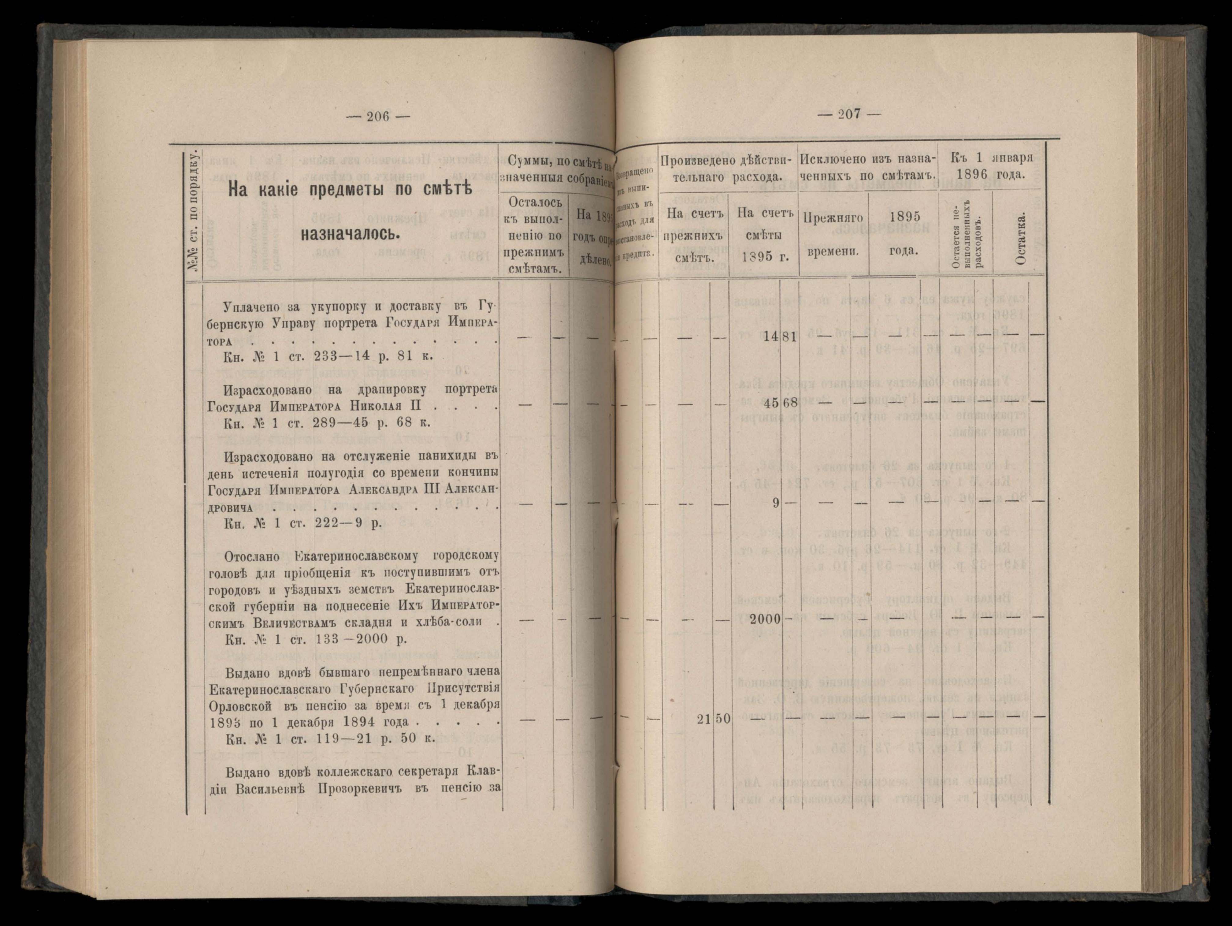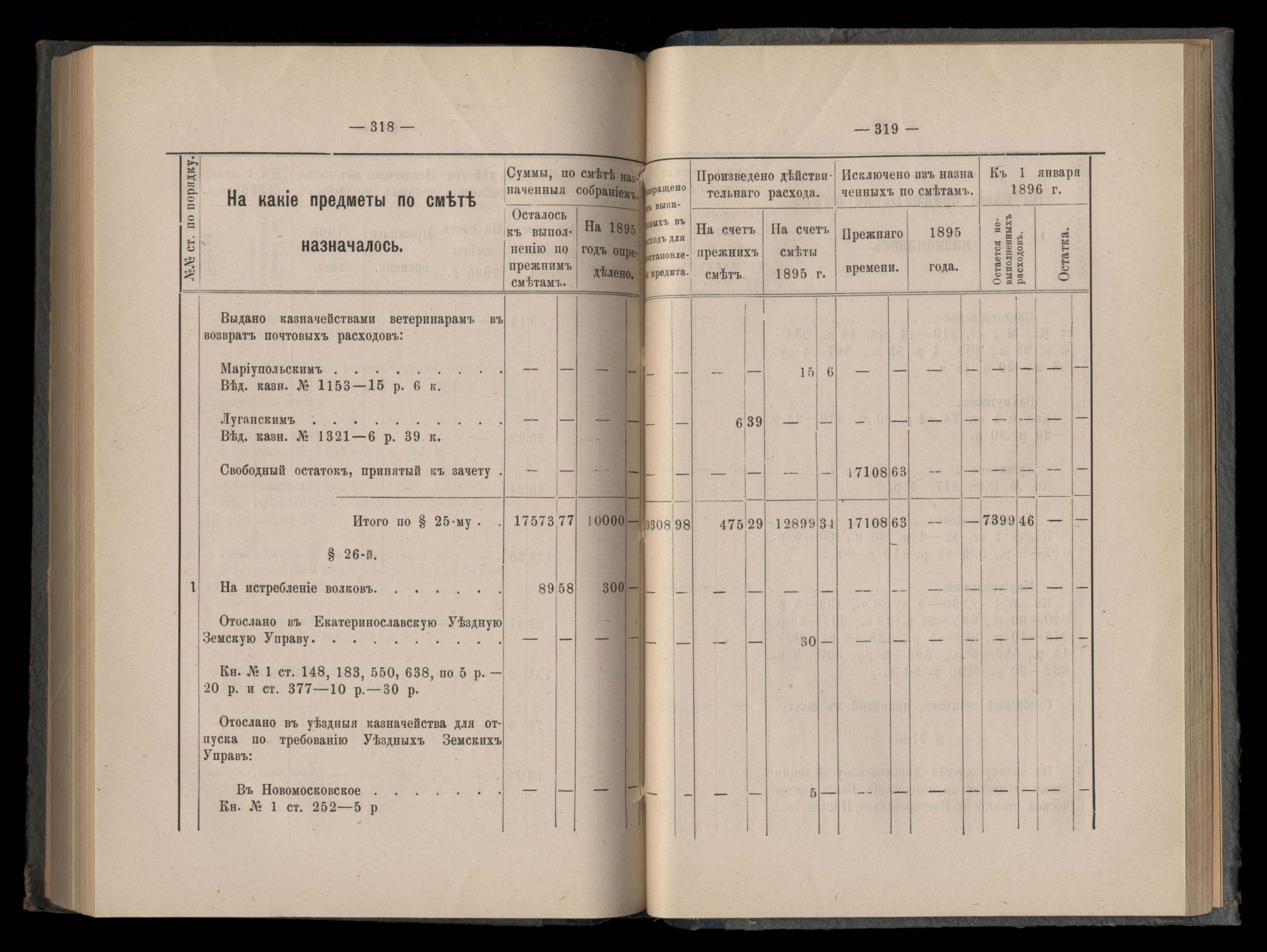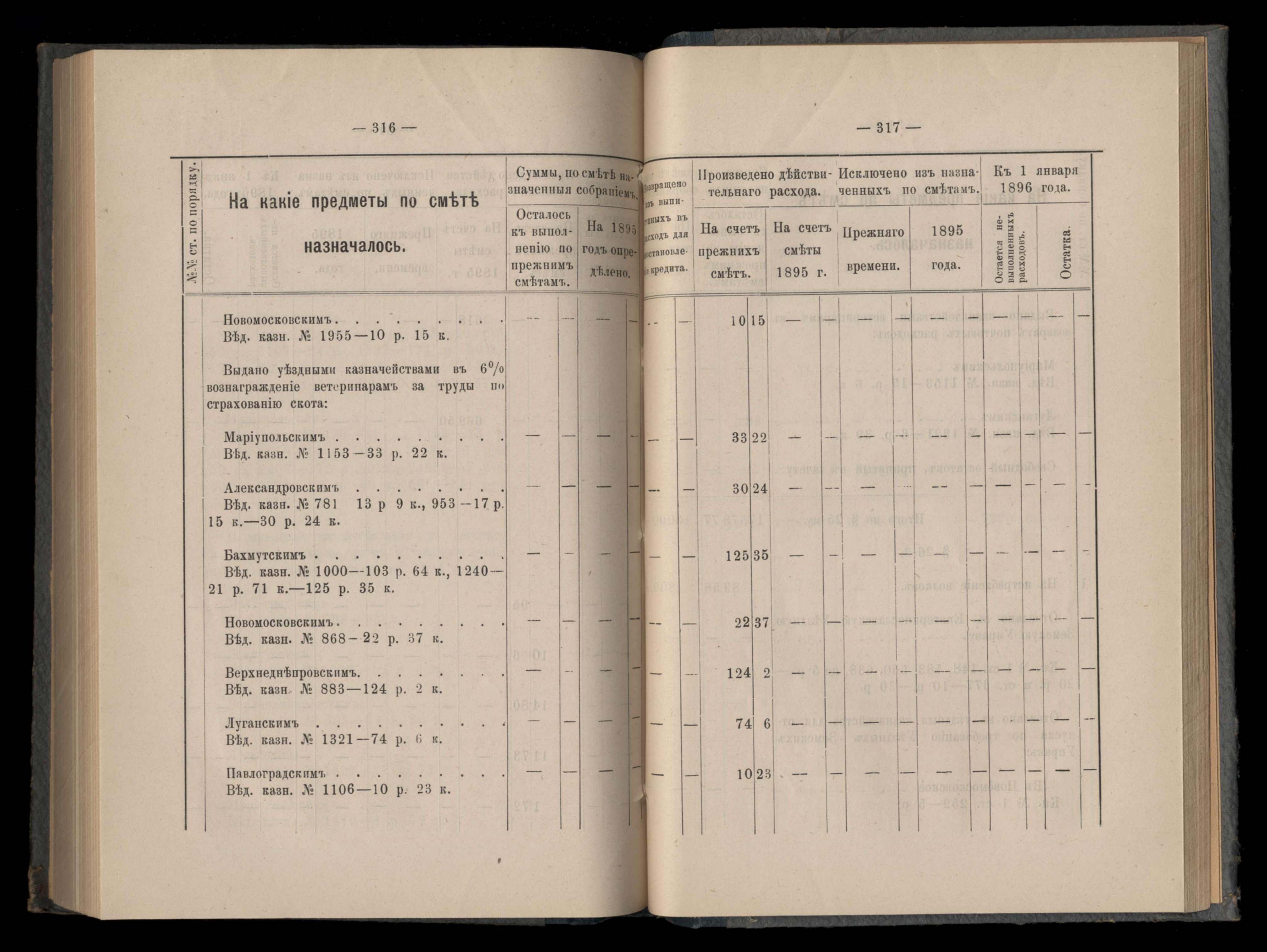 Ведомость Екатеринославской Губернской Земской Управы о Расходахъ суммъ губернскаго земскаго сбора, по постановленіямъ Губернскаго Земскаго Собранія, по журналамъ управы и другимъ случаямъ за 1895 годъ