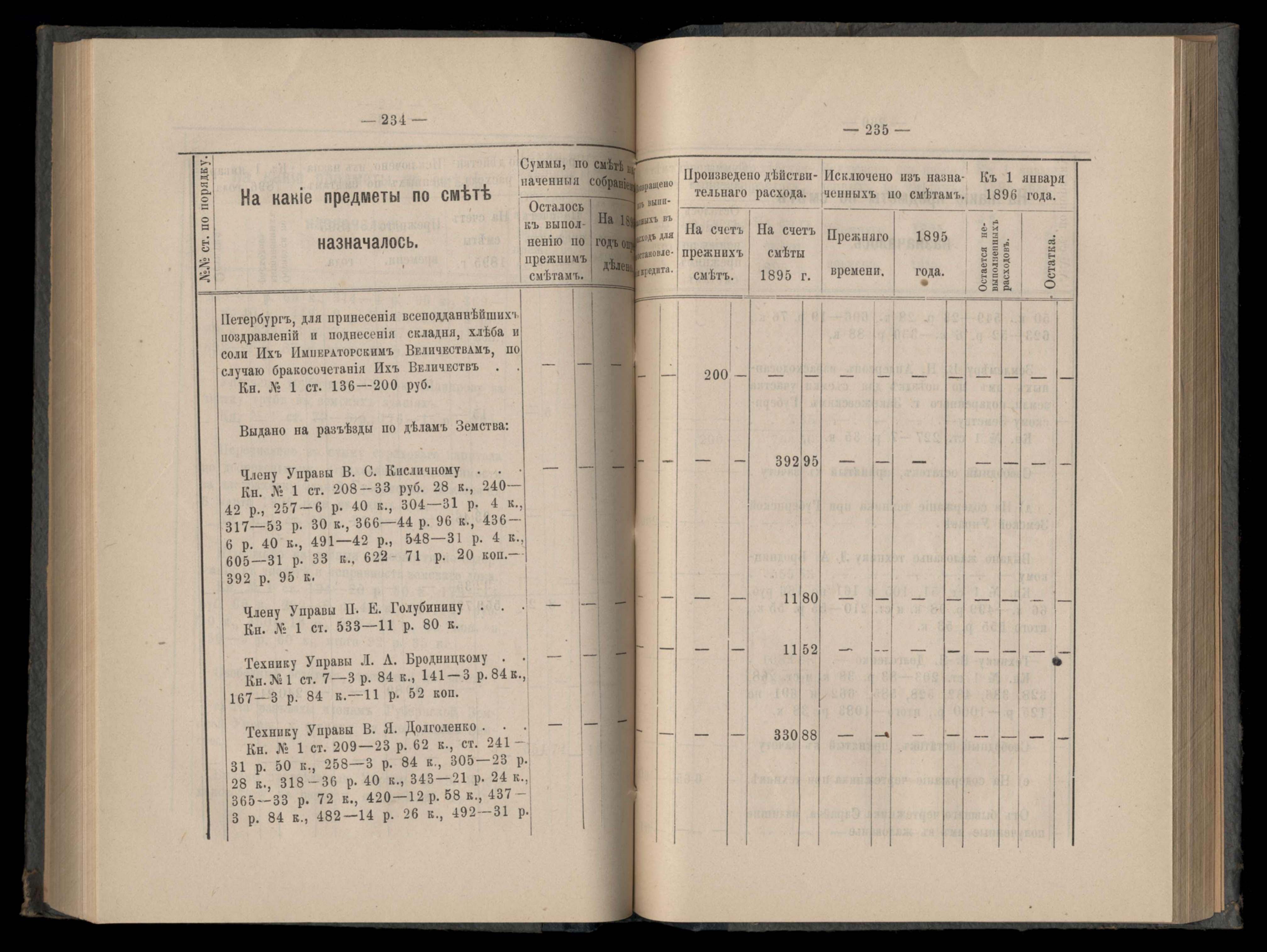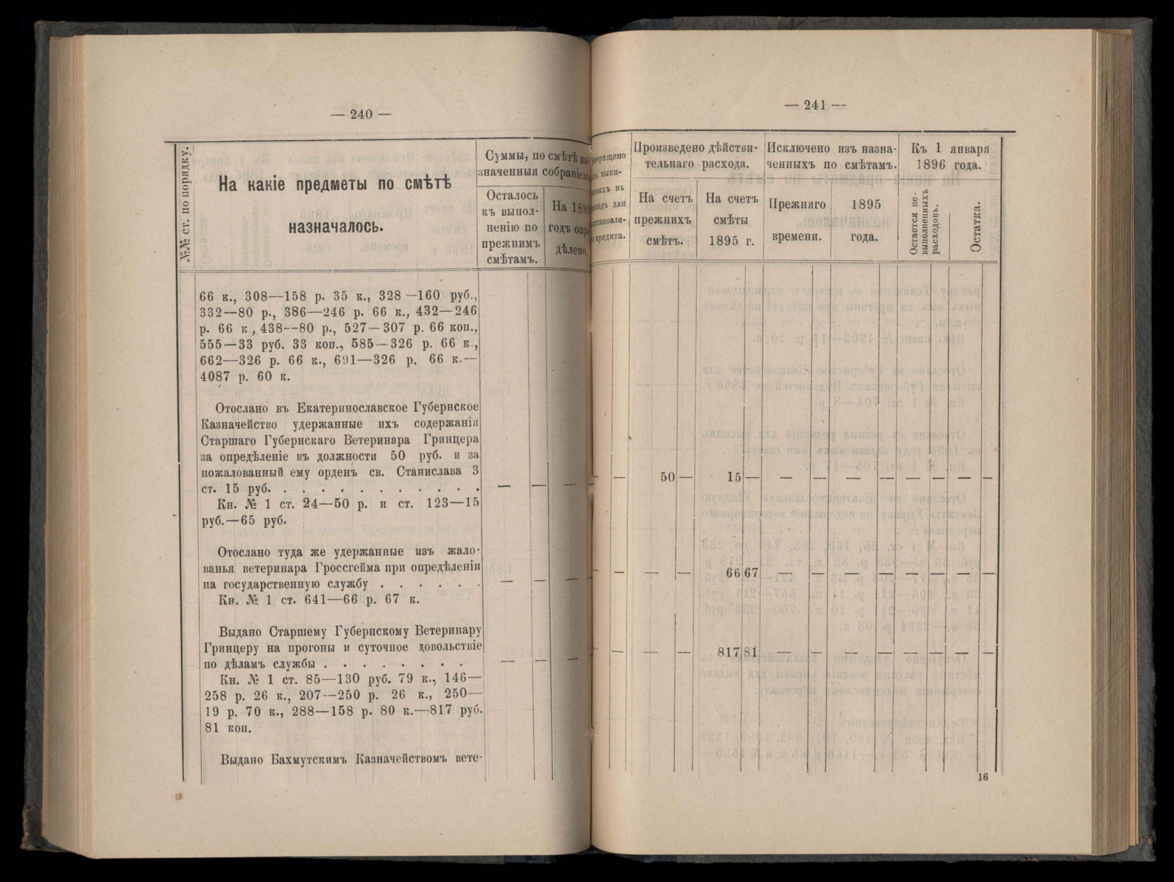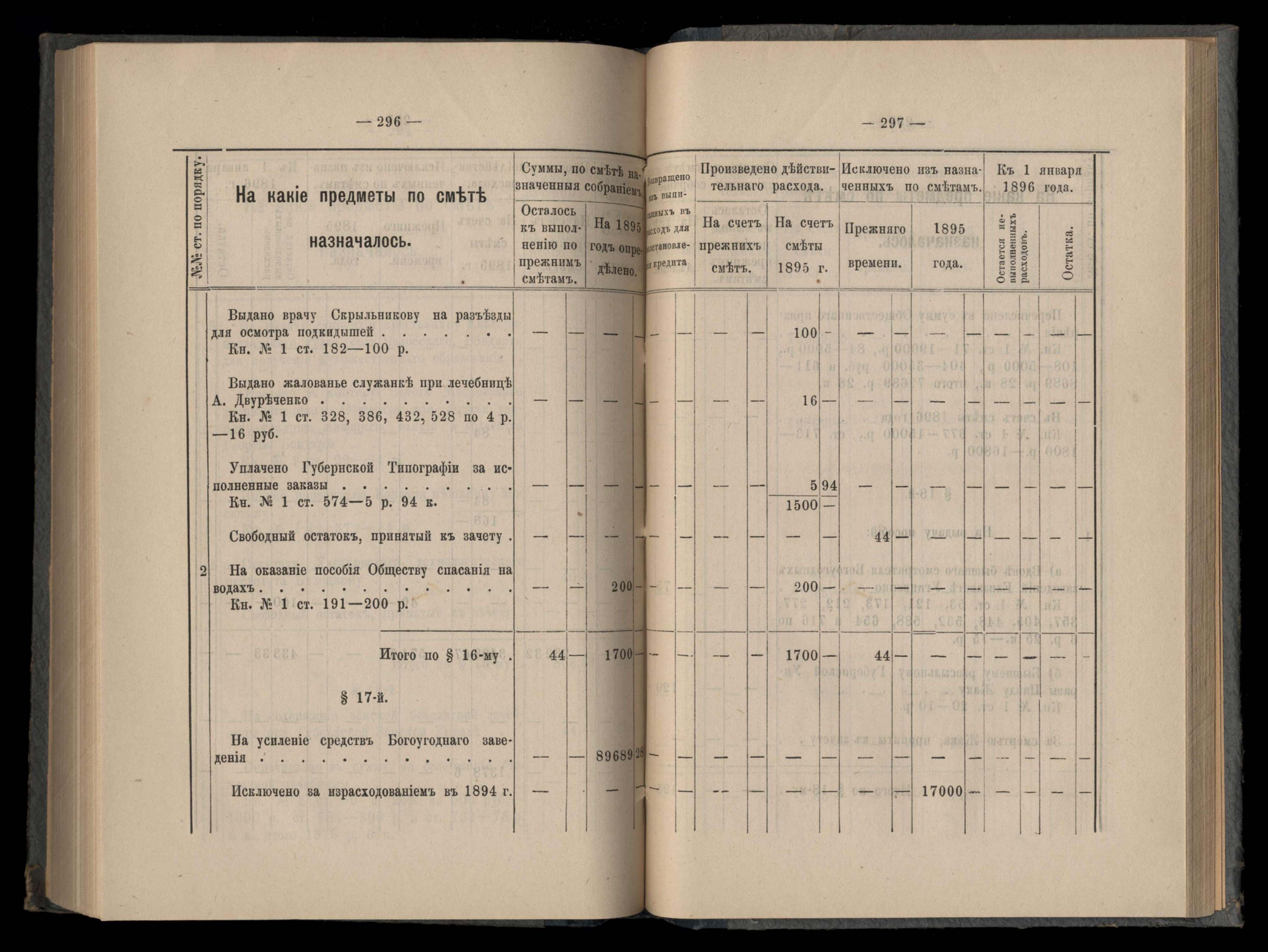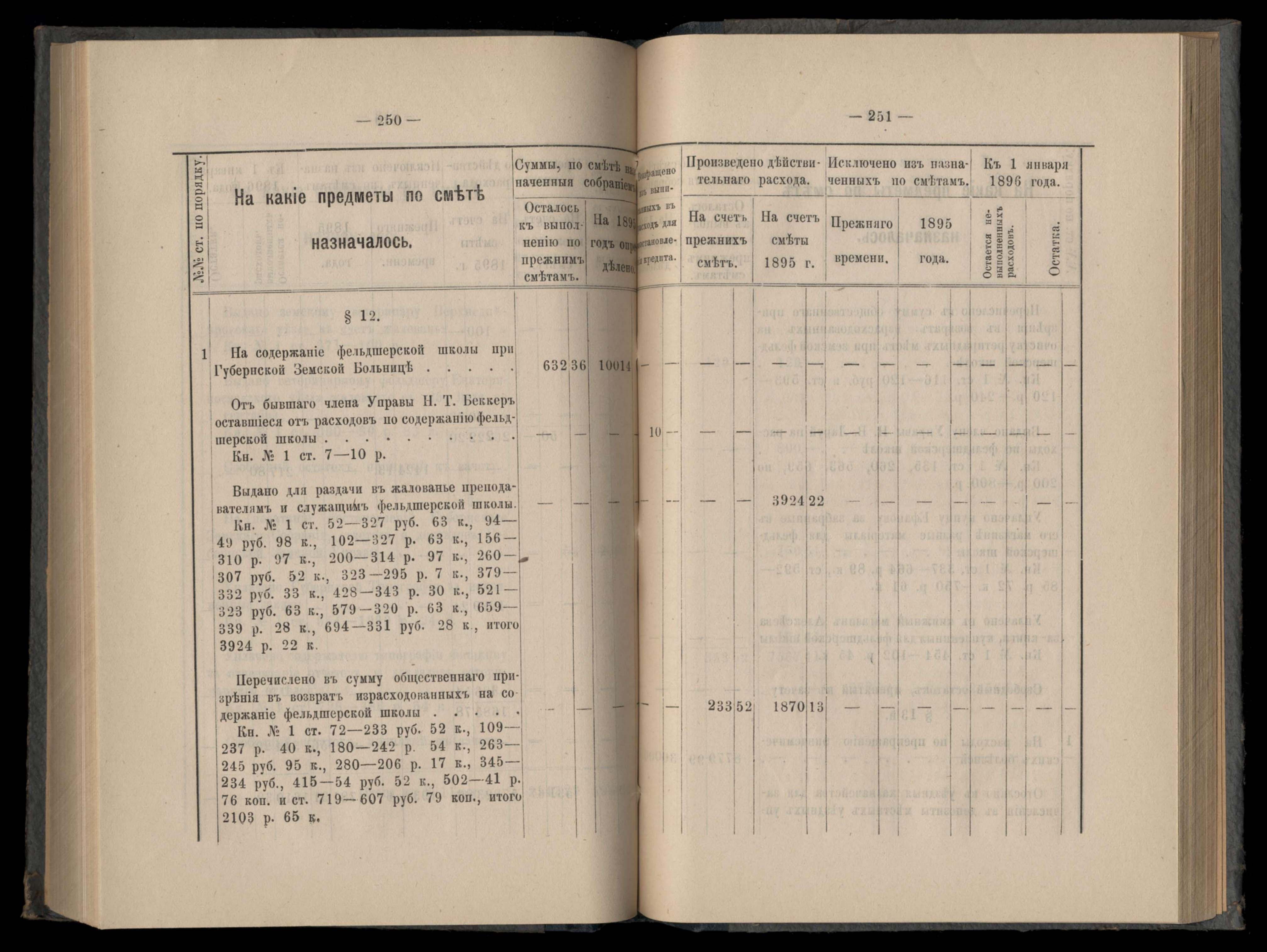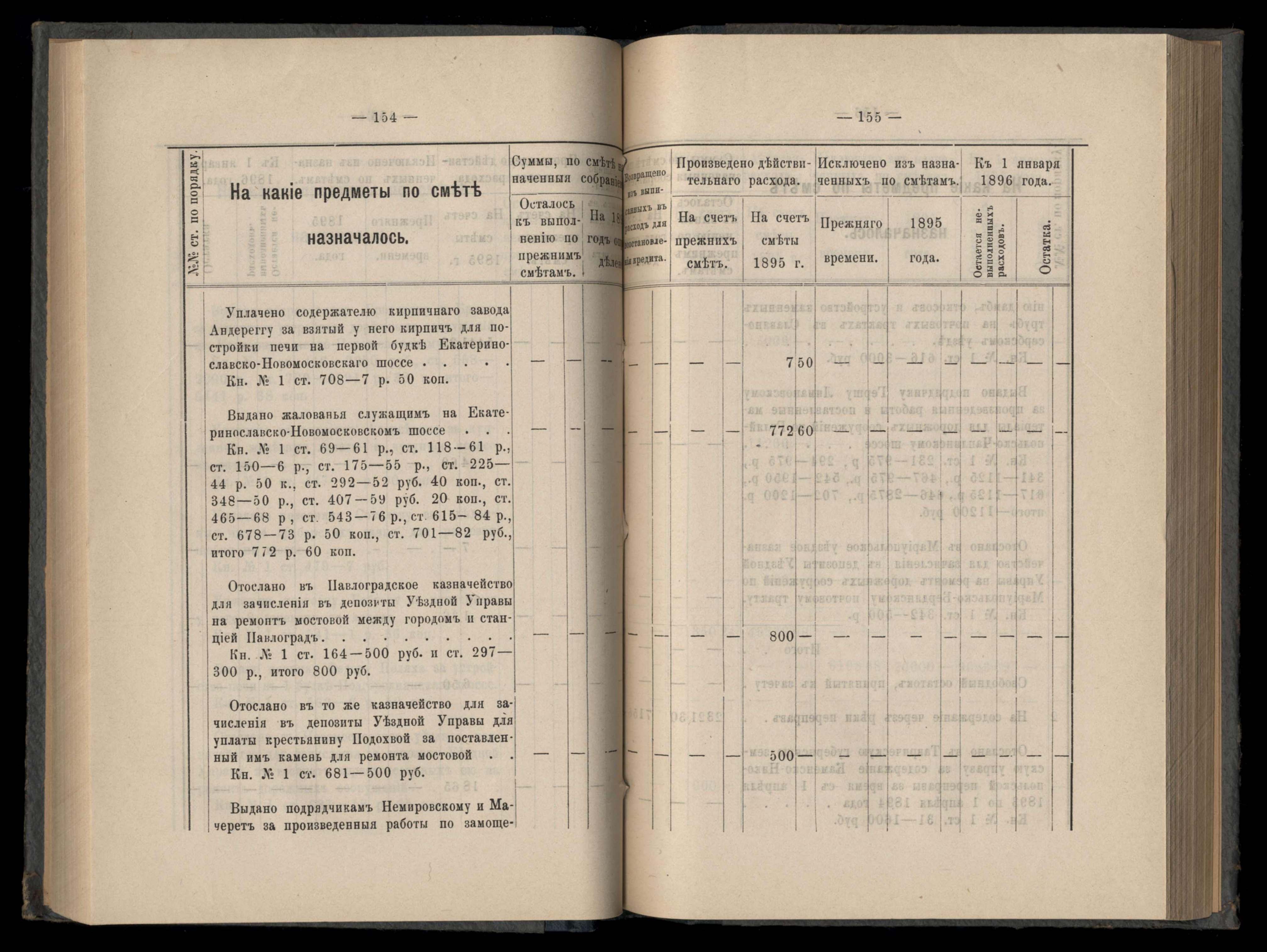 Ведомость Екатеринославской Губернской Земской Управы о Расходахъ суммъ губернскаго земскаго сбора, по постановленіямъ Губернскаго Земскаго Собранія, по журналамъ управы и другимъ случаямъ за 1895 годъ
