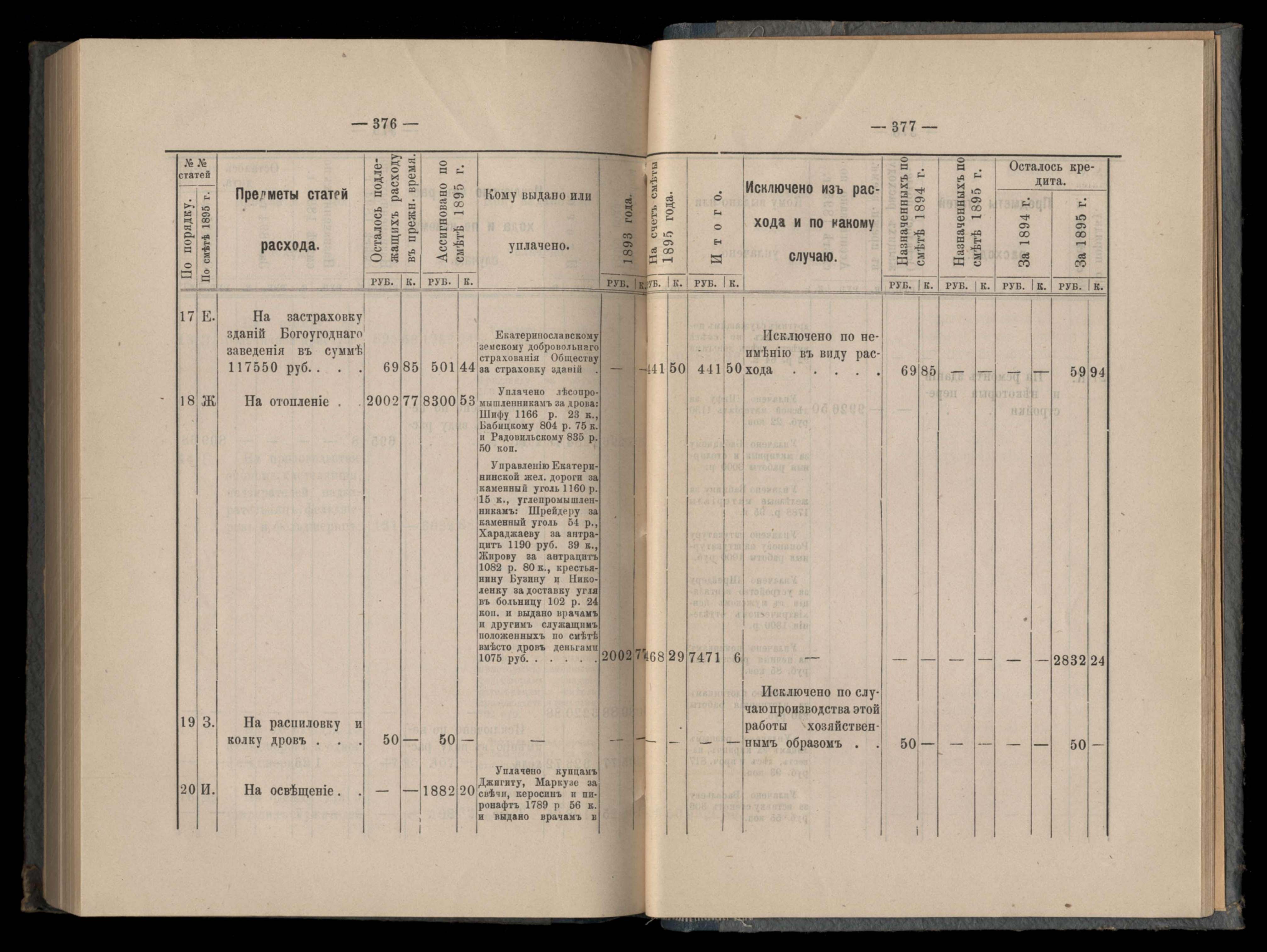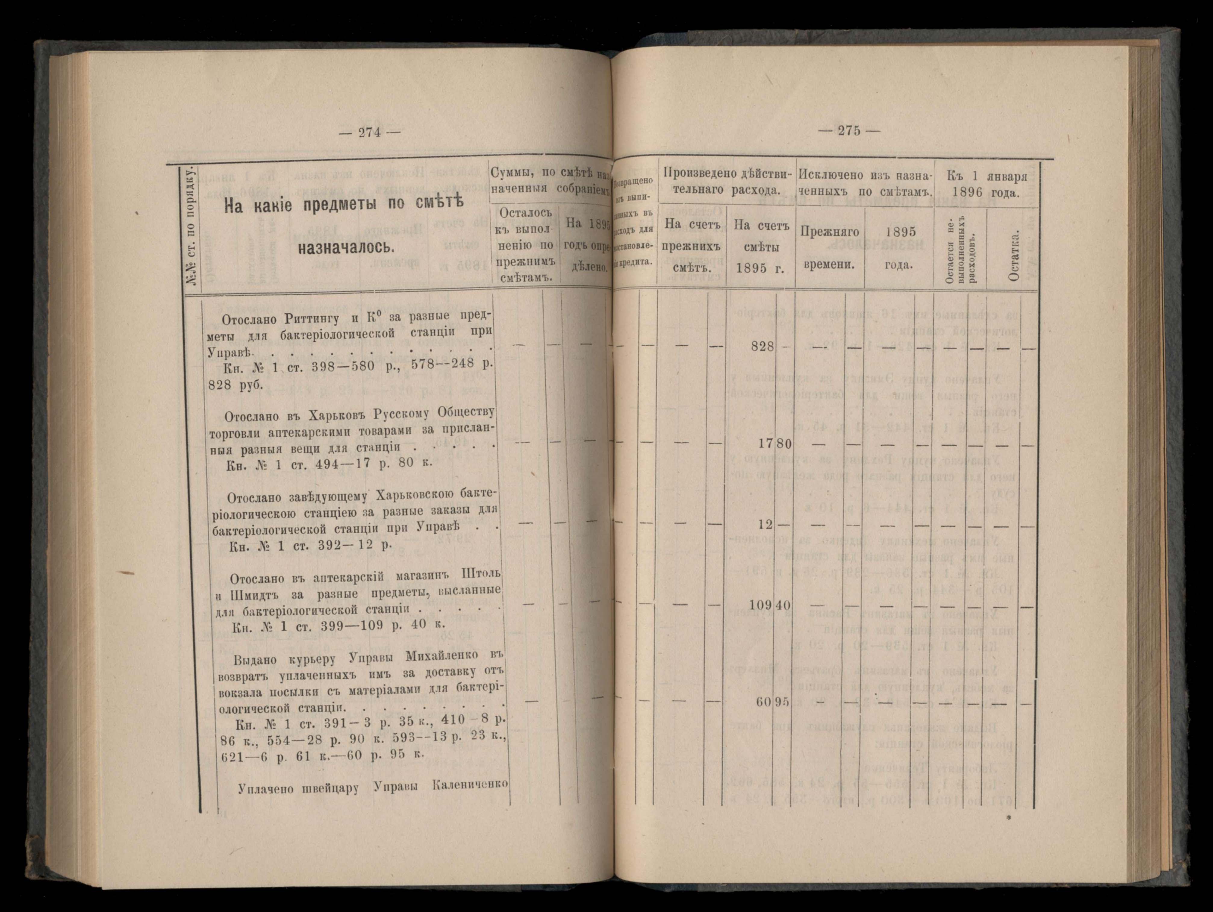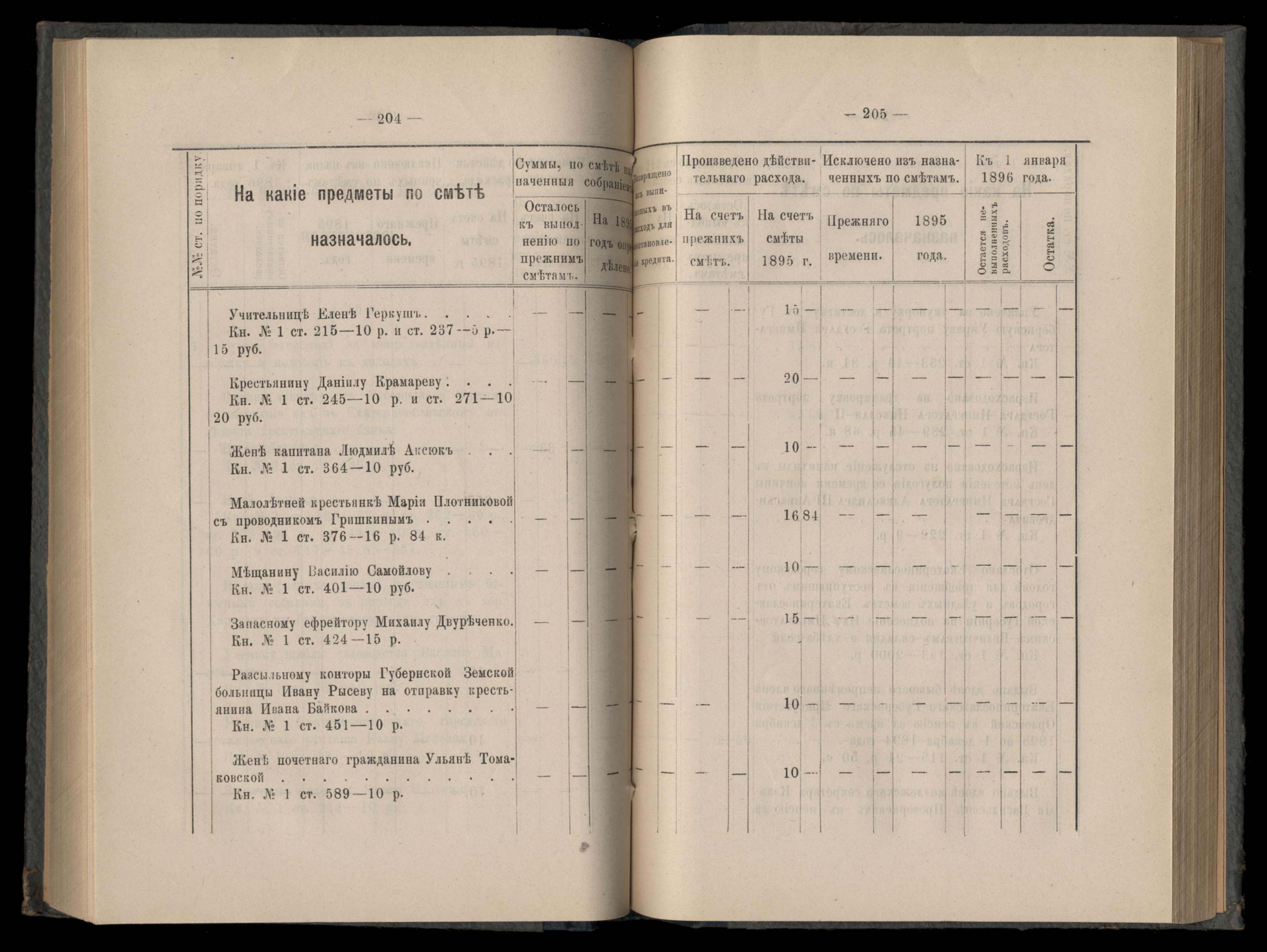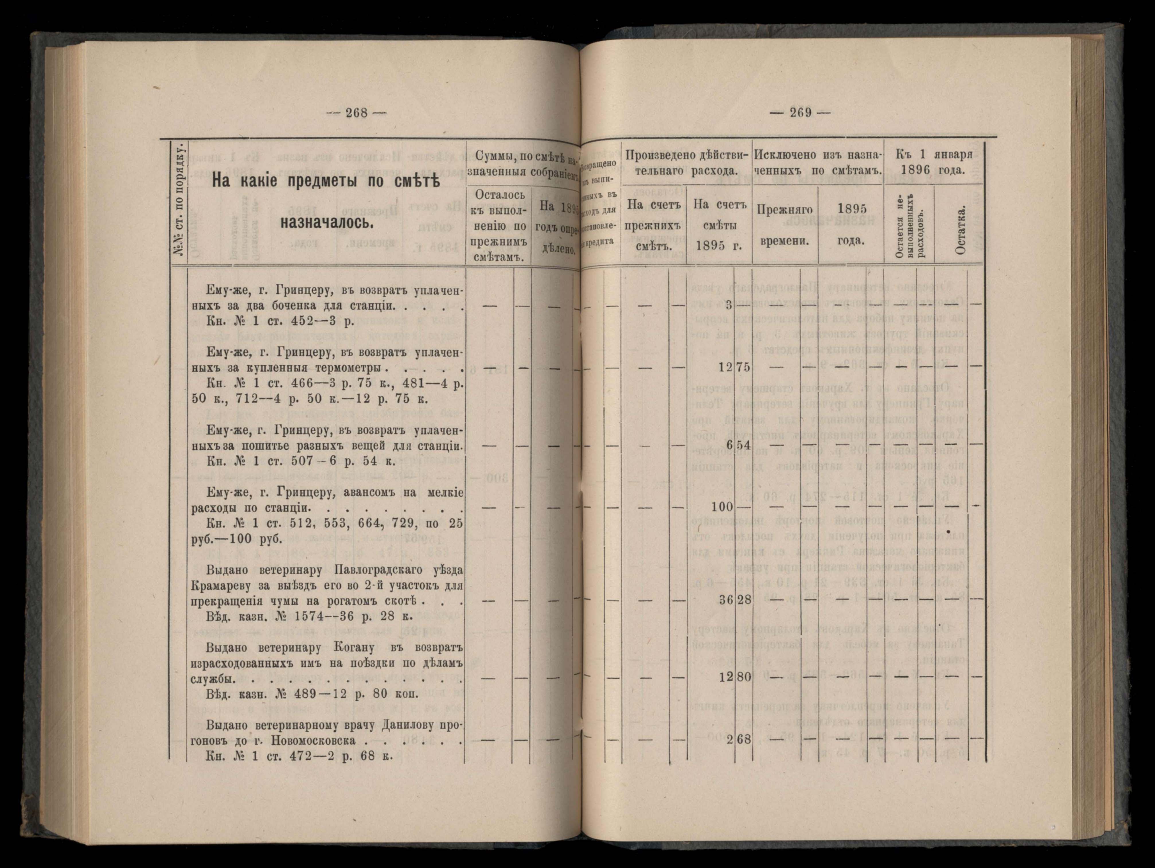 Ведомость Екатеринославской Губернской Земской Управы о Расходахъ суммъ губернскаго земскаго сбора, по постановленіямъ Губернскаго Земскаго Собранія, по журналамъ управы и другимъ случаямъ за 1895 годъ