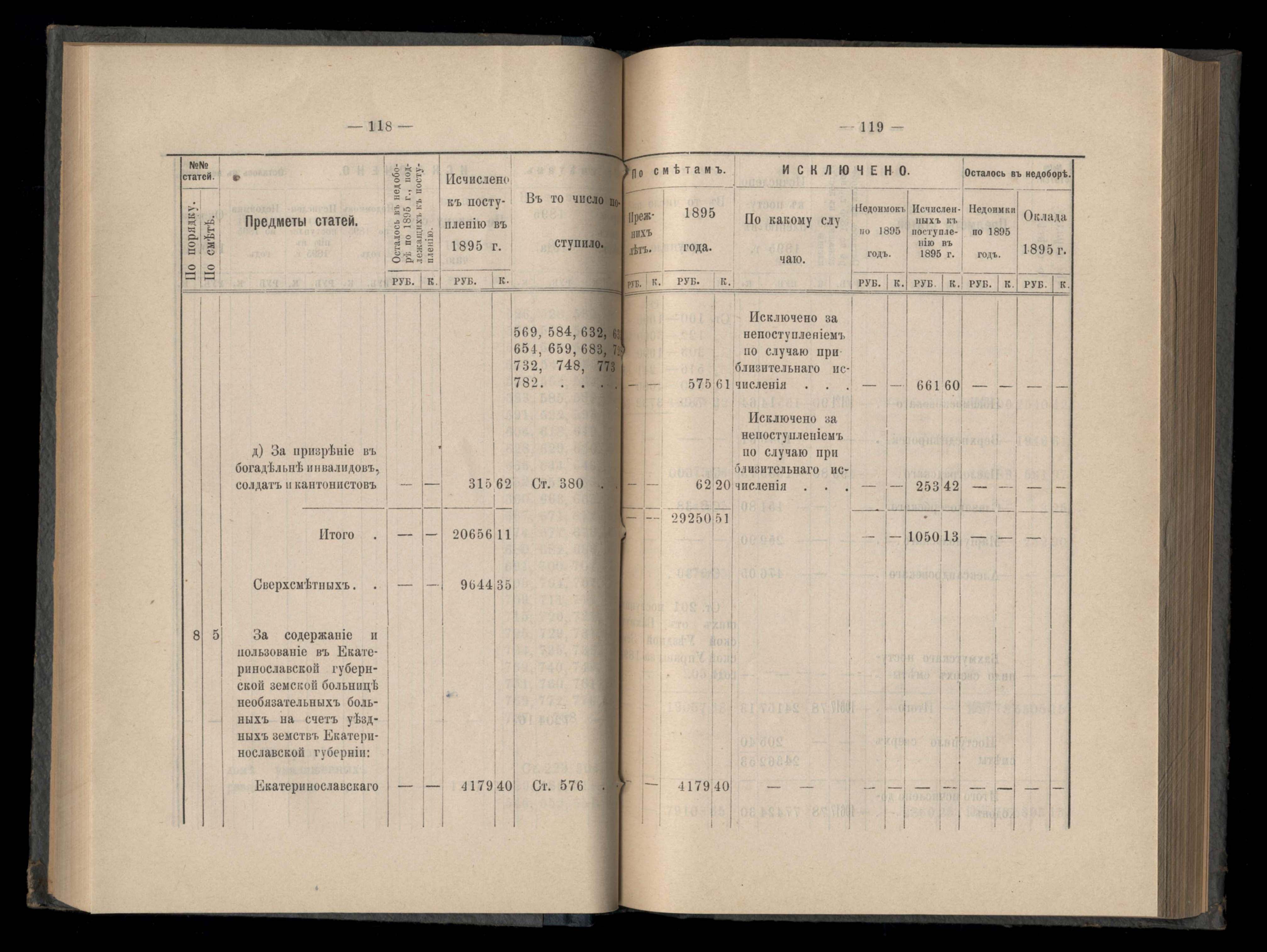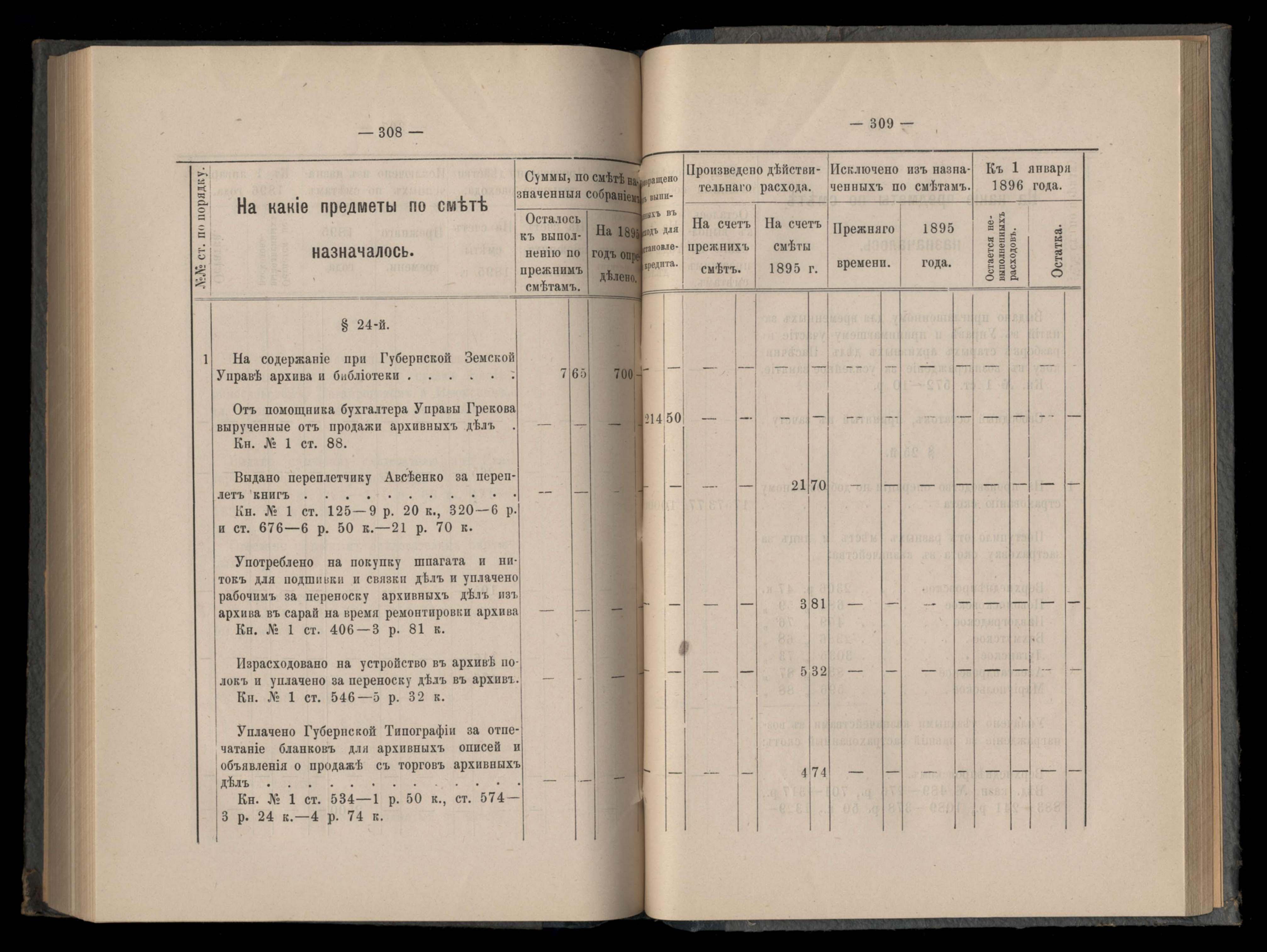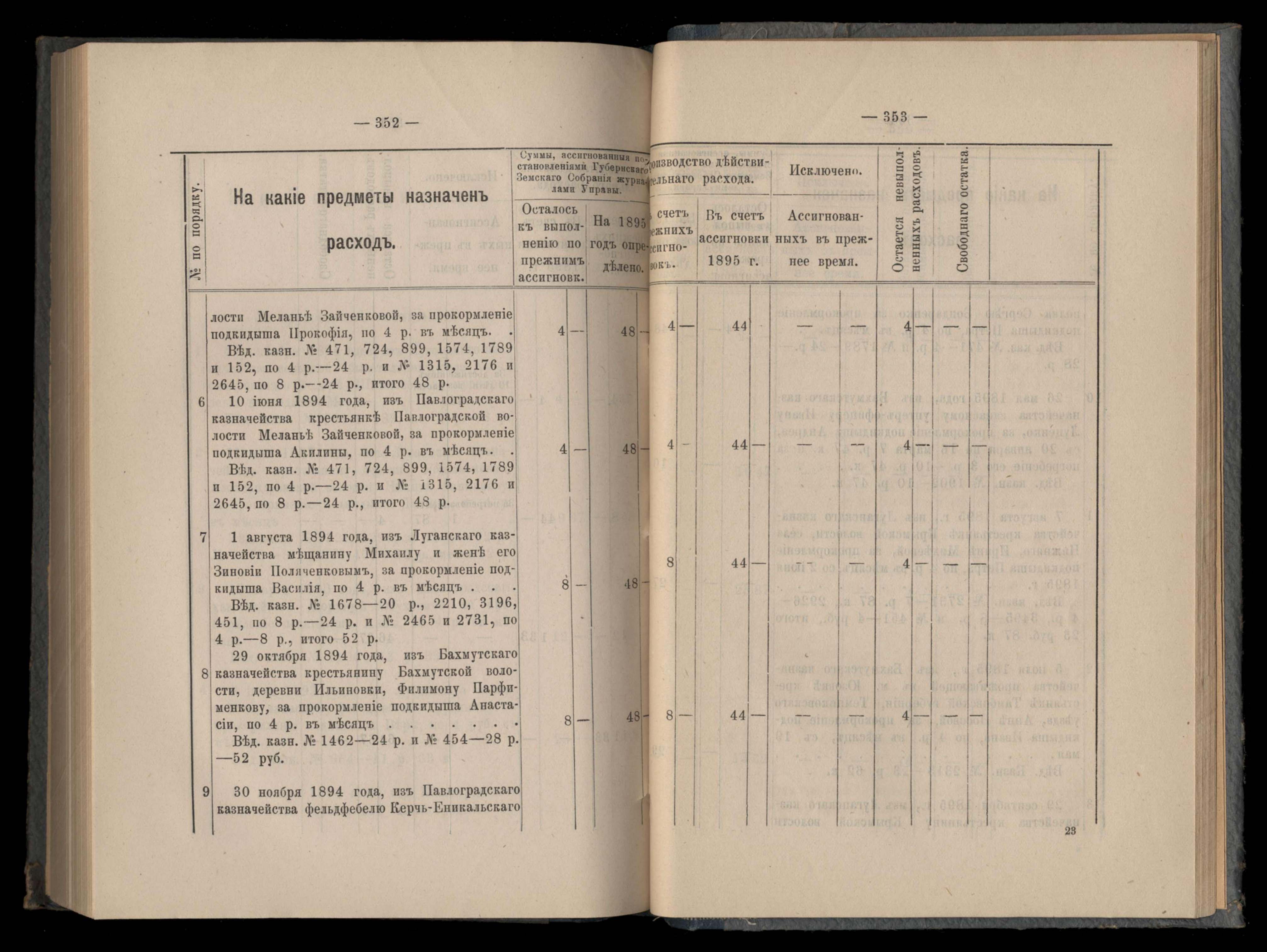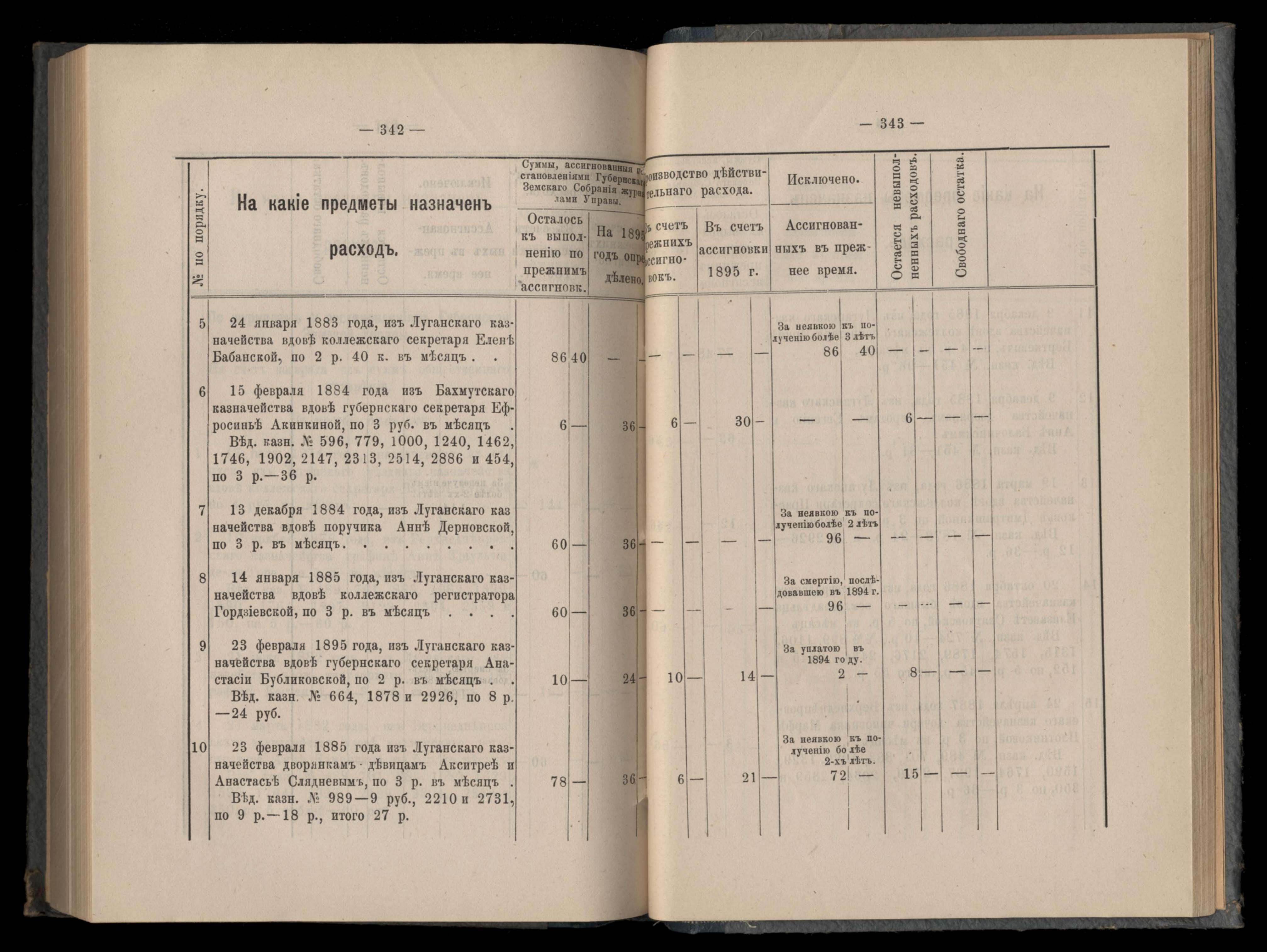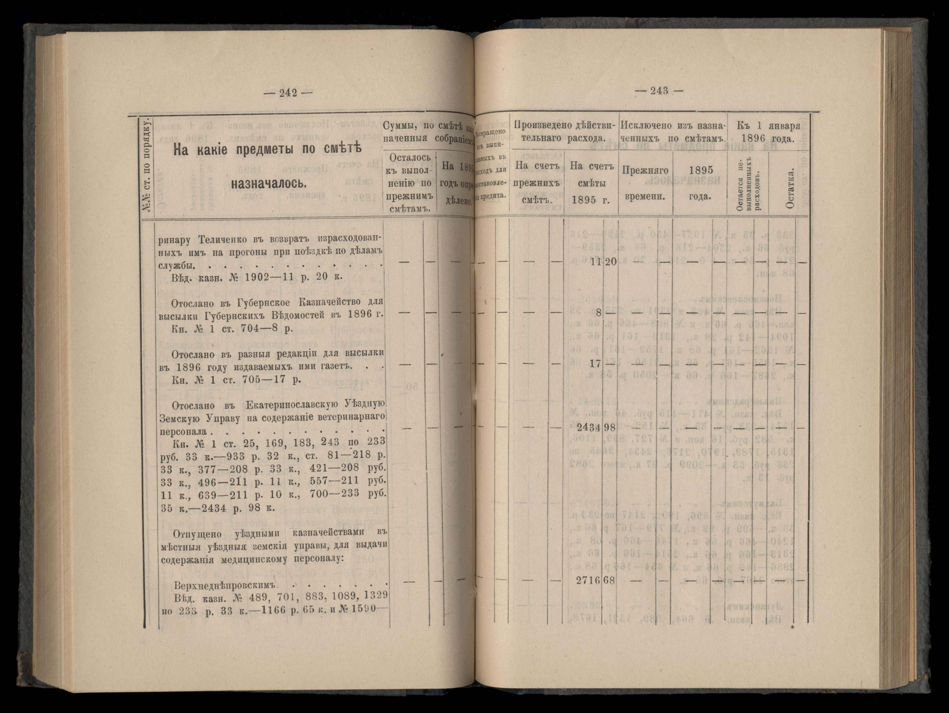 Ведомость Екатеринославской Губернской Земской Управы о Расходахъ суммъ губернскаго земскаго сбора, по постановленіямъ Губернскаго Земскаго Собранія, по журналамъ управы и другимъ случаямъ за 1895 годъ