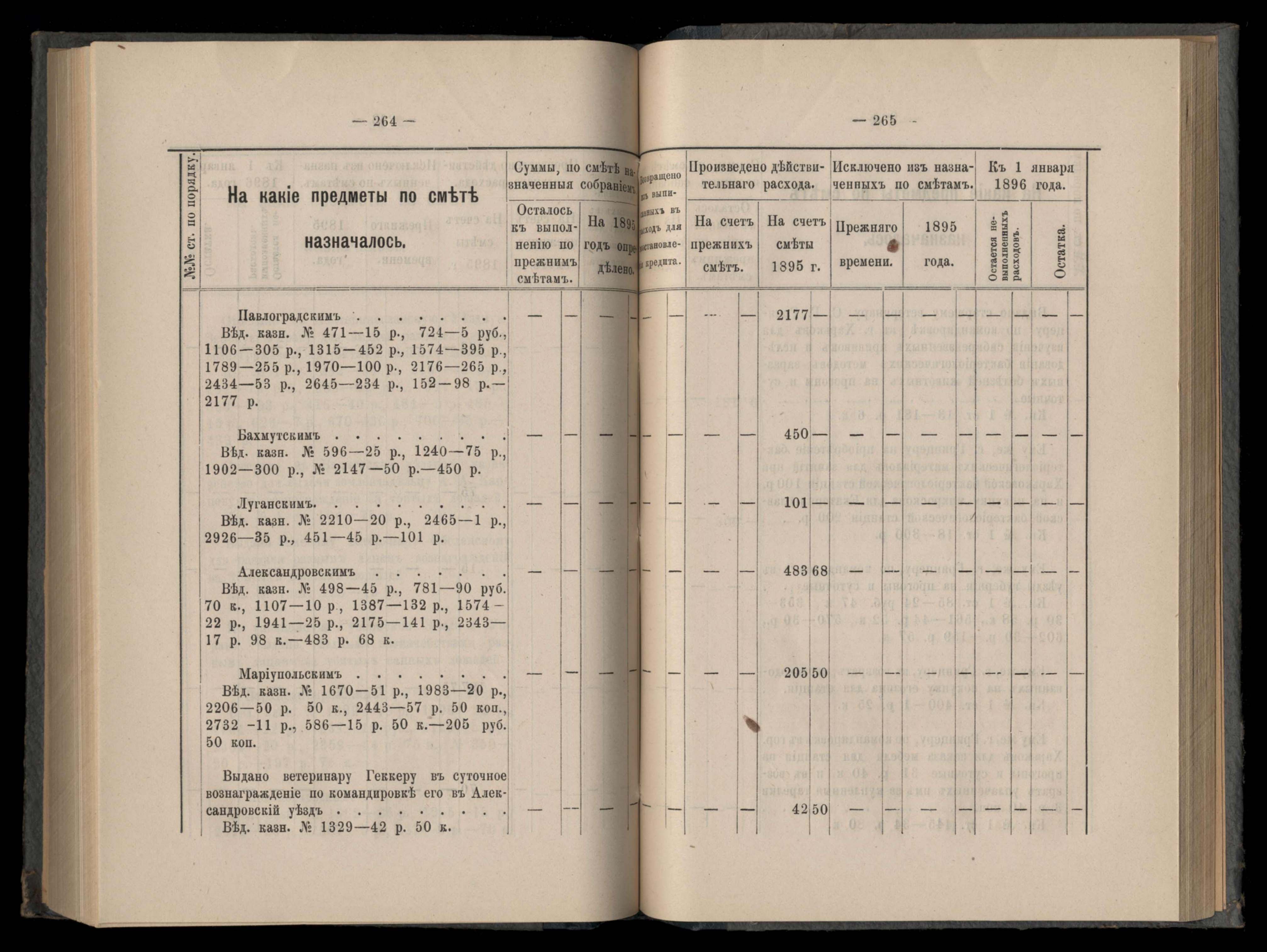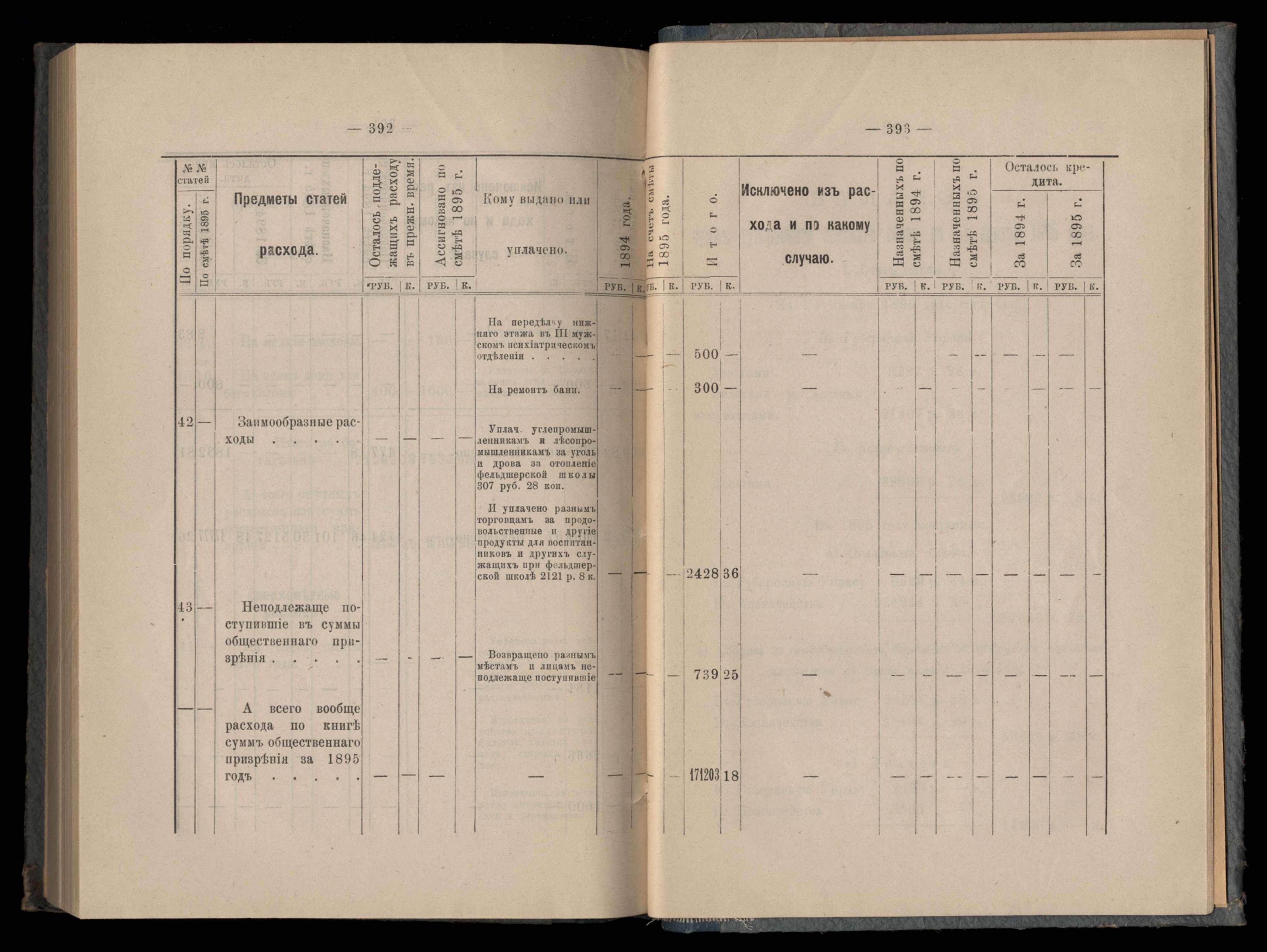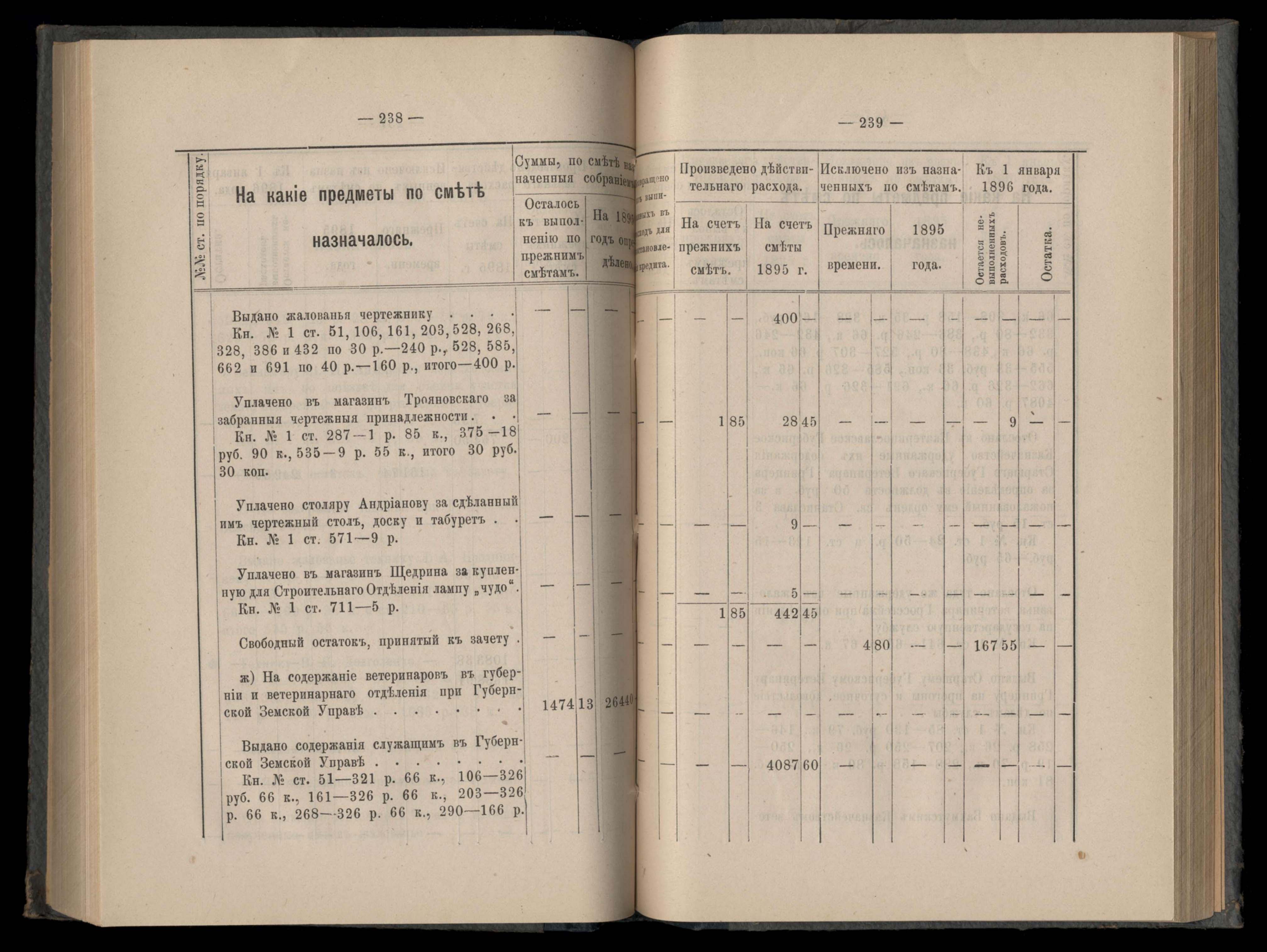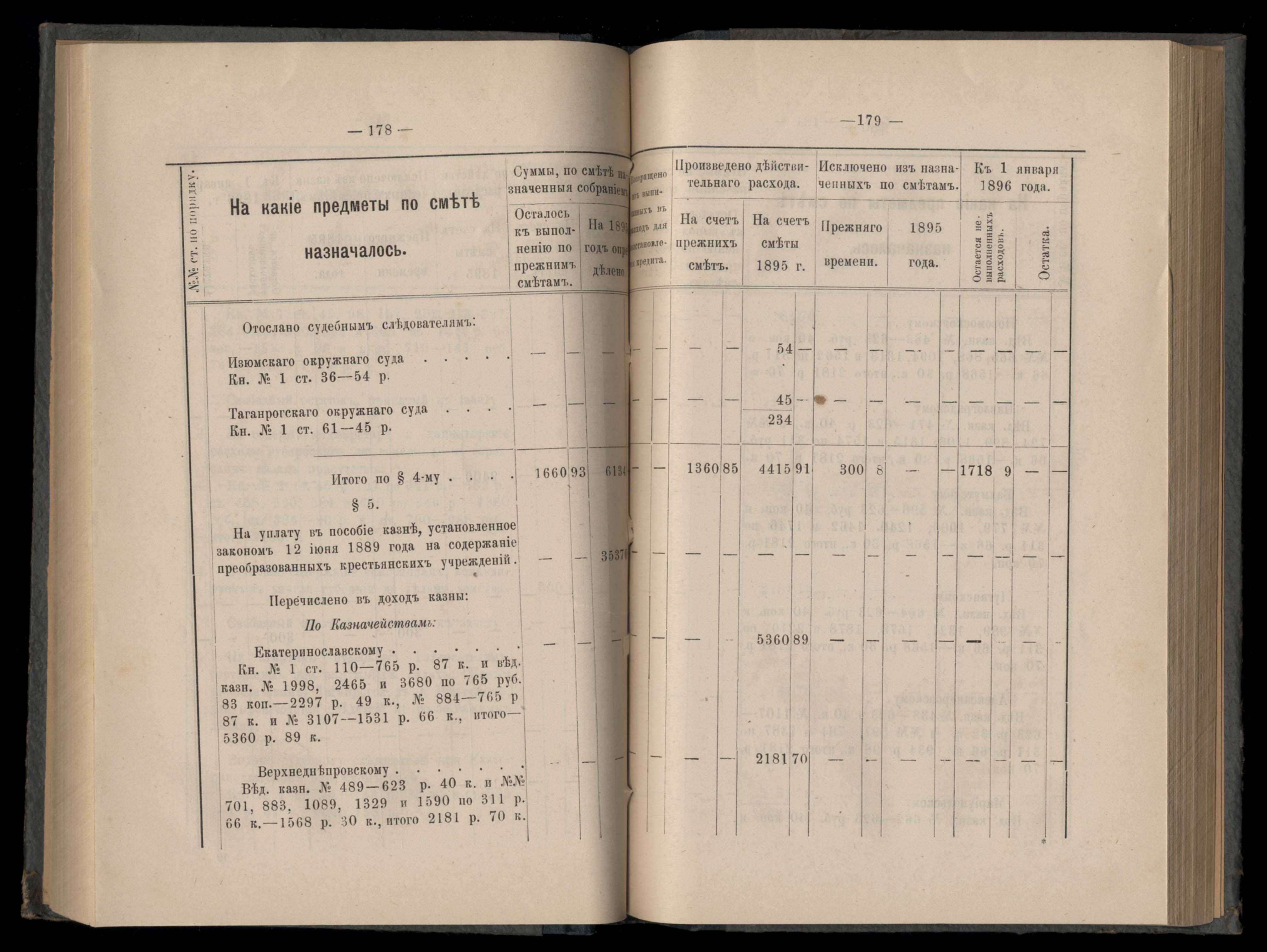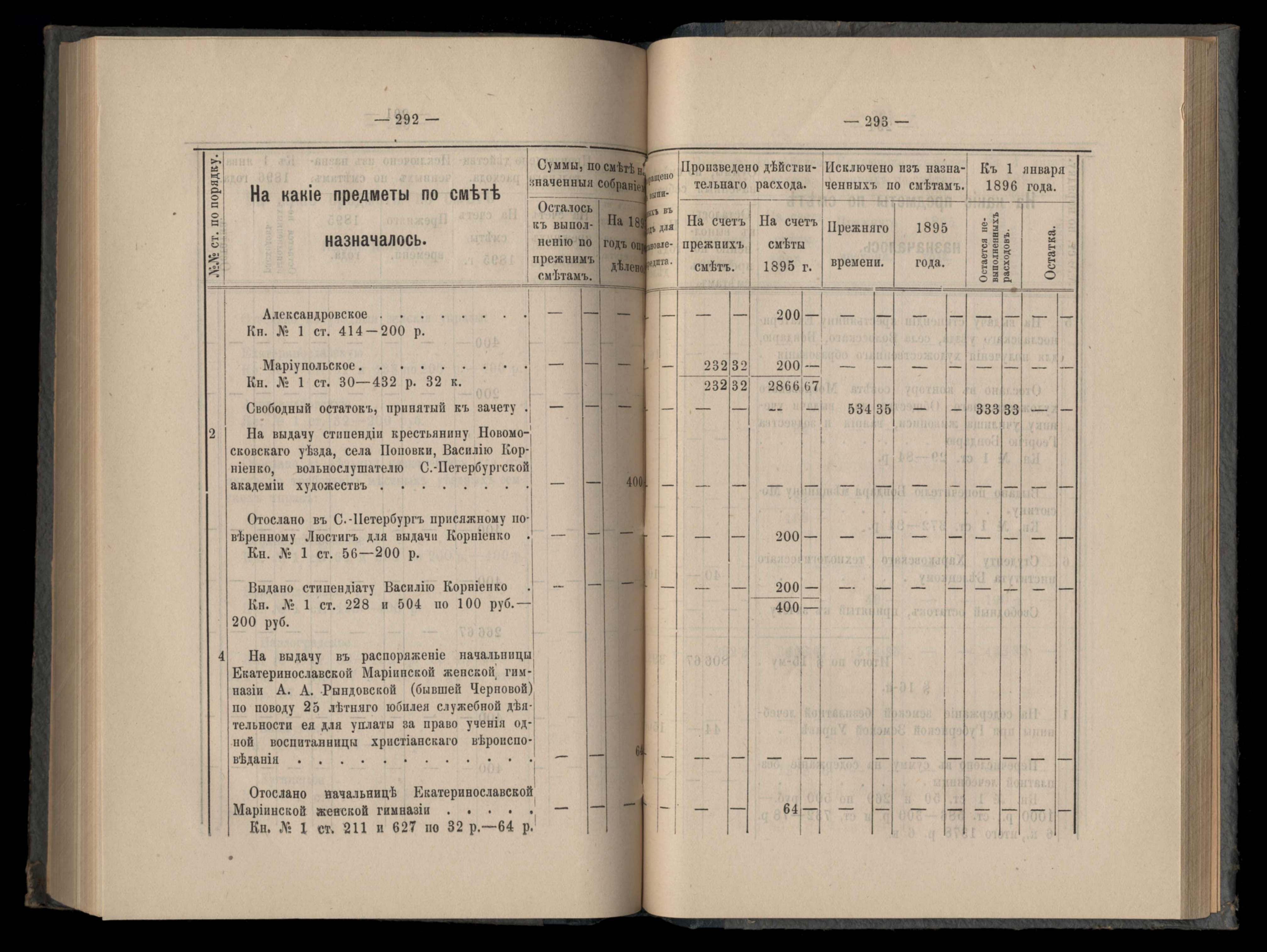 Ведомость Екатеринославской Губернской Земской Управы о Расходахъ суммъ губернскаго земскаго сбора, по постановленіямъ Губернскаго Земскаго Собранія, по журналамъ управы и другимъ случаямъ за 1895 годъ
