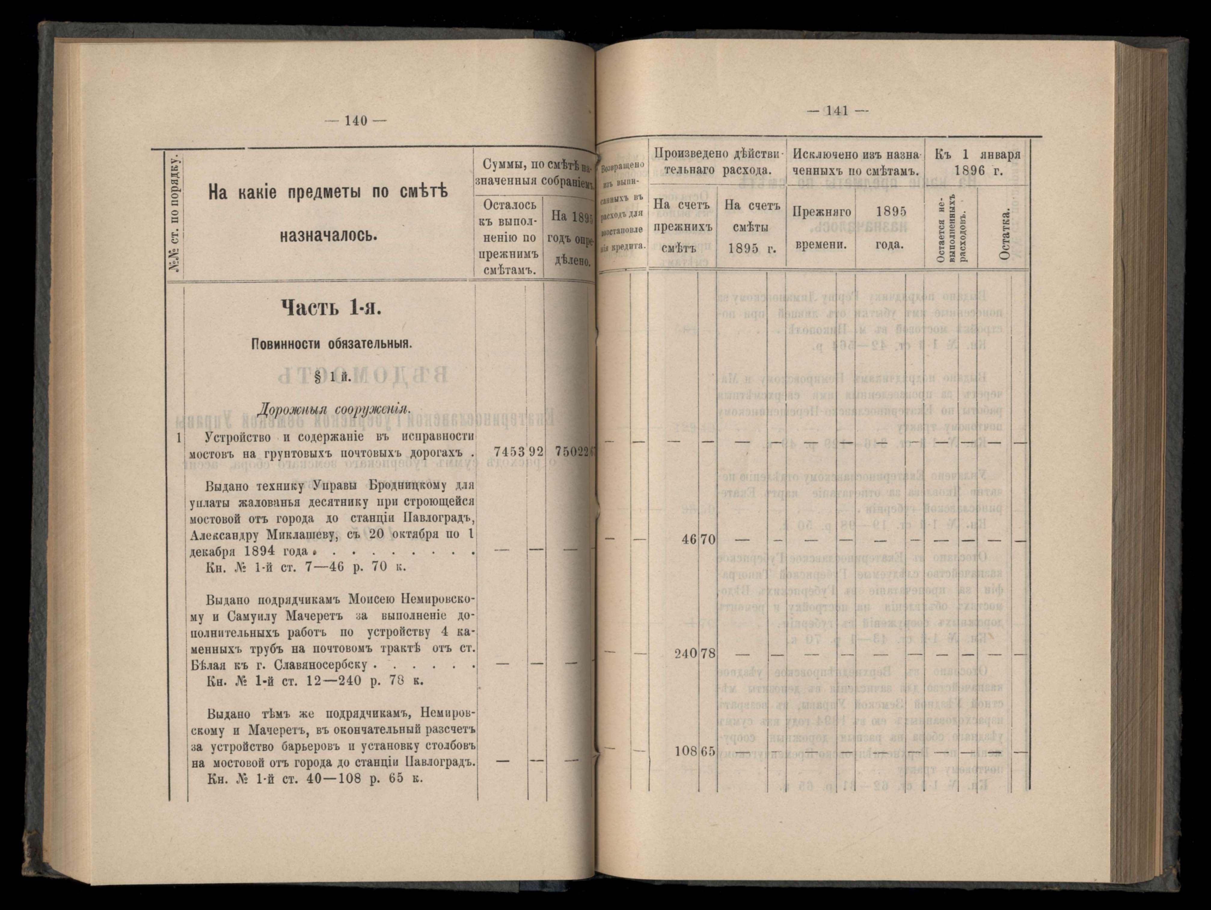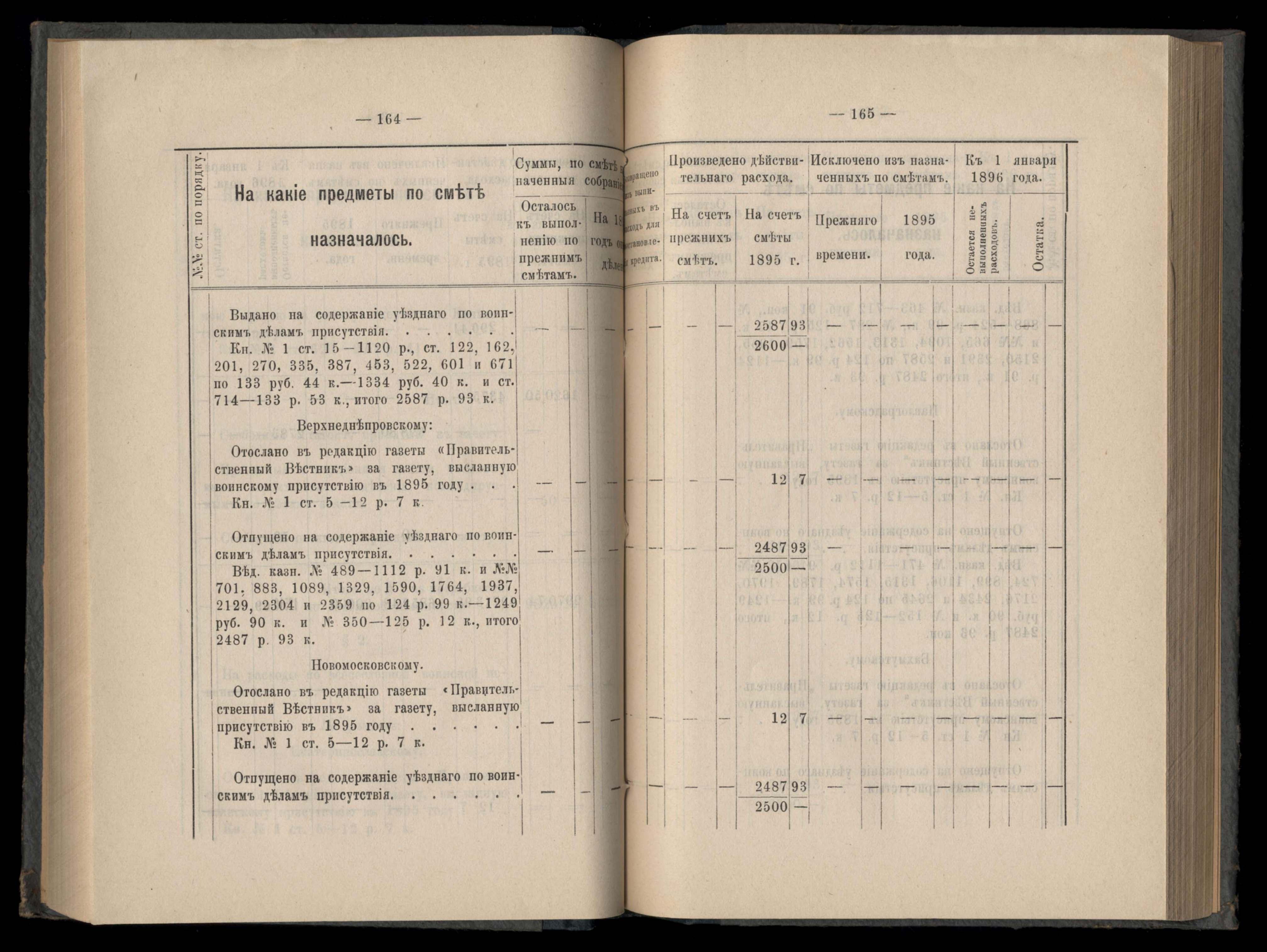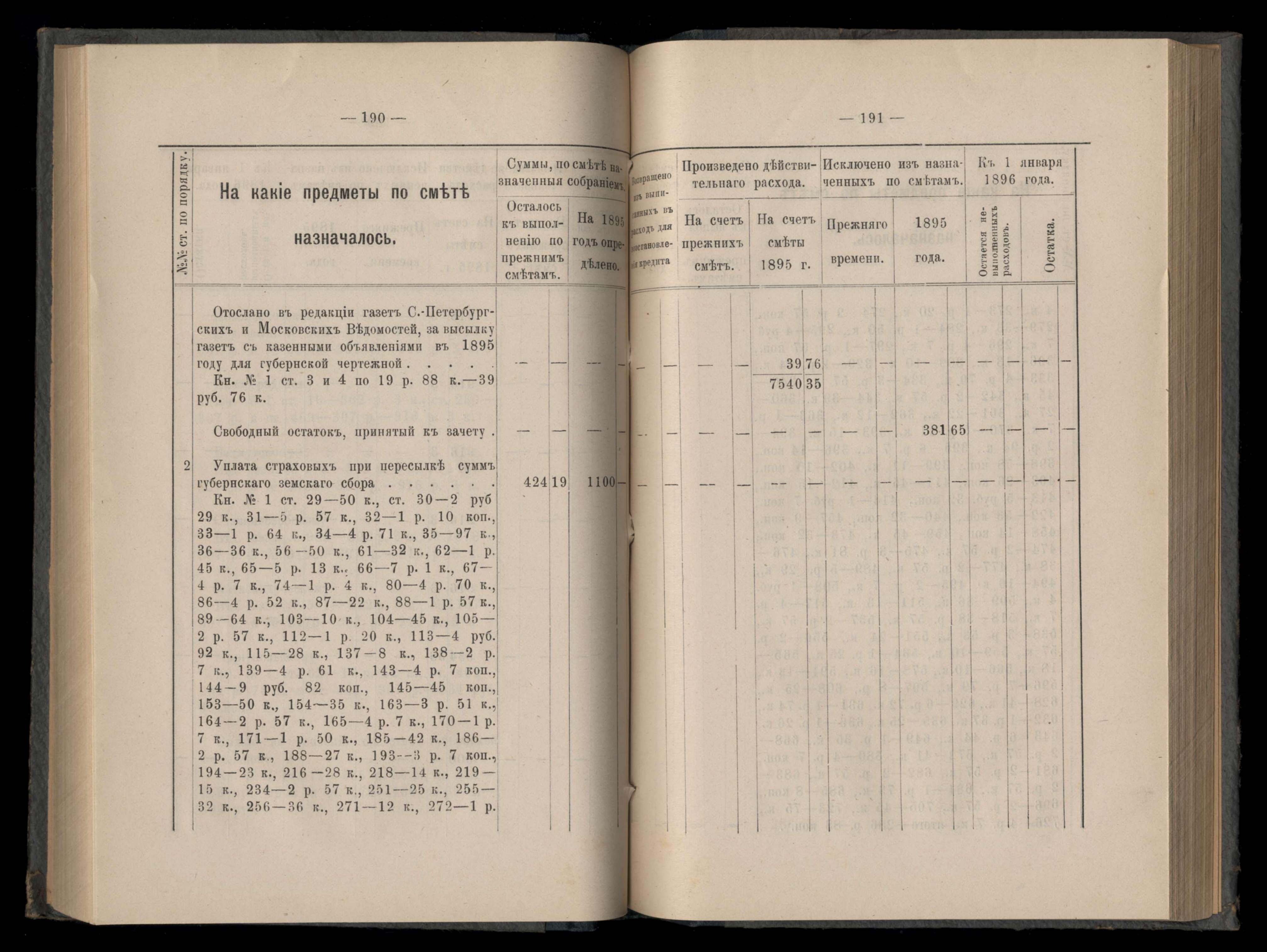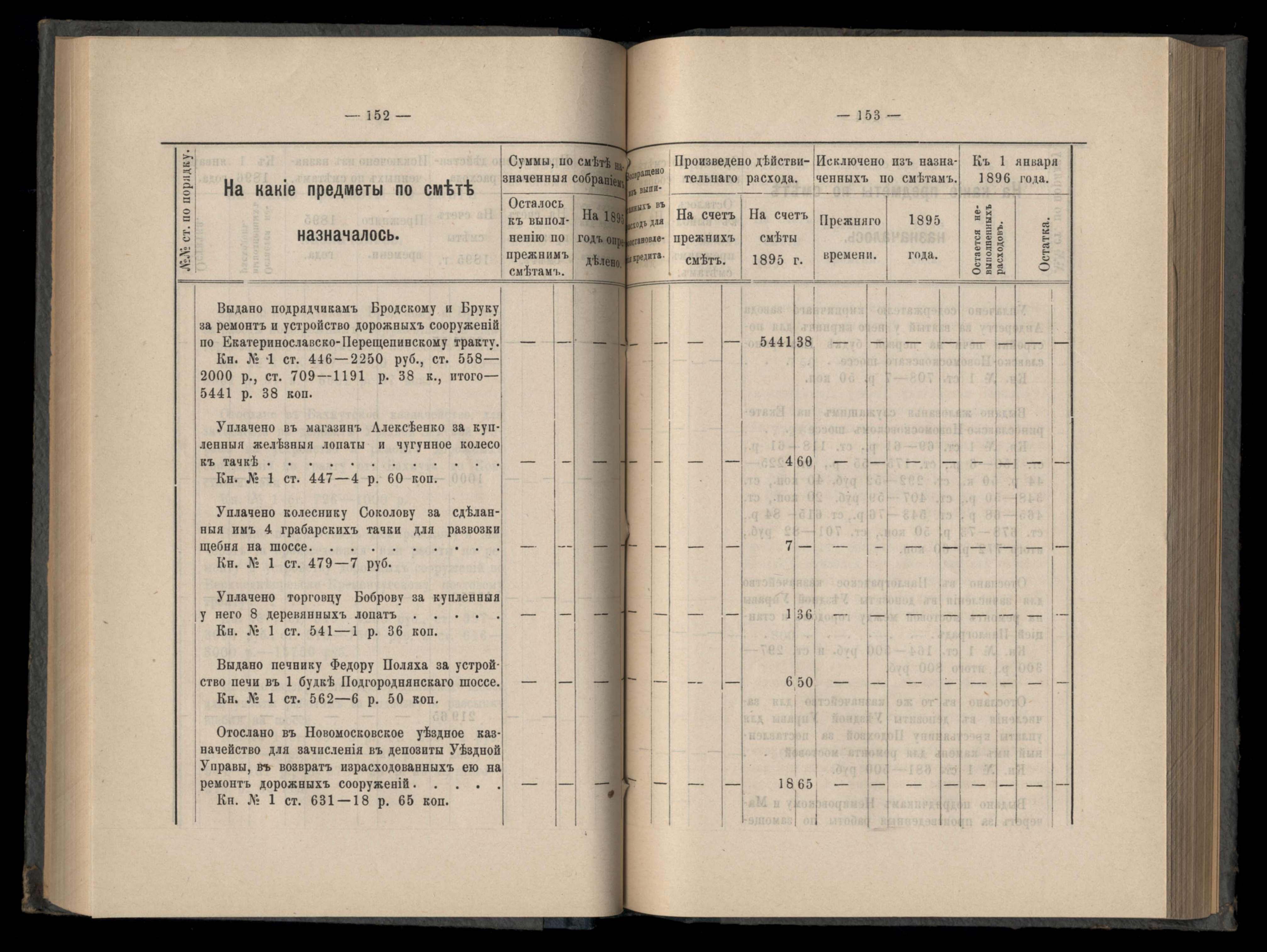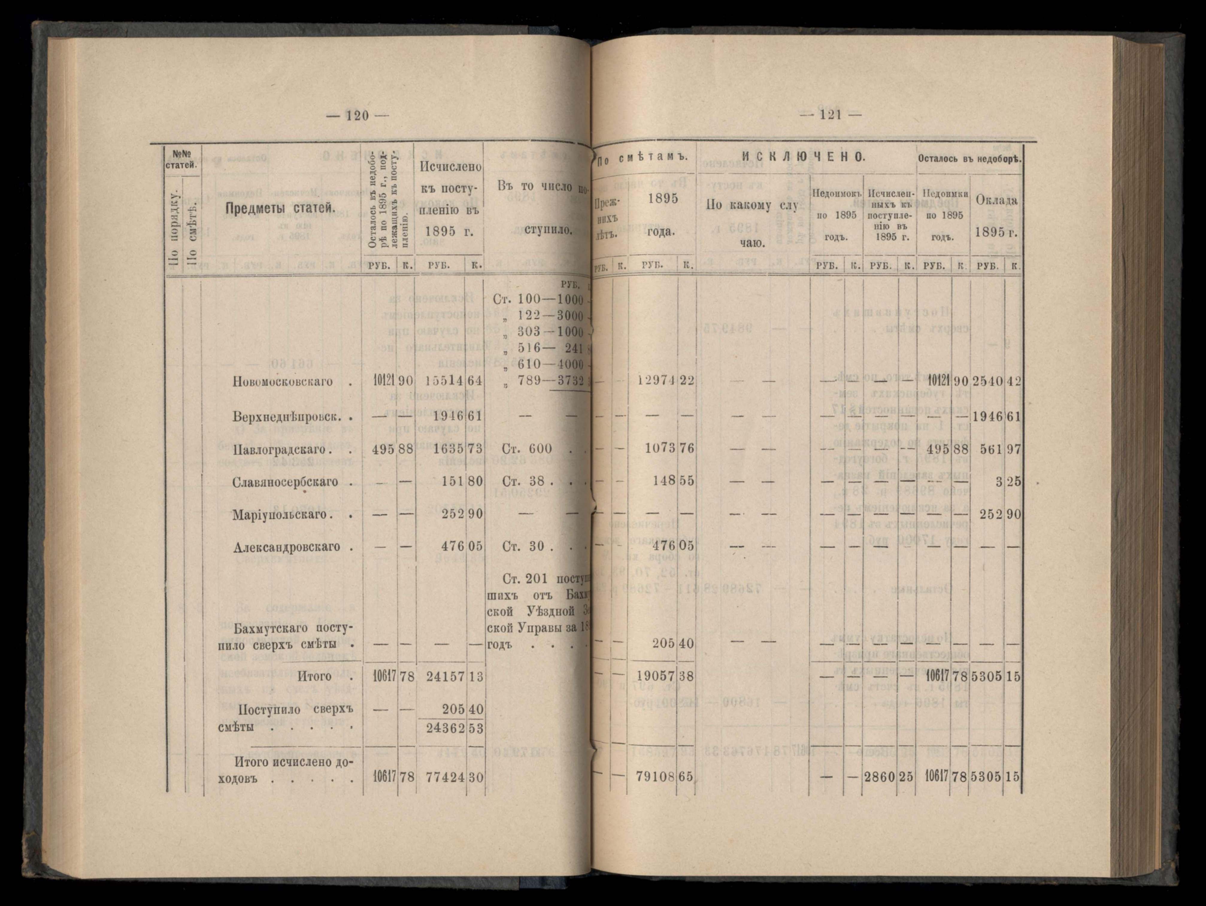 Ведомость Екатеринославской Губернской Земской Управы о Расходахъ суммъ губернскаго земскаго сбора, по постановленіямъ Губернскаго Земскаго Собранія, по журналамъ управы и другимъ случаямъ за 1895 годъ