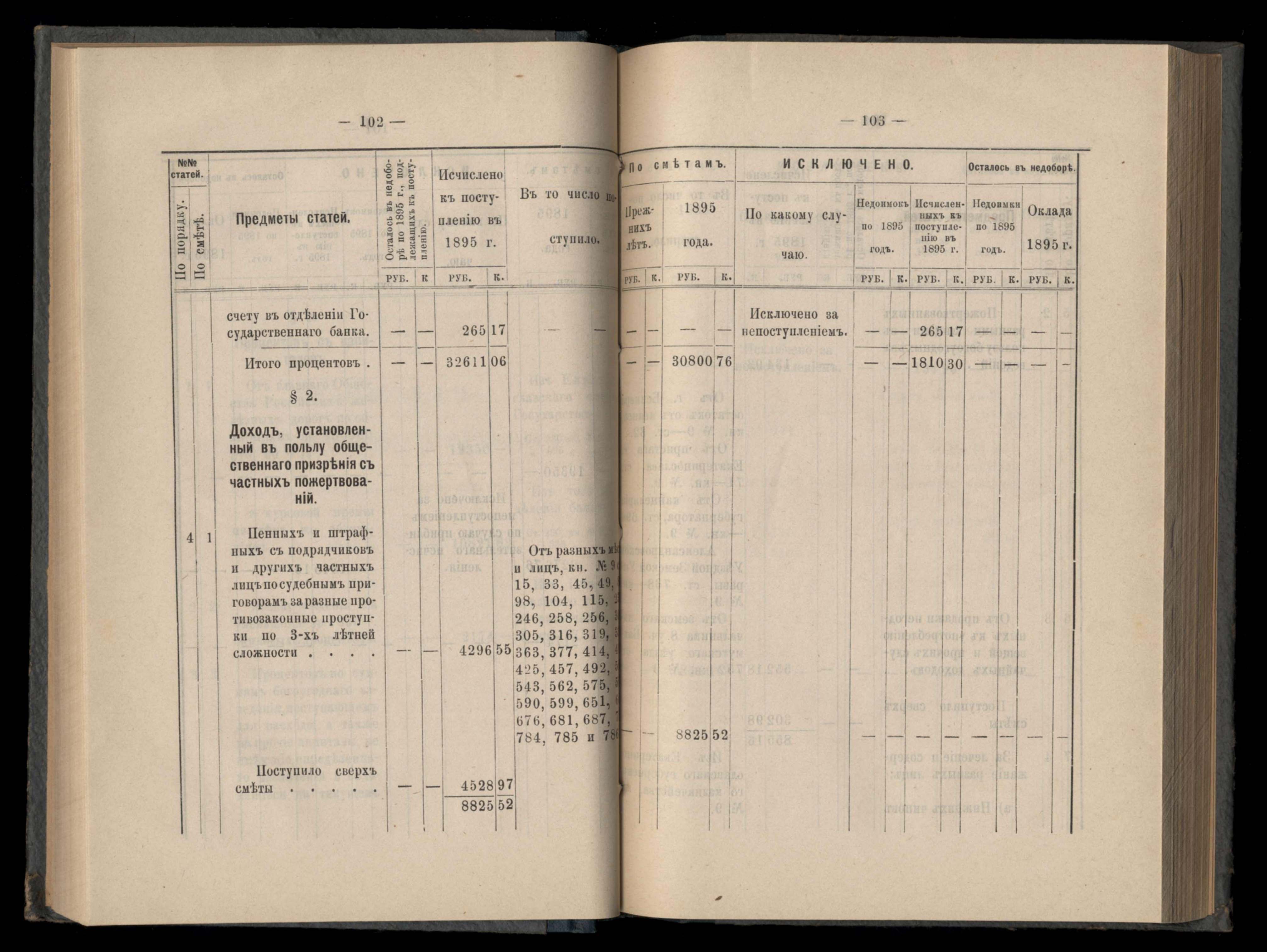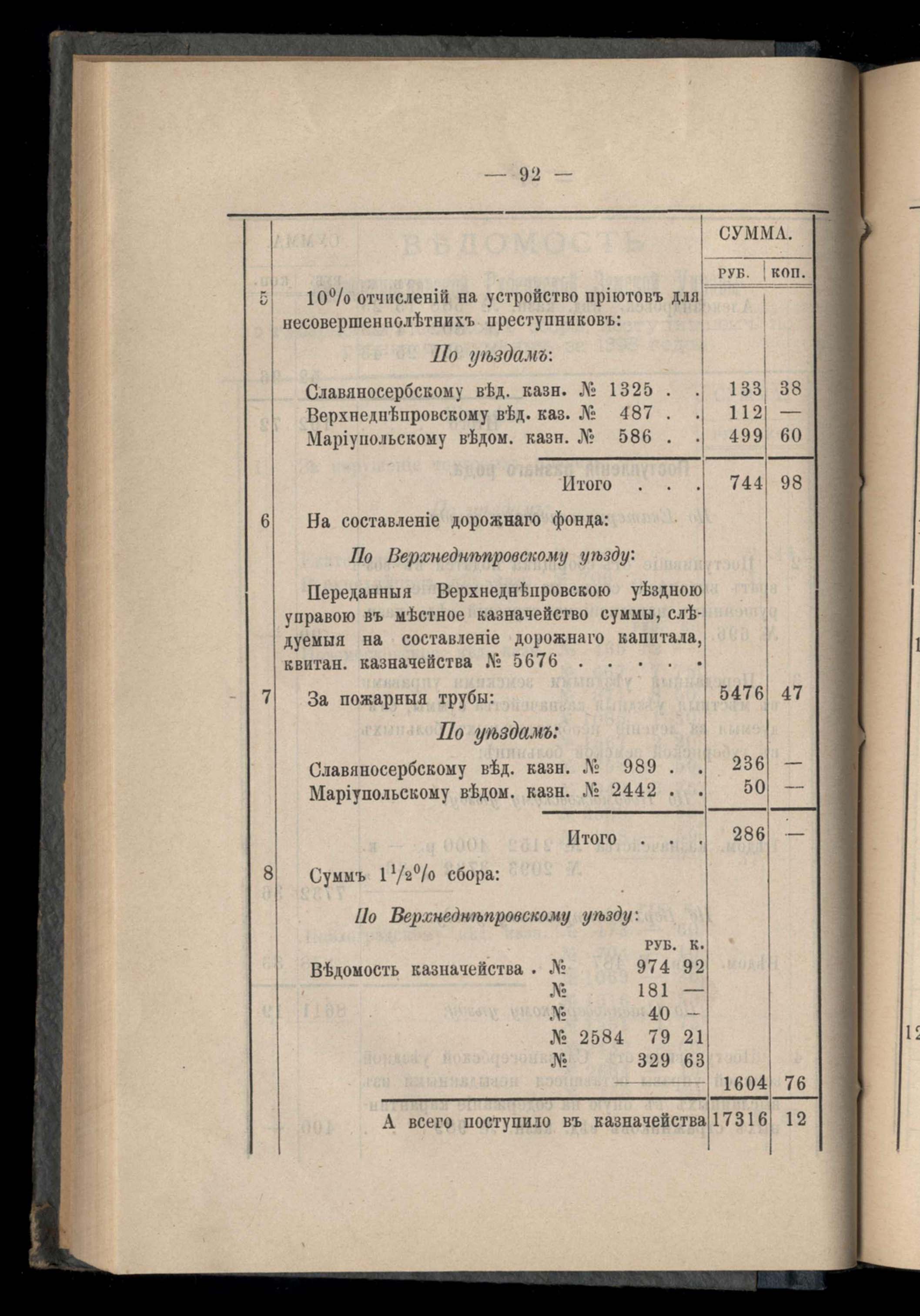 Ведомость Екатеринославской Губернской Земской Управы о доходахъ суммъ общественнаго призренія за 1895 годъ