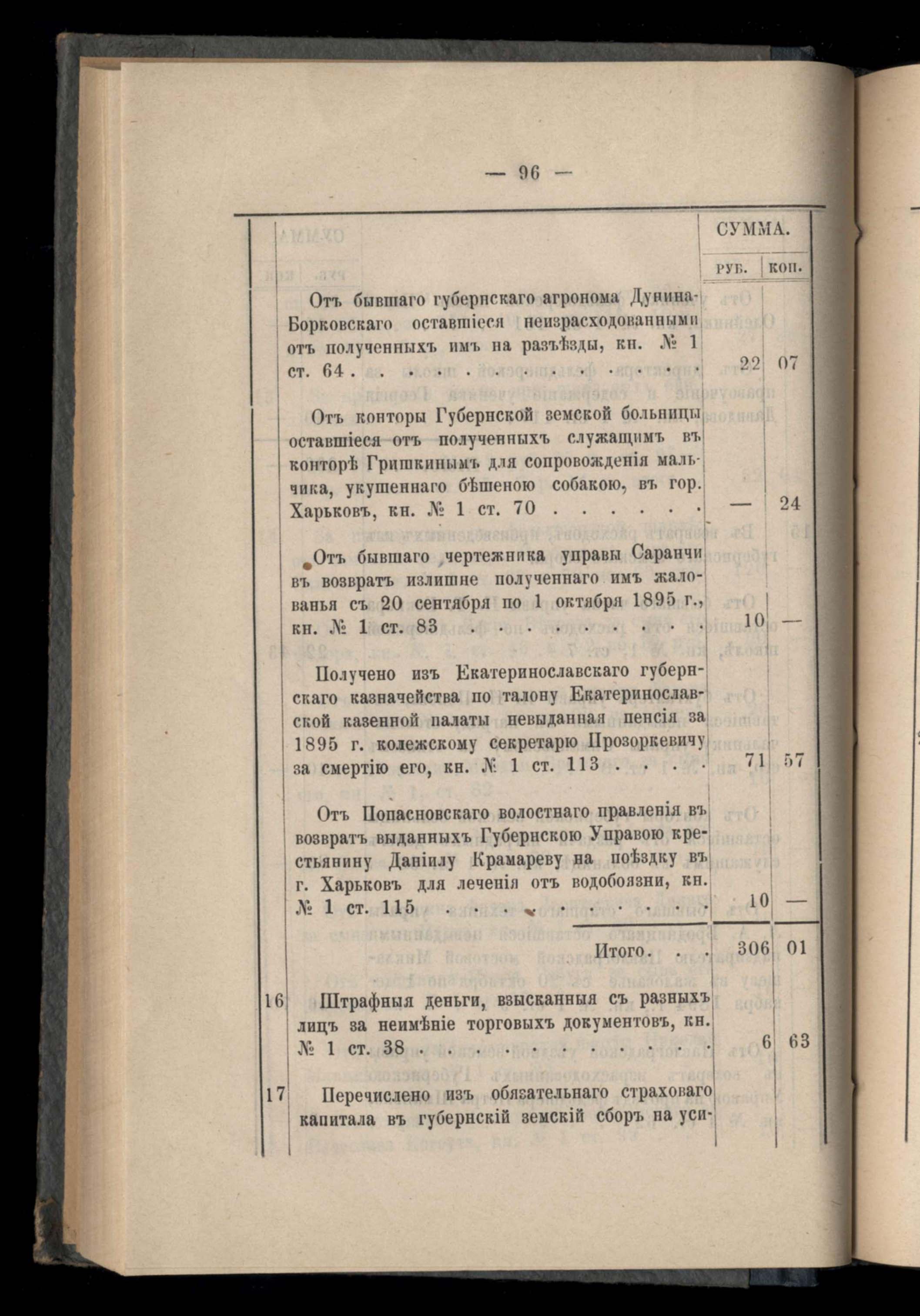 Ведомость Екатеринославской Губернской Земской Управы о губернскомъ земскомъ сборе, поступившемъ по разнымъ случаямъ за 1895 годъ
