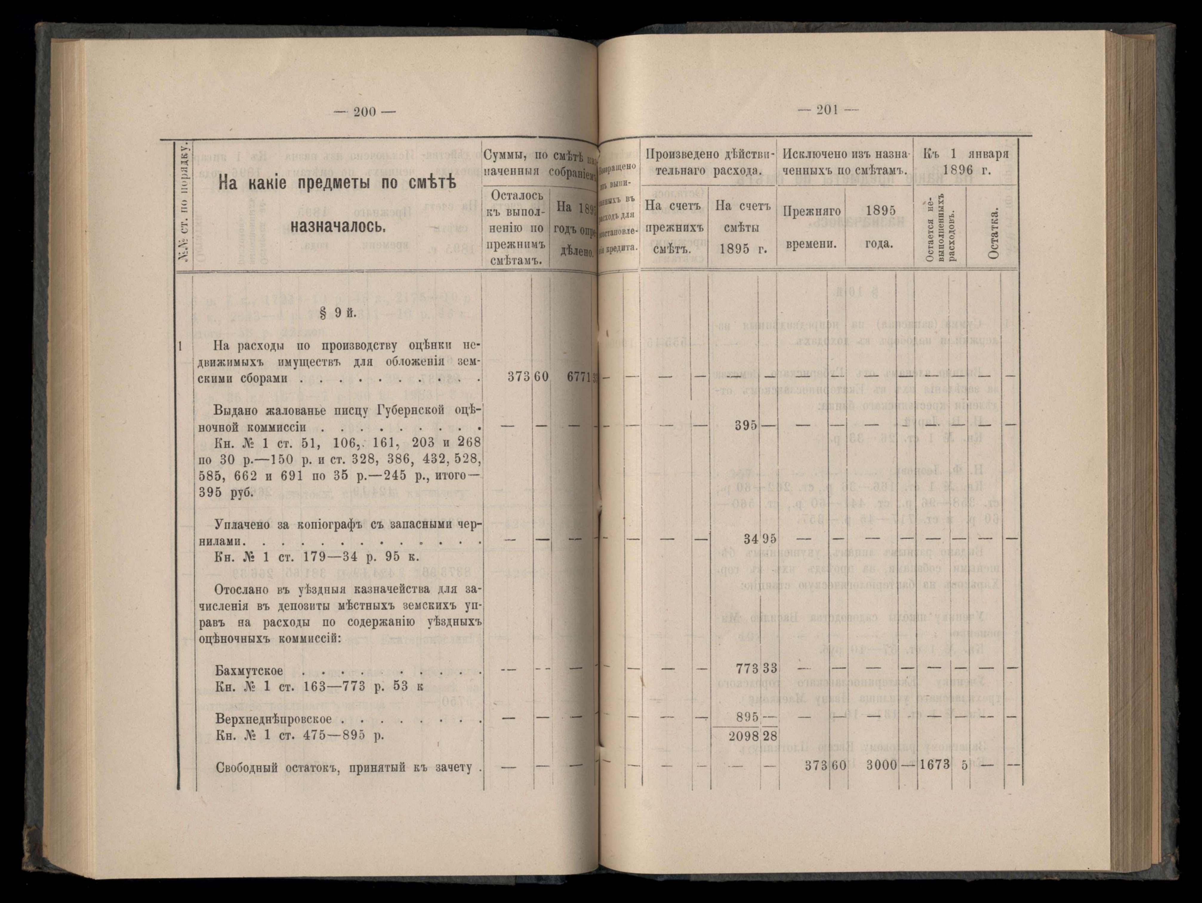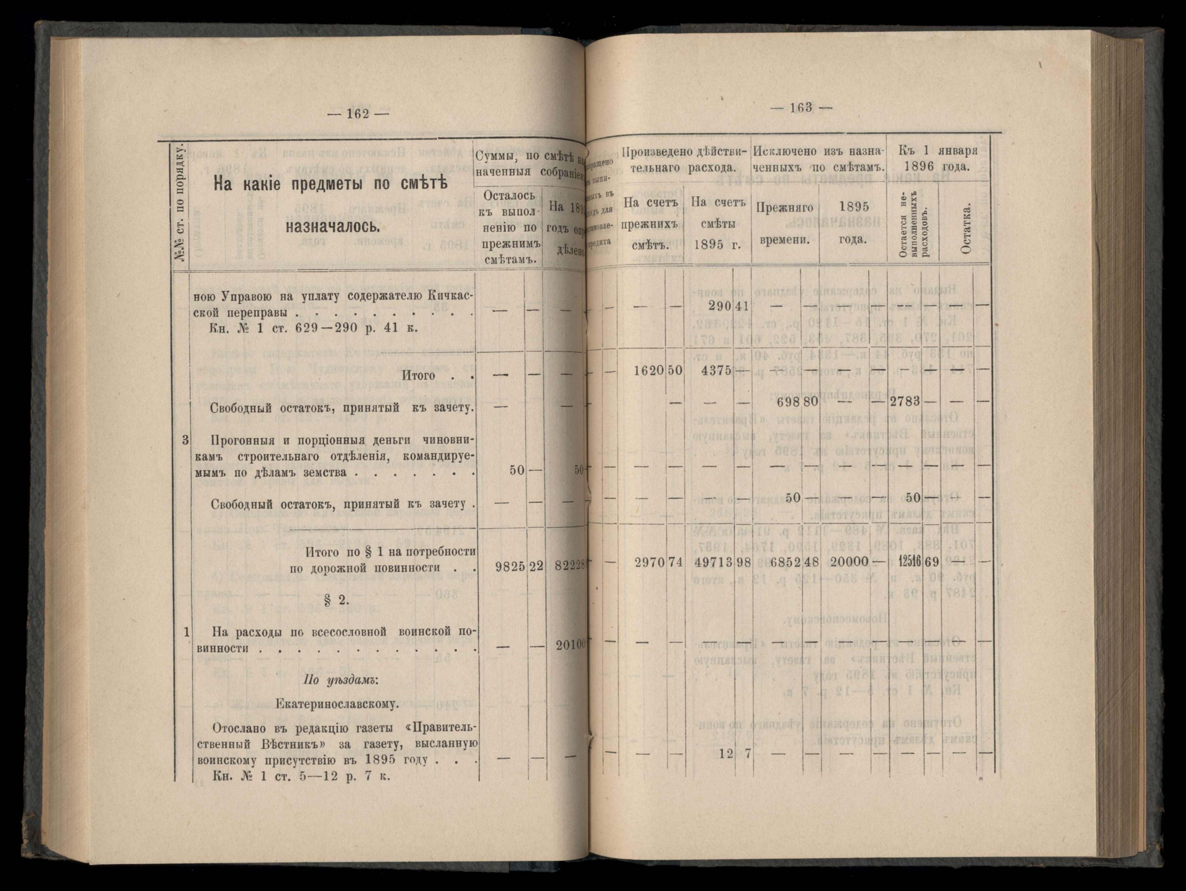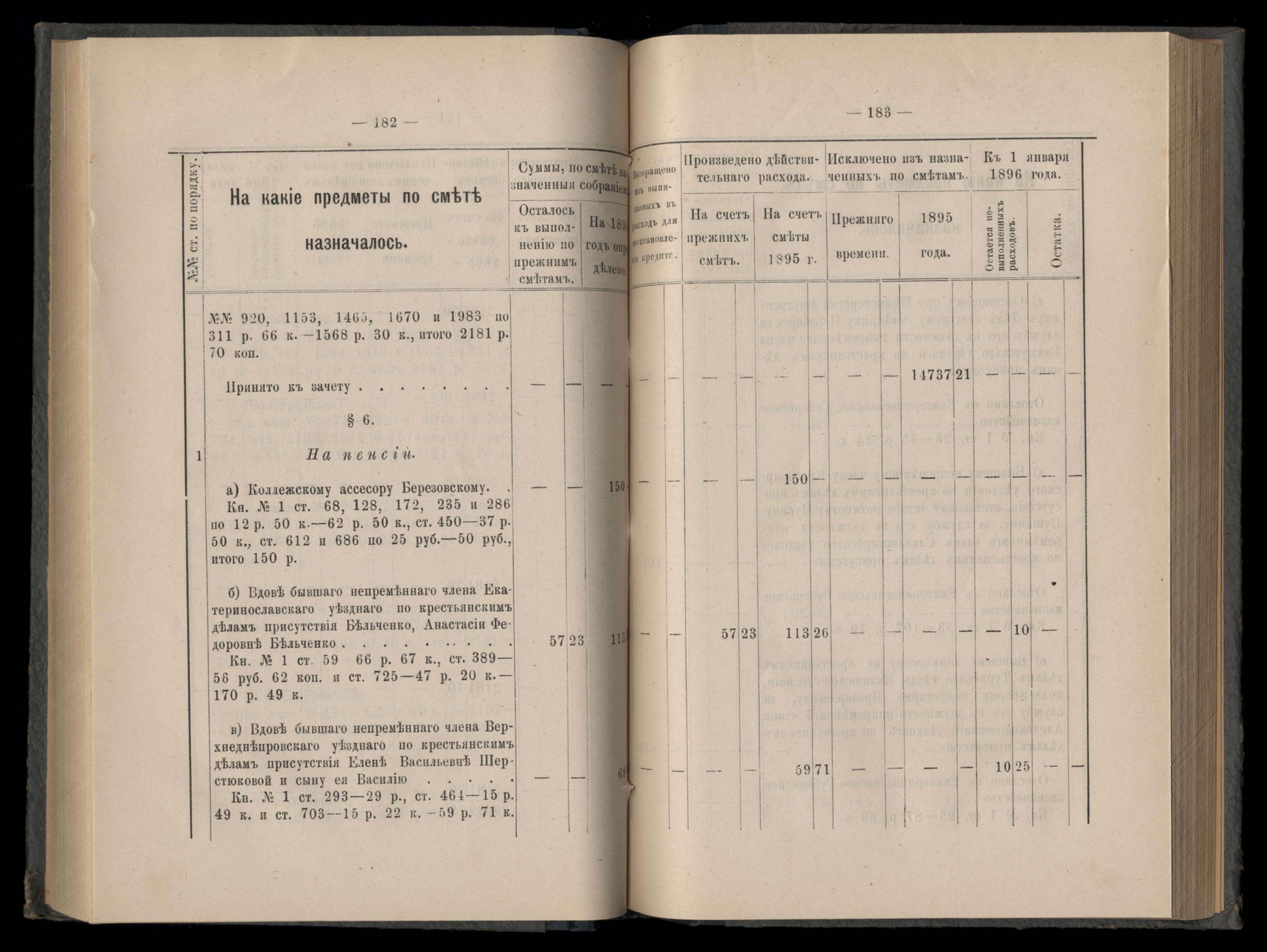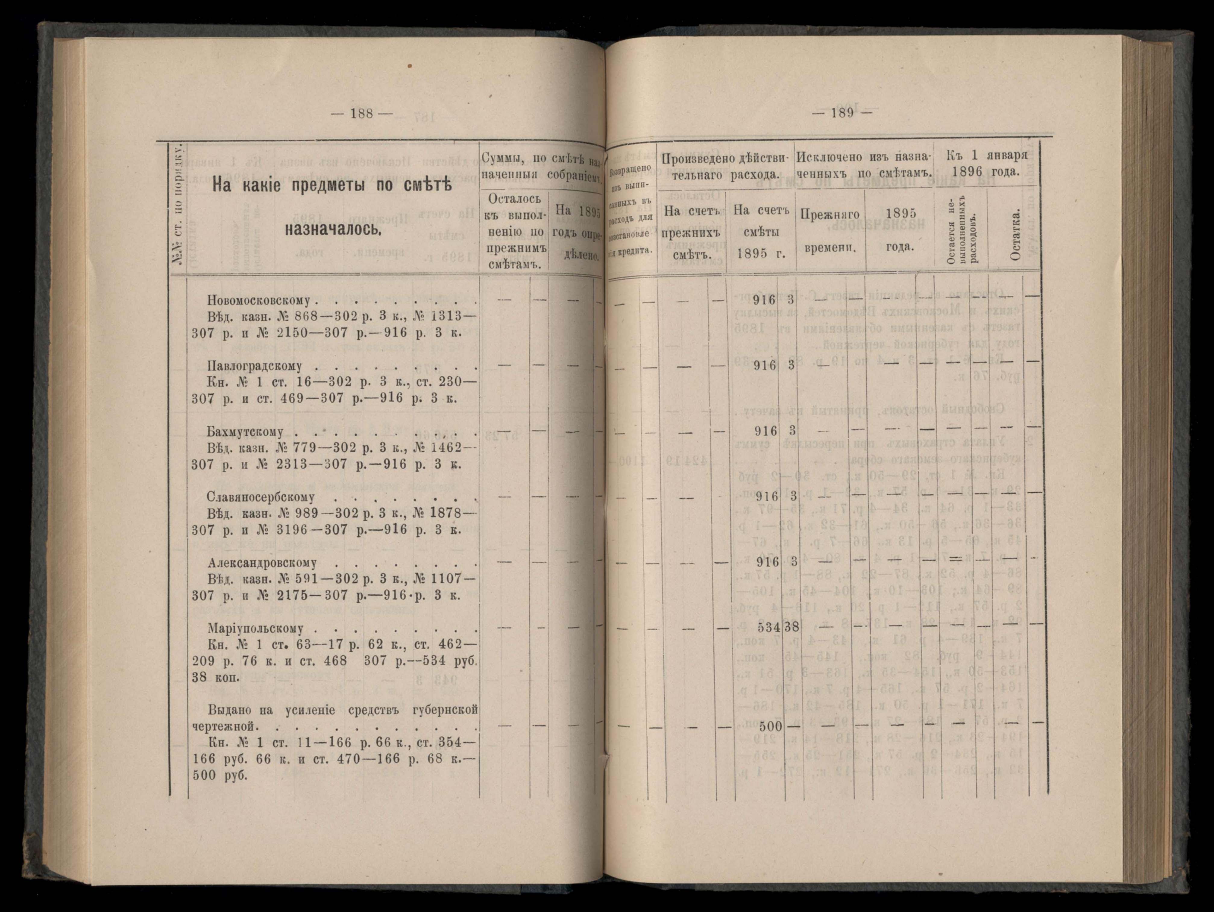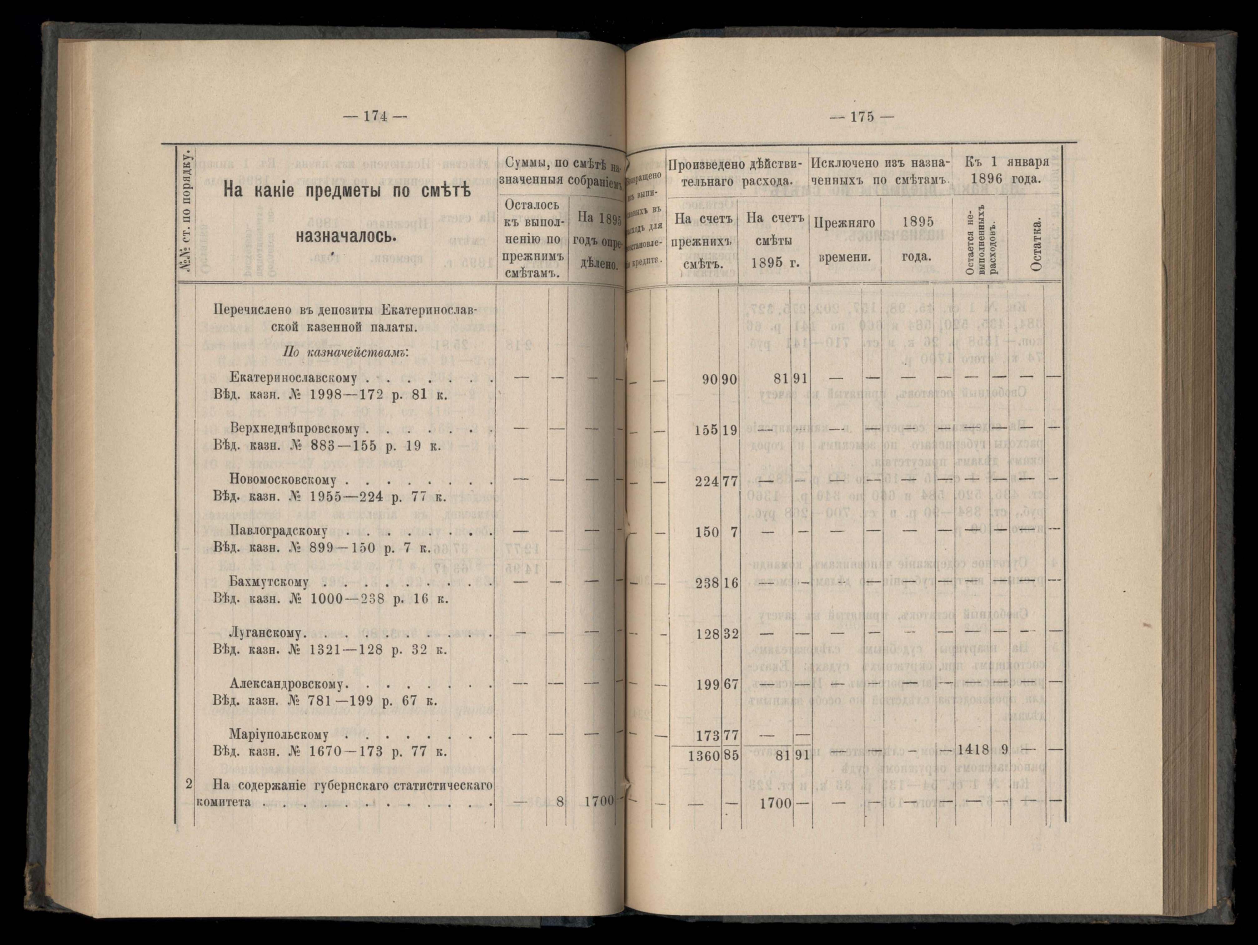 Ведомость Екатеринославской Губернской Земской Управы о расходахъ суммъ губернскаго сбора, ассигнованныхъ по смете за 1895 годъ