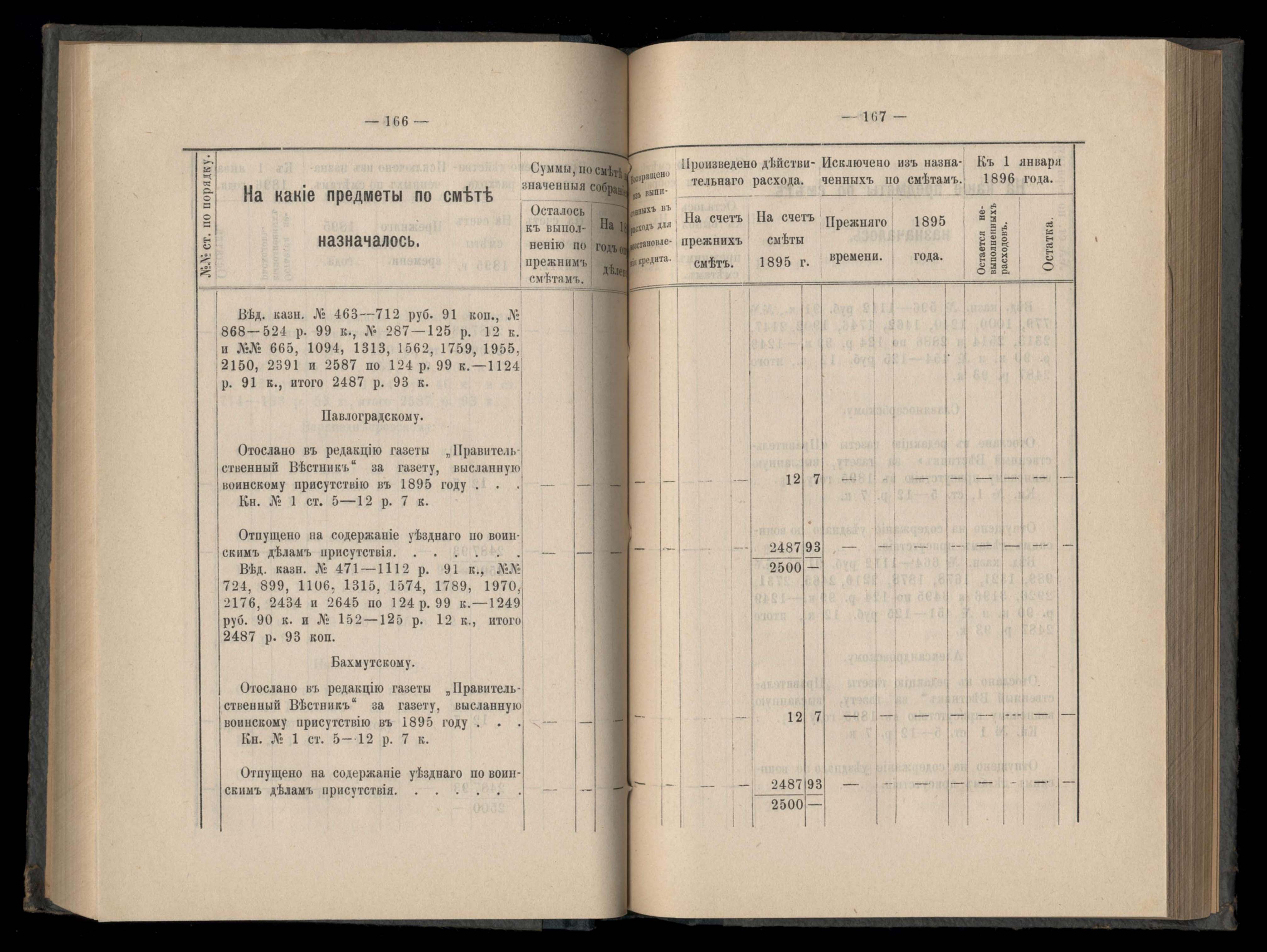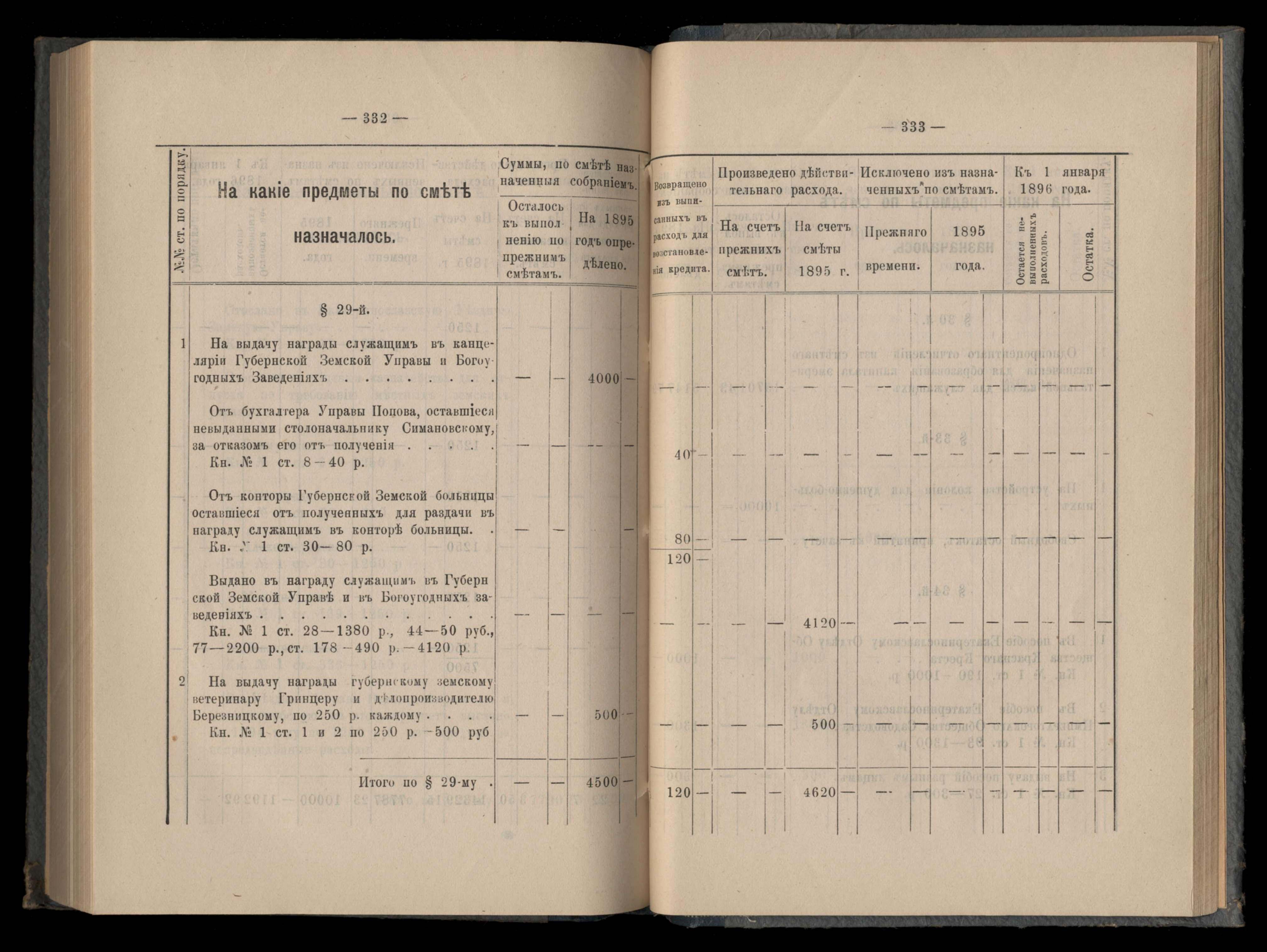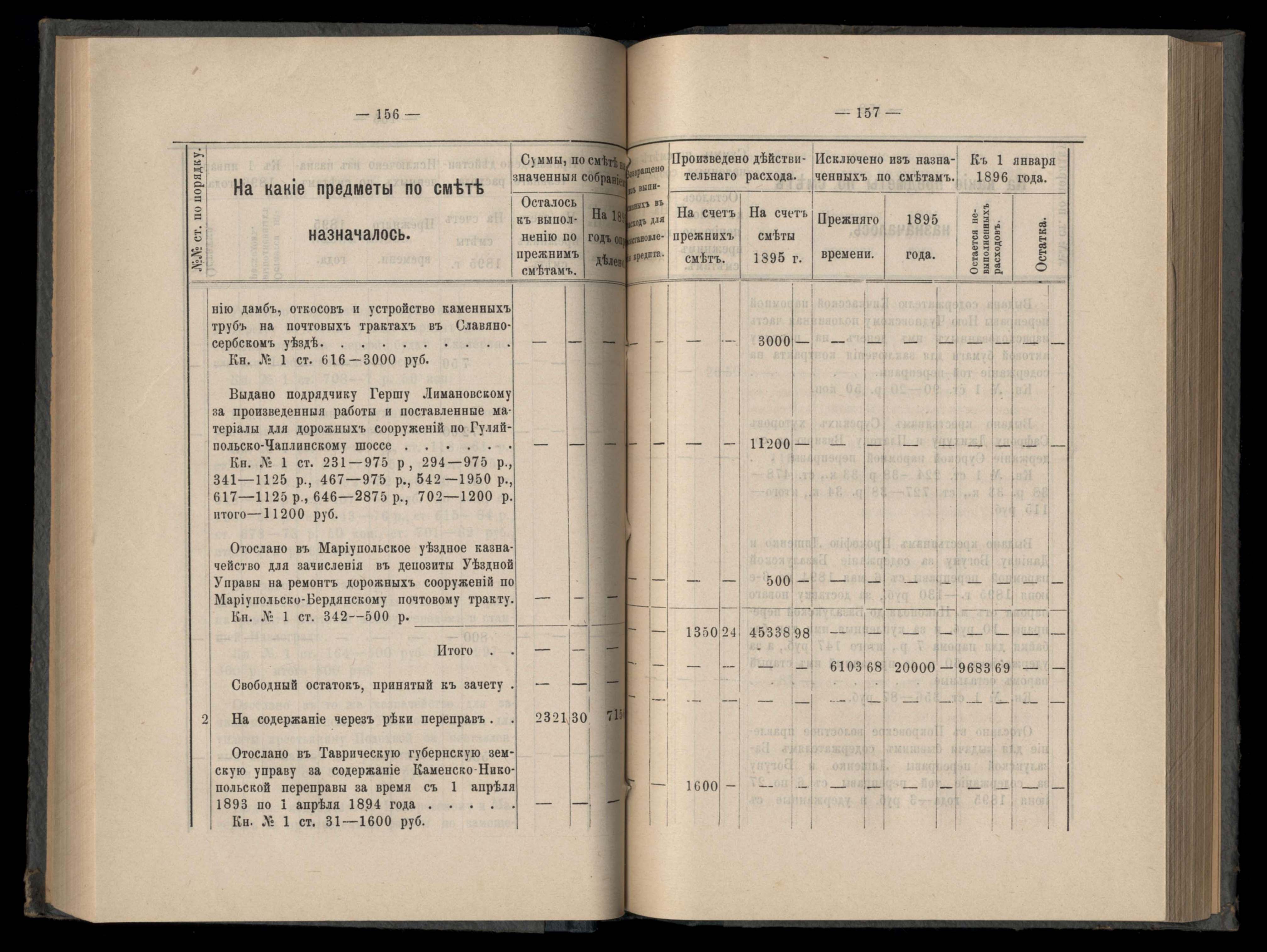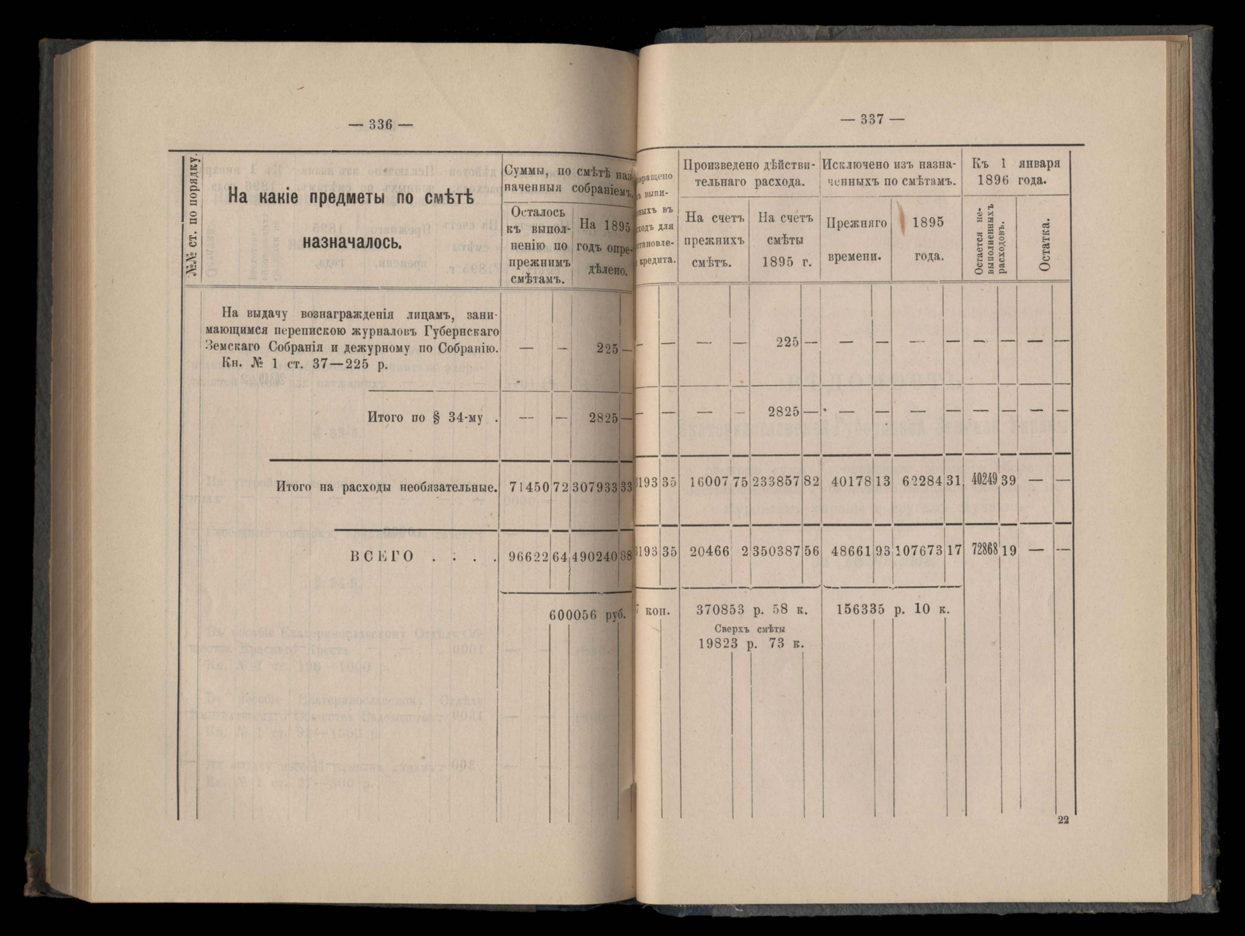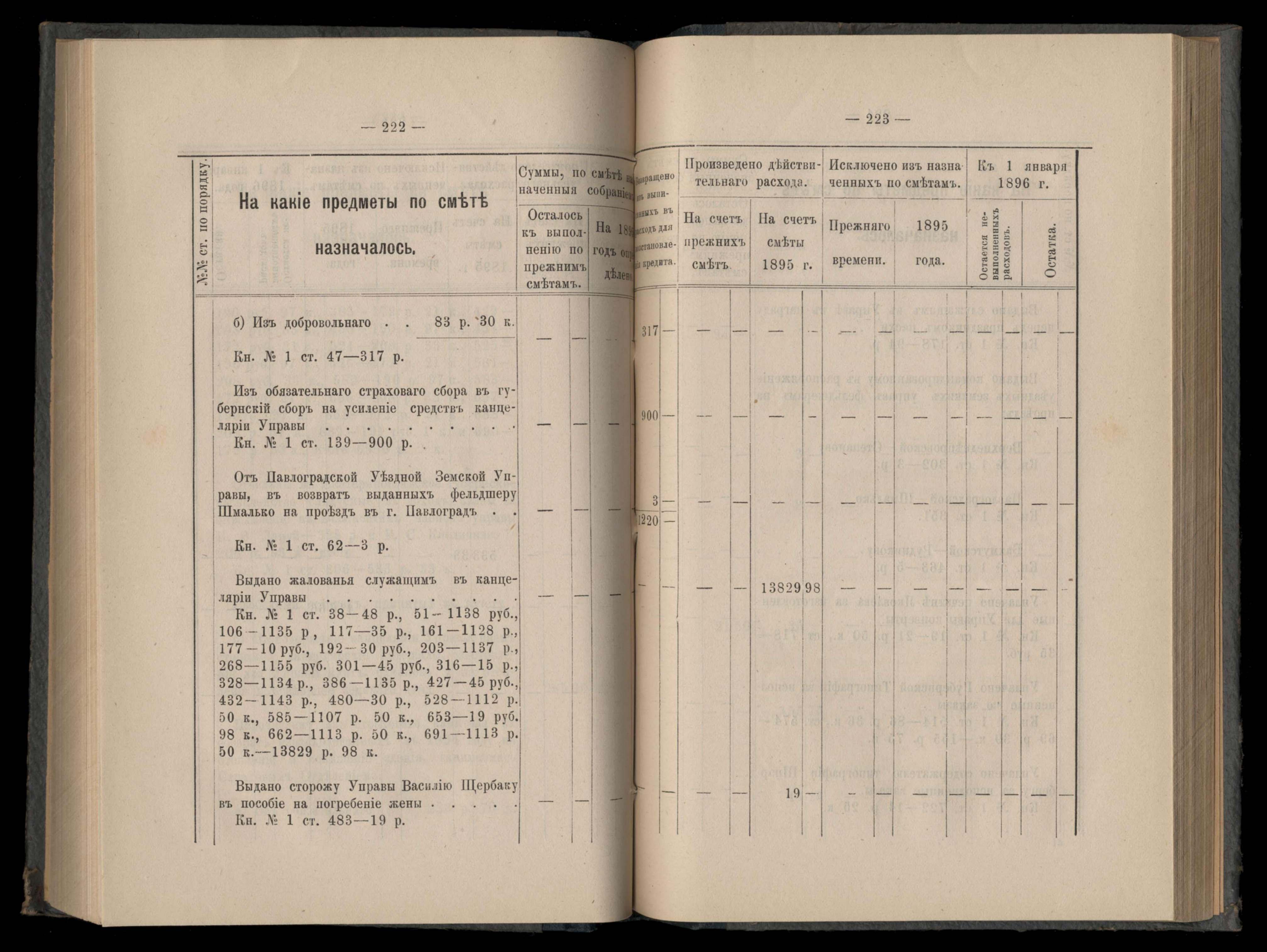 Ведомость Екатеринославской Губернской Земской Управы о расходахъ суммъ губернскаго сбора, ассигнованныхъ по смете за 1895 годъ