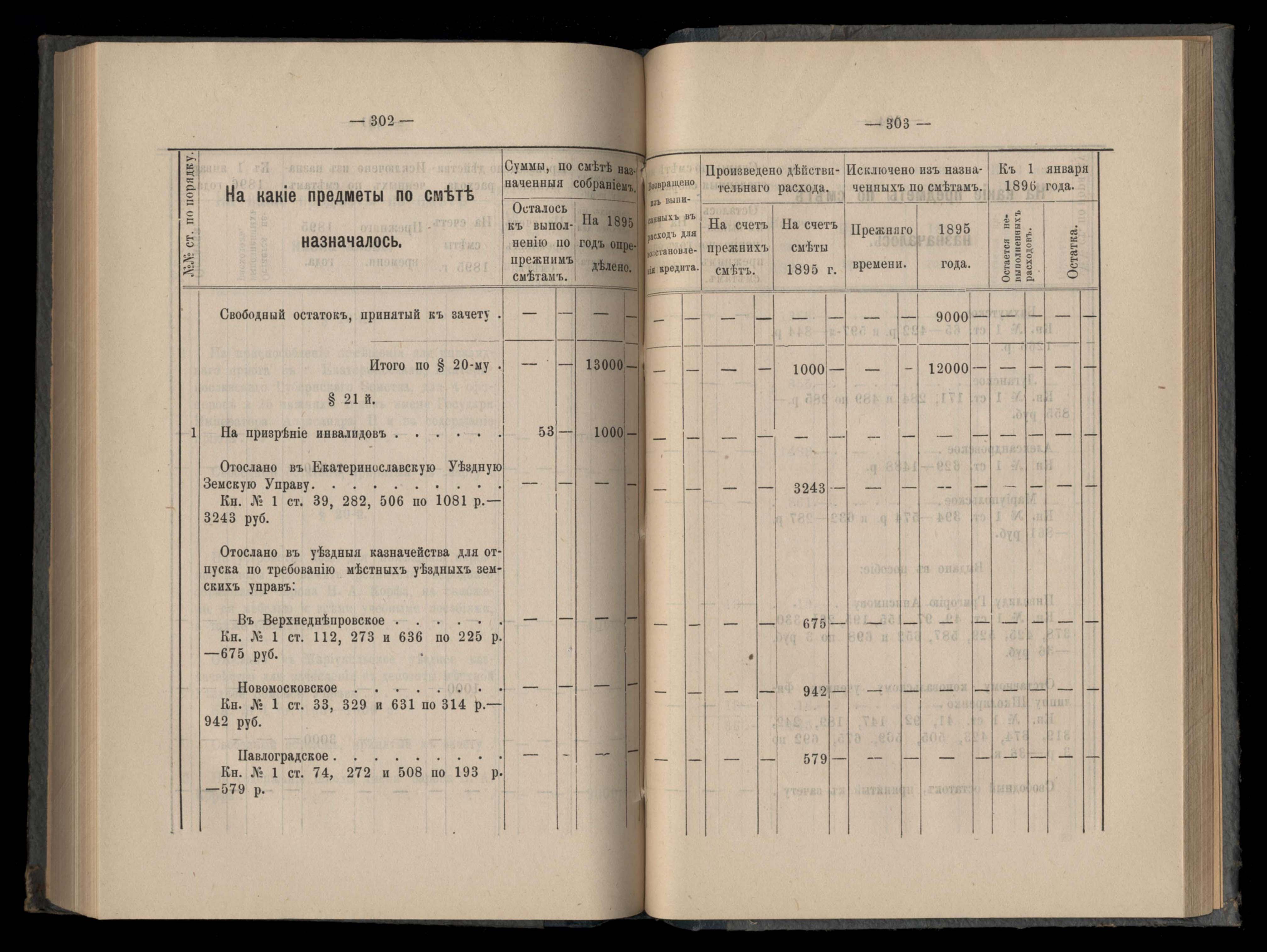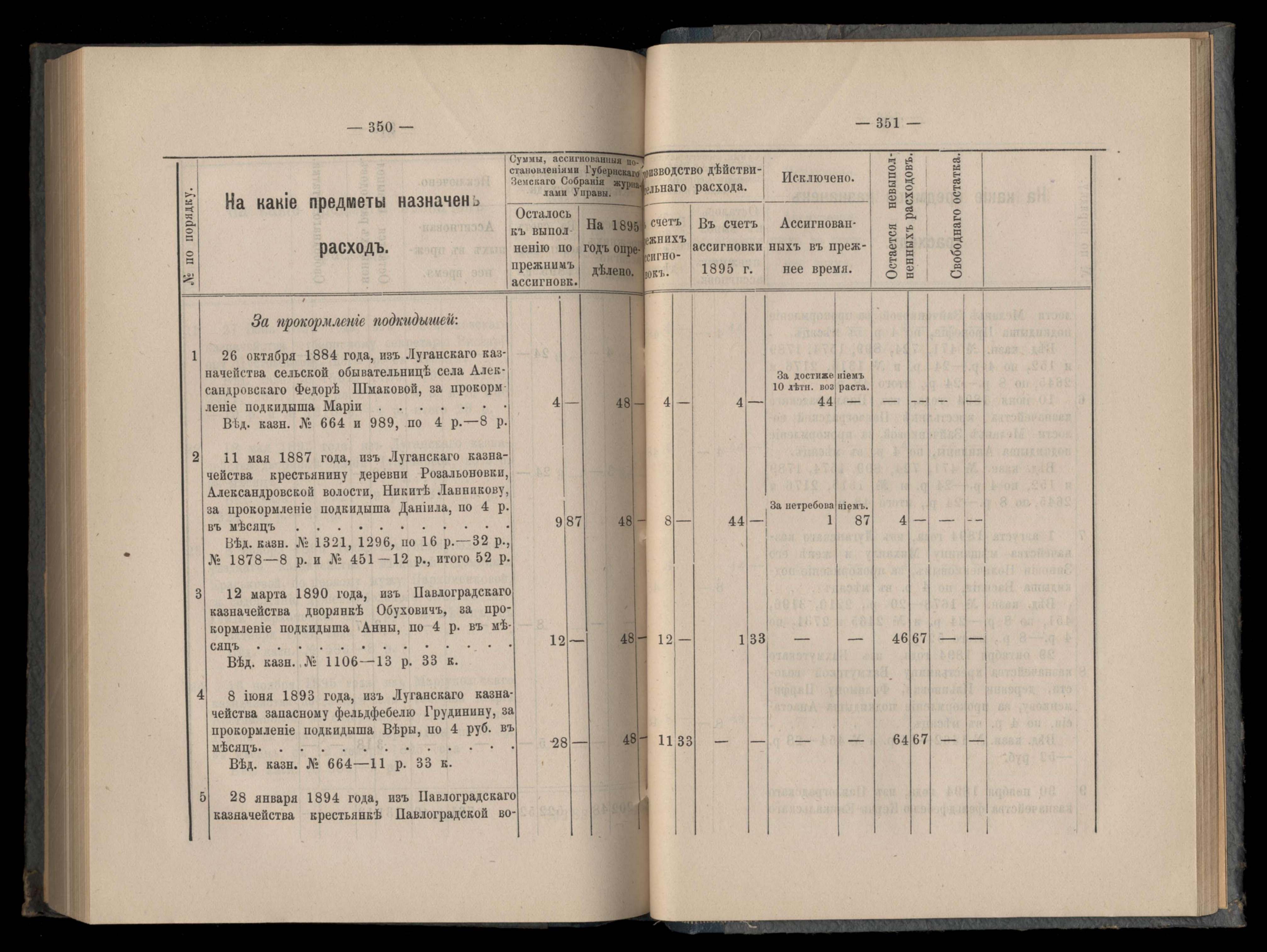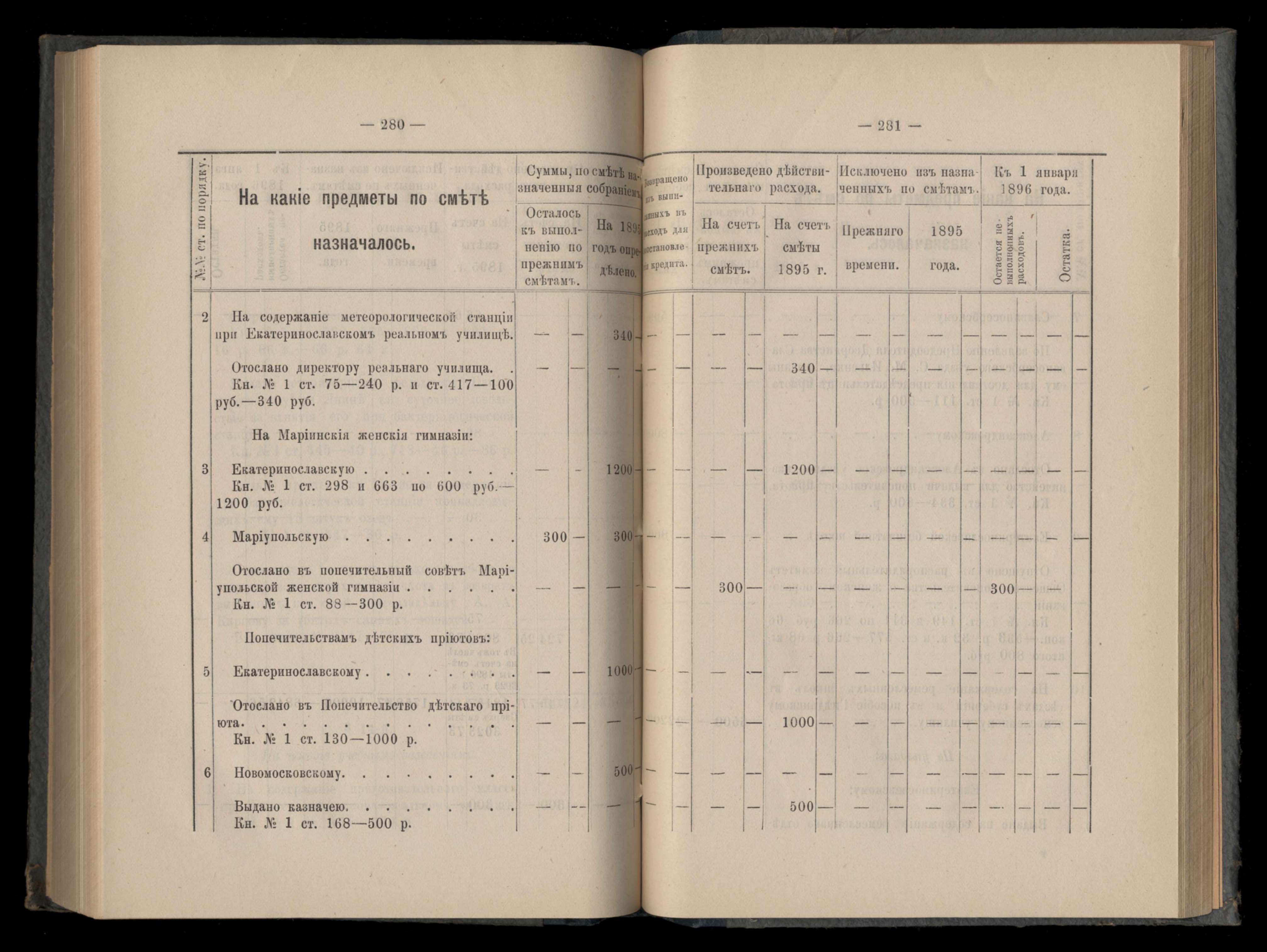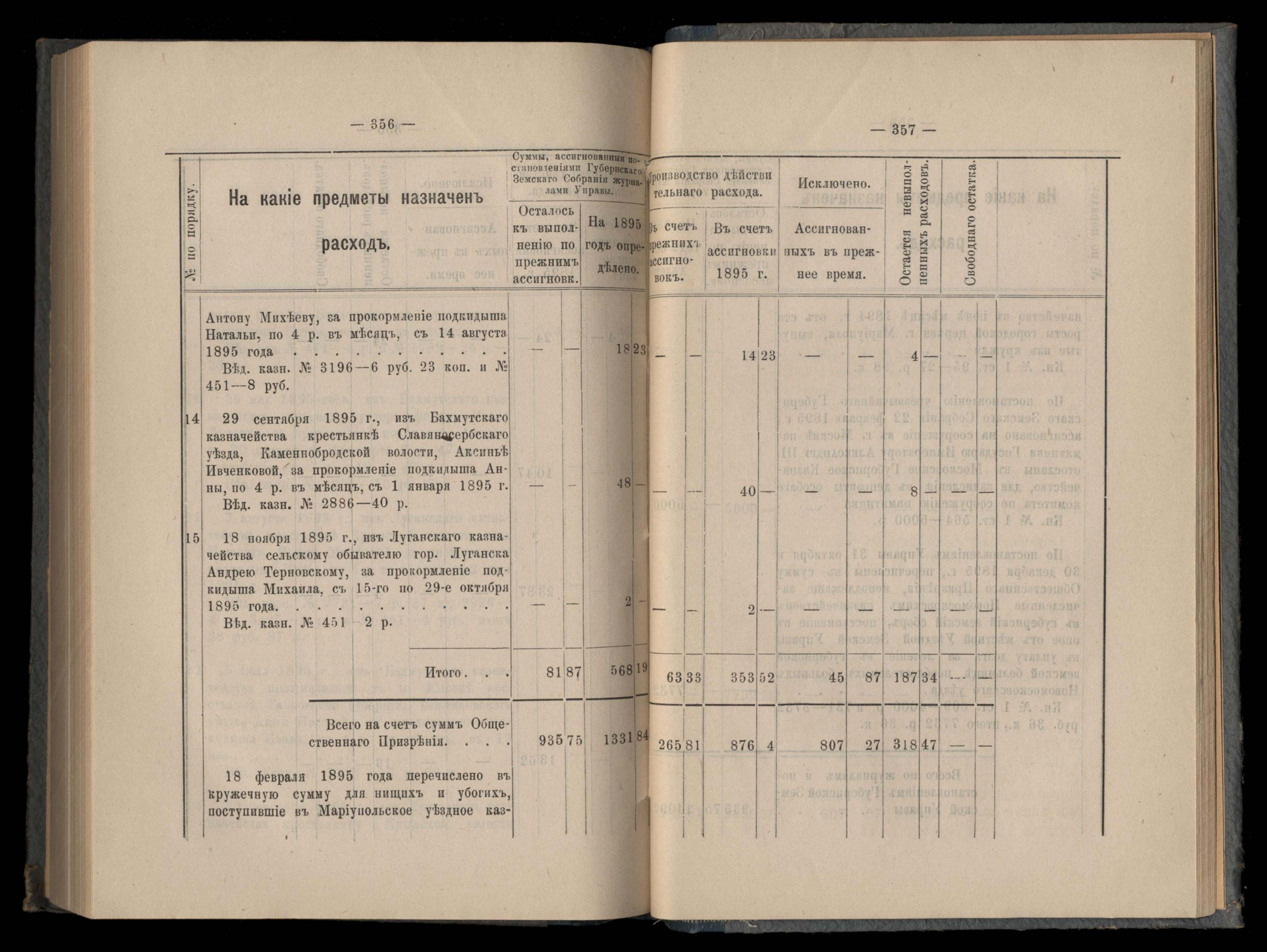 Ведомость Екатеринославской Губернской Земской Управы о расходахъ суммъ общественнаго призренія за 1895 годъ