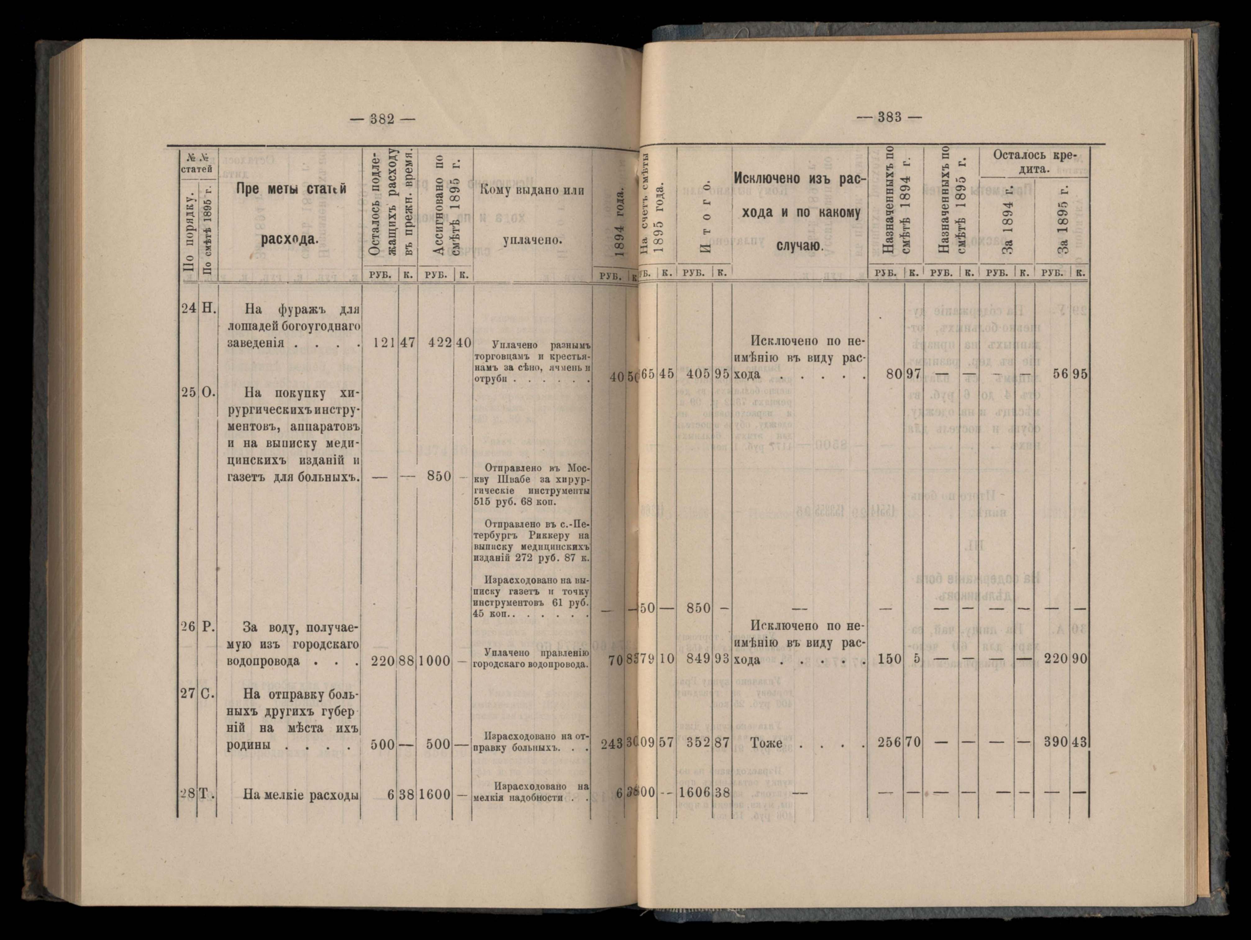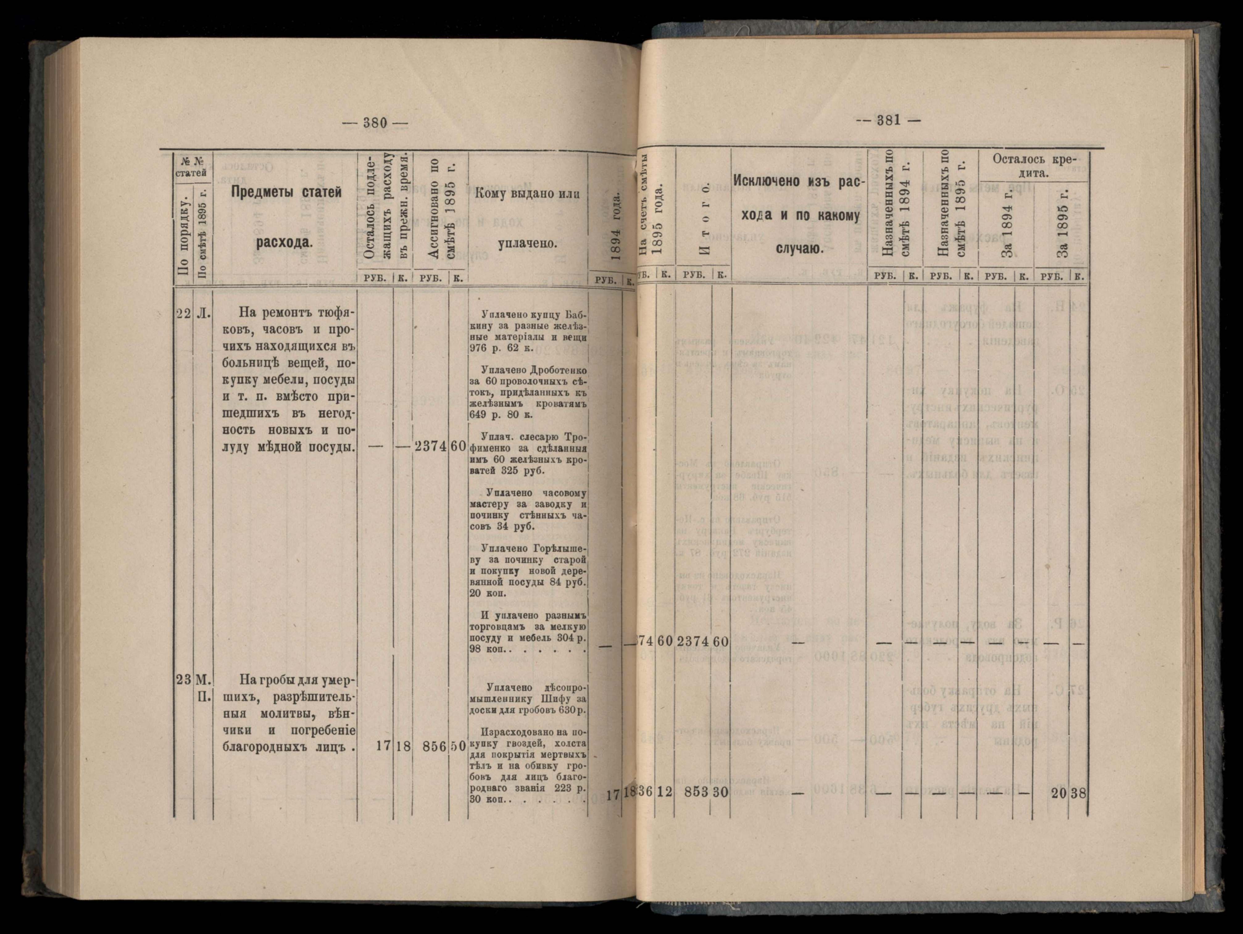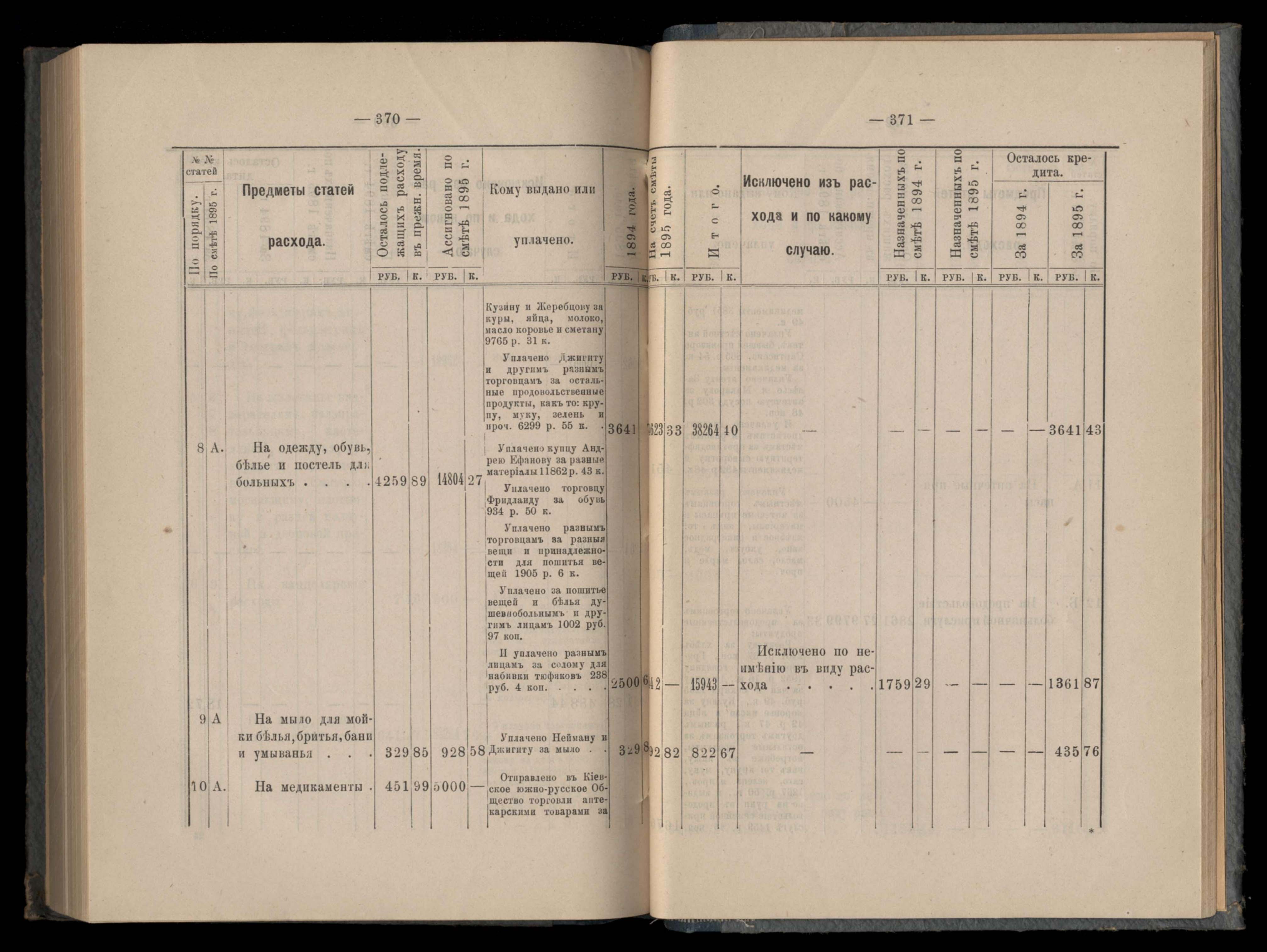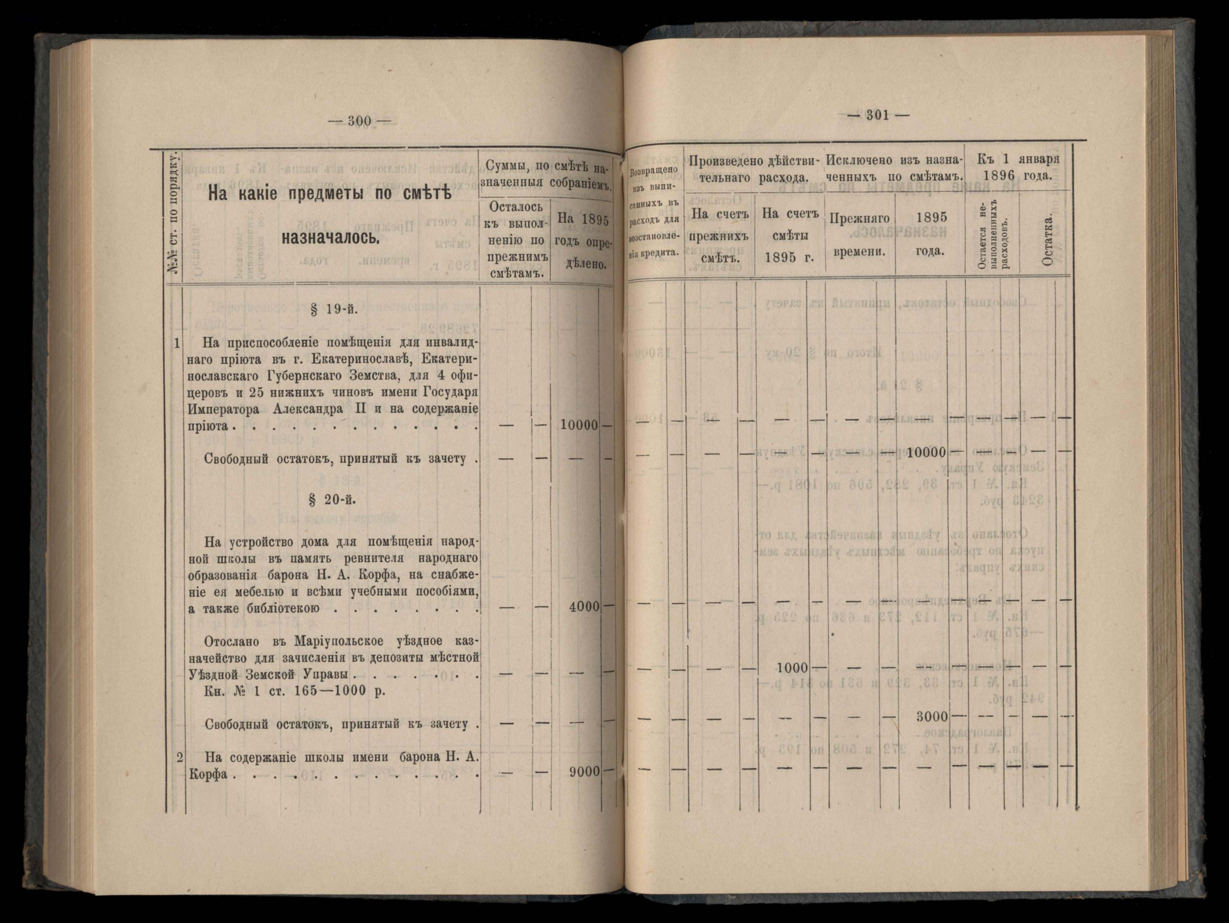 Ведомость Екатеринославской Губернской Земской Управы о расходахъ суммъ общественнаго призренія за 1895 годъ