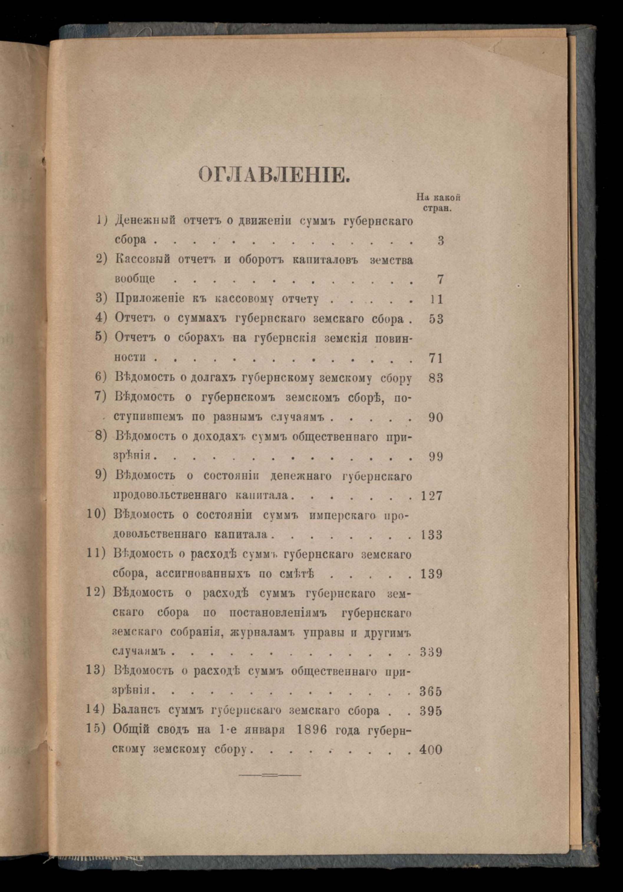 Общій сводъ на 1 января 1896 года Губернскому Земскому Сбору